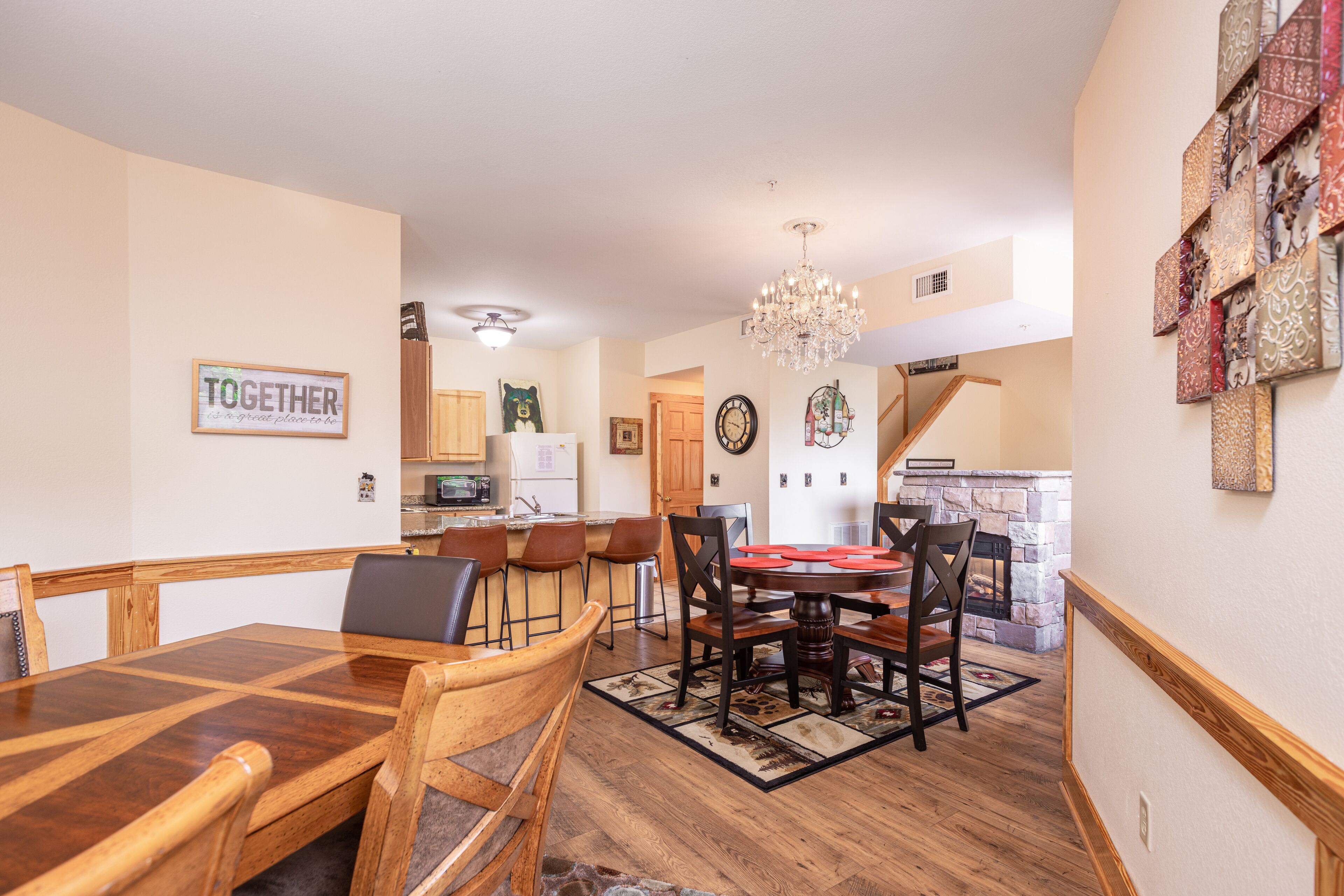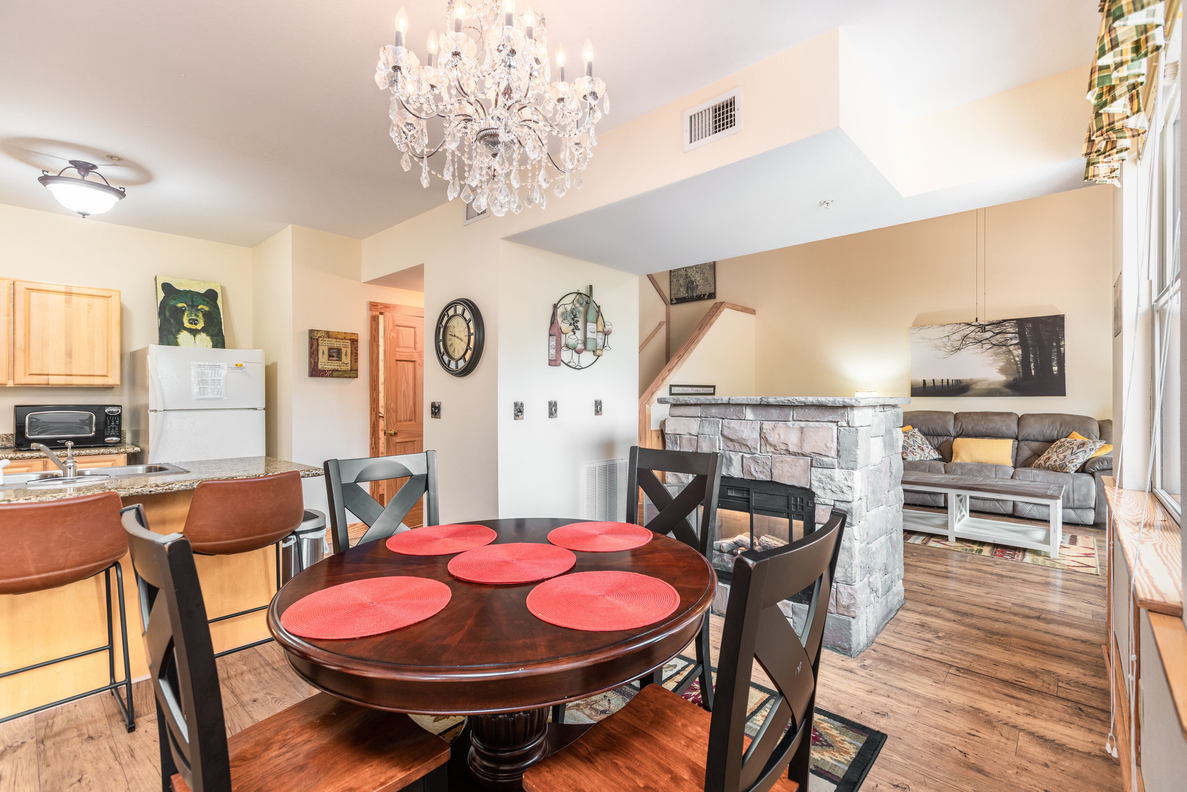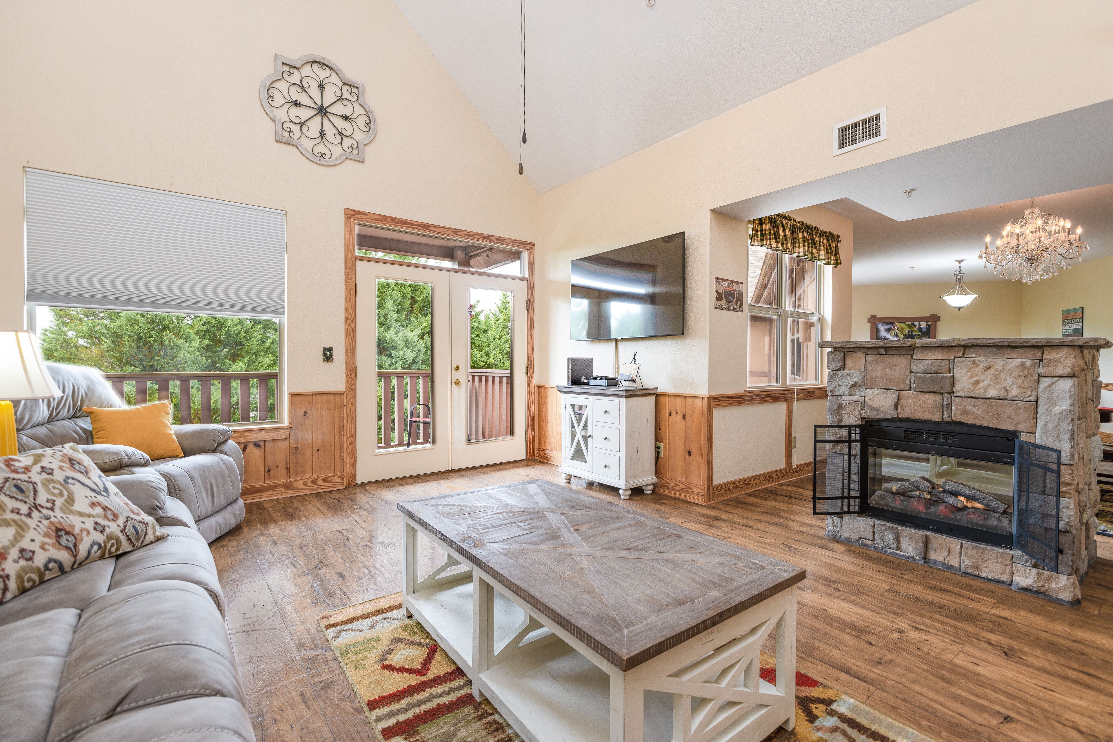 Spacious Two-Level Condo! 5 Min to Dollywood~Heart of Pigeon Forge~Sleeps 6! Great for couples , business travelers , and families (with kids )! A real Smoky Mountains experience nestled in the foothills but secluded from the city. This unit has room for the family to relax, spread out, and enjoy!Recline on leather couches and enjoy the warm ambience of the electric fireplace. The smart TV sets the scene for movie nights.~ Dollywood is only 3 miles away (about 5 minutes), and you can even enjoy the fireworks from the balcony. ~ Downtown Pigeon Forge is 5 minutes from home by car, while downtown Gatlinburg is under 20 minutes.~ Pigeon Forge Golf Course is just a few minutes away - book your tee time!~ Kitchen equipped with a full suite of appliances, and ample cookware to create delicious dishes.~ It’s time to eat - there is a breakfast table seats four and a dining table for six.~ Half bath near the kitchen on the main level is a wonderful convenience!~ Two-story unit sleeps six guests in two bedrooms.~ Master is fitted with a king-size bed, a smart TV, and attached bathroom with a tub/shower combination.~ Second bedroom is furnished with a king-size bed, a smart TV, and two twin-size beds in a separate area of the room (separated by a wall for each room to have privacy) with an attached bathroom with tub/shower combination.~ Take in the lush views from your private balcony with seating for four.~ Spend leisurely days lounging by the indoor or outdoor pools (unheated and open seasonally). ~ Additional perks include a sauna, hot tub, and fitness center -- open year-round.~ Complimentary Wi-Fi ~ Complimentary washer/dryer.~ Unassigned parking is available for two cars in the community garage.~ This unit is located on the third floor. Easy Access Elevators are available.~NICHOLS HEIR WEDDING VENUE GUESTS~ We are the only company that works directly with Nichols Heir Wedding Venue offering wedding parties exclusive stays for their family and guests~~ Parking notes: Unassigned parking is available for 2 vehicles in the community garage. Overflow parking available for additional cars.You must be 21 years or older to rent this property.~ You'll be safe, comfortable, and have the best vacation because...~ Your property managers are a married couple with children who have lived in the Pigeon Forge area their entire lives. They personally care for the property and your family.
