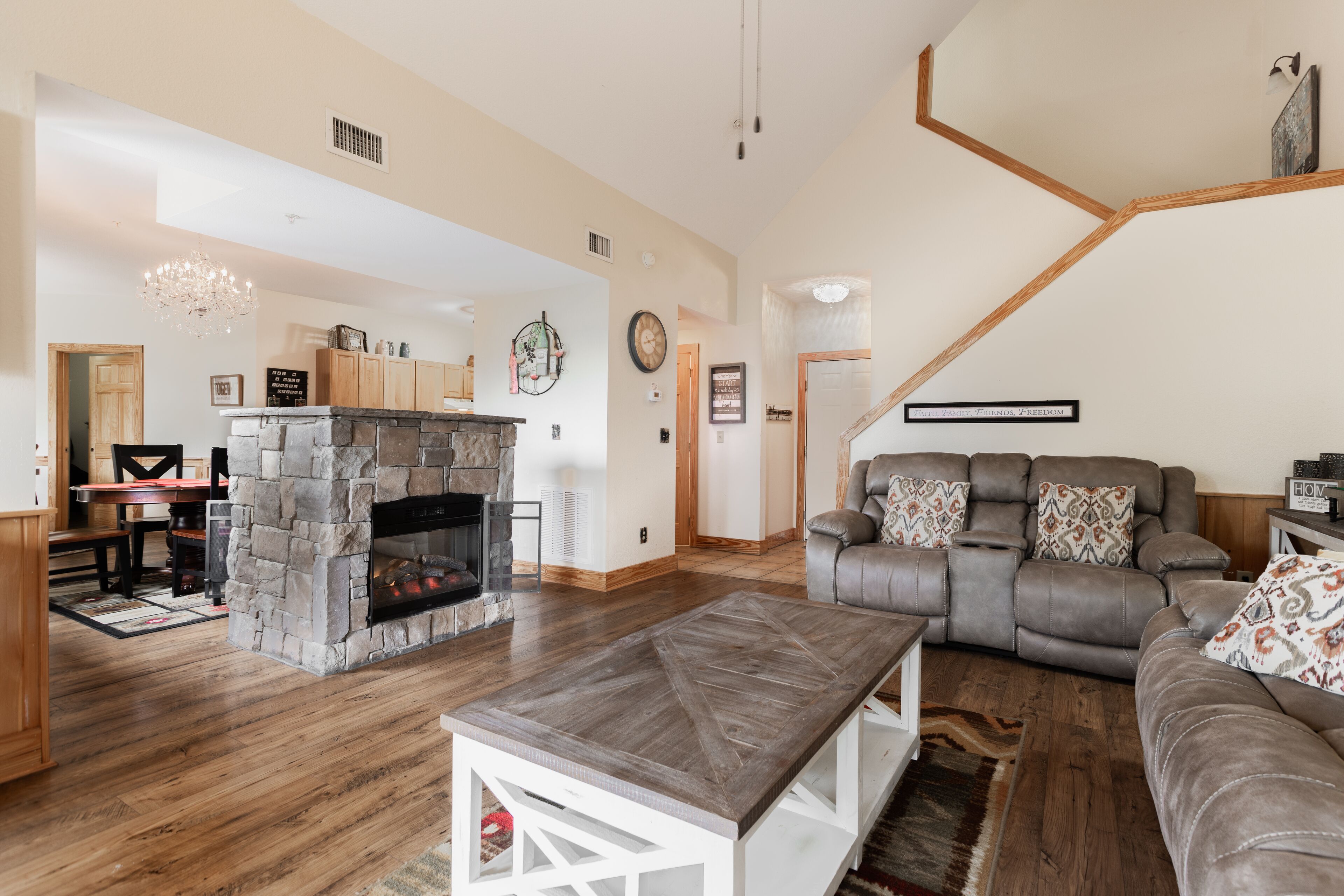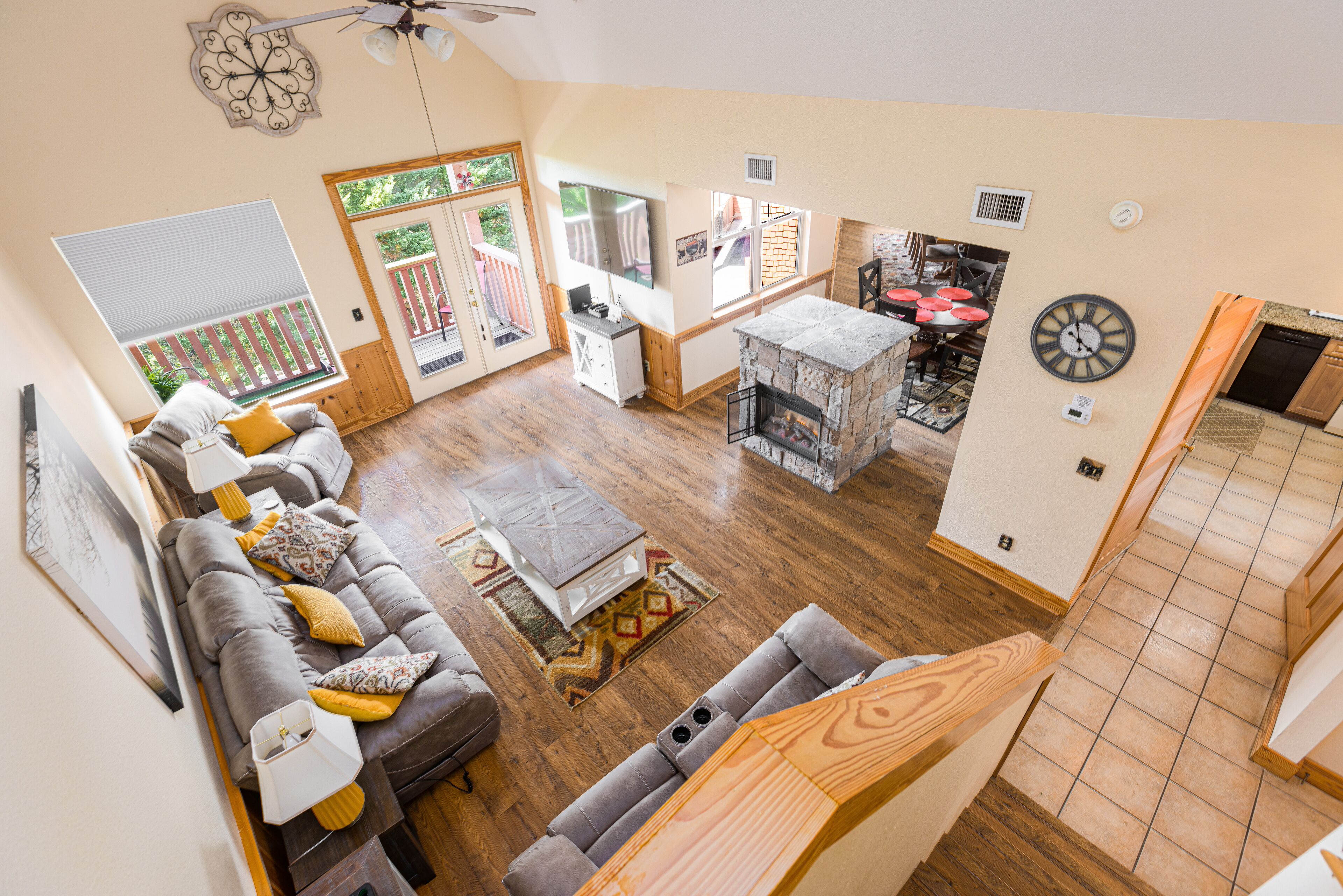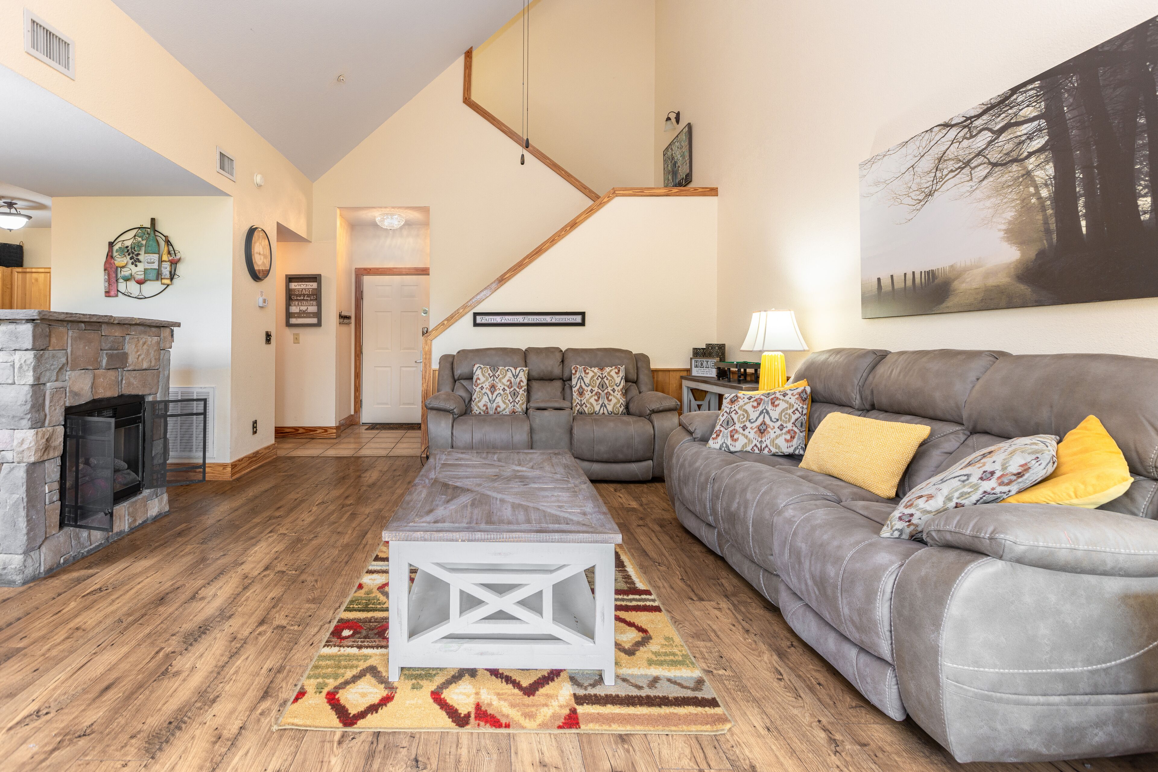 Spacious Two-Level Condo! 5 Min to Dollywood~Heart of Pigeon Forge~Sleeps 6! Great for couples , business travelers , and families (with kids )! A real Smoky Mountains experience nestled in the foothills but secluded from the city. This unit has room for the family to relax, spread out, and enjoy!Recline on leather couches and enjoy the warm ambience of the electric fireplace. The smart TV sets the scene for movie nights.~ Dollywood is only 3 miles away (about 5 minutes), and you can even enjoy the fireworks from the balcony. ~ Downtown Pigeon Forge is 5 minutes from home by car, while downtown Gatlinburg is under 20 minutes.~ Pigeon Forge Golf Course is just a few minutes away - book your tee time!~ Kitchen equipped with a full suite of appliances, and ample cookware to create delicious dishes.~ It’s time to eat - there is a breakfast table seats four and a dining table for six.~ Half bath near the kitchen on the main level is a wonderful convenience!~ Two-story unit sleeps six guests in two bedrooms.~ Master is fitted with a king-size bed, a smart TV, and attached bathroom with a tub/shower combination.~ Second bedroom is furnished with a king-size bed, a smart TV, and two twin-size beds in a separate area of the room (separated by a wall for each room to have privacy) with an attached bathroom with tub/shower combination.~ Take in the lush views from your private balcony with seating for four.~ Spend leisurely days lounging by the indoor or outdoor pools (unheated and open seasonally). ~ Additional perks include a sauna, hot tub, and fitness center -- open year-round.~ Complimentary Wi-Fi ~ Complimentary washer/dryer.~ Unassigned parking is available for two cars in the community garage.~ This unit is located on the third floor. Easy Access Elevators are available.~NICHOLS HEIR WEDDING VENUE GUESTS~ We are the only company that works directly with Nichols Heir Wedding Venue offering wedding parties exclusive stays for their family and guests~~ Parking notes: Unassigned parking is available for 2 vehicles in the community garage. Overflow parking available for additional cars.You must be 21 years or older to rent this property.~ You'll be safe, comfortable, and have the best vacation because...~ Your property managers are a married couple with children who have lived in the Pigeon Forge area their entire lives. They personally care for the property and your family.