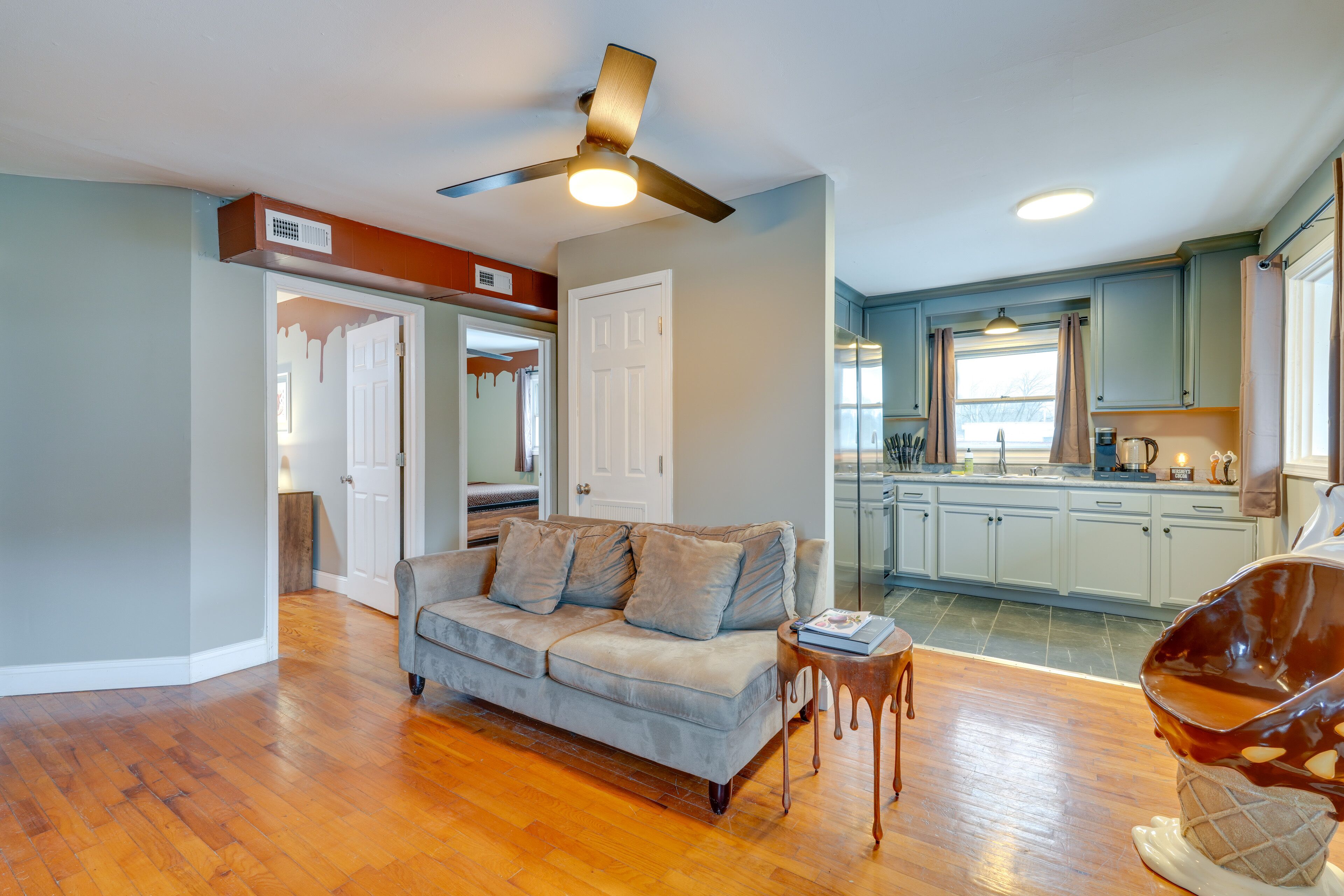 Cozy Kingsport Apartment: Walk to Cidery! Make 'The Chocolate Suite' your home base for a getaway in Kingsport, TN! This 2-bedroom, 1-bath vacation rental apartment comes with everything you need for a carefree stay, including a full kitchen and a flat-screen TV in the whimsical living room. You won't have to venture far for local fun, with the on-site cidery hosting everything from live music to...
