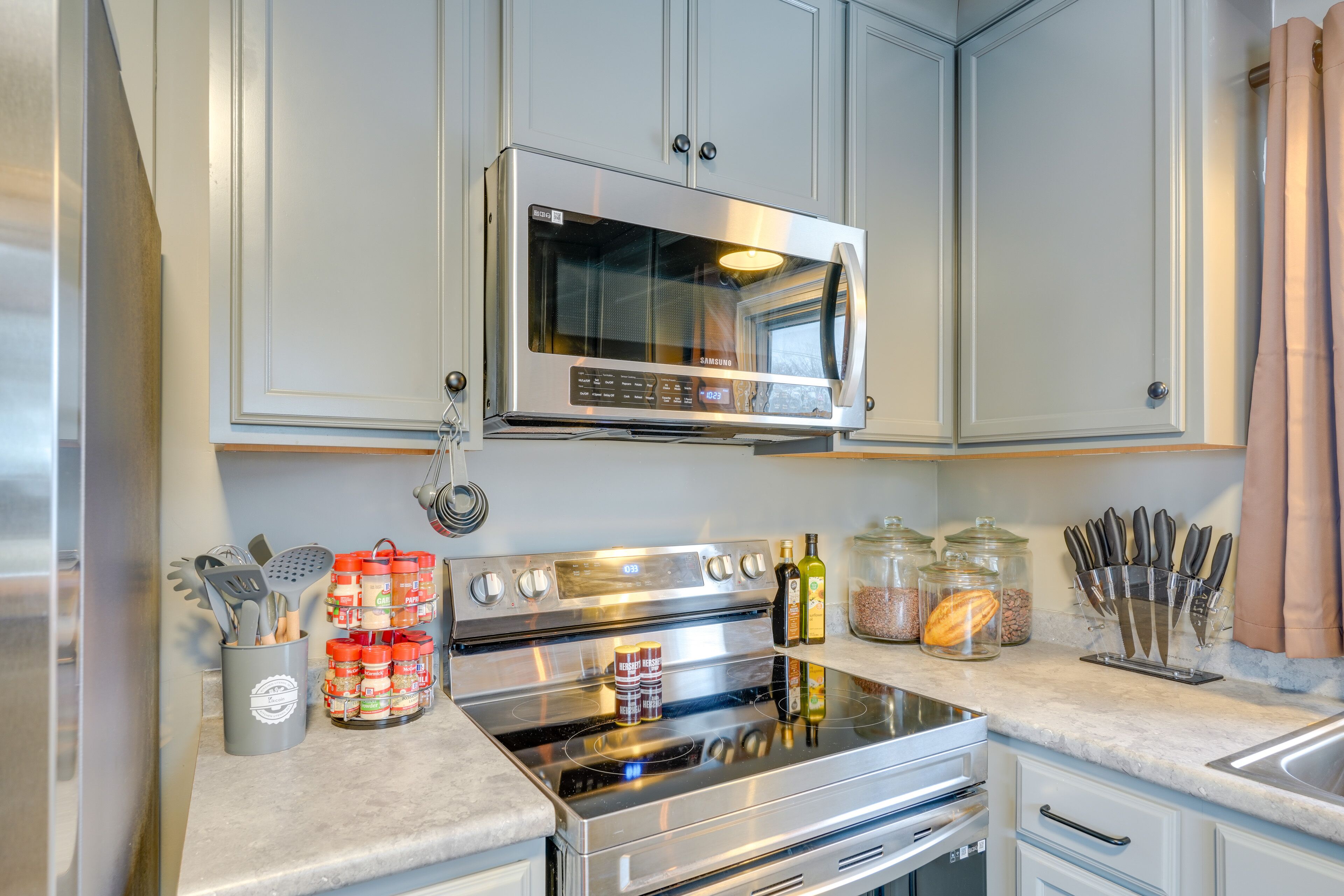 Cozy Kingsport Apartment: Walk to Cidery! Make 'The Chocolate Suite' your home base for a getaway in Kingsport, TN! This 2-bedroom, 1-bath vacation rental apartment comes with everything you need for a carefree stay, including a full kitchen and a flat-screen TV in the whimsical living room. You won't have to venture far for local fun, with the on-site cidery hosting everything from live music to trivia nights. If you're up for an outdoor adventure, head to Warriors' Path State Park for kayaking and hiking. Your sweet escape awaits!-- THE PROPERTY --Close to Downtown | Free WiFiBedroom 1: Queen Bed | Bedroom 2: Queen BedMAIN FEATURES: Flat-screen TV, high-top table, ceiling fansKITCHEN: Refrigerator, stove/oven, microwave, Keurig coffee maker, hot water kettle, cooking basics, spices, dishware & flatware, trash bags & paper towelsGENERAL: Complimentary toiletries, hair dryer, towels & linens, central heating & A/C, keyless entryACCESSIBILITY: Single-story unit, 2nd floor, stairs to accessPARKING: Shared parking lot (2 vehicles)ADDT’L ACCOMMODATIONS: Two additional properties are available on-site, each with separate nightly rates. If you would like to reserve multiple rentals, please inquire for more information prior to booking-- THE LOCATION --OPT OUTSIDE: Kingsport Greenbelt Trail Head (3 miles), Warriors' Path State Park (4 miles), Bays Mountain Park & Planetarium (8 miles), Boone Lake Beach (9 miles), Appalachian Caverns (16 miles), Laurel Run Park (18 miles)FAMILY FUN: Exchange Place (3 miles), Kingsport Carousel & Park (4 miles), Downtown Kingsport (4 miles), Netherland Inn Museum (6 miles), Hands On Discovery Center (13 miles), Gray Fossil Site (13 miles)BREWS: Gypsy Circus Cider Company (on-site), Bays Mountain Brewing Company (3 miles), Model City Tap House (3 miles)AIRPORT: Tri-Cities Airport (10 miles)-- REST EASY WITH US --Evolve makes it easy to find and book properties you’ll never want to leave. You can relax knowing that our properties will always be ready for you and that we’ll answer the phone 24/7. Even better, if anything is off about your stay, we’ll make it right. You can count on our homes and our people to make you feel welcome — because we know what vacation means to you.-- POLICIES --- No smoking- No pets allowed- No events, parties, or large gatherings- Must be at least 23 years old to book- Additional fees and taxes may apply- Photo ID may be required upon check-in- NOTE: This single-story unit is located on the 2nd floor and requires stairs to access- NOTE: There are other bookable vacation rentals on-site; other travelers may be present during your stay