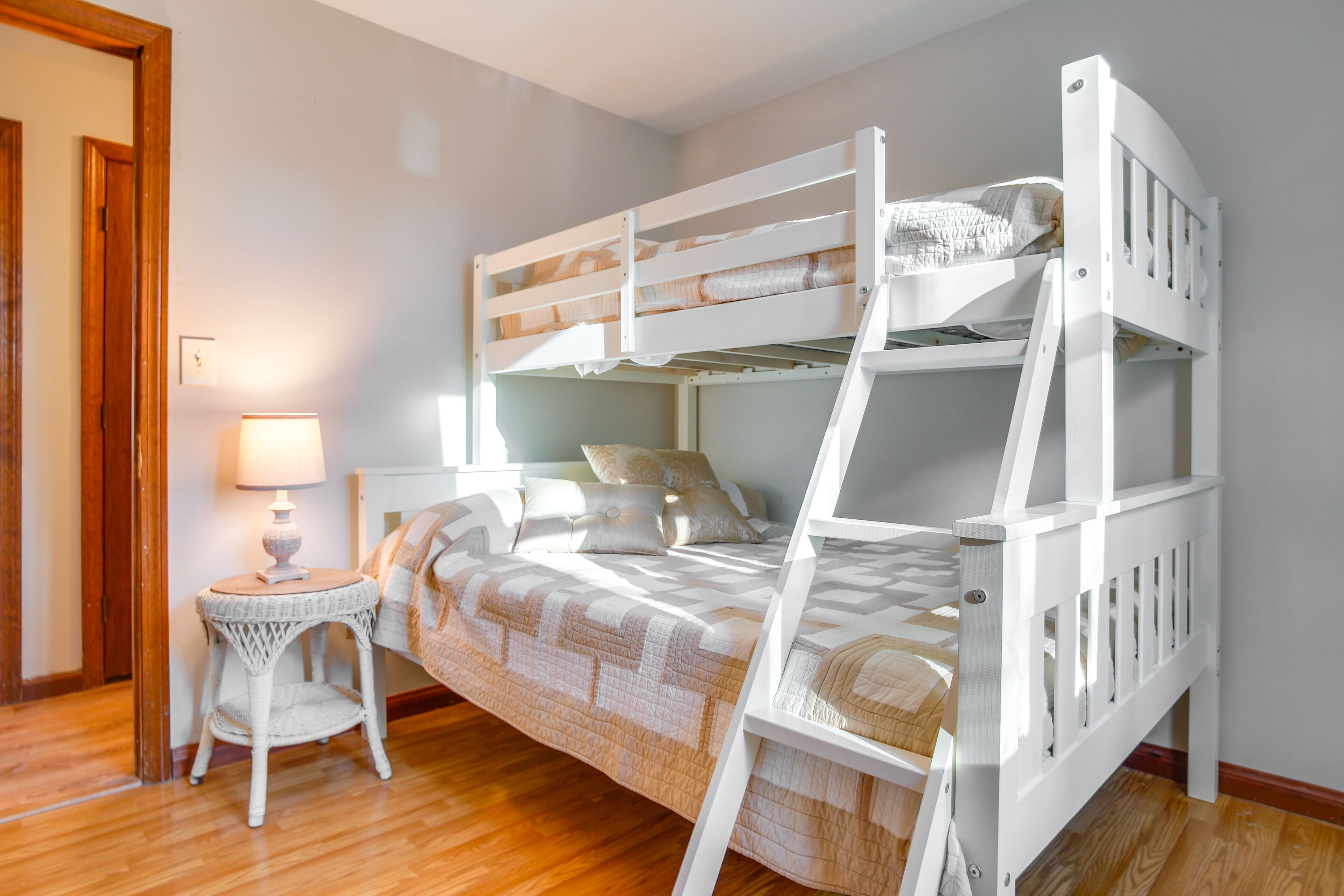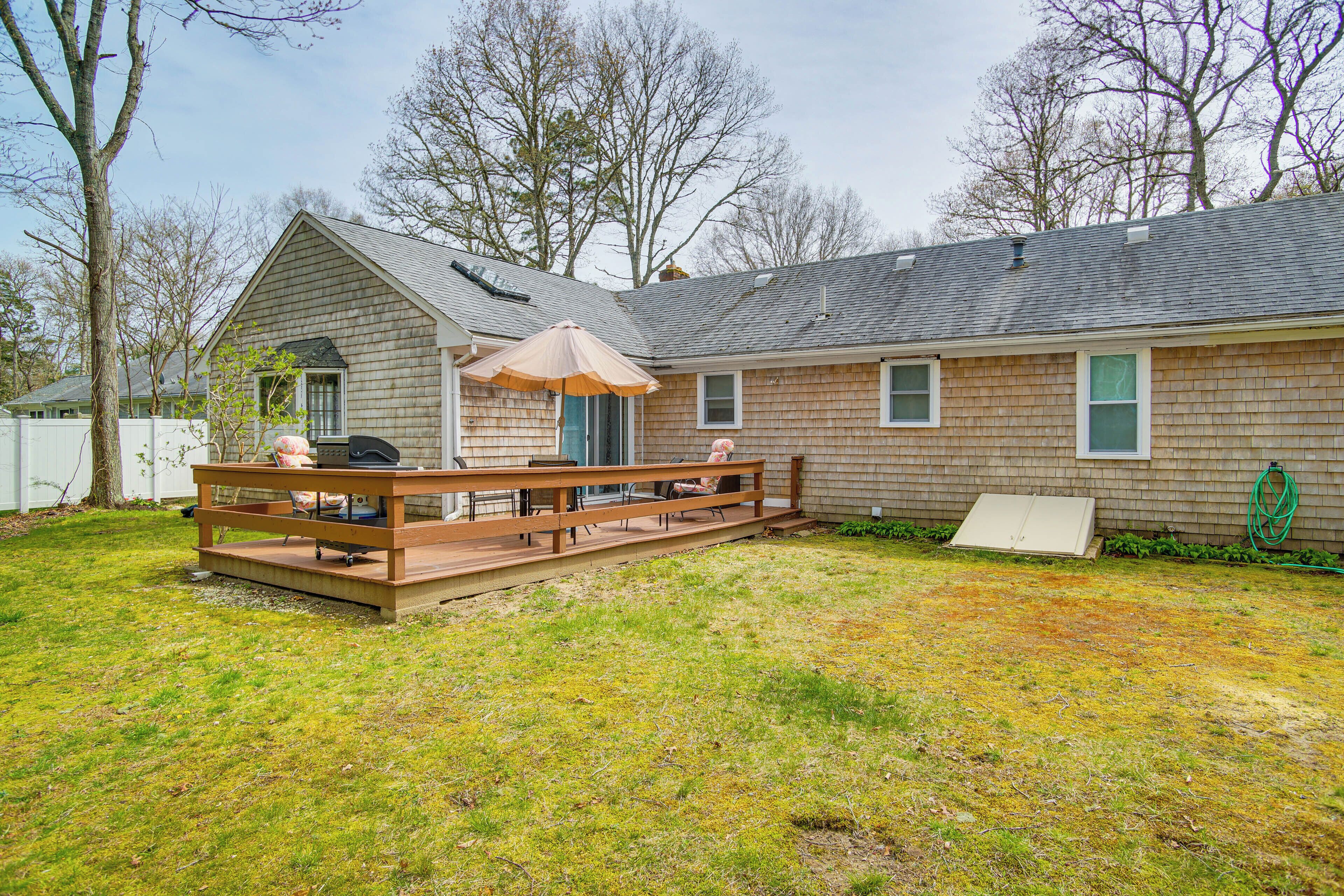 Centerville Vacation Home ~ 2 Mi to Covell’s Beach Escape to the enchanting charm of Centerville when you stay at this delightful 3-bedroom, 2-bathroom vacation rental home. With its spacious layout and comfortable amenities, 'Beldan Breeze' invites you to unwind in total relaxation. Plus, when you're ready for adventure, you'll be just minutes away from plenty of nearby fun. Spend your days lounging on beautiful Craigville Beach, teeing off on a sprawling golf course, or taking a scenic ferry ride to the iconic attractions of Martha's Vineyard.-- THE PROPERTY --MassTaxConnectID No. C0472360200 | Free WiFi | Beach Equipment Provided | ~ 29 Mi to Martha's VineyardBedroom 1: Queen Bed | Bedroom 2: Queen Bed | Bedroom 3: Twin/Full Bunk Bed | Family Room: Queen Sleeper Sofa | Additional Sleeping: Pack ‘n PlayOUTDOOR LIVING: Back deck, gas grill, dining table, large yardKITCHEN: Fridge, stove, oven, dishwasher, microwave, cooking basics, coffee maker, toaster oven, dishware/flatware, paper towels/trash bagsINDOOR LIVING: Smart TVs, dining table, 2 living areas, vaulted ceilings, exposed wooden beamsGENERAL: Linens, towels, washer & dryer, central air conditioning & heating, complimentary toiletries, hair dryer, iron/boardACCESSIBILITY: 3 steps required to access, single-story homeFAQ: 1 exterior Ring doorbell camera (facing front entry)PARKING: Driveway (2 vehicles), free street parking-- THE LOCATION --SUN + SAND: Covell’s Beach (2 miles), Craigville Beach (3 miles), Keyes Memorial Beach (5 miles), Bayview Street Beach (5 miles), Veterans Park Beach (5 miles), Kalmus Beach (5 miles)TEE OFF: Twin Brooks Golf Course (3 miles), Hyannis Golf Course (4 miles), Olde Barnstable Fairgrounds Golf Course (4 miles), Hyannisport Club (4 miles)AREA ATTRACTIONS: Centerville Historical Museum (1 mile), Skunknett River Wildlife Sanctuary (2 miles), John F. Kennedy Hyannis Museum (4 miles), Whydah Pirate Museum (7 miles), Cape Cod Winery (14 miles), Martha’s Vineyard Museum - via ferry (29 miles)AIRPORTS: Cape Cod Gateway Airport (4 miles), Boston Logan International Airport (69 miles)-- REST EASY WITH US --Evolve makes it easy to find and book properties you’ll never want to leave. You can relax knowing that our properties will always be ready for you and that we’ll answer the phone 24/7. Even better, if anything is off about your stay, we’ll make it right. You can count on our homes and our people to make you feel welcome--because we know what vacation means to you.-- POLICIES --- No smoking - No pets allowed- No events, parties, or large gatherings - Must be at least 25 years old to book- Additional fees and taxes may apply- Photo ID may be required upon check-in- NOTE: This single-story home requires 3 exterior stairs to access- NOTE: Your safety matters. The property features an exterior Ring doorbell camera located on the front door facing the front entry. The camera does not look into any interior spaces. The camera records video and sound when motion is detected or when the doorbell button is pressed