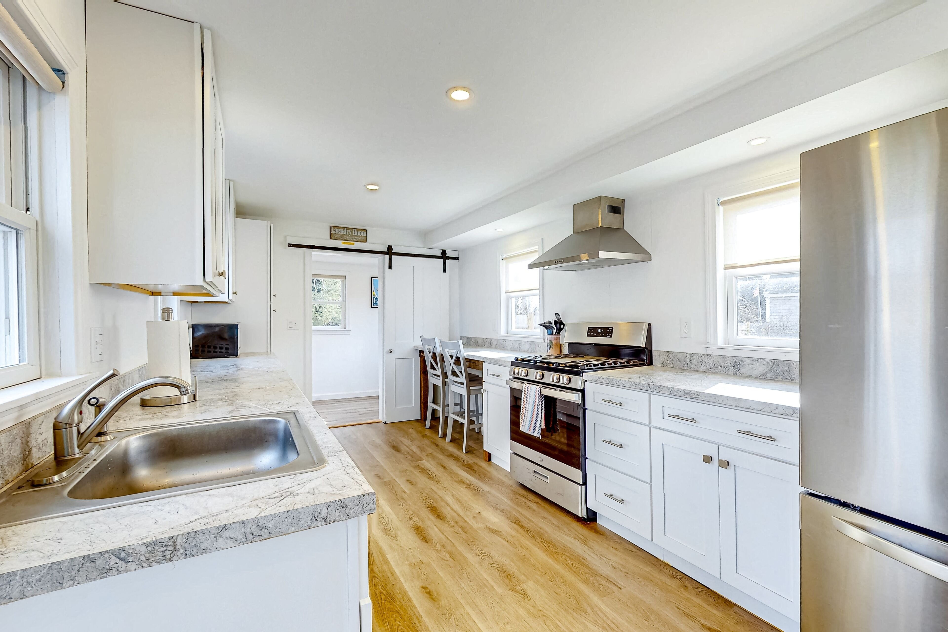 Lovely home near the river with wraparound porch, W/D, & AC - dog-friendly Perfect LandingOur calendar is updated in real-time & our nightly rates are accurately displayed. Simply enter your desired dates and click 'Book Now!'Your exploration of Centerville is made effortless when you book a stay at this quintessentially coastal home! Ideal for a cozy family or friend retreat, the house is composed of charming wood flooring, nautical mementos, and comfortable furnishings. The kitchen offers a great space to show off your cooking skills, and the dining room is prepared to host memorable family meals. Off the kitchen, you'll have access to a separate laundry room. Peaceful moments can be spent in the home's sunroom or writing at the upstairs desk. Internet access and central air-conditioning tie together the stellar interior amenities. Outside, stretch your legs in the yard or enjoy the shade on the wraparound porch. An outdoor shower is also available after days spent on the beach.Within quick walking and biking distance, you'll discover Craigville Beach. The Melody Tent, Millway Beach, Whydah Pirate Museum, Pirate's Cove Adventure Golf, and Sandwich Glass Museum are all within a 13-mile radius.Things to KnowCheck-in time: 4:00 p.m.Check-out time: 10:00 a.m.All guests shall abide by Vacasa’s good neighbor policy and shall not engage in illegal activity. Quiet hours are from 10:00 p.m. to 8:00 a.m.No smoking is permitted anywhere on the premises. If you are bringing a dog on your trip, the pet fee is already included in your quote when selecting ‘Yes’ to pets. No more dogs are allowed.Parking notes: There is free parking available for 3 vehicles.Damage waiver: The total cost of your reservation for this Property includes a nightly damage waiver fee, plus tax if applicable (the “Damage Waiver”). (A discount may be applied for stays of 28 nights or longer, if permitted.) The Damage Waiver covers you for up to $3,000 of accidental damage to the Property or its contents (such as furniture, fixtures, and appliances) as long as you report the incident to the host prior to checking out. The Damage Waiver fee eliminates the need for a traditional security deposit.More information can be downloaded from the "Rental Agreement" on the checkout page.Due to local laws or HOA requirements, guests must be at least 25 years of age to book. Guests under 25 must be accompanied by a parent or legal guardian for the duration of the reservation.