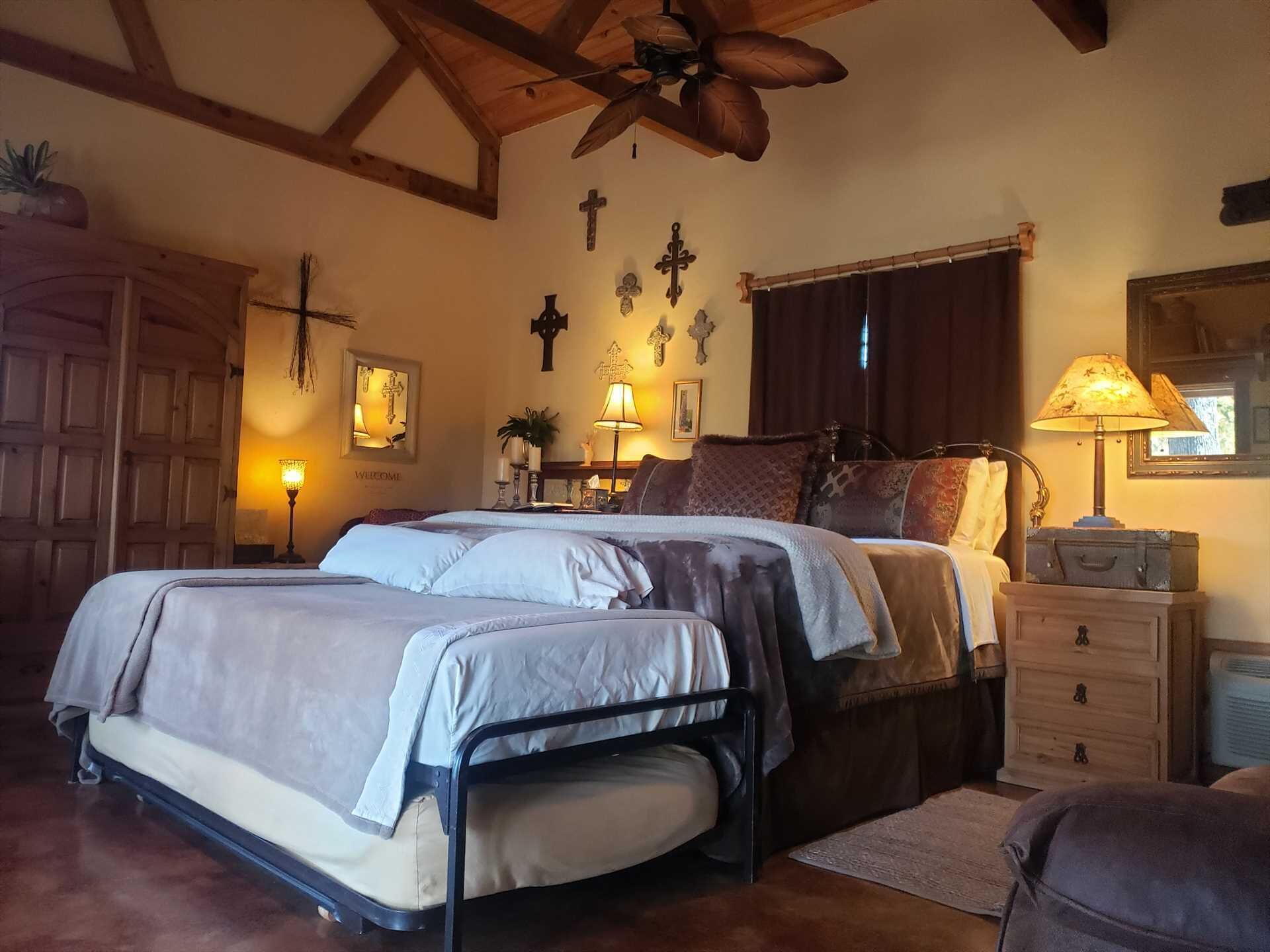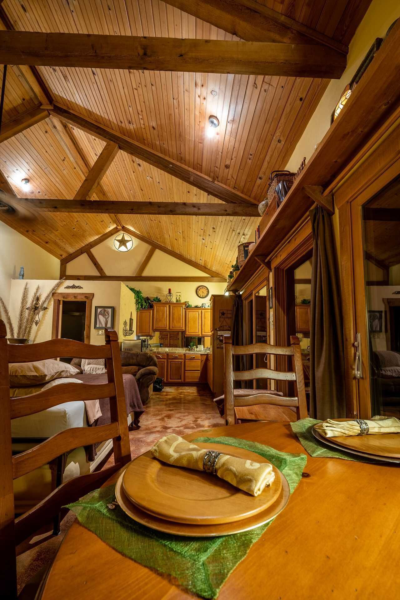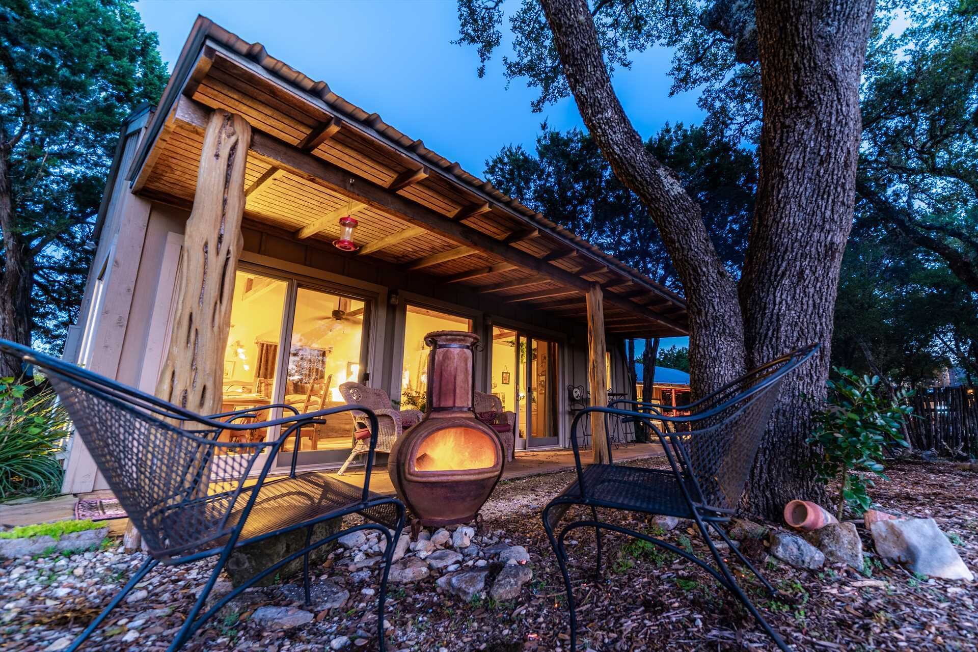 Casitas at Madrona Ranch - Casita The casita sits on a lake with amazing views of the hill country and nature.Perched on a hillside overlooking Red Bluff Creek, the Casita at Madrona Ranch has everything you need for a relaxing family getaway! This is one of the best waterfront cabin rentals we have at Backroads Reservations, with its amazing views of the Hill Country, quiet rural setting, and convenience to the shops and attractions of nearby Pipe Creek and Boerne. Inside and out-from the tree-lined property to the rustic beamed ceilings, this sweet little cabin has to be seen to be believed!With mountain views, water activities available close by, the pet-friendly and kid-friendly Casita has all the makings for the best weekend getaway. The 14-acre property provides plenty of space for exploration and wildlife watching, and it's remote enough to enjoy in relaxing solitude while still having access to awesome towns within a short drive. Miles of scenic Hill Country roads surround the property for a motorcycle or car tour! Deer often stroll right up to the shaded patio that fronts the Casita, and there's plenty of patio furniture. Red Bluff Creek is the perfect setting for cooling off, or just unplugging for a while (water levels vary based on seasonal rain; please check with us). Share the soothing quiet with your loved ones around the fire pit and have a Lone Star barbecue on the grill provided. Take in the views on the spacious ranch with a leisurely hike and look up in wonder at the crystalline stars on clear nights. Facing the patio is a glass wall that gives panoramic views of the picturesque hills. The warm, wood-accented interior includes a full bath with shower, a king-sized bed, and an additional king-sized trundle, which sleeps up to four comfortably. All bed and bath linens are included, and the kitchenette features a microwave, coffee machine, mini fridge, and two-burner cook top. Laundry facilities are also available. Comfort is provided by box heat and air conditioning, and there's a satellite TV, DVD player, and wireless Internet access for your entertainment, along with good cell service. When it comes to vacation rentals with mountain views, the Casita at Madrona Ranch stands proudly among the very best. The location, amenities, and overall beauty of this property make it an amazing hideaway destination. Backroads Reservations will be proud to help you make it happen!*Water may be low. Contact us about water levels at time of booking* The Casita:=========King bed.King trundle bed (converts into two twins or a king).1 bathroom with a full-size shower.Laptop workspace.Kitchenette with a mini-refrigerator, microwave, and 2-burner infrared cooktop.Regular coffee maker and Keurig coffee maker.Hot Tub.Amenities:========Charcoal BBQ grill.Patio with a view of the lake.Wireless high-speed internet access.Satellite TV.Outdoor fire pit.Hiking opportunities.Wildlife and bird watching.Stargazing.Shared lake access.Mountain View.Rates and Details:==============Host resides on-site and is available as needed.Rental rate based on 2 guests.Children under 2 stay free.Extra guest fee of $20 per day, applicable after 2 guests.Children are welcome.Pets are allowed, with a maximum of 2 permitted.Pet fee: $25 per day, per pet; potential discounts for longer stays.No discharging of firearms, fireworks, or ATVs permitted.Hill Country river and lake water levels are subject to variations based on rainfall.Distance from this home: ==================The Frio River is 70 miles.The Medina River is 15 miles.The Guadalupe River is 50 miles.The Lost Maples State Natural Area is 55 miles.The Garner State Park is 60 miles.The Hill Country State Natural Area is 25 miles. Pipe Creek:=========The natural splendor of the Texas Hill Country is on full display in this handsome little town! It's surrounded by a nature preserve, a high-in-the-hills winery, and their locally-famous pumpkin patch and Christmas tree farm. After you go antiquing, you can cut a rug at Pipe Creek's renowned dance hall!Backroads ReservationsBandera, Texas Ask us at Backroads Reservations about our Hill Country Travel App, the best resource for traveling to the Hill Country! Find thoroughly researched and up-to-date information about dozens of towns, local businesses, events, parks, scenic drives, swimming holes, and much more. Now on the web and mobile! Copyright 2023 - Backroads Reservations in Bandera, Texas. Hill Country Travel App is a trademark of Texas Backroads, LLC