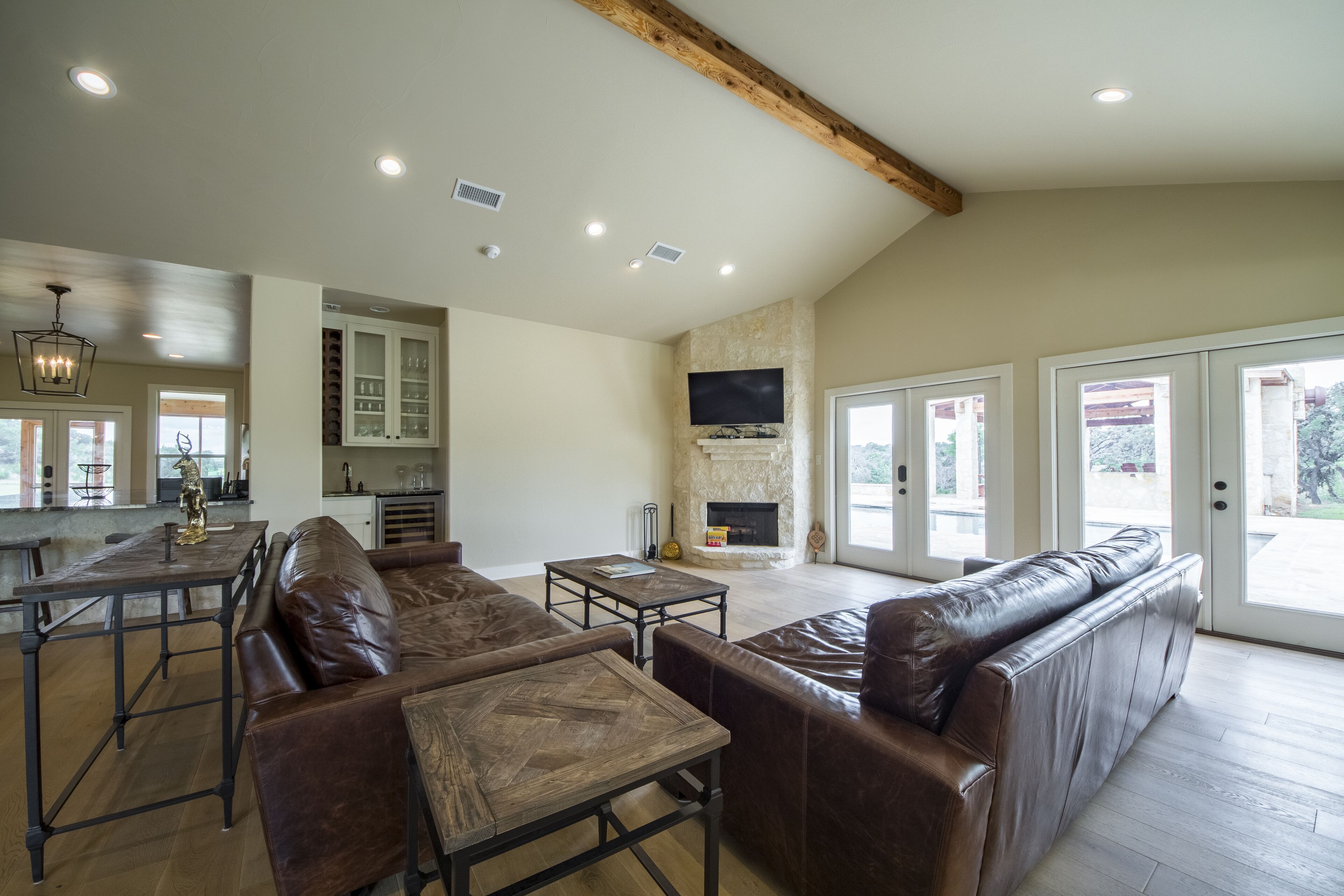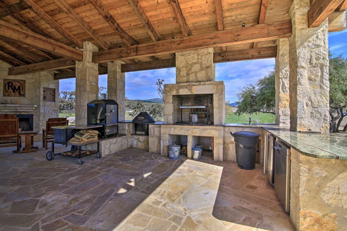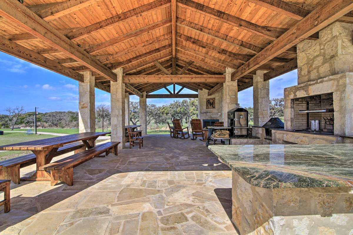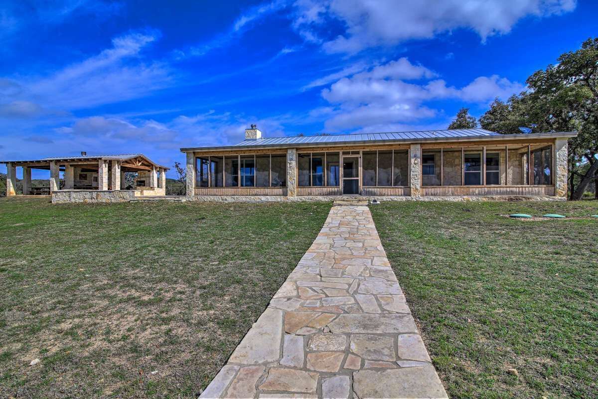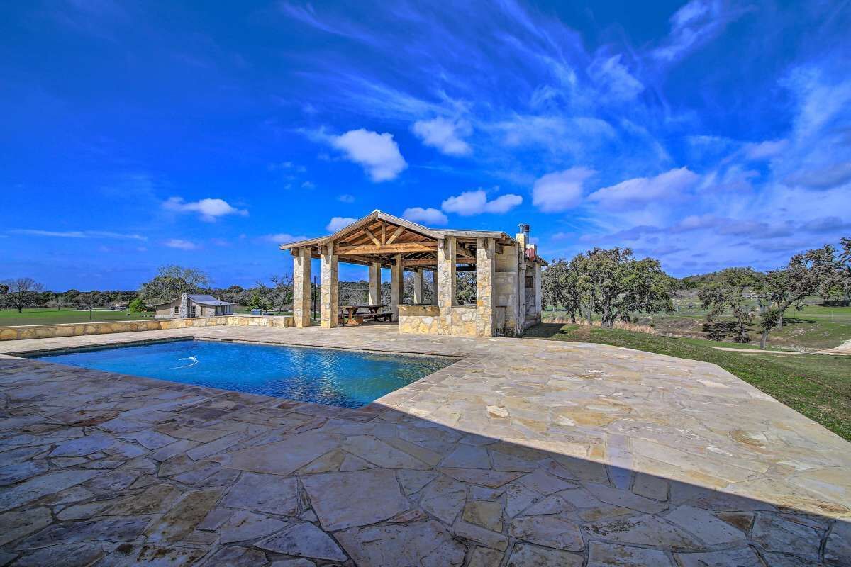 Main Lodge at Rancho Madrono with Pool & Pavilion Come enjoy a relaxing stay at the Main Lodge at Rancho Madroño in the Texas Hill Country. This three bedroom home comes fully equipped with all necessities for your stay. This cottage is located on a 417 acre ranch with a beautiful creek running throughout. Nestled in the heart of the Texas Hill Country, this vacation lodge offers scenic views, liv...