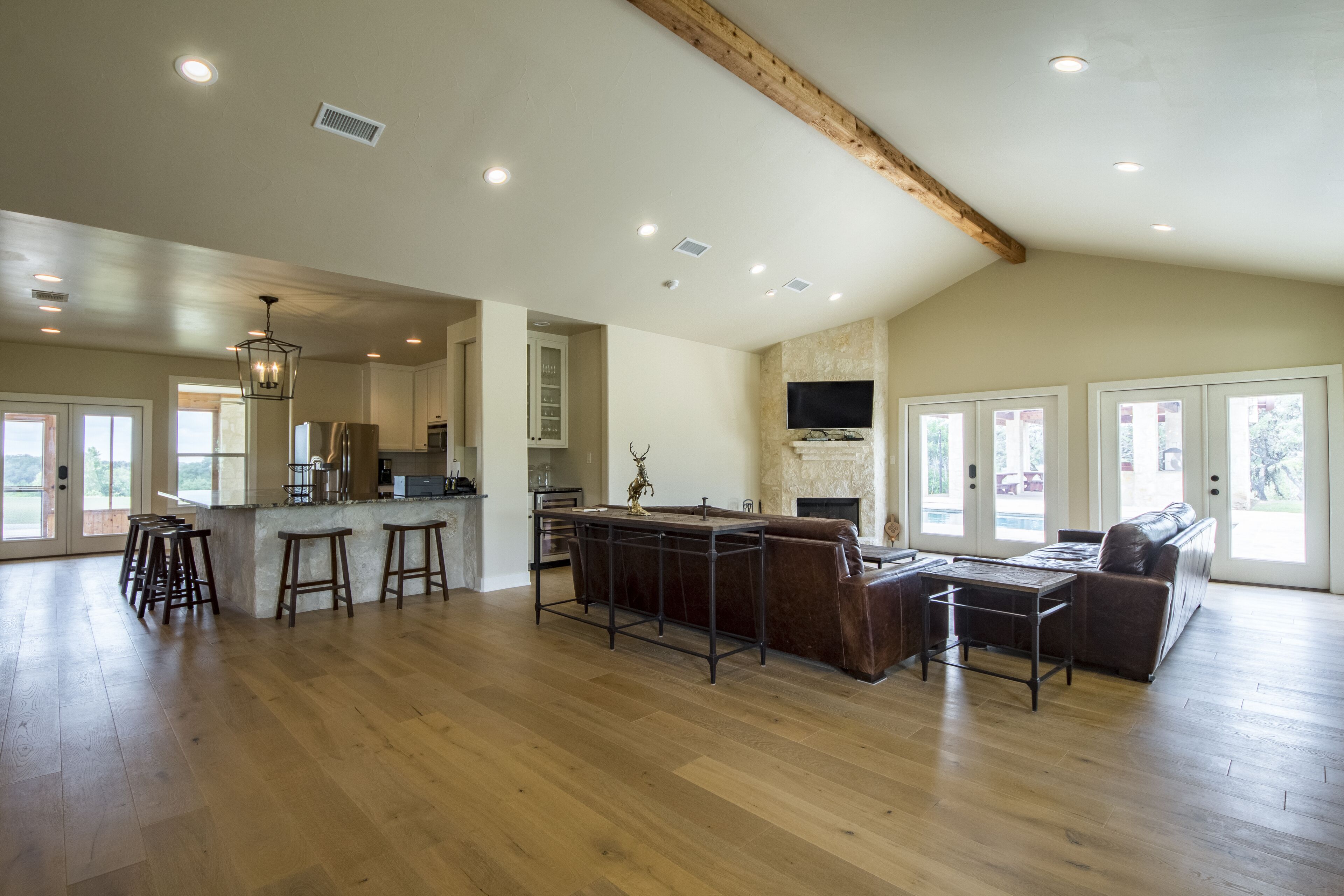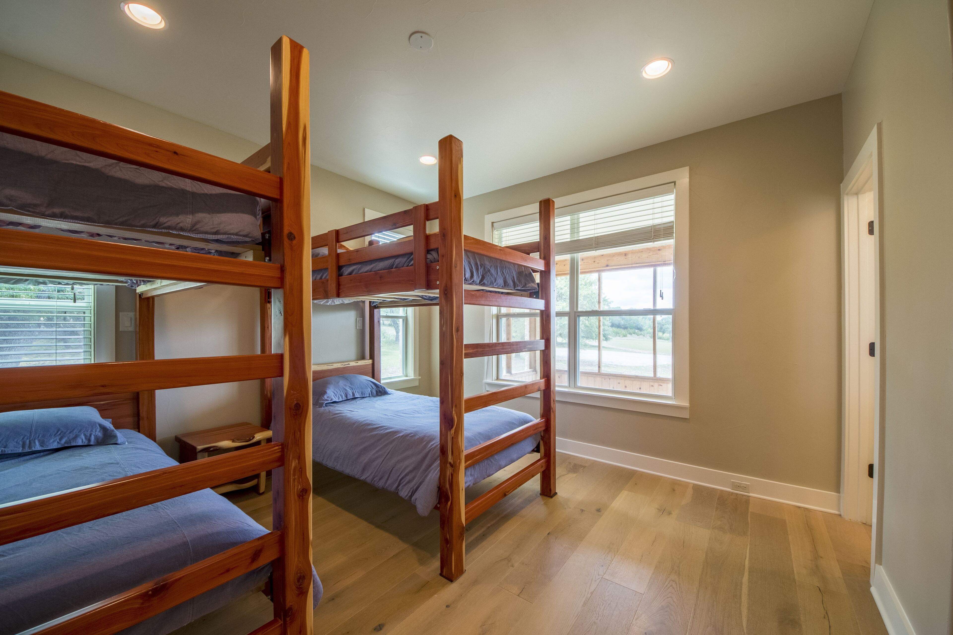Main Lodge at Rancho Madrono with Pool & Pavilion Come enjoy a relaxing stay at the Main Lodge at Rancho Madroño in the Texas Hill Country. This three bedroom home comes fully equipped with all necessities for your stay. This cottage is located on a 417 acre ranch with a beautiful creek running throughout. Nestled in the heart of the Texas Hill Country, this vacation lodge offers scenic views, live spring fed creek, and a lifetime of memories. Today Pipe Creek water levels are unseasonably low due to drought and low rainfall conditions in the Texas Hill Country.All our lodges are quaintly decorated and feature comfortable furniture, fully equipped kitchens, air conditioning and the majestic beauty of rolling hills and natural Texas wildlife. The Main Lodge sleeps 8 people. The master bedroom has a king bed and full ensuite. The second bedroom has 2 sets of bunk beds and access to the main bathroom. The third bedroom has a queen bed and full bath. The natural beauty and tranquility that surrounds you at Rancho Madroño also offers you a variety of recreational opportunities. From hiking, fishing, biking, and swimming, the many activities available at this ranch on Pipe Creek will provide you and your guests with many different adventures and memories. Just a short drive from the ranch you will also find multiple activities such as visiting historic, quaint towns, local wineries, magical caves, and the San Antonio Riverwalk.Pipe Creek meanders through the hidden valley on the ranch. This spring fed creek is beautiful and wonderful for fishing and swimming. However, during drought years or during times of seasonal lows, the creek will not always be flowing above ground and will, therefore, be dry or at a lower water level in some areas. However, with 2 miles of Pipe Creek on the property, there are still spring-fed swimming holes and deep holes with bass, perch, and catfish to fish off the creek banks or on kayak. Please check with our ranch manager for current creek conditions.