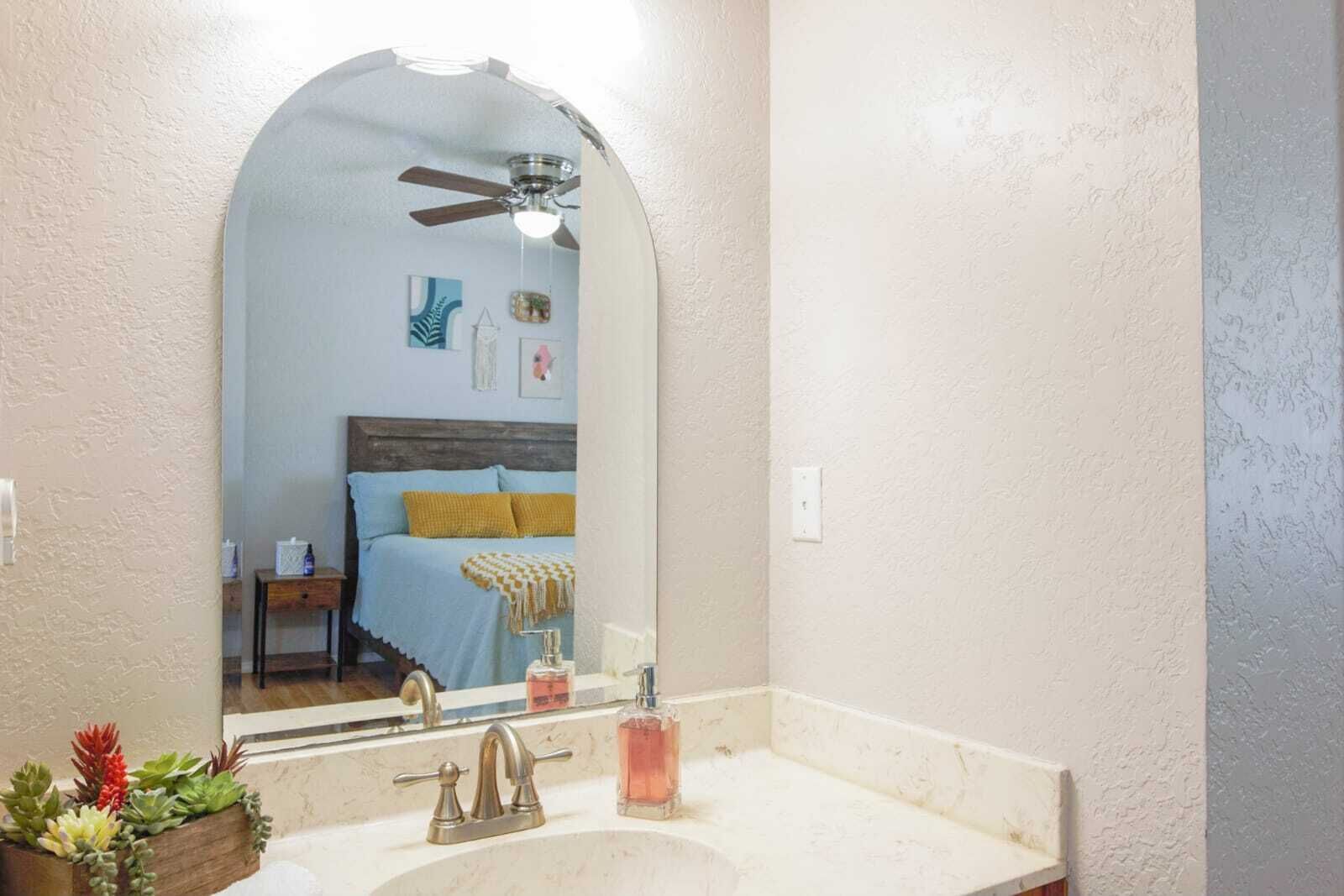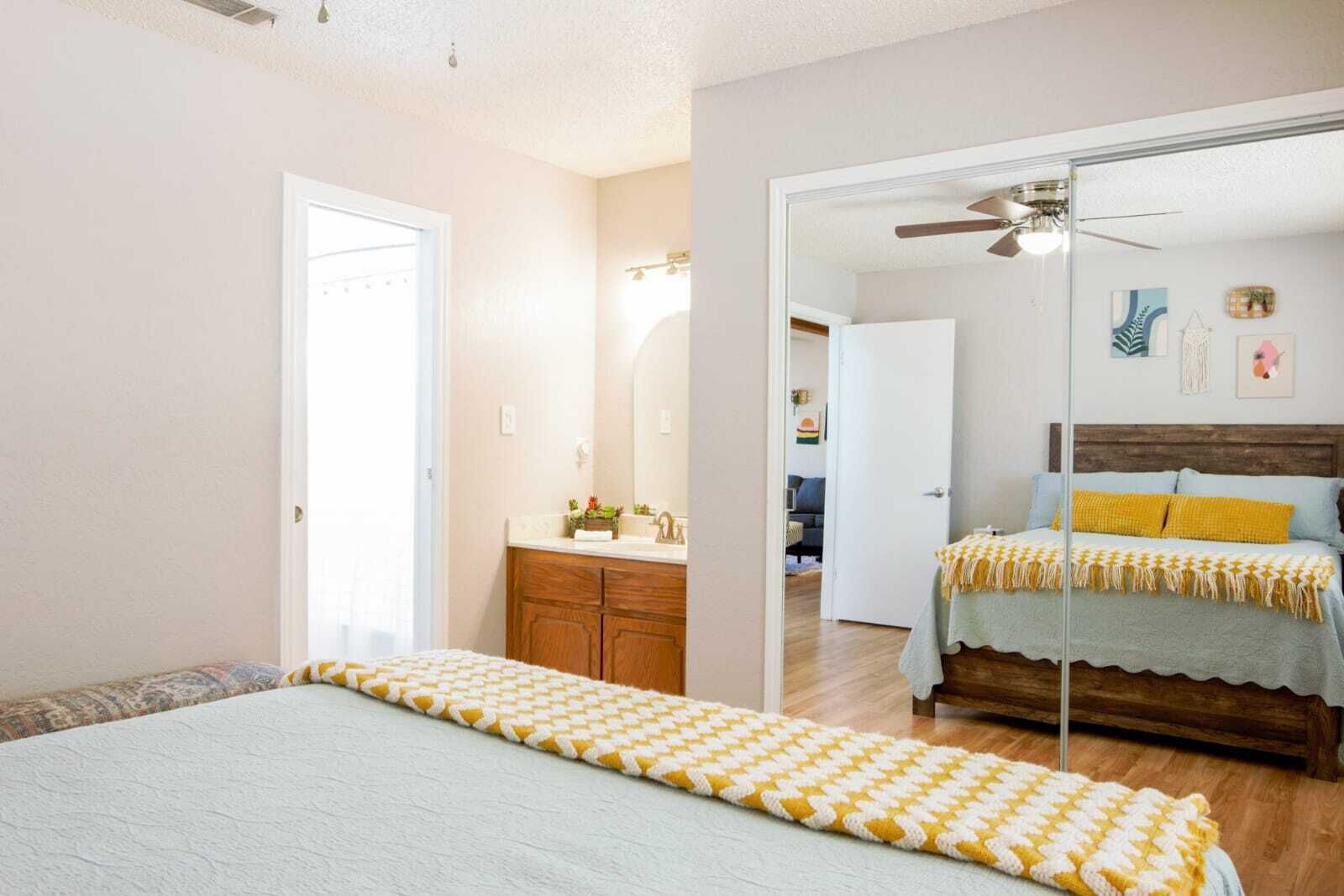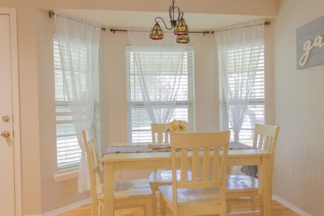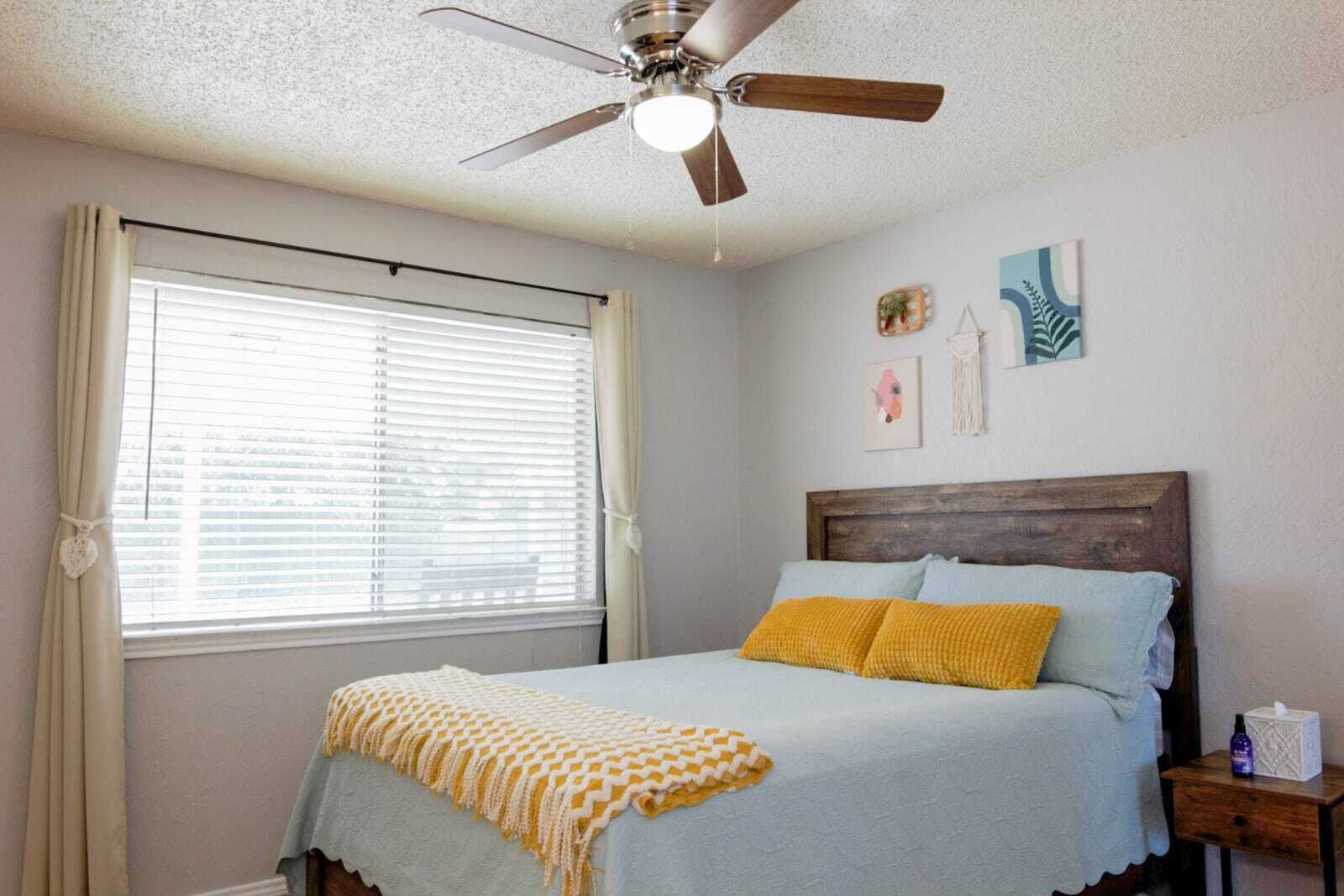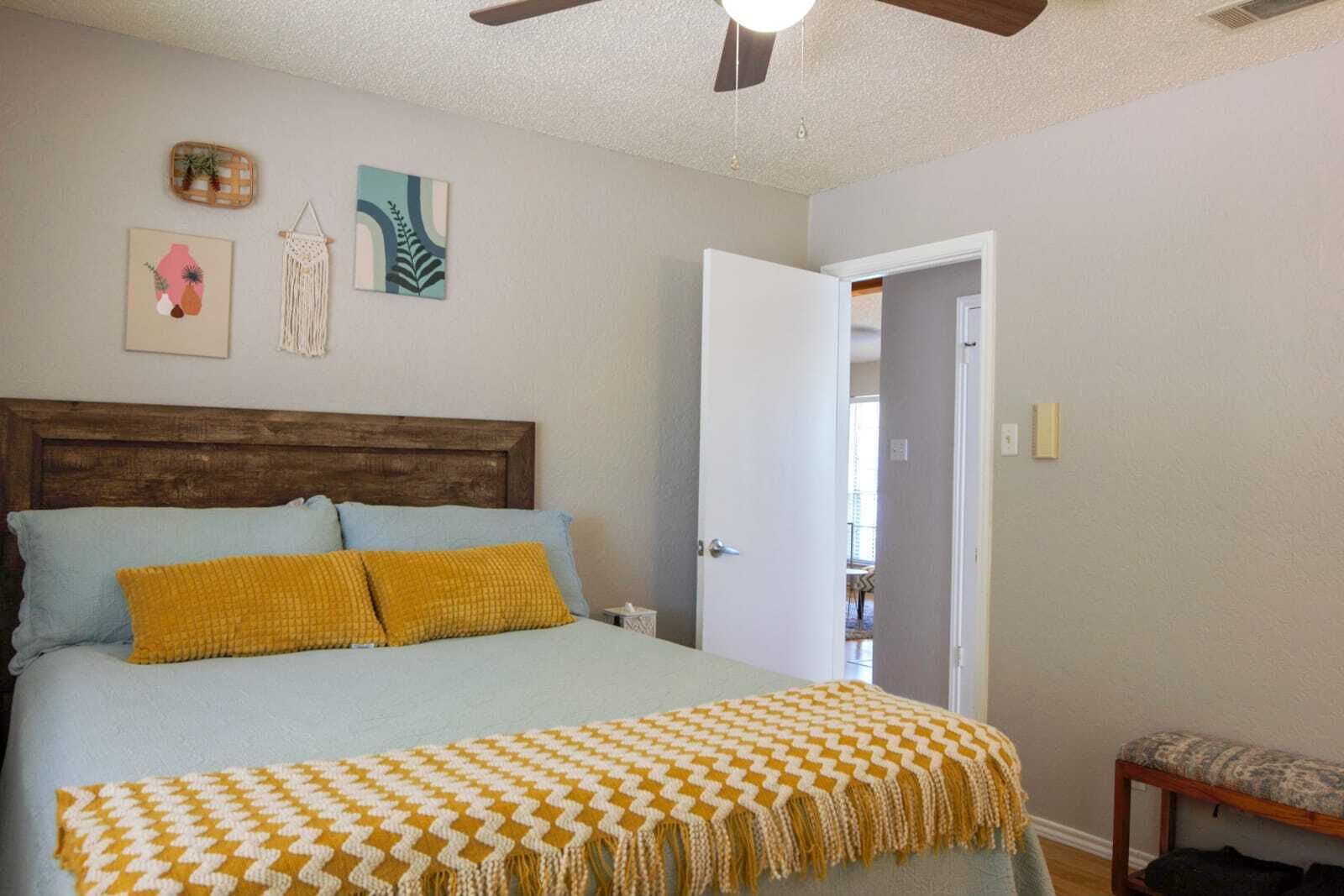 Unplug at our family-friendly home with a spacious yard close to Fort Cavazos! Welcome to our bright & cozy boho chic 2 bedroom home where you can unplug from the worries of life. You'll love the abundant sunlight that fills every room, creating a warm & inviting atmosphere.Whether you're visiting Fort Cavazos, formerly known as Fort Hood or the nearby campuses of Central Texas College or Texas A&M, or just looking to explore the local area, our home is in a great location. We're just a short drive from restaurants, shops, other attractions and the Killeen Airport.The master bedroom features a French vanity that connects to the bathroom through a convenient pocket door. The bathroom features a bathtub shower combo and we provide toiletries, as well as linens, to make your stay as comfortable as possible. The fully equipped kitchen includes all the essentials for cooking and dining, such as a stove, oven, refrigerator, microwave, coffee maker, and utensils. We also provide complimentary tea and coffee.Our home does not have a television. We made a conscious decision to create an environment where you can truly unplug from the distractions of daily life, relax, and fully immerse yourself in the peaceful atmosphere we have curated. We understand that this may be different from what you are accustomed to, but we believe it is a wonderful opportunity to disconnect from screens and embrace the tranquility of our surroundings. We encourage you to take this time to unwind, engage in meaningful conversations, enjoy the company of your loved ones, and immerse yourself in the unique ambiance of our home. We want your stay to be as comfortable and entertaining as possible, which is why we provide WiFi, board games, and a selection of books and reading materials. Whether you want to stay connected to work or catch up on your favorite book, we've got you covered. Our home offers a peaceful and comfortable retreat for your stay, with a huge fenced backyard that's perfect for kids to play or for you to enjoy your morning coffee or sweet tea in the afternoon. The central AC and heat, along with the ceiling fans in each room, will ensure that you're comfortable no matter the season. Plus, the private entrance provides added security and privacy during your stay. So, you can relax and enjoy your time in our home without any interruptions.We understand that laundry is a necessity, even while on vacation. That's why we provide a washer and dryer for your convenience. We are committed to providing a clean and safe environment for our guests. That's why we take extra care to ensure that our home is thoroughly cleaned and sanitized before each guest's arrival. Our cleaning process involves using high-quality cleaning products to sanitize all surfaces, including frequently touched areas such as doorknobs & light switches. We also wash all linens and towels with hot water and detergent to ensure they are fresh and clean. Rest assured that we take the cleanliness of our home seriously, and we are committed to providing a comfortable and safe experience for our guests.We take pride in providing a relaxing and enjoyable stay for our guests, and we can't wait to welcome you to our retreat.
