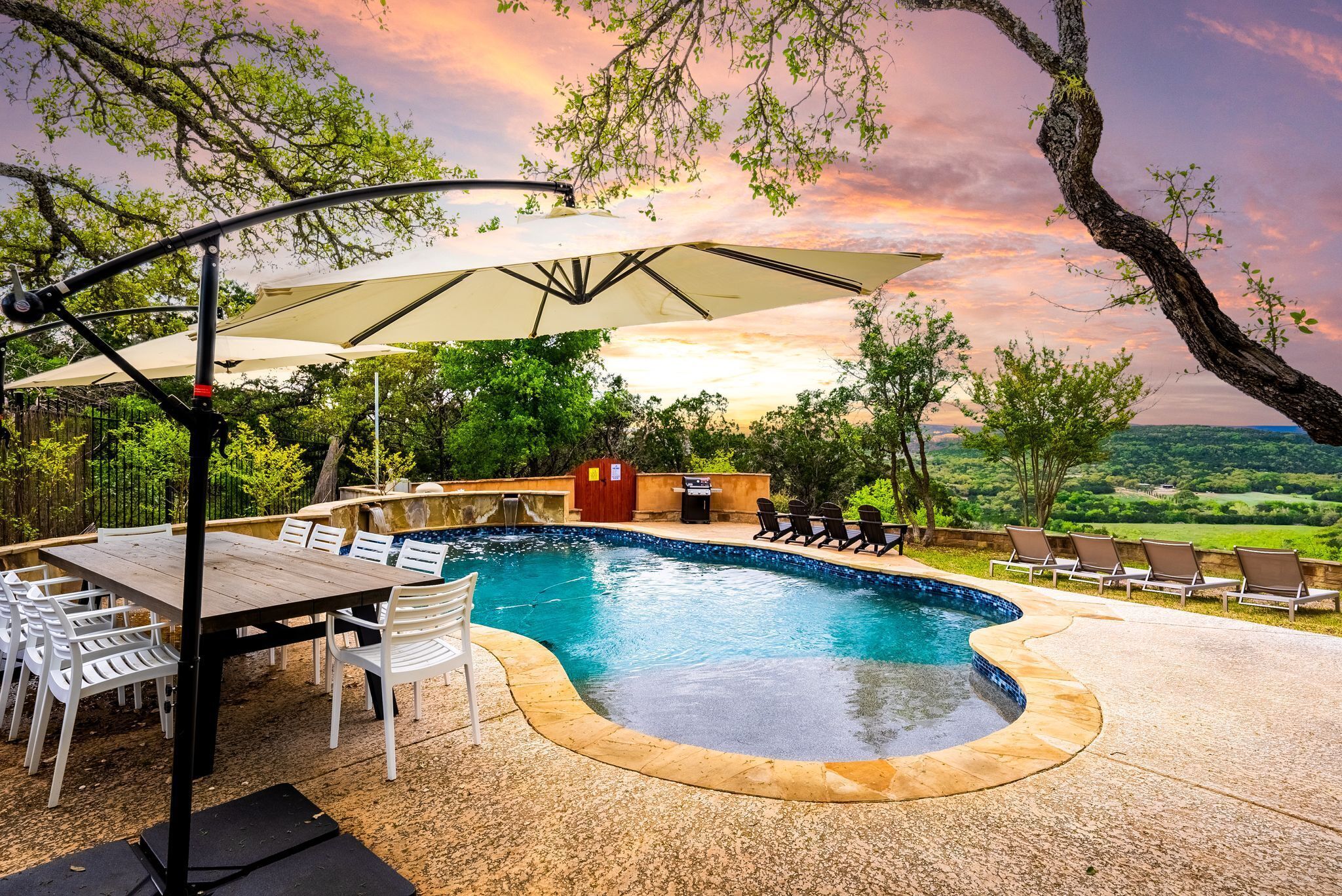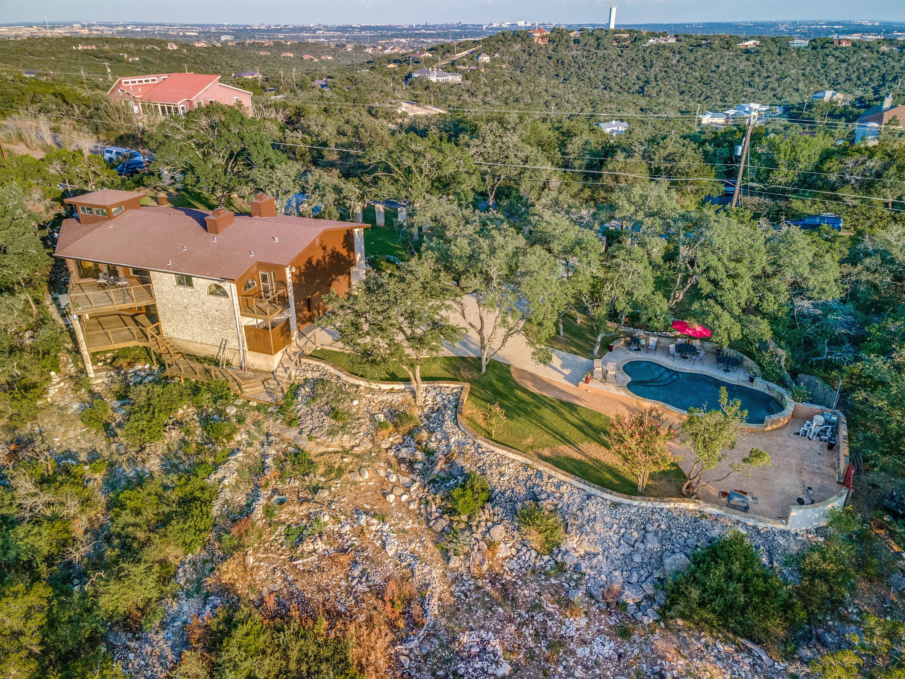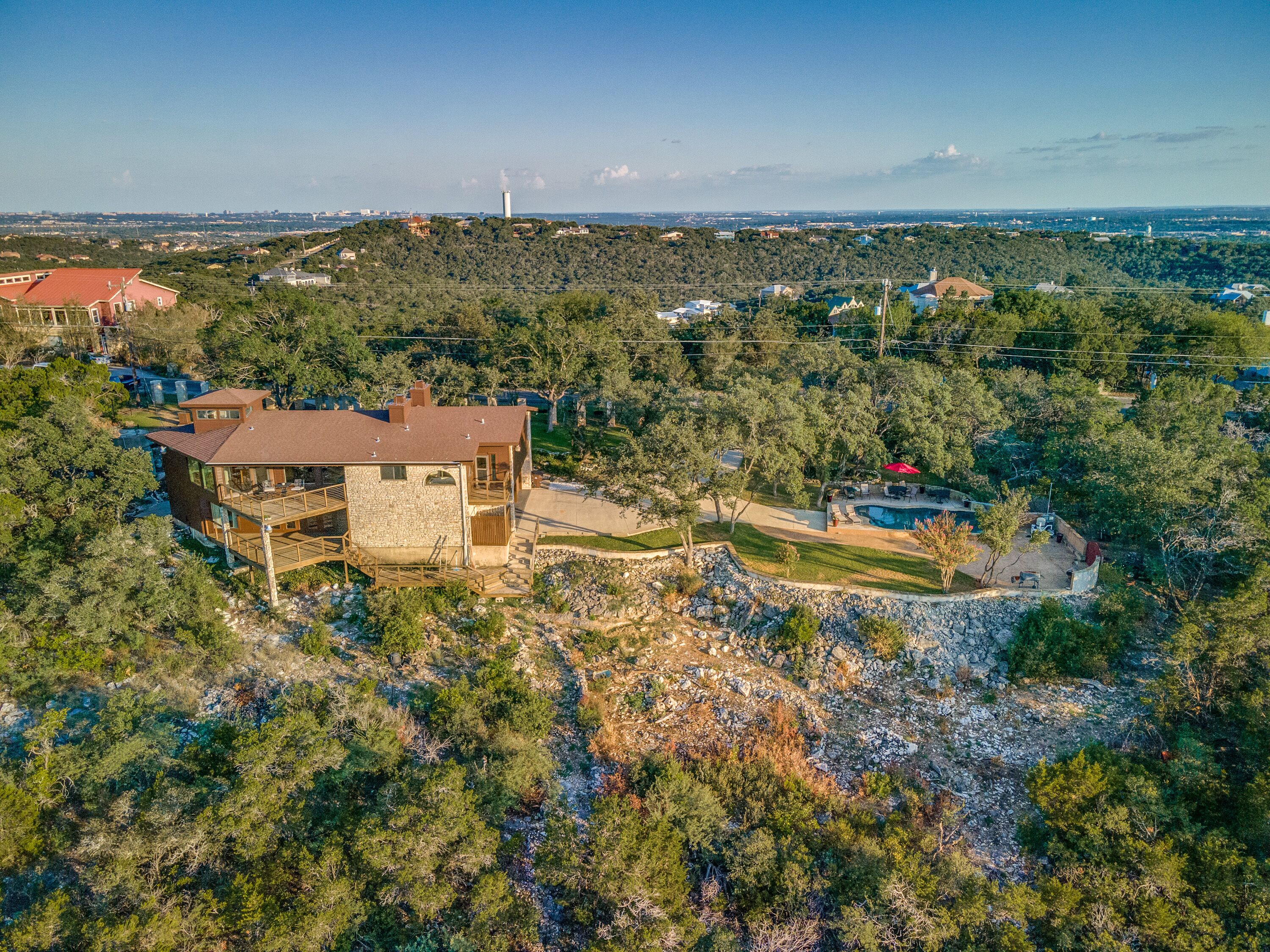 The Hilltop Grand Oasis Welcome to your dream retreat nestled in the heart of tranquility, where every sunset paints a masterpiece across the sky and every dawn welcomes you to a world of serenity. This exquisite estate boasts not only luxurious living spaces but also unparalleled amenities, including a refreshing pool, an entertaining game room, and a captivating view tower offering breathtaking vistas for miles around. With ample space to accommodate up to 12 guests, this is the perfect destination for your next unforgettable getaway.