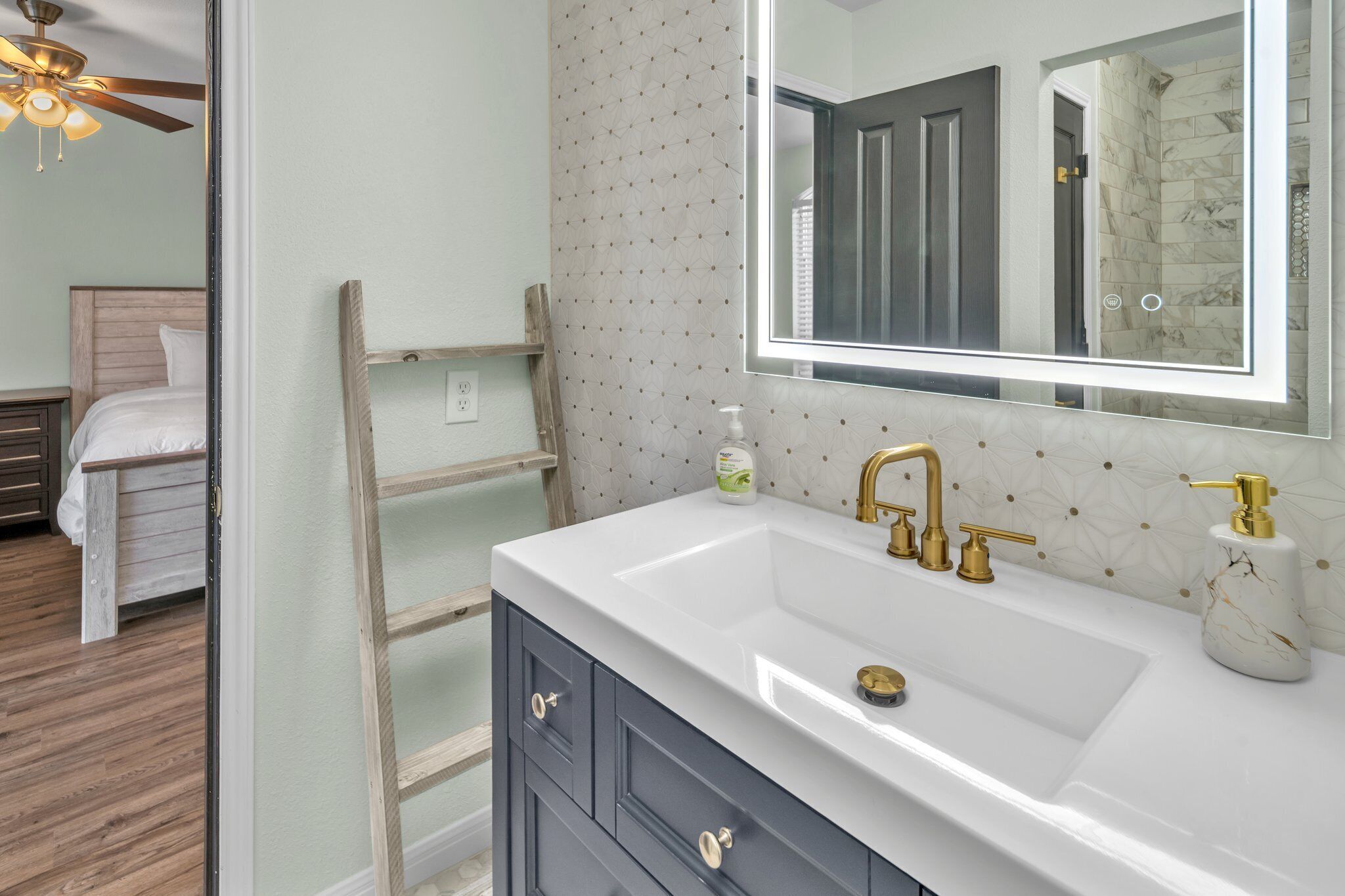 Less than 19miles to downtown Riverwalk, The Alamo and San Fernando Cathedral. Planning a visit to Military City USA? Look no further!We extend a warm welcome to you at our newly renovated home, meticulously designed for families and perfect for creating unforgettable memories and hosting intimate gatherings.Nestled in a tranquil residential neighborhood, our location offers a peaceful retreat just 18.4 miles from downtown SATX. From the iconic Riverwalk, and the historic Alamo, to the breathtaking San Fernando Cathedral, the heart of San Antonio is within easy reach.Situated amidst a vibrant tapestry of renowned restaurants, bustling malls, charming bistros, and lively bars, our property offers a unique blend of excitement and tranquility. For the thrill-seekers, adventure awaits with attractions like Six Flags and Sea World just moments away. Additionally, our proximity to four military bases adds a distinct sense of connection and honor to your stay.This spacious haven accommodates up to 10 guests across four bedrooms and 3.5 baths, with an additional sleeper sofa in the upstairs family room for added convenience.Step into our newly designed open kitchen, a true masterpiece for food enthusiasts. The space is adorned with top-tier GE Monogram Professional Series appliances, ensuring a seamless cooking experience. The stunning quartz countertop not only provides ample workspace but also offers seating for four on elegant rattan cafe stools, creating a perfect spot for casual dining or socializing.The design is elevated with exquisite rattan pendant lights, casting a warm and inviting glow over the culinary hub. This thoughtful touch complements the overall aesthetic, adding a touch of sophistication to your dining experience.Essentials for meal preparation are at your fingertips, whether you choose the 33" workstation sink with a custom brass faucet—a delightful blend of style and functionality—or opt for the convenience of the Samsung dishwasher, allowing you to focus on creating delightful dishes without the hassle of manual cleanup.Awaken your senses at our thoughtfully arranged coffee station and savor morning meals in the adjacent breakfast nook. The spacious formal dining room is perfect for hosting guests comfortably.The expansive living room, furnished with ample seating, a treasure trove of board and card games tucked away in the center table and a 65” Samsung Smart TV, invites you to relax and indulge in cinematic experiences. A well-designed half bathroom adjacent to the living room features a striking sink vessel and brass faucet.On the first floor, the Master Suite offers unparalleled luxury with a king-size bed, custom-embroidered pillowcases, and a 55” Samsung Smart TV. The en suite bathroom boasts a spacious walk-in shower with a custom brass shower system and a freestanding tub with a breathtaking antique brass faucet.The master bathroom continues the theme of elegance with his and her custom-ordered large basin sinks, each adorned with stunning antique brass faucets, nestled within a sprawling custom-made rustic vanity. The walk-in closet provides ample storage for a seamless blend of style and functionality.Ascend the stairs to the second floor, where an inviting open family room awaits. Enjoy movie nights or game sessions on the 55” Samsung Smart TV paired with a 2.1 Samsung sound bar and subwoofer, delivering an immersive cinematic experience.The three bedrooms on the second-floor offer comfort and convenience, with two rooms featuring queen-size beds and spacious walk-in closets. A third bedroom, ideal for younger guests or accommodating adults, includes two full beds and its own walk-in closet. Bedrooms #3 and #4 are connected by a Jack & Jill bathroom, providing both practicality and privacy.Your comfort and enjoyment are our top priorities, and we eagerly await the opportunity to host you for a remarkable stay filled with relaxation, luxury, and cherished moments in our inviting sanctuary.*******************************************************Also, notice the following penalties:$500 penalty for unauthorized pets$150 penalty for additional unauthorized guest$100 - $250 penalty for extra cleaning needed if the property is not left in proper condition$500 penalty for smoking inside the house or game roomNo parties or events are allowed under any circumstances. No music or loud noise is allowed outside after 10 pm. Quiet hours are enforced from 10 pm to 7 am.