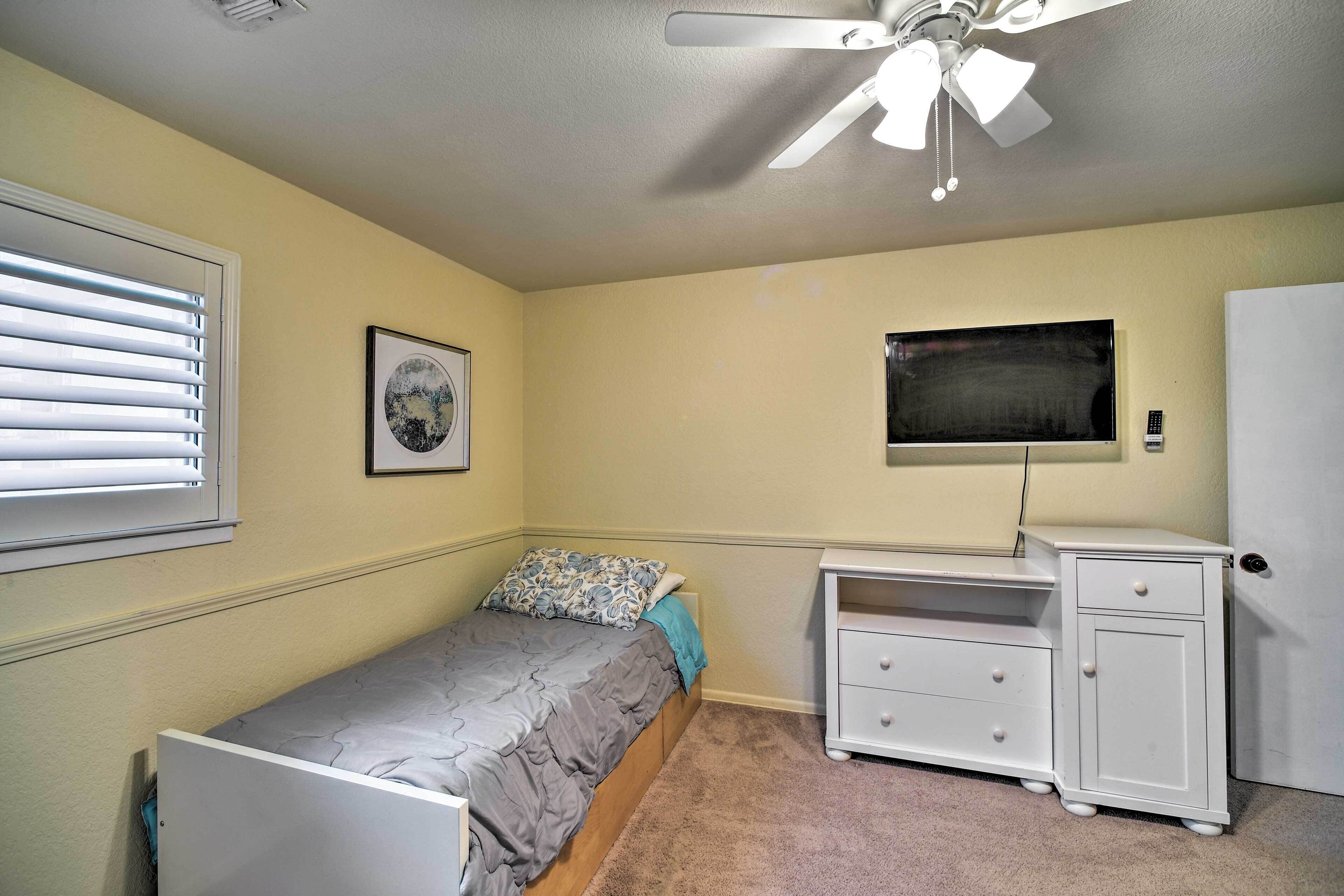 Relaxing Helotes Apt: 7 Mi to UT at San Antonio! Tucked away in the small town of Helotes sits this 2-bedroom, 1-bath vacation rental, conveniently located near San Antonio! Spend your day exploring San Antonio’s River Walk, The Alamo, and La Villita Historic Arts District or opt for a relaxing activity in the sun by hitting the links at Oak Valley Golf Course. With a furnished patio, laptop-friendly desk space, laundry units, and a well-equipped kitchen, you’re sure to feel right at home during your stay in The Lone Star State!-- THE PROPERTY --In-Unit Laundry | Long-Term Renters Welcome | Free WiFi Whether you’re in town for a short visit or long-term stay, this apartment offers all the basics in an ideally located, tranquil town - perfect for students, couples, or a small family.Bedroom 1: Queen Bed | Bedroom 2: 2 Twin Beds, Twin Trundle Bed | Additional Sleeping: Sleeper SofaOUTDOOR LIVING: Covered patio w/ seating, electric grillKITCHEN: Well-equipped (no stove), drip coffee maker, toaster, toaster oven, microwave, cooking basicsINDOOR LIVING: 2 Smart TVs, dining table, desk space, ceiling fansGENERAL: Washer & dryer, towels, linens, complimentary toiletries, air conditioning, central heatingPARKING: Driveway (3 vehicles)* The homeowner lives on-site, in a completely separate unit, and may be present during your stay *-- THE LOCATION --FAMILY AMUSEMENTS: The Shops at La Cantera (7.9 miles), San Antonio Aquarium (9.1 miles), Six Flags Fiesta Texas (10.1 miles), SeaWorld San Antonio (12.5 miles), Aquatica San Antonio (12.5 miles), San Antonio Zoo (21.7 miles)GOLF COURSES: Oak Valley Golf Course (5.9 miles), Resort Course at La Cantera (8.9 miles), Cedar Creek Golf Course (9.2 miles), Palmer Course at La Cantera (9.6 miles), SilverHorn Golf Club (16.0 miles), Olmos Basin Golf Course (21.3 miles)OUTDOOR RECREATION: O.P. Schnabel Park (5.8 miles), Government Canyon State Natural Area (8.8 miles), Friedrich Wilderness Park (9.8 miles), Denman Estate Park (15.3 miles)DOWNTOWN SAN ANTONIO (23.6 miles): The Alamo, San Antonio River Walk, San Antonio Botanical Garden, Brackenridge Park, Hemisfair, La Villita Historic Arts District, San Antonio Missions National Historical ParkUNIVERSITIES: The University of Texas at San Antonio (7.0 miles), Northwest Vista College (10.5 miles), San Antonio College (21.1 miles)AIRPORT: San Antonio International Airport (20.7 miles)-- REST EASY WITH US --Evolve makes it easy to find and book properties you'll never want to leave. You can relax knowing that our properties will always be ready for you and that we'll answer the phone 24/7. Even better, if anything is off about your stay, we'll make it right. You can count on our homes and our people to make you feel welcome — because we know what vacation means to you.-- POLICIES --- No smoking - No pets allowed- No events, parties or large gatherings- Must be at least 25 years old to book- Additional fees and taxes may apply- Photo ID may be required upon check-in- NOTE: Your safety matters. This property features exterior security cameras by the entrance of the apartment and driveway facing out. They do not look into any interior spaces- NOTE: The homeowner lives on-site, in a completely separate unit, and may be present during your stay- NOTE: The property requires stairs and may be difficult for guests with limited mobility