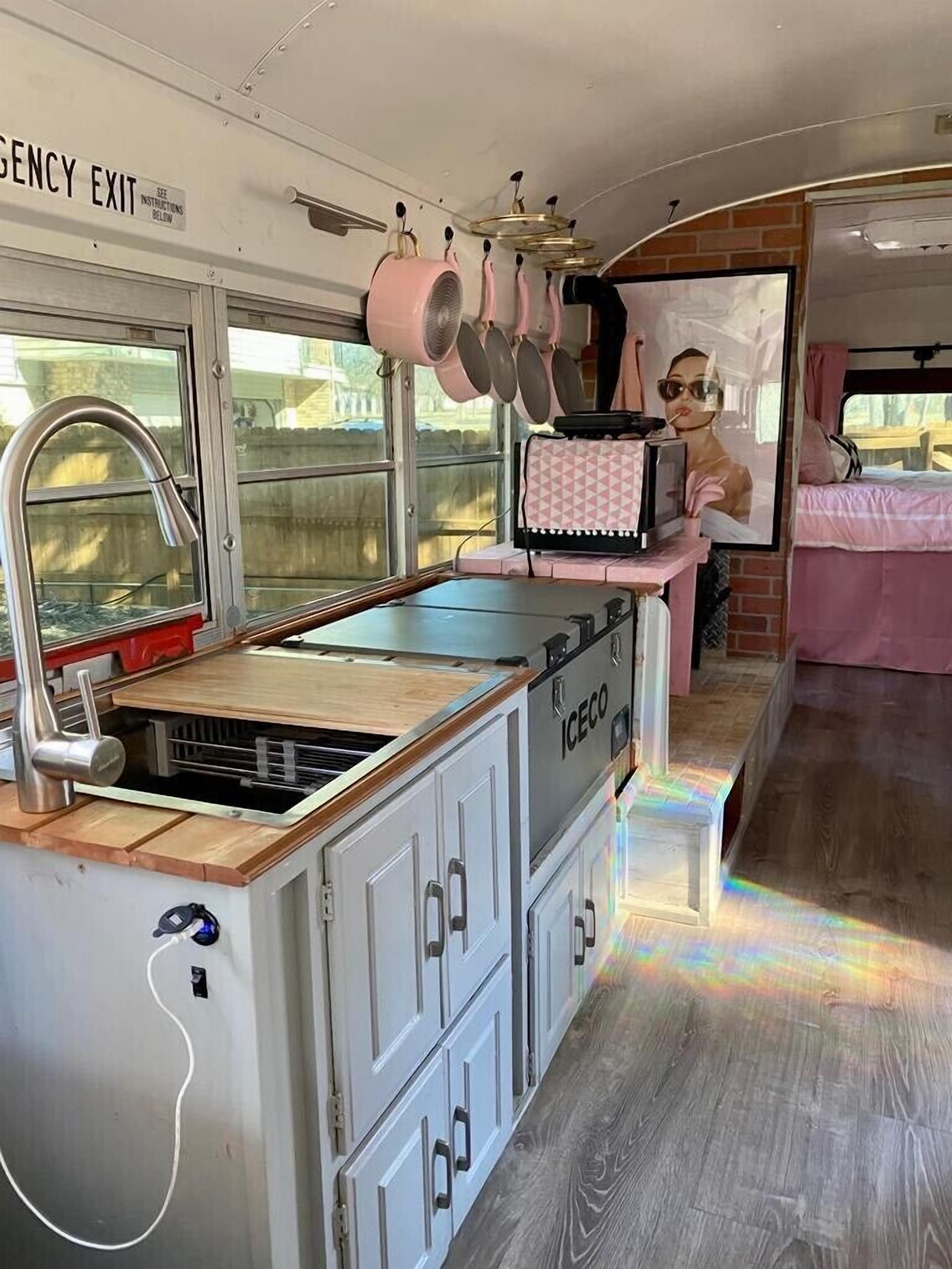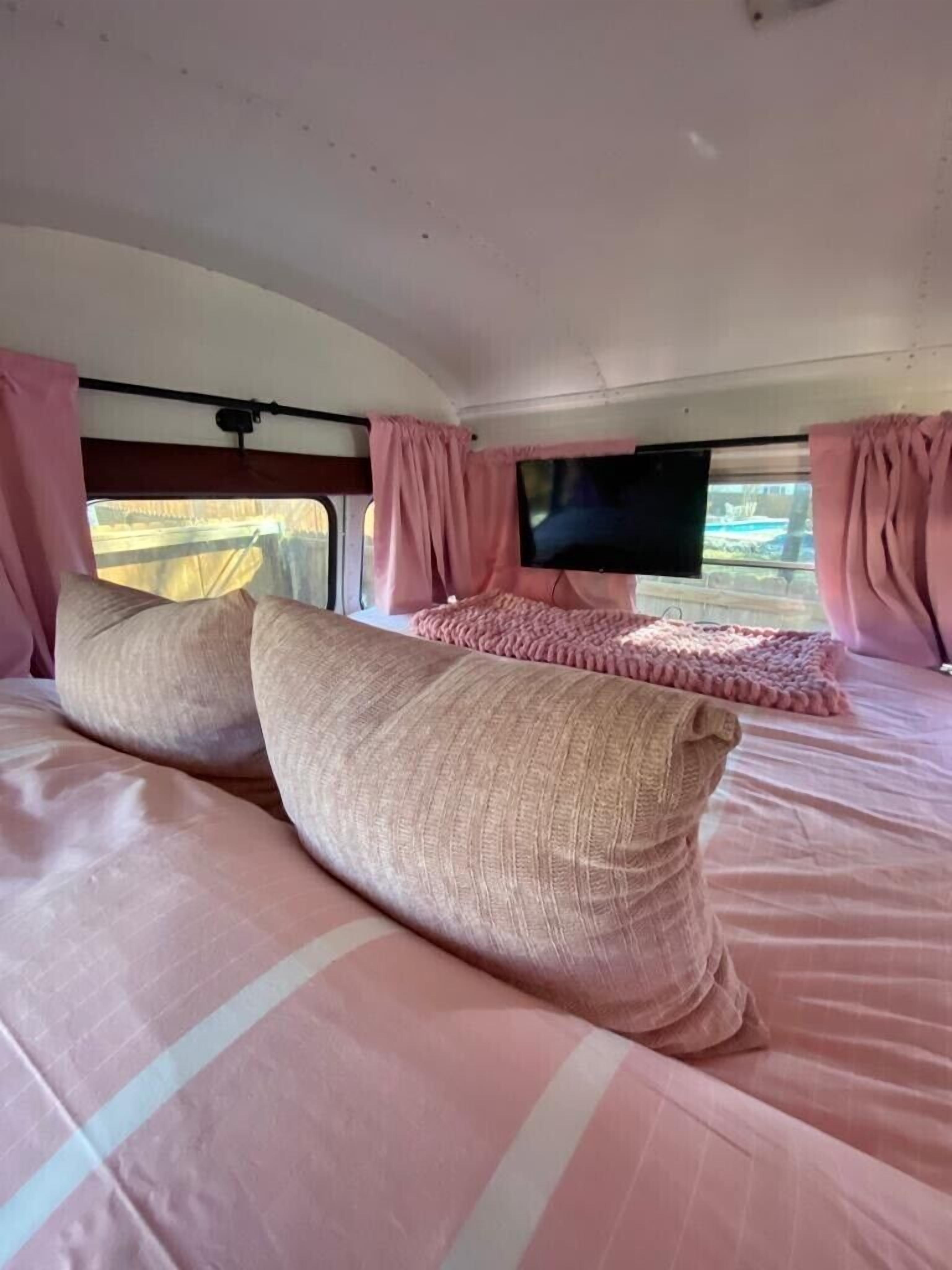 The Basic B: School Bus Tiny Home! Welcome to the Basic B! A tiny home on wheels for a fun and unique getaway!This bus comes equipped with all kinds of modern amenities like a full bath, air conditioning/heat, king size memory foam bed, Smart TV, Wifi, kitchenette, fridge/freezer, laptop workstation, and more!We have been hosts for awhile and this was our personal RV for some time and now we have...