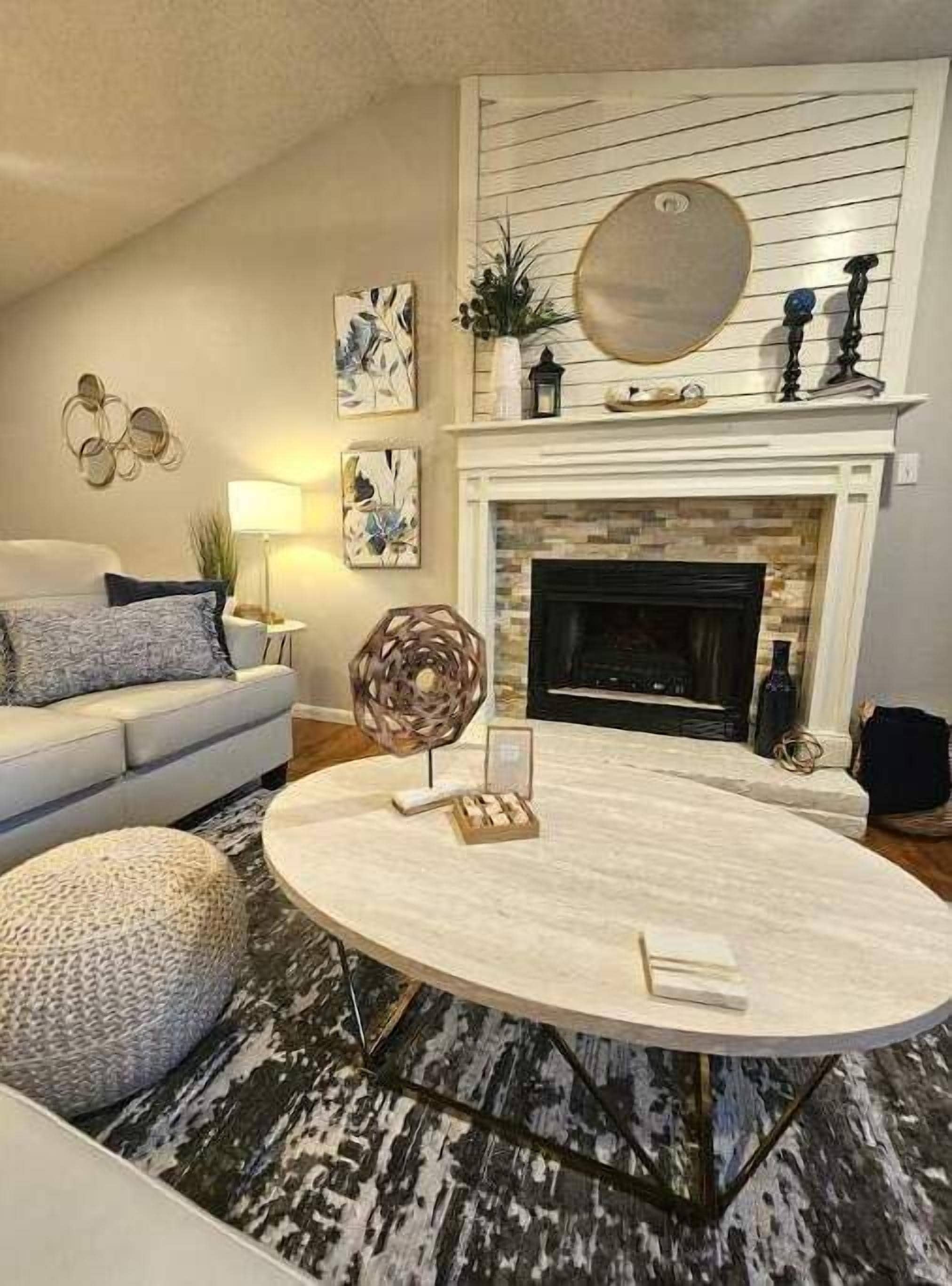 A Time to Unwind: Cozy Beautiful Elec Fireplace with King Bed About this spaceA serene haven where comfort meets style. Sink into plush King, Queen, or Full Bed with luxurious 700-thread ct European cotton sheets. TV in each room. For culinary enthusiasts, the fully stocked kitchen awaits, & coffee to start your day. Within 10 minutes of most local attractions. For those blending work & leisure, e...