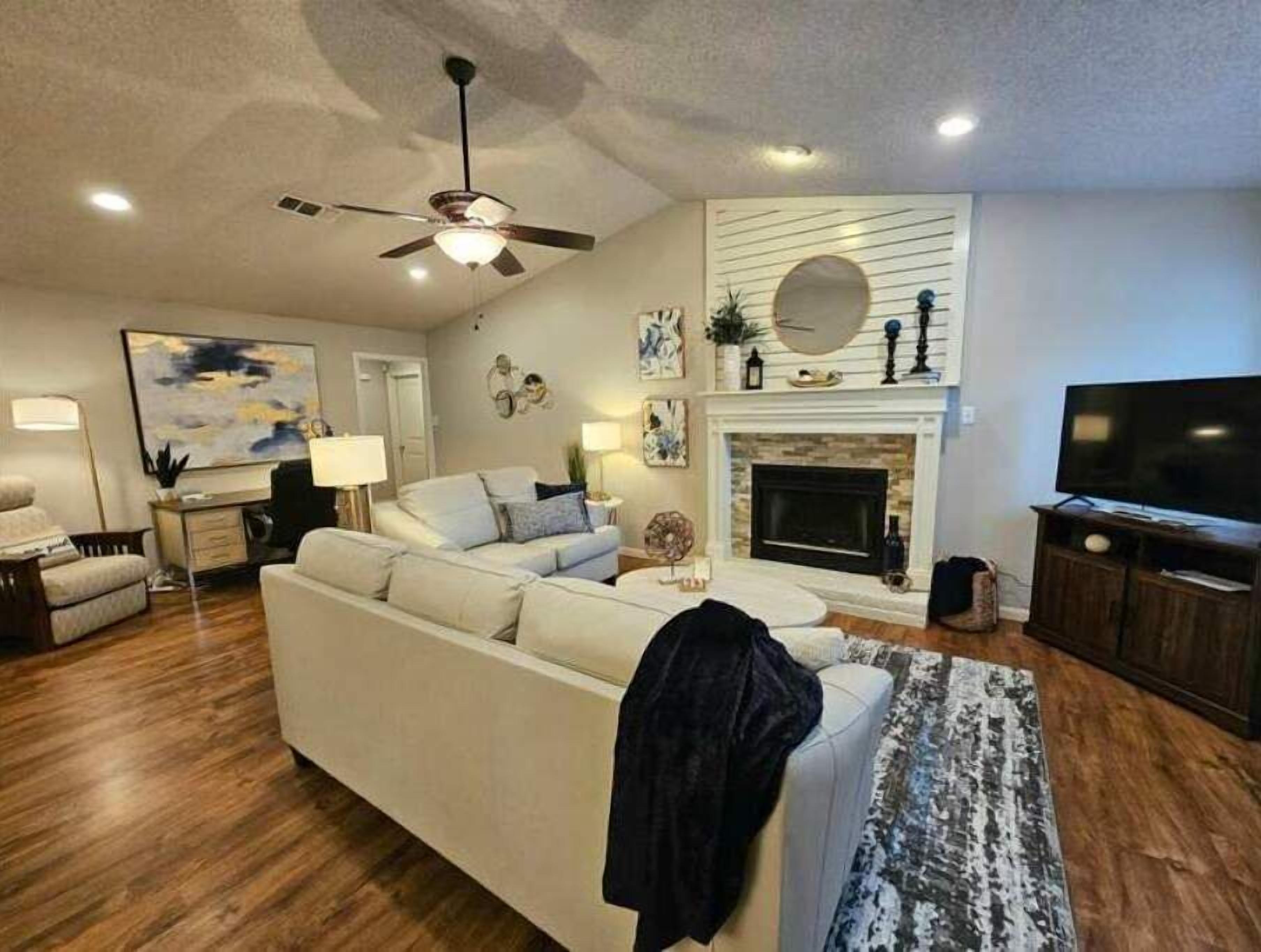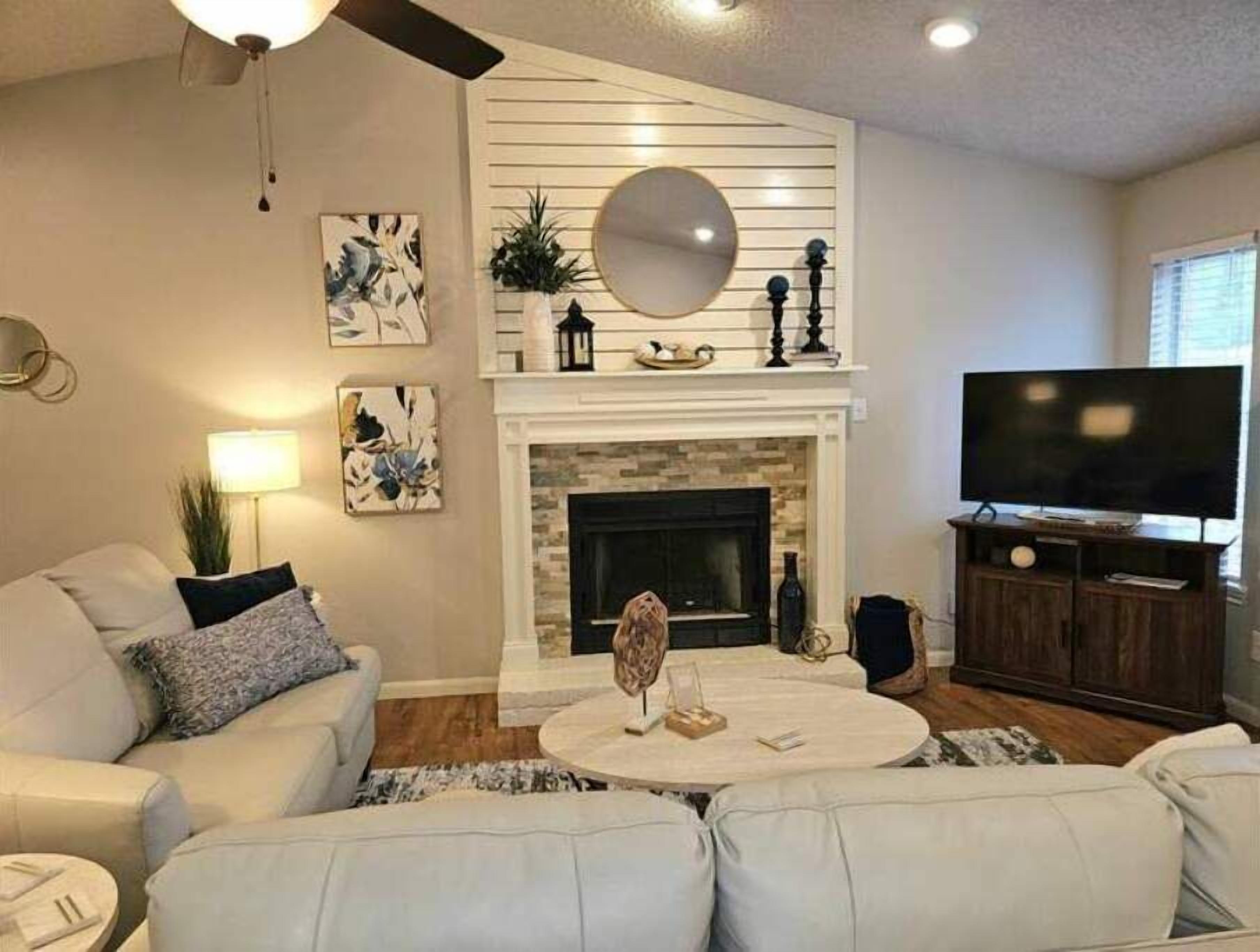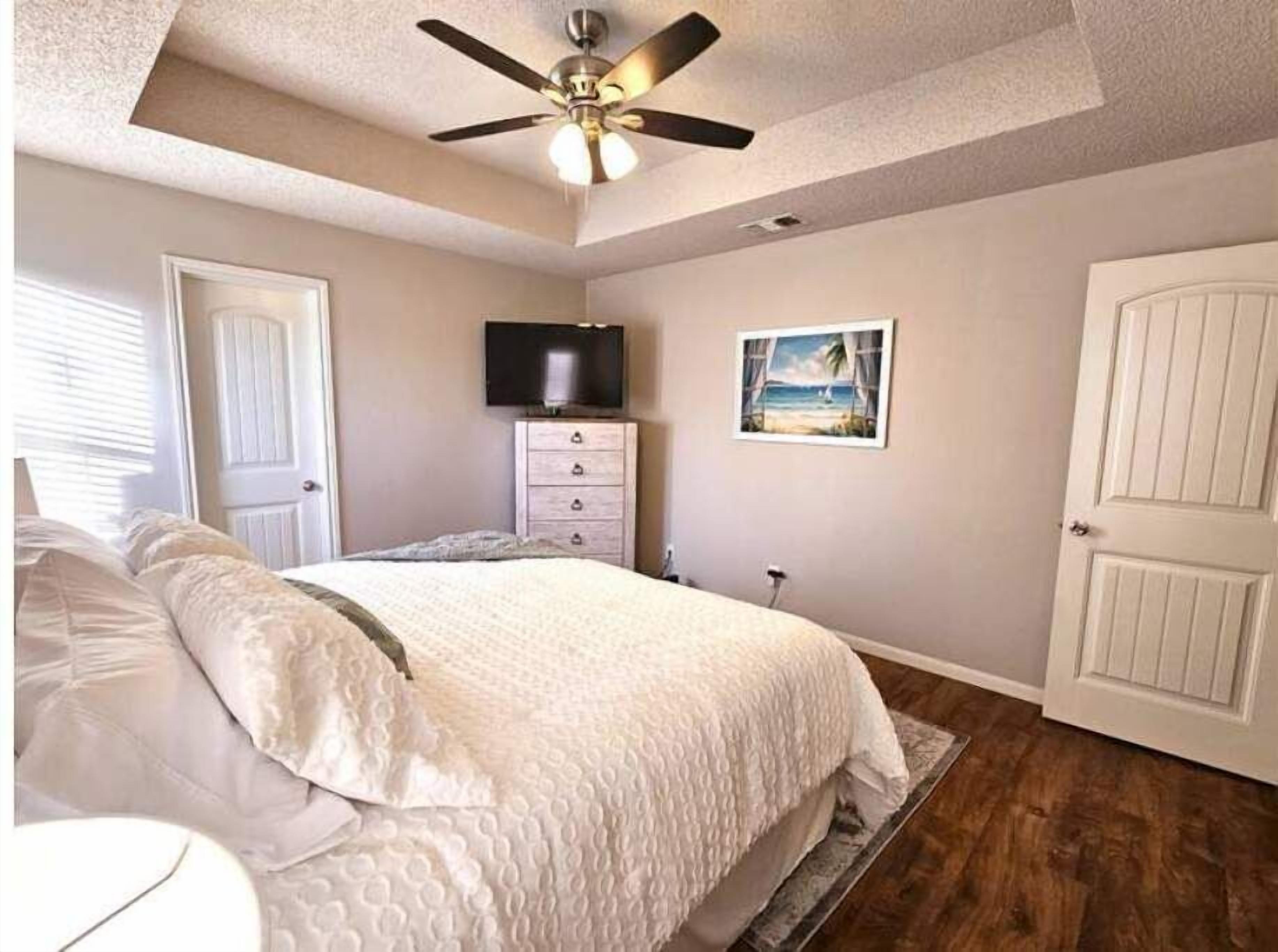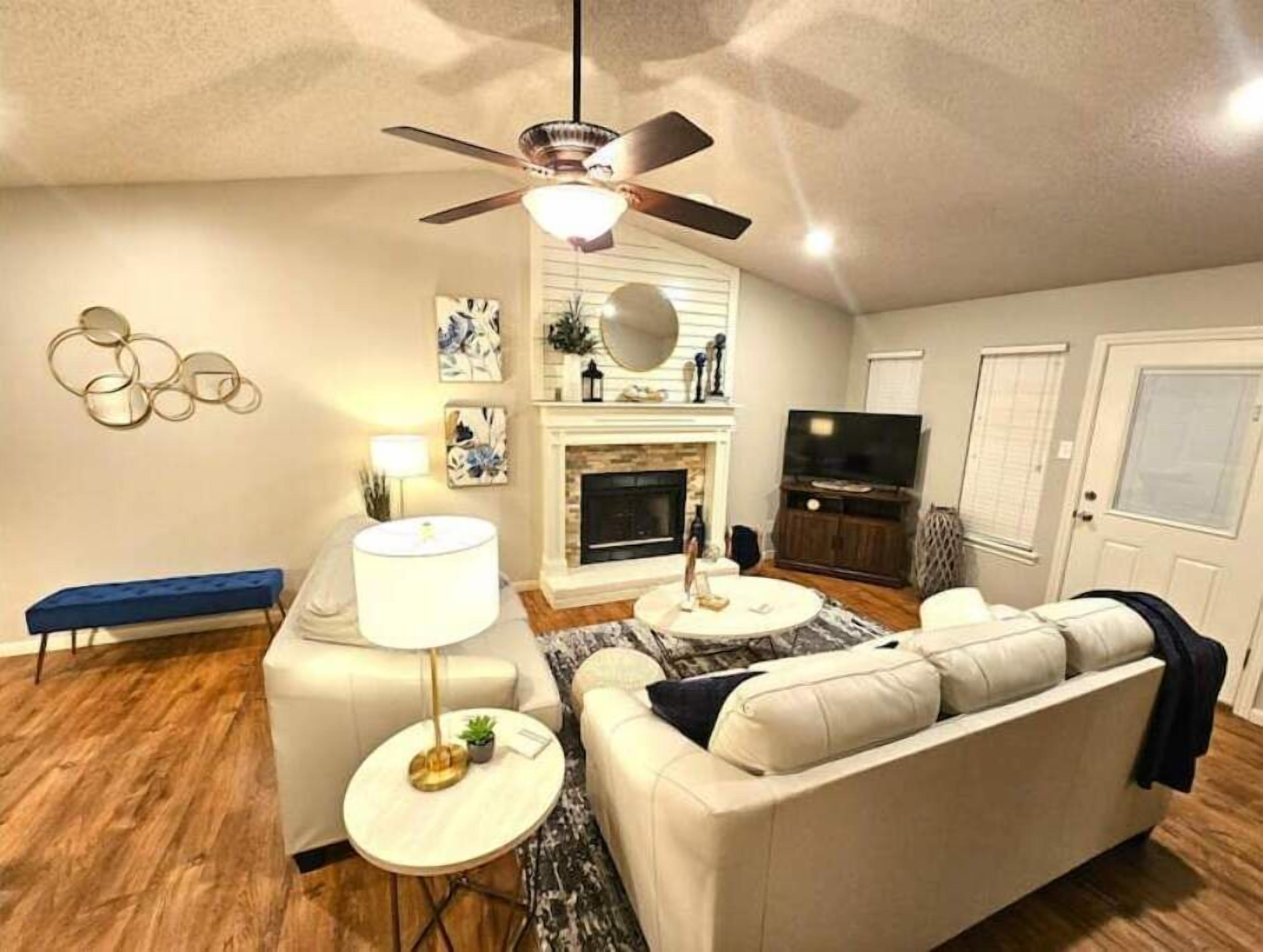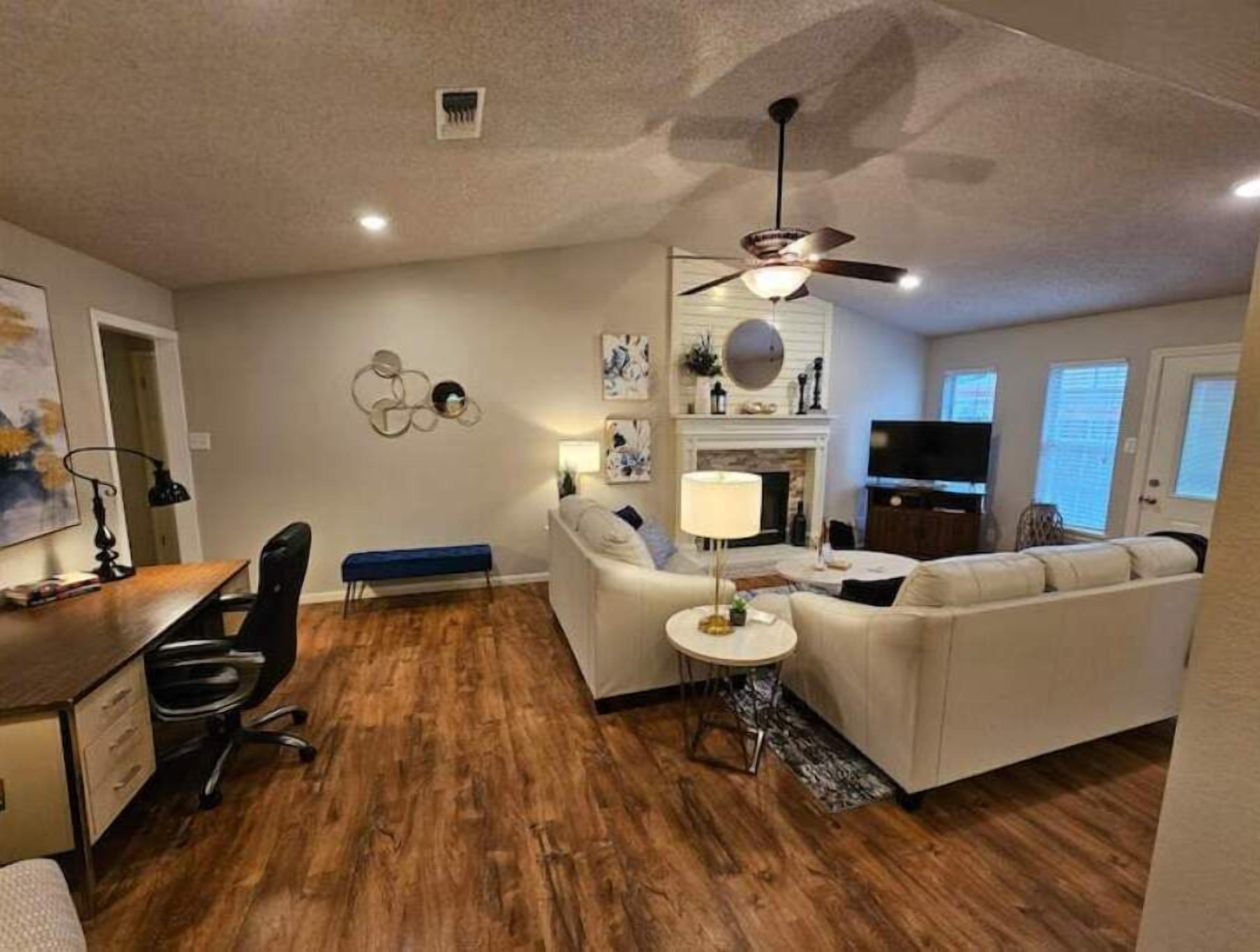 A Time to Unwind: Cozy Beautiful Elec Fireplace with King Bed About this spaceA serene haven where comfort meets style. Sink into plush King, Queen, or Full Bed with luxurious 700-thread ct European cotton sheets. TV in each room. For culinary enthusiasts, the fully stocked kitchen awaits, & coffee to start your day. Within 10 minutes of most local attractions. For those blending work & leisure, enjoy great internet speed, a dedicated desk, charging station, & a comfortable office chair. The garage provides shelter for a vehicle and doubles as a recreational space with a ping pong table. Each space has been tastefully thought out and with elements of comfort you will enjoy. The whole home is your to enjoy.
