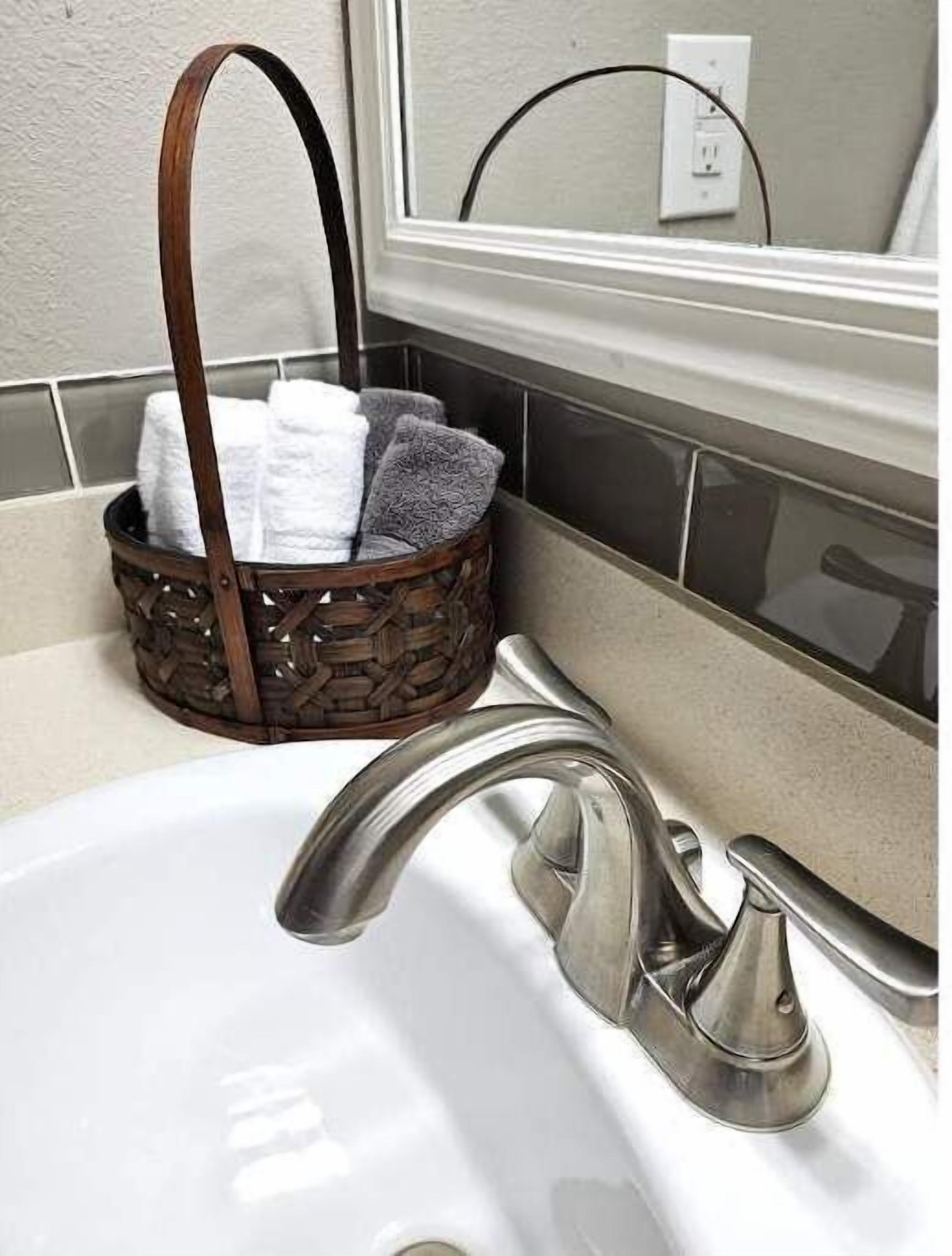 - Put the towels in the washer and start it with the soap pods in the bowl on the shelf the morning that you check out.: Put the towels in the washer and start it with the soap pods in the bowl on the shelf the morning that you check out.