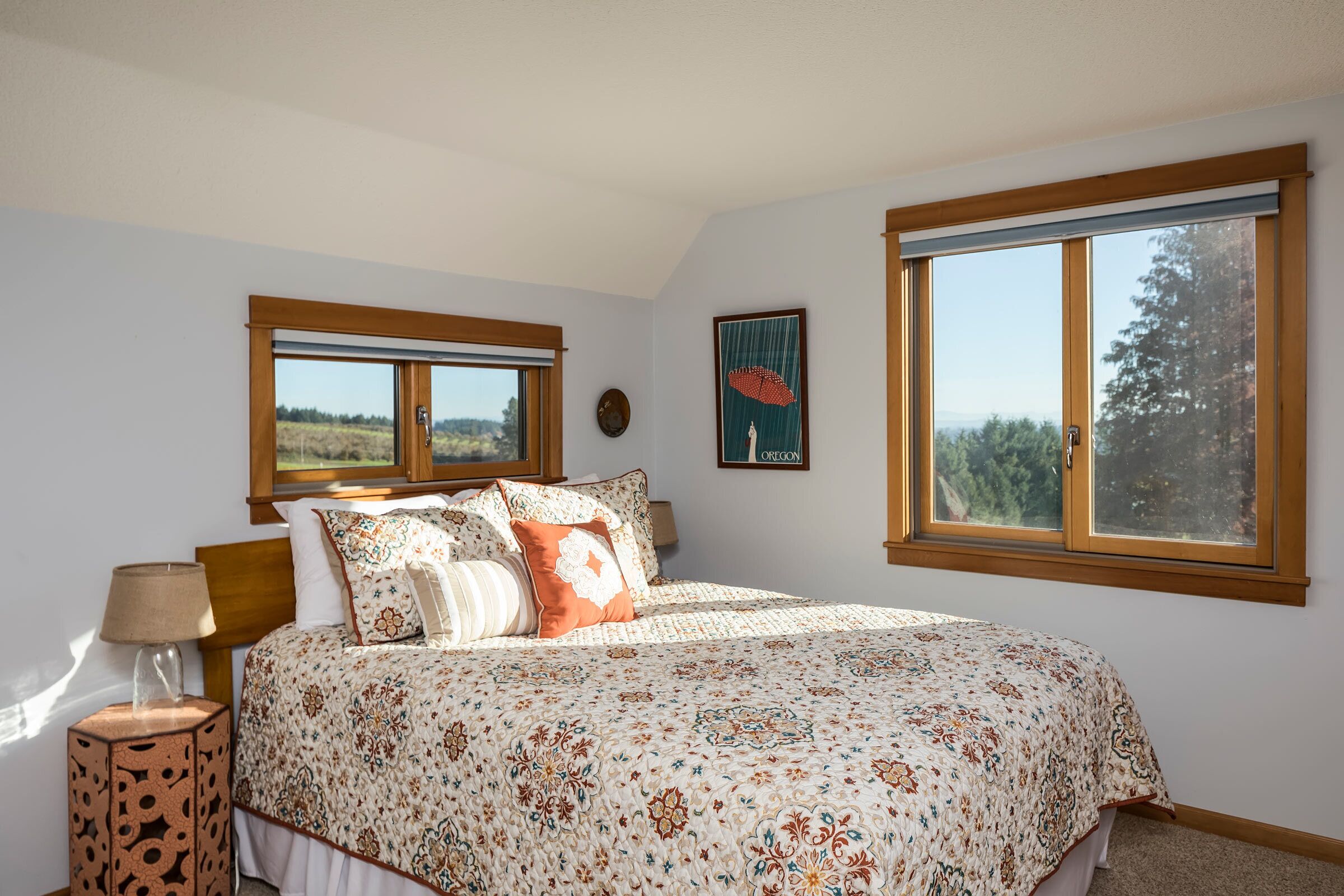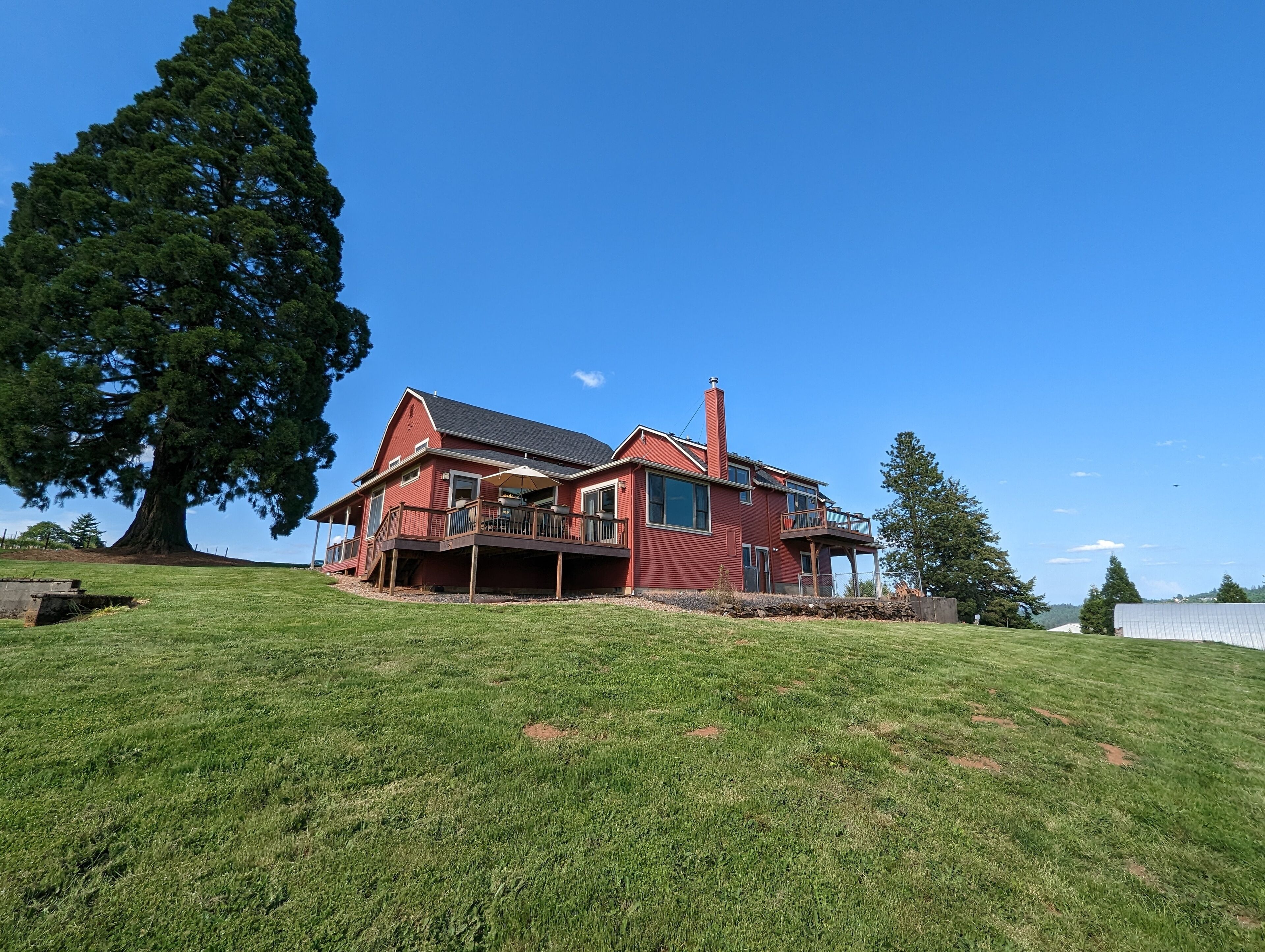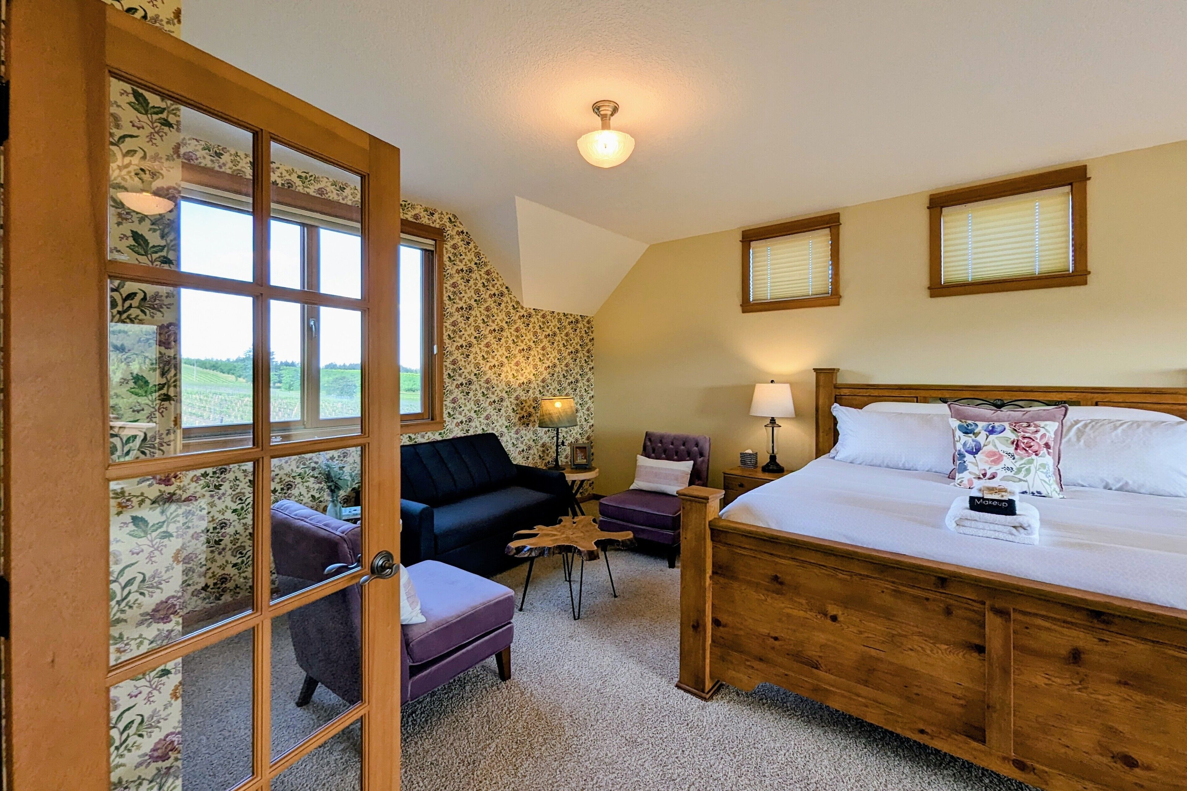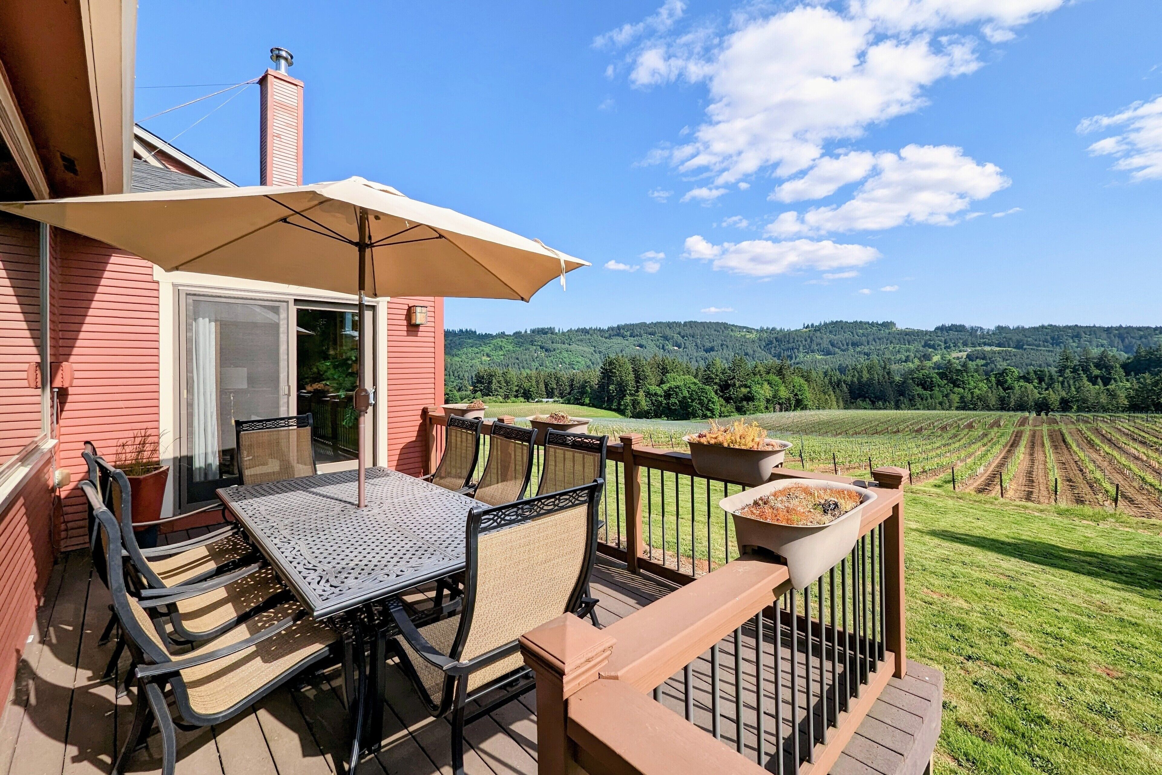 Bell Road Farmhouse - Surrounded by Chehalem Estate Vineyard! Welcome to Bell Road Farmhouse! Old-world charm meets luxury estate in Sherwood, Oregon! The lavish, 3,200-square-foot farmhouse is surrounded by the newly planted Chehalem vineyards. Bell Road Farmhouse sits on 80 sprawling acres, welcoming guests to the enchantments of wine country. This Farmhouse is the perfect place to gather with the family as it offers five bedrooms and three full bathrooms.The entryway will bring you into the mudroom/laundry room before stepping into the cheerful kitchen and dining area. The kitchen is stocked with everything you might need for cooking a delicious family meal. Enjoy it at the breakfast nook, or gather the entire group in the formal dining room, complete with a dining table that seats up to eight—perfect for a family dinner or board games. After a good meal, venture into the cozy, bright living room, grand windows, ample seating, and TV, built for time with loved ones.A spacious queen bedroom is located to the right of the kitchen by the front door. There is another dining room table farm style for game nights, or conversations and laughs!Up the stairs near the living room, you’ll find a landing where the primary suite resides. This suite offers a full bathroom with a jacuzzi soaking tub, two walk-in closets, a king-size bed, and a private balcony. This spacious room features stunning views of sprawling farmland and natural light, each room is outfitted with hotel-quality linens and plush mattresses. The steps outside the room will take you to a loft with an extra large twin-day bed with a trundle. Perfect space for children to be entertained by games, and a smart TV! Through that room, you will find two additional rooms with queen-size beds, along with a shared full bathroom complete with a large standing shower, hairdryers, shampoo, conditioner, luxurious towels, and locally crafted soap bars to help you feel at home during your stay. The staircase will wrap you back around to the front door and queen bedroom on the main level of the home.Outside, Bell Road Farmhouse continues to charm with sprawling lawns. Enjoy dinner on the patio with an outdoor dining area for up to eight and a BBQ. Take a stroll with your morning coffee down the fence line to take in views of the grassy fields. Or cozy up on the porch with a glass of wine at night to soak up the endless views of the night sky.Use our private wine tour service to experience the beauty and unique culture in Oregon’s world-renowned wine country, where every visitor walks away with lifetime memories.Additional family items (baby gate, high chair, pack 'n play, yoga mats, air mattresses, and outdoor games) are available to rent upon request.*Lifestyle Properties would like to assure you that all homes have been aerated, and deep cleaned, and commonly used surfaces have been sanitized prior to your arrival. Our team is committed to following all CDC and WHO guidelines regarding the use of PPE and Cleaning Equipment. You will also have a contactless self-check-in upon arrival.*
