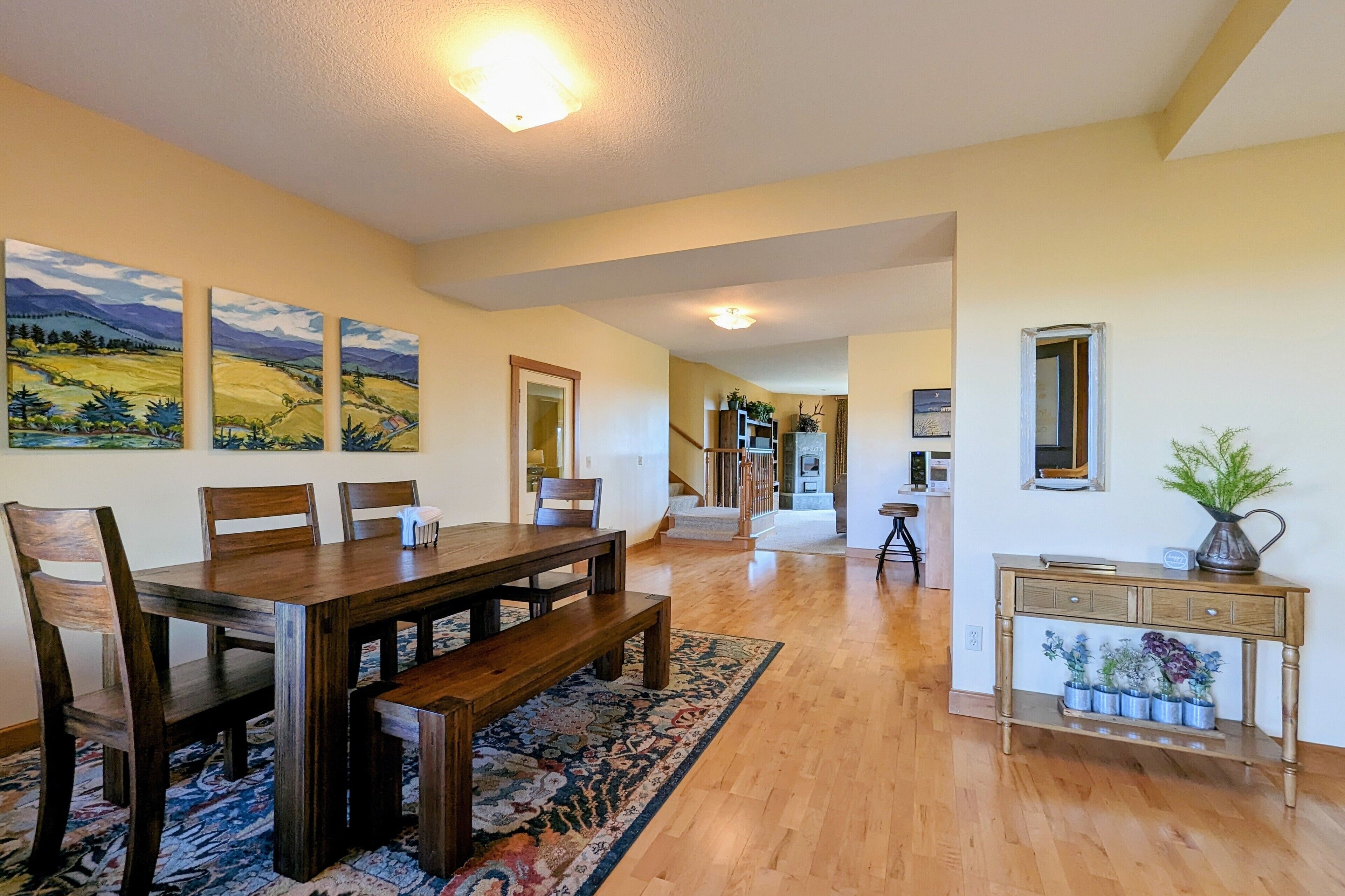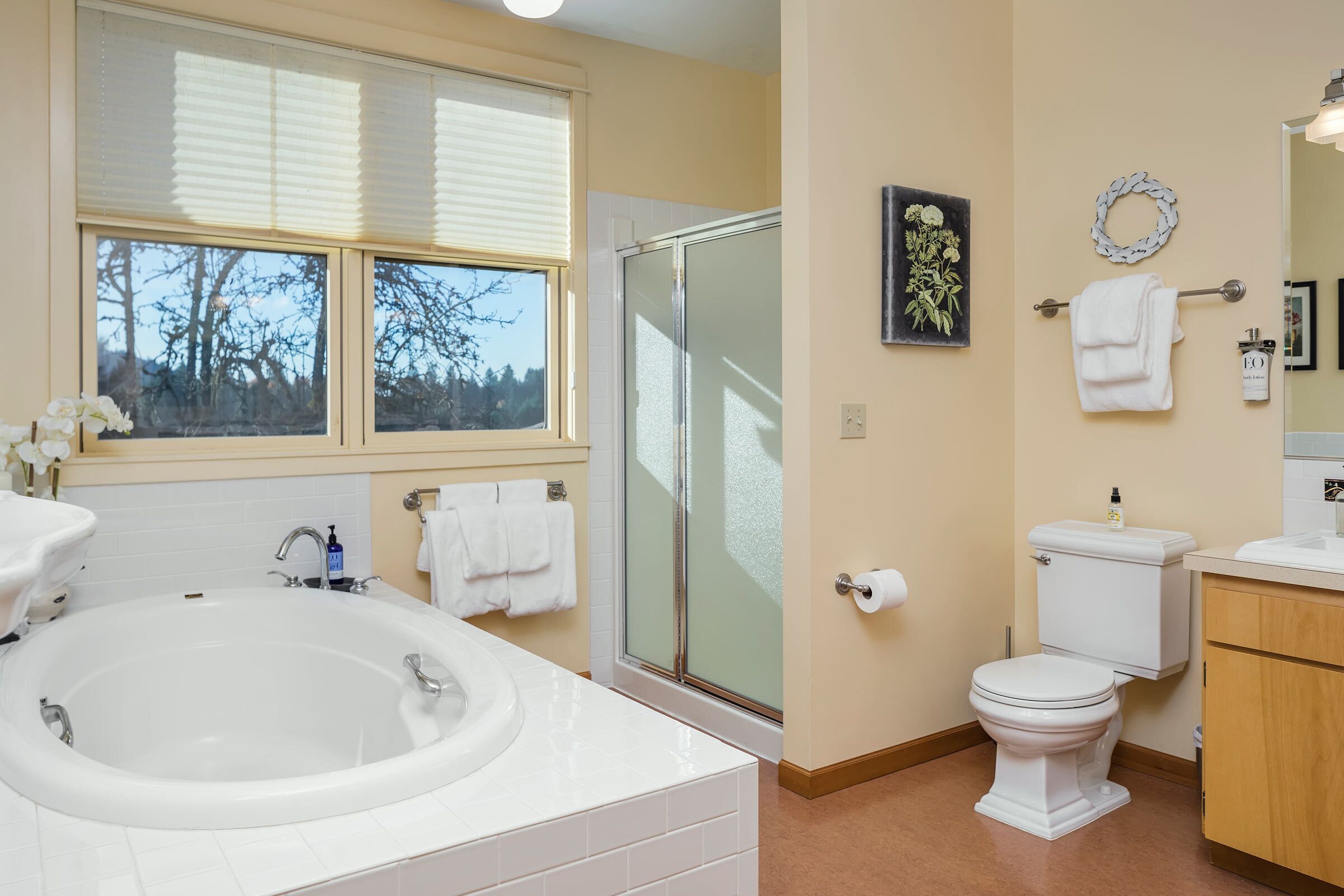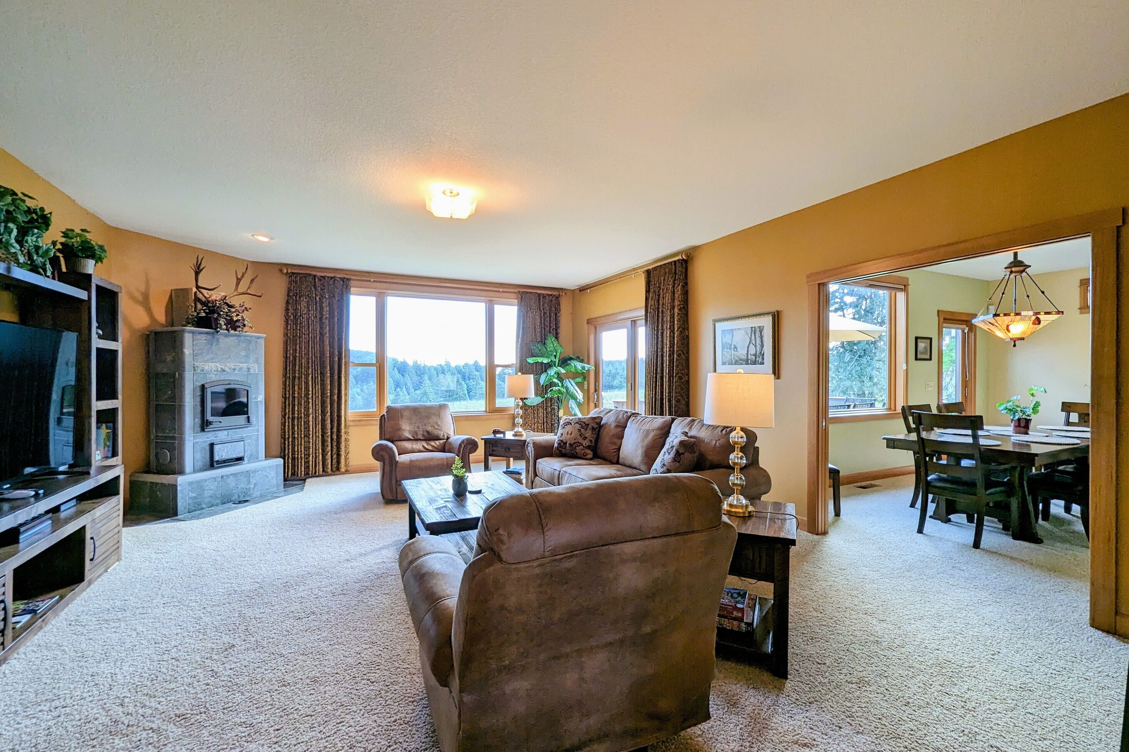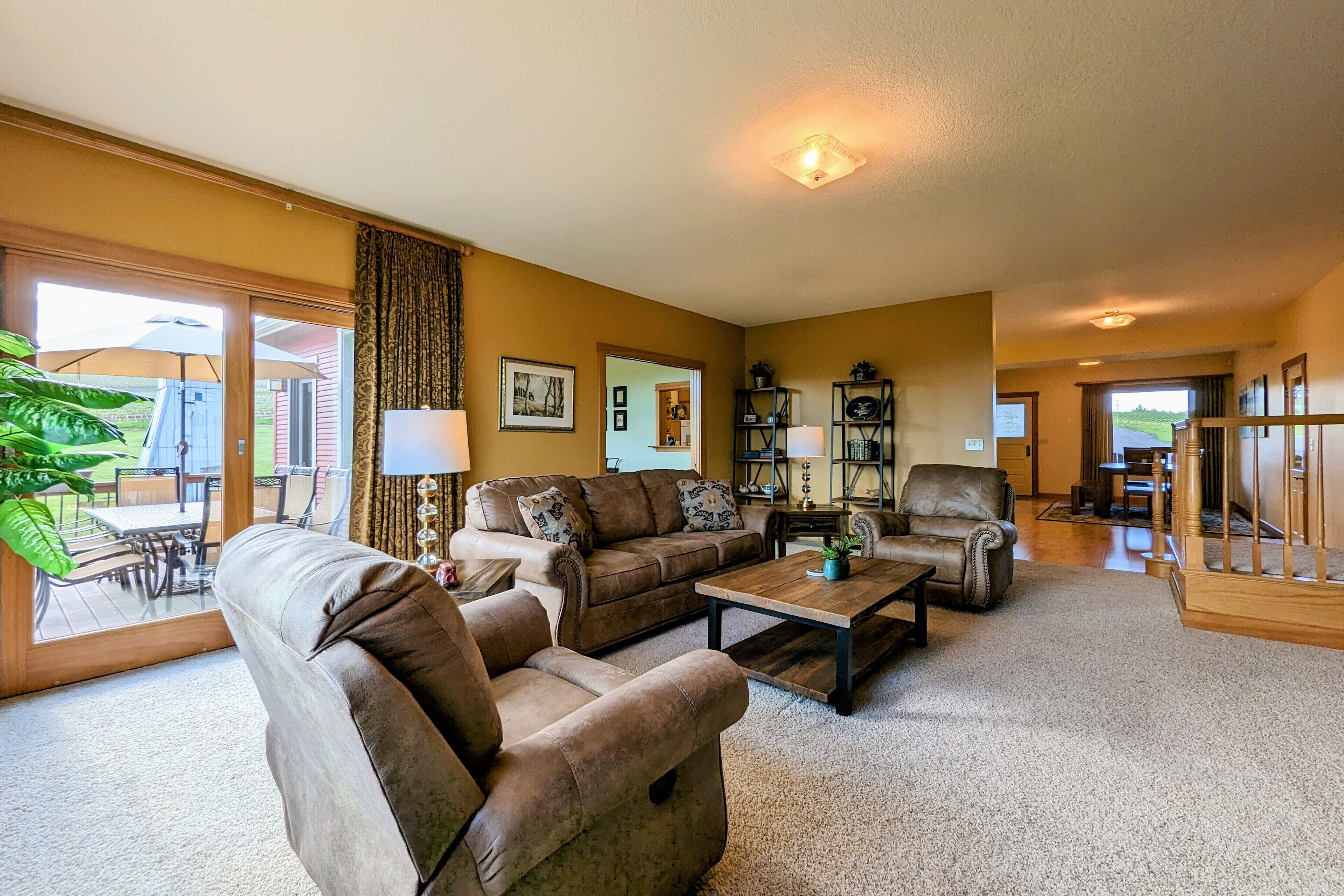 Bell Road Farmhouse - Surrounded by Chehalem Estate Vineyard! Welcome to Bell Road Farmhouse! Old-world charm meets luxury estate in Sherwood, Oregon! The lavish, 3,200-square-foot farmhouse is surrounded by the newly planted Chehalem vineyards. Bell Road Farmhouse sits on 80 sprawling acres, welcoming guests to the enchantments of wine country. This Farmhouse is the perfect place to gather with the family as it offers five bedrooms and three full bathrooms.The entryway will bring you into the mudroom/laundry room before stepping into the cheerful kitchen and dining area. The kitchen is stocked with everything you might need for cooking a delicious family meal. Enjoy it at the breakfast nook, or gather the entire group in the formal dining room, complete with a dining table that seats up to eight—perfect for a family dinner or board games. After a good meal, venture into the cozy, bright living room, grand windows, ample seating, and TV, built for time with loved ones.A spacious queen bedroom is located to the right of the kitchen by the front door. There is another dining room table farm style for game nights, or conversations and laughs!Up the stairs near the living room, you’ll find a landing where the primary suite resides. This suite offers a full bathroom with a jacuzzi soaking tub, two walk-in closets, a king-size bed, and a private balcony. This spacious room features stunning views of sprawling farmland and natural light, each room is outfitted with hotel-quality linens and plush mattresses. The steps outside the room will take you to a loft with an extra large twin-day bed with a trundle. Perfect space for children to be entertained by games, and a smart TV! Through that room, you will find two additional rooms with queen-size beds, along with a shared full bathroom complete with a large standing shower, hairdryers, shampoo, conditioner, luxurious towels, and locally crafted soap bars to help you feel at home during your stay. The staircase will wrap you back around to the front door and queen bedroom on the main level of the home.Outside, Bell Road Farmhouse continues to charm with sprawling lawns. Enjoy dinner on the patio with an outdoor dining area for up to eight and a BBQ. Take a stroll with your morning coffee down the fence line to take in views of the grassy fields. Or cozy up on the porch with a glass of wine at night to soak up the endless views of the night sky.Use our private wine tour service to experience the beauty and unique culture in Oregon’s world-renowned wine country, where every visitor walks away with lifetime memories.Additional family items (baby gate, high chair, pack 'n play, yoga mats, air mattresses, and outdoor games) are available to rent upon request.*Lifestyle Properties would like to assure you that all homes have been aerated, and deep cleaned, and commonly used surfaces have been sanitized prior to your arrival. Our team is committed to following all CDC and WHO guidelines regarding the use of PPE and Cleaning Equipment. You will also have a contactless self-check-in upon arrival.*