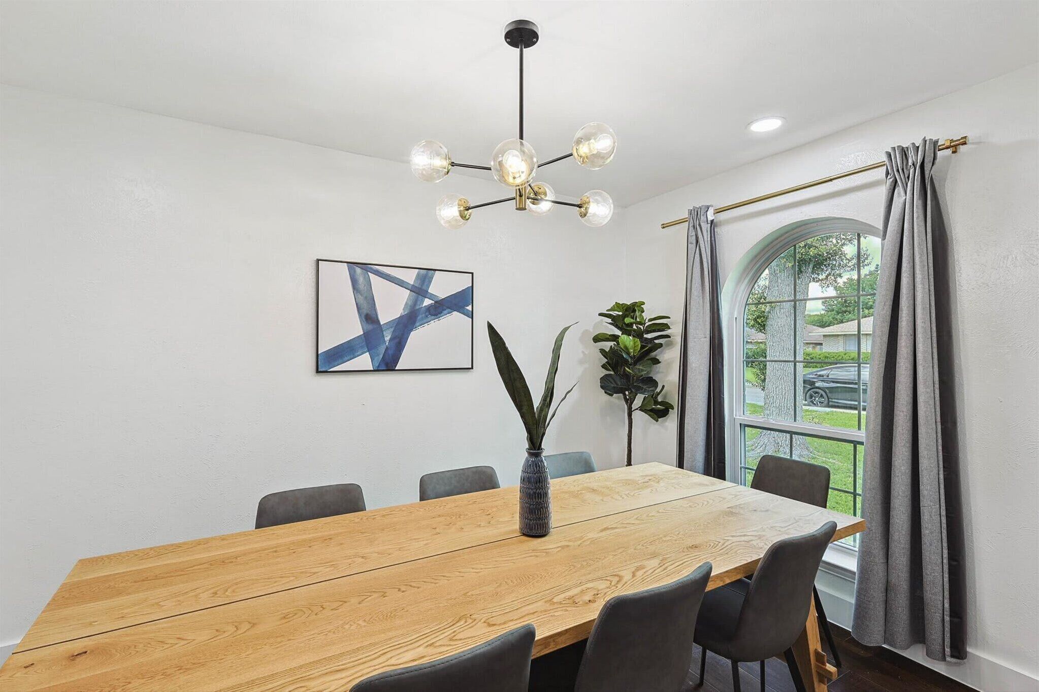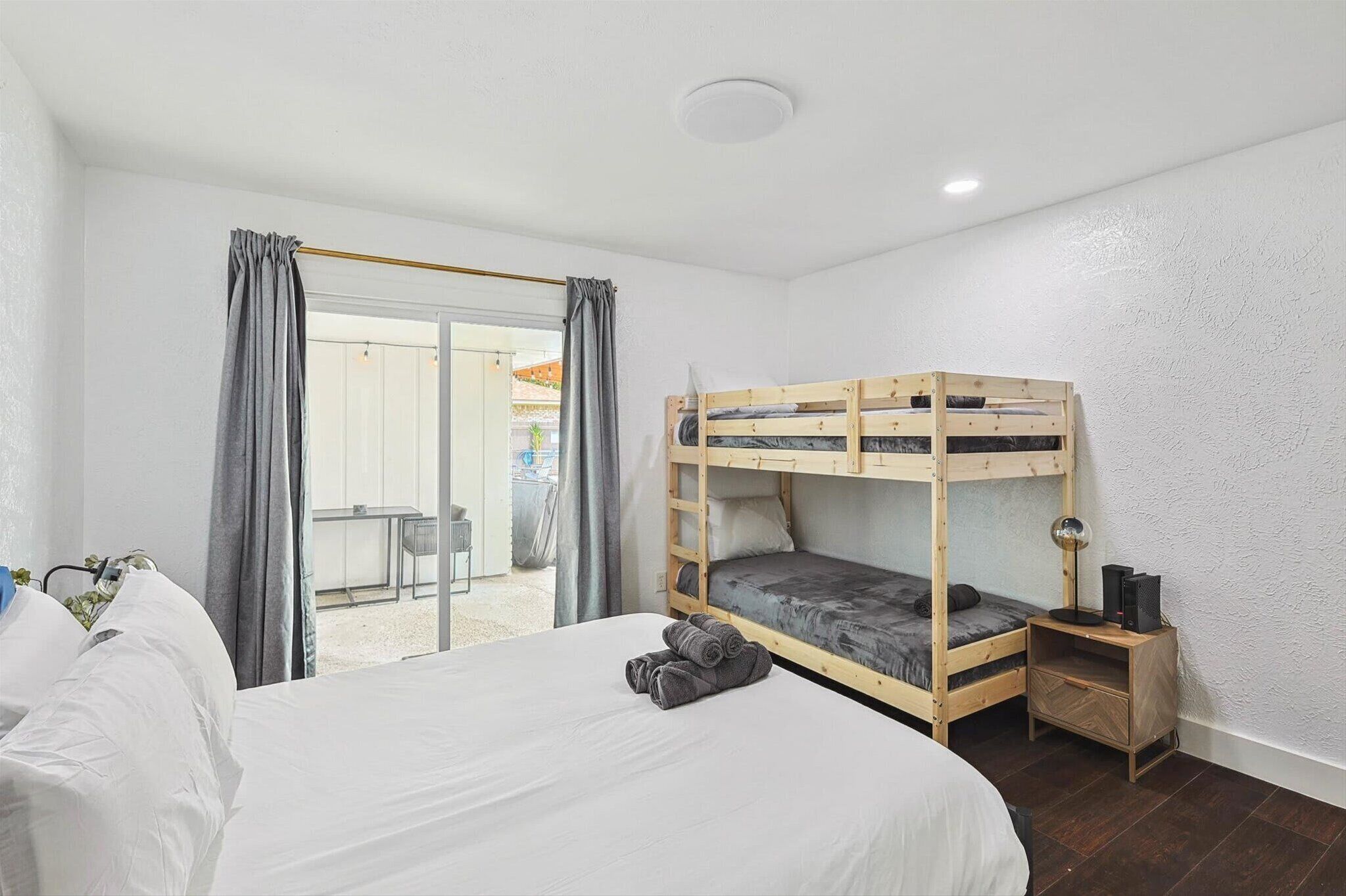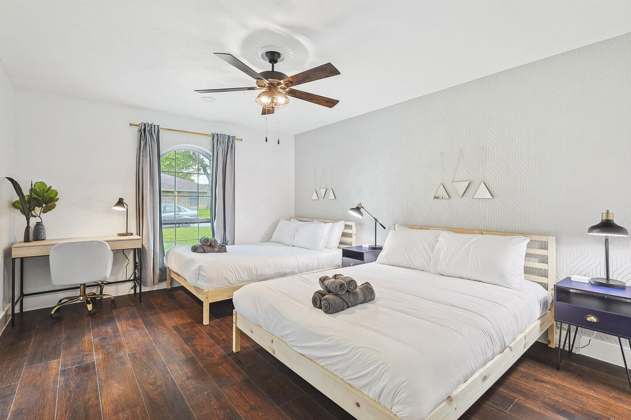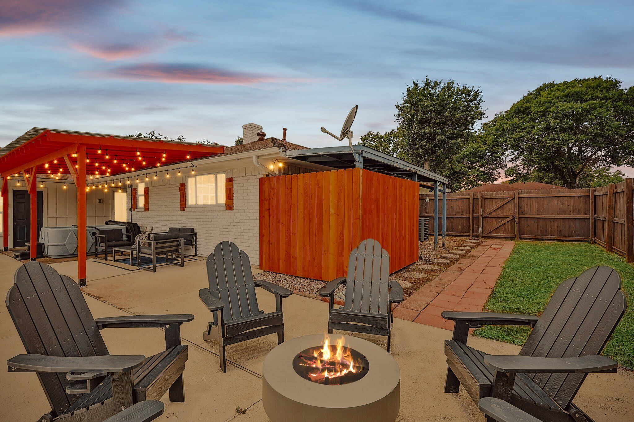 5-BR Relaxing Retreat with Pool, Hot tub, Fire Pit Summary:This sprawling ranch house is the perfect vacation getaway! There are no boring hotel generic designs here! As you step inside, prepare to be blown away by the meticulous decor that exudes elegance and comfort at every turn. From the vaulted ceilings to the backyard swimming pool oasis, you’re sure to make lifelong memories during your stay here!✔5 bedrooms (sleeps 14)✔ 2.5 bathrooms✔ Fully equipped kitchen✔ Swimming pool & loungers✔ Hot tub✔ Designer features & décorThe Space:Welcome to your home away from home! Located in a peaceful and tranquil neighborhood, this bungalow is just a short drive away from all the best that Texas has to offer with easy access to freeways, shopping, and food. From a top-of-the-line dream kitchen to the beautifully vaulted living room to the backyard pool oasis, come prepared to be impressed!Our home caters to both short-term and medium-term stays, making it an excellent choice for corporate housing needs. Whether you find yourself temporarily displaced from your home or require accommodation for your team during an extended project in our area, we provide a welcoming and comfortable "home away from home" experience.★ KITCHEN ★With the best of functionality and elegance, this gallery-style kitchen is fully equipped for all your culinary wishes. With classic wood cabinets and stainless-steel appliances, you’re welcome to whip up your favorite go to recipes or try out something new if you’re feeling inspired by the south. Whether you're a professional chef or a home cook, this kitchen is sure to channel your culinary creativity!✔ Fully equipped kitchen for all your cooking needs✔ Stainless steel appliances - oven, fridge, freezer, stove, microwave, dishwasher✔ Cooking essentials, including pots, pans, baking sheets, etc. ✔ Classic wood cabinets and upgraded countertops★ DINING AREAS ★In the morning, enjoy your first sips of coffee from the cozy breakfast nook. Located just steps from the kitchen for your convenience, this breakfast nook provides an approachable elegance for breaking your fast. For lunches and dinners, make your way to the dedicated dining room. The beautiful wooden table paired with sleek, modern chairs offers a restaurant-like environment as you enjoy a meal with some of your favorite people. ✔ Breakfast nook with seating for 4 guests✔ Dinner table with seating for 8 guests ✔ Place settings and cutlery✔ Warm and inviting environments★ LIVING AREA ★Step into this stunning living room and immerse yourself in designer furnishings and decor that exudes comfort and style. The vaulted ceilings and modern fireplace offer an air of sophisticated elegance. Sink into the plush couches and enjoy the abundant natural light that spills through the windows, creating an inviting and warm atmosphere. This living room is the perfect retreat for any occasion!✔ Comfortable couches and seating✔ Designer furnishings and decor✔ Vaulted ceilings with rustic beams✔ Bright, natural sunlight★ BEDROOMS ★Step into our beautifully designed bedrooms and experience the perfect blend of comfort and style. Each room features unique accent walls and carefully curated artwork that add character and charm to the space. With luxurious bedding and plush pillows, you'll have sweet dreams and wake up feeling refreshed. Whether you're for work or pleasure, our bedrooms are the perfect sanctuary to relax and recharge.✔ 5 bedrooms with king, queen, bunk beds and sofabed✔ Bedside tables, wall art, and lamps in every room✔ Work station and sitting area in 2 of the bedrooms✔ Can comfortably sleep up to 14 guests★ BATHROOMS ★Step into the luxurious bathrooms and feel the stress melt away as you indulge in our walk-in showers or relax in the soothing bathtub. These bathrooms are designed to impress with stunning tile work and high-end fixtures that create an ambiance of sophistication and comfort, ensuring a refreshing start to your day. Whether you're in a rush or in need of a little self-care, our bathrooms will provide the perfect sanctuary for you to unwind and rejuvenate.✔ 2.5 private bathrooms✔ Glass walk-in showers for convenience✔ Bathtub for warm relaxing bubble baths ✔ Essential toiletries included (i.e. towels, toilet paper, soap, etc.)★ BACKYARD ★Welcome to your private pool oasis! Nothing beats the Texas heat like a refreshing dip in the water. Relax and enjoy the warm sunshine as you work on your tan in one of the poolside loungers. Later in the evening, gather around the fire pit to chat the night away as the stars emerge. This is the perfect backyard for enjoying some fun under the sun and the moon!✔ Outdoor swimming pool✔ Hot tub✔ Patio with outdoor furniture✔ Fire pit and loungers✔ Fully fenced yard for your privacy★ ADDITIONAL AMENITIES ★✔ Free parking is available to guests in the garage.✔A laundry room has a washer and dryer available for your use should you wish to refresh your clothing during your stay. Lastly, we must stress that we do NOT allow parties or large unauthorized gatherings of any sort at our property. We are adamant about only welcoming families and groups who are looking to relax and enjoy the beautiful stunning backyard and the amenities the home has to offer.Guest Access:Enjoy the comfort and convenience of self-check-in. One day prior to your arrival you will receive an email that walks you through the process and answers any last-minute concerns. If you still have questions, we’re available for you! Please don’t hesitate to reach out to us at any time - we are here to please.The house is exclusively yours, without interruption for the duration of your stay, so relax, unwind, and make yourself at home. Other than the already mentioned amenities, our home is also equipped with:✔ High-Speed Wi-Fi✔ Air Conditioning✔ Heating ✔ Washer/Dryer✔ Toddler AccessoriesThe Neighborhood:Welc