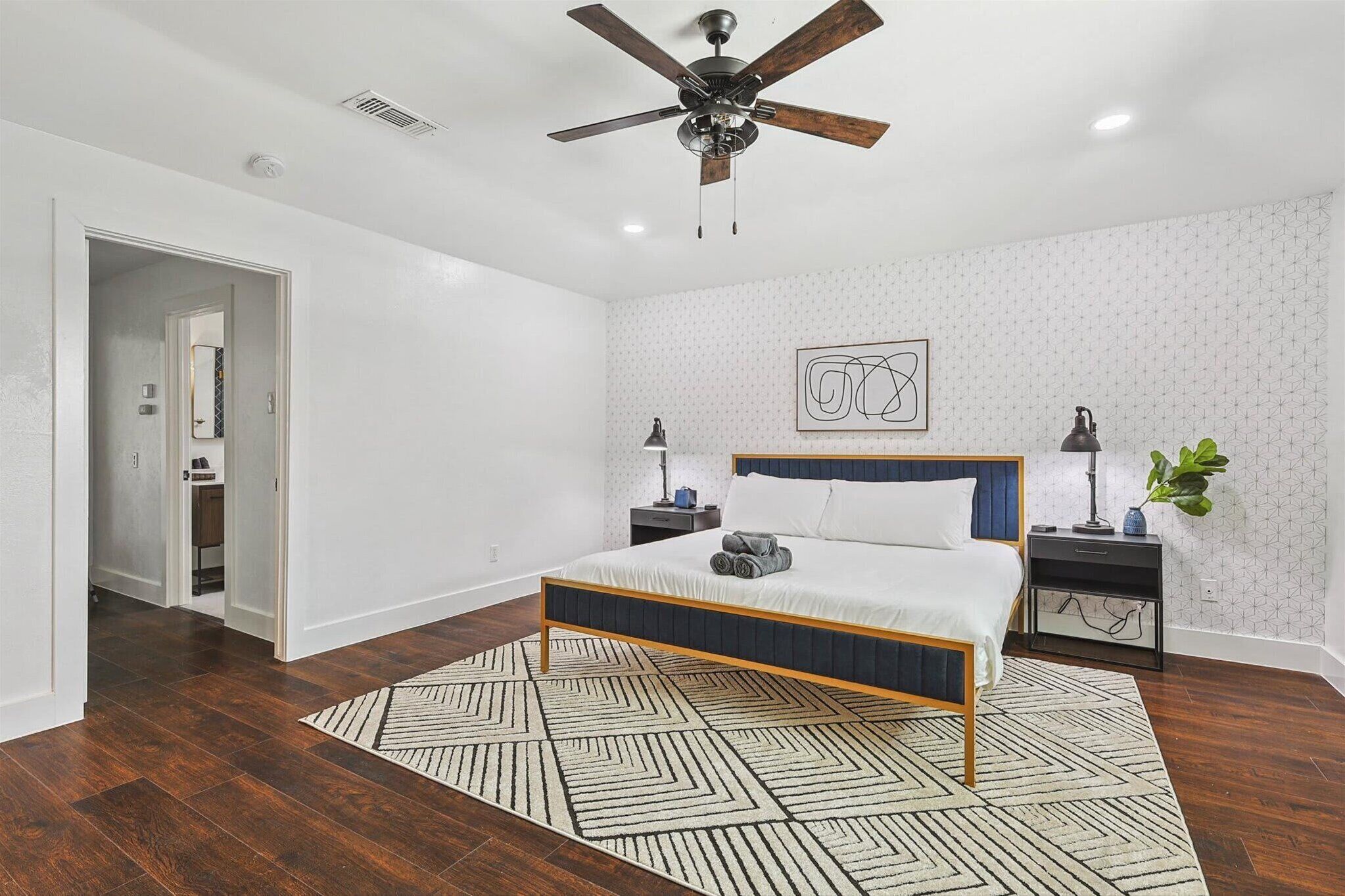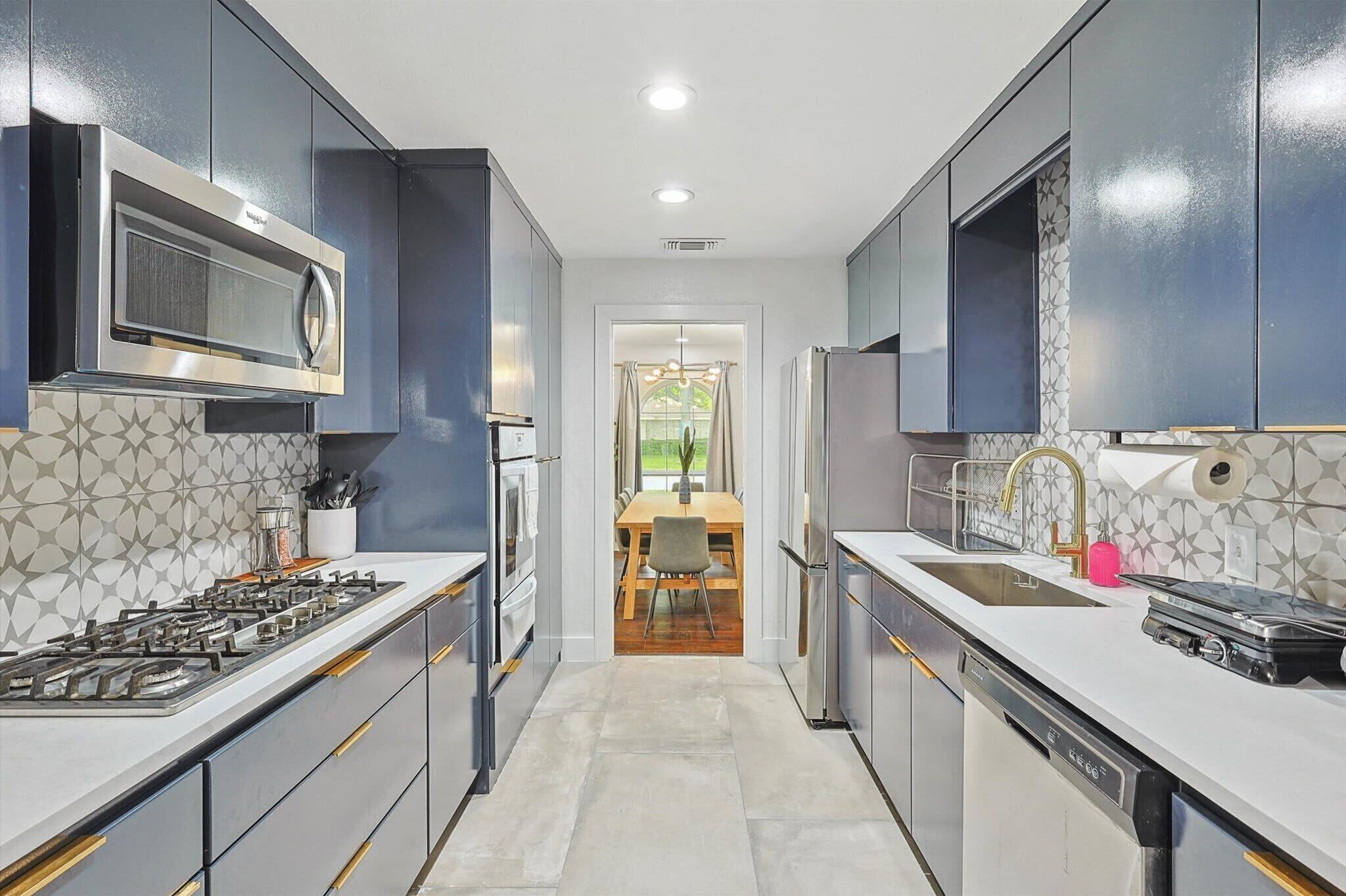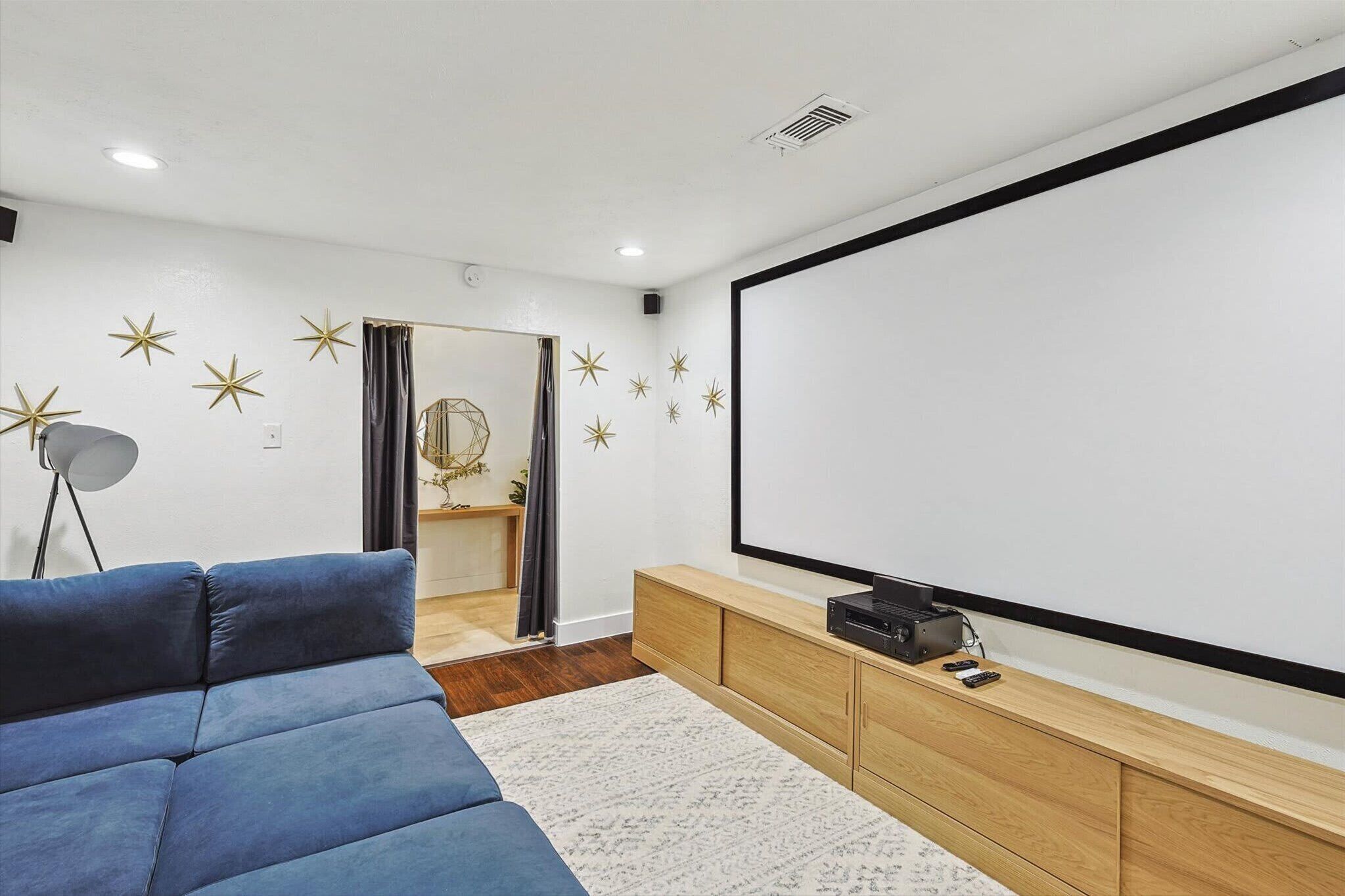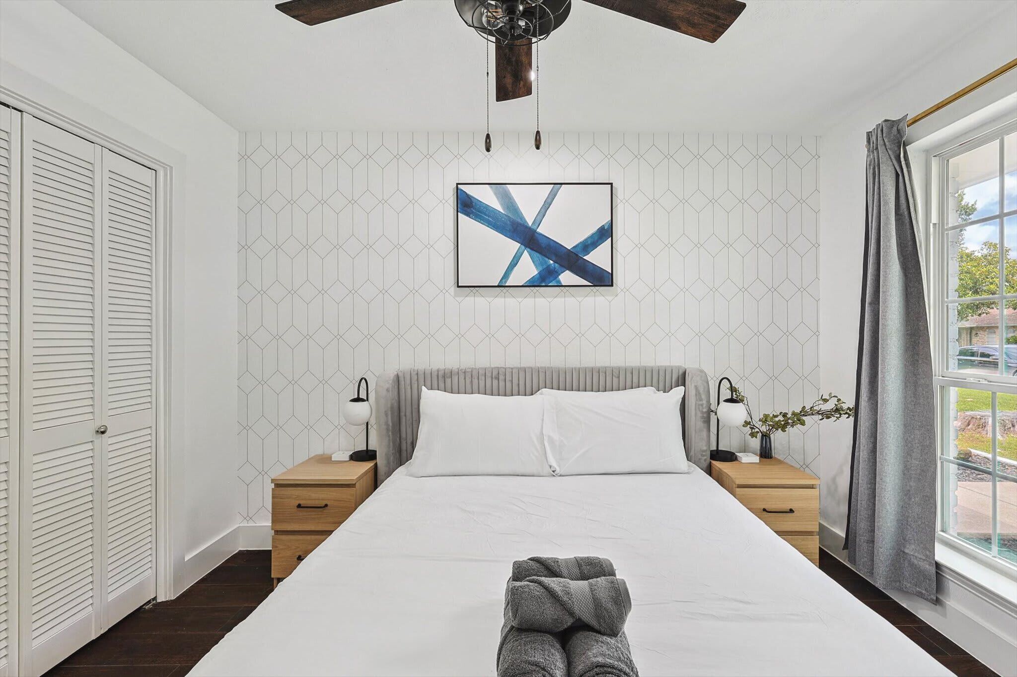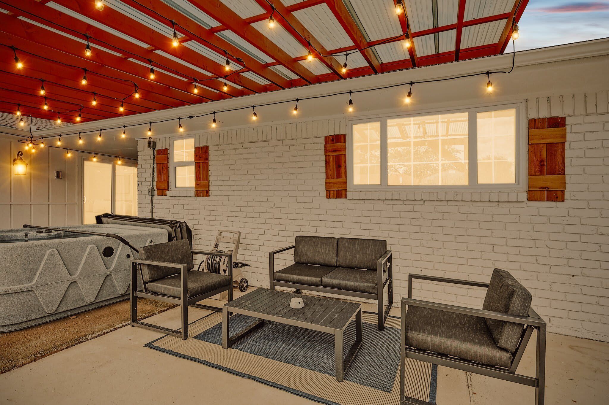 5-BR Relaxing Retreat with Pool, Hot tub, Fire Pit Summary:This sprawling ranch house is the perfect vacation getaway! There are no boring hotel generic designs here! As you step inside, prepare to be blown away by the meticulous decor that exudes elegance and comfort at every turn. From the vaulted ceilings to the backyard swimming pool oasis, you’re sure to make lifelong memories during your stay here!✔5 bedrooms (sleeps 14)✔ 2.5 bathrooms✔ Fully equipped kitchen✔ Swimming pool & loungers✔ Hot tub✔ Designer features & décorThe Space:Welcome to your home away from home! Located in a peaceful and tranquil neighborhood, this bungalow is just a short drive away from all the best that Texas has to offer with easy access to freeways, shopping, and food. From a top-of-the-line dream kitchen to the beautifully vaulted living room to the backyard pool oasis, come prepared to be impressed!Our home caters to both short-term and medium-term stays, making it an excellent choice for corporate housing needs. Whether you find yourself temporarily displaced from your home or require accommodation for your team during an extended project in our area, we provide a welcoming and comfortable "home away from home" experience.★ KITCHEN ★With the best of functionality and elegance, this gallery-style kitchen is fully equipped for all your culinary wishes. With classic wood cabinets and stainless-steel appliances, you’re welcome to whip up your favorite go to recipes or try out something new if you’re feeling inspired by the south. Whether you're a professional chef or a home cook, this kitchen is sure to channel your culinary creativity!✔ Fully equipped kitchen for all your cooking needs✔ Stainless steel appliances - oven, fridge, freezer, stove, microwave, dishwasher✔ Cooking essentials, including pots, pans, baking sheets, etc. ✔ Classic wood cabinets and upgraded countertops★ DINING AREAS ★In the morning, enjoy your first sips of coffee from the cozy breakfast nook. Located just steps from the kitchen for your convenience, this breakfast nook provides an approachable elegance for breaking your fast. For lunches and dinners, make your way to the dedicated dining room. The beautiful wooden table paired with sleek, modern chairs offers a restaurant-like environment as you enjoy a meal with some of your favorite people. ✔ Breakfast nook with seating for 4 guests✔ Dinner table with seating for 8 guests ✔ Place settings and cutlery✔ Warm and inviting environments★ LIVING AREA ★Step into this stunning living room and immerse yourself in designer furnishings and decor that exudes comfort and style. The vaulted ceilings and modern fireplace offer an air of sophisticated elegance. Sink into the plush couches and enjoy the abundant natural light that spills through the windows, creating an inviting and warm atmosphere. This living room is the perfect retreat for any occasion!✔ Comfortable couches and seating✔ Designer furnishings and decor✔ Vaulted ceilings with rustic beams✔ Bright, natural sunlight★ BEDROOMS ★Step into our beautifully designed bedrooms and experience the perfect blend of comfort and style. Each room features unique accent walls and carefully curated artwork that add character and charm to the space. With luxurious bedding and plush pillows, you'll have sweet dreams and wake up feeling refreshed. Whether you're for work or pleasure, our bedrooms are the perfect sanctuary to relax and recharge.✔ 5 bedrooms with king, queen, bunk beds and sofabed✔ Bedside tables, wall art, and lamps in every room✔ Work station and sitting area in 2 of the bedrooms✔ Can comfortably sleep up to 14 guests★ BATHROOMS ★Step into the luxurious bathrooms and feel the stress melt away as you indulge in our walk-in showers or relax in the soothing bathtub. These bathrooms are designed to impress with stunning tile work and high-end fixtures that create an ambiance of sophistication and comfort, ensuring a refreshing start to your day. Whether you're in a rush or in need of a little self-care, our bathrooms will provide the perfect sanctuary for you to unwind and rejuvenate.✔ 2.5 private bathrooms✔ Glass walk-in showers for convenience✔ Bathtub for warm relaxing bubble baths ✔ Essential toiletries included (i.e. towels, toilet paper, soap, etc.)★ BACKYARD ★Welcome to your private pool oasis! Nothing beats the Texas heat like a refreshing dip in the water. Relax and enjoy the warm sunshine as you work on your tan in one of the poolside loungers. Later in the evening, gather around the fire pit to chat the night away as the stars emerge. This is the perfect backyard for enjoying some fun under the sun and the moon!✔ Outdoor swimming pool✔ Hot tub✔ Patio with outdoor furniture✔ Fire pit and loungers✔ Fully fenced yard for your privacy★ ADDITIONAL AMENITIES ★✔ Free parking is available to guests in the garage.✔A laundry room has a washer and dryer available for your use should you wish to refresh your clothing during your stay. Lastly, we must stress that we do NOT allow parties or large unauthorized gatherings of any sort at our property. We are adamant about only welcoming families and groups who are looking to relax and enjoy the beautiful stunning backyard and the amenities the home has to offer.Guest Access:Enjoy the comfort and convenience of self-check-in. One day prior to your arrival you will receive an email that walks you through the process and answers any last-minute concerns. If you still have questions, we’re available for you! Please don’t hesitate to reach out to us at any time - we are here to please.The house is exclusively yours, without interruption for the duration of your stay, so relax, unwind, and make yourself at home. Other than the already mentioned amenities, our home is also equipped with:✔ High-Speed Wi-Fi✔ Air Conditioning✔ Heating ✔ Washer/Dryer✔ Toddler AccessoriesThe Neighborhood:Welc