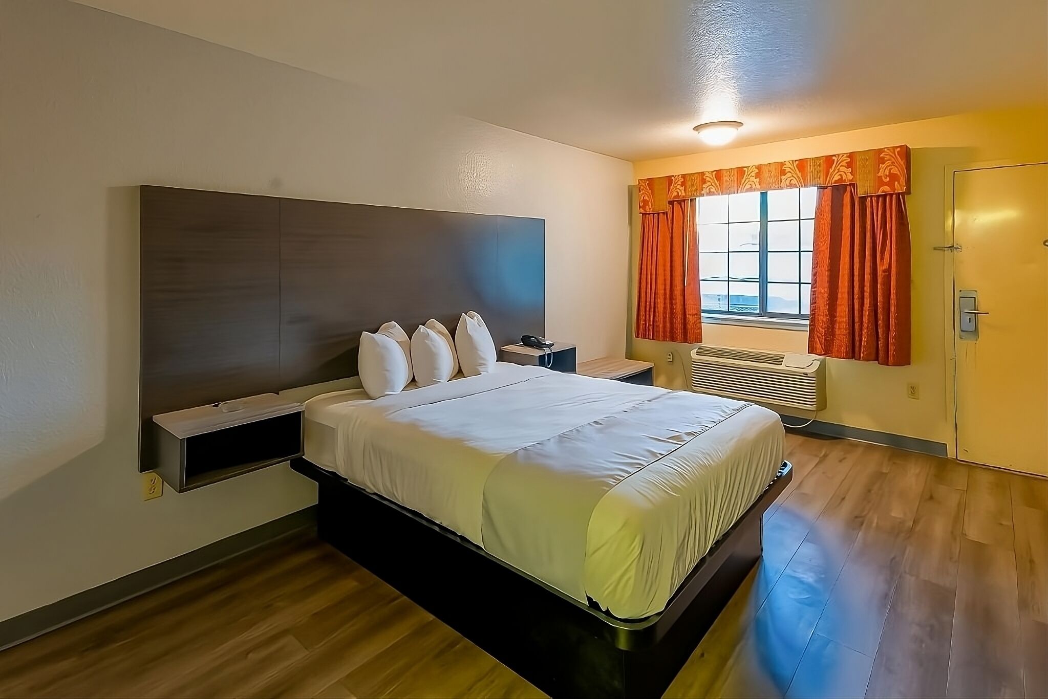 Few Miles from San Ducerro Winery! Onsite Pool, FREE Breakfast and Parking! A hotel with all of the conveniences you need to have a pleasant stay. All our guests have free Wi-Fi, a coffee and tea maker, air conditioning, a TV, a hair dryer, and a small fridge in their accommodation. It is handicapped accessible and equipped with CCTV cameras and a vending machine. For safety, smoke detectors and fire extinguishers are installed in the rooms. Relax after a long day in our outdoor swimming pool with your family or friends. Our accommodation also offers a complimentary parking facility and 24/7 check-in service.The listing is distributed and managed by RoomPicks Accommodations.THE UNIT This 300sf Queen Bed Smoking features:- 1 King bed;- Daily housekeeping;- Coffee maker, Mini fridge;- TV;- Hairdryer;- Air-conditioner;- All linens, towelsTHE PROPERTY Our family-friendly property provides the following on-site amenities:- 24/7 Front desk and Security;- Swimming pool;- Loungers by the pool;- Vending machines;- Free continental breakfast;- Onsite coin-operated laundry facilities;- Pets not allowed (service animals are welcome, and are exempt from fees);- Parking is available for guests on the property and is free of cost (for 1 car per unit).Please ensure you have a valid ID for check-in, as it is mandatory for entry.