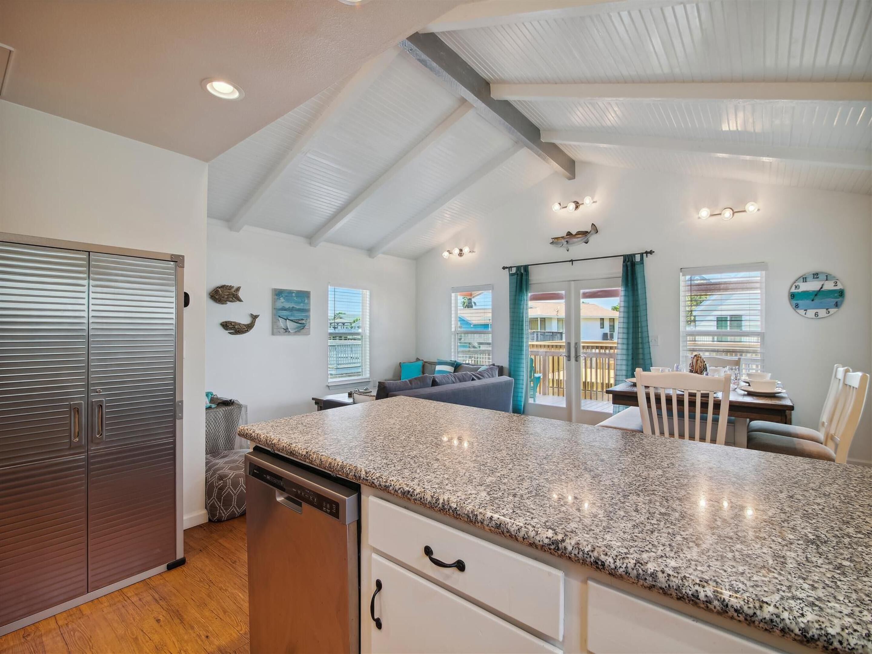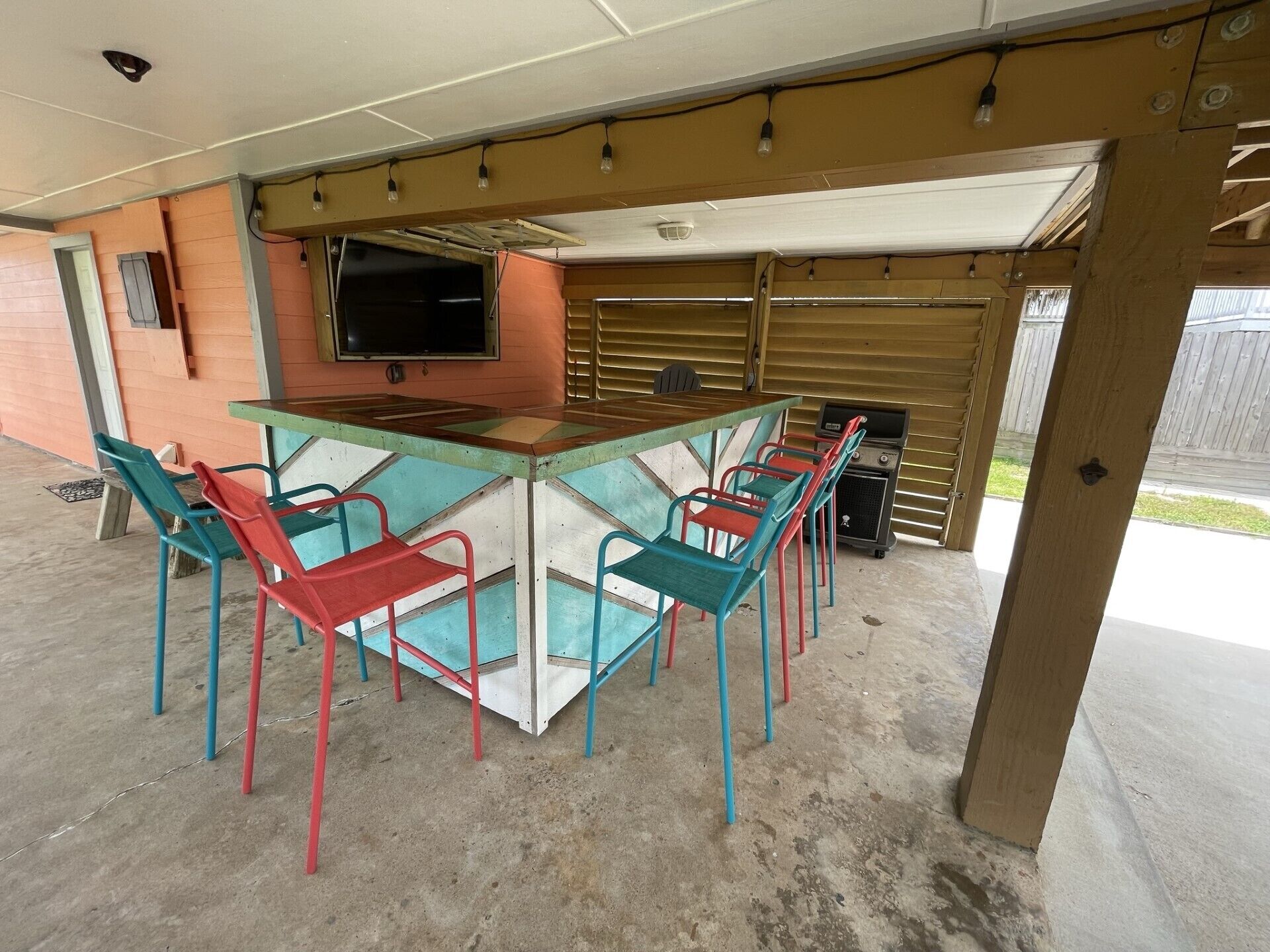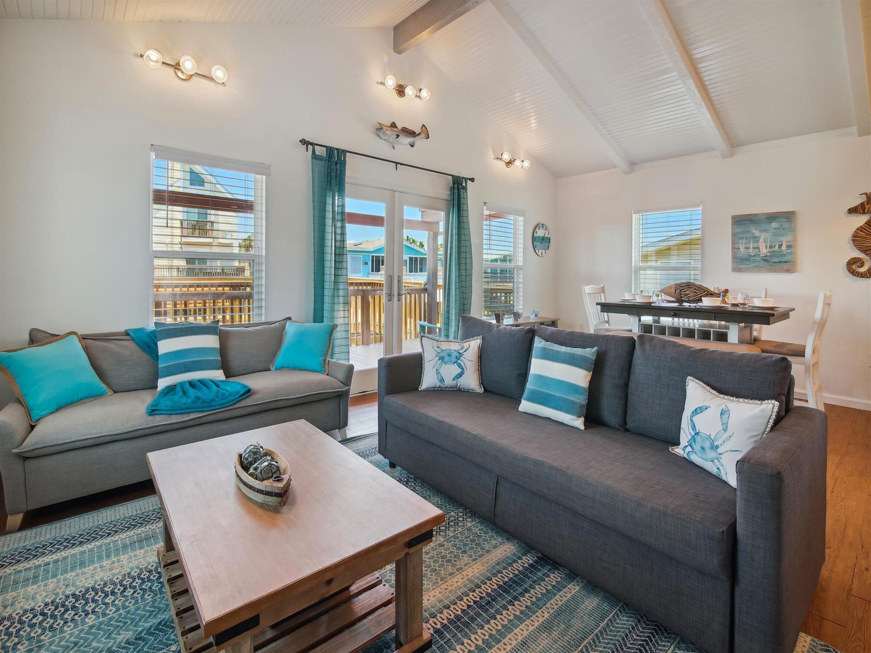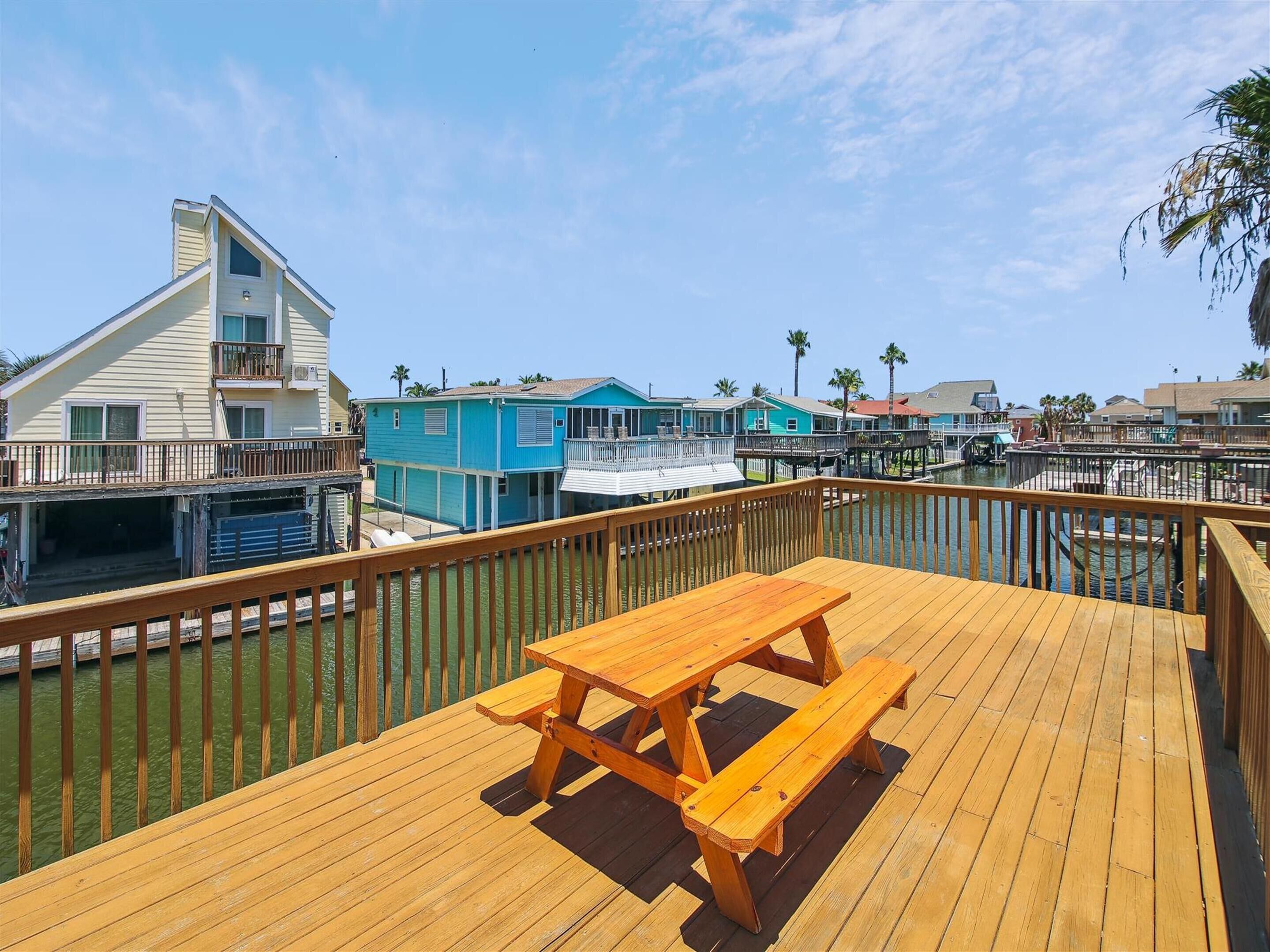 Amigo Bay | Pet Friendly, Dock, Canal Views All family and friends are welcome at Amigo Bay. Located in the lovely Jamaica Beach neighborhood, this home is perfect for families and friends to enjoy. Bring your furry friend along as well in this pet-friendly home. With canal front views, large open floor plans, and fun amenities, you are sure to relax and unwind this vacation.The large deck offers plenty of room to enjoy the company of friends as you enjoy a fresh cup of coffee or a cocktail with the fresh coastal breezes. On the patio, you will find an outdoor bar with an outdoor TV to enjoy the big game as you enjoy yard games and a cookout on the grill. Please feel free to enjoy the kayaks! The community is set with an indoor and outdoor pool to enjoy, as well as a kiddie pool for the little ones to splash around in.Inside you will find comfortable furnished living space. Sink into the couch and relax with a movie night on the large TV. Pop popcorn in the fully equipped kitchen with ample granite counter space and stainless steel appliances. Each bedroom is prepared with comfortable bedding and fresh linens. A washer and dryer can be found on the ground level to freshen any towels or clothes during your stay at Amigo Bay.Jamaica Beach draws in visitors with intricate canals offering peaceful views from almost every vacation rental in the area. With Galveston Island State Park so close by, you will enjoy beach access, kayaking, swimming, fishing, walking trails and so much more. Your kids will love learning about the wildlife and natural surroundings that make up this coastal Texas town.Enjoy a relaxing stay at Amigo Bay and book desired dates today!Bed Sizes:First Floor: Bedroom 1: Queen, Bedroom 2: Queen, Bedroom 3: Twin/Full Bunkbed, Living Room: Sleeper SofaGround Floor: Bedroom 4: QueenNo white trash bags allowed; all trash has to be in black trash bags. The City will issue citations.