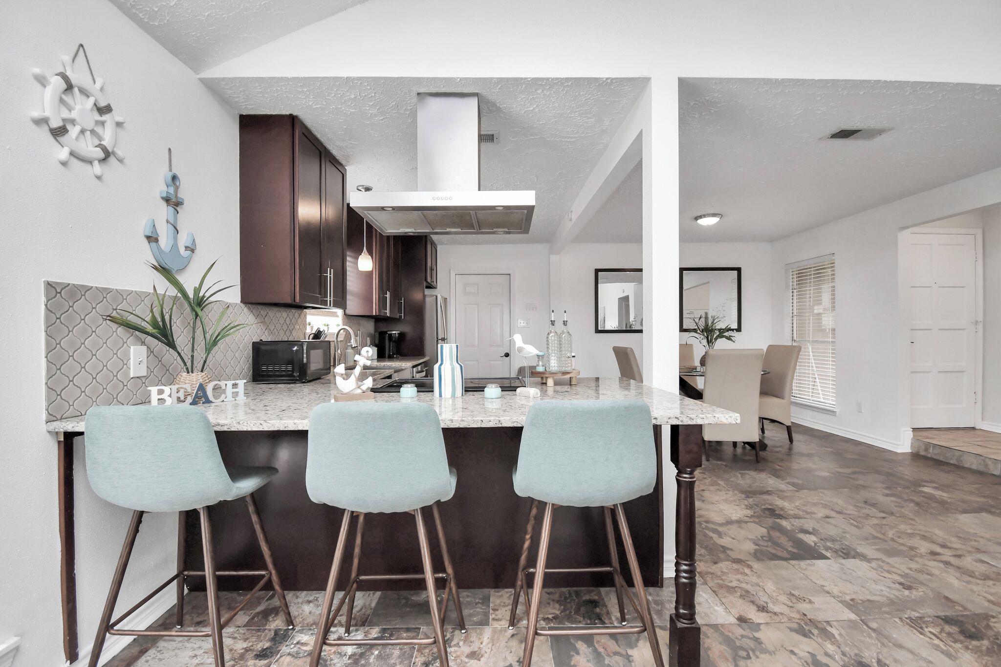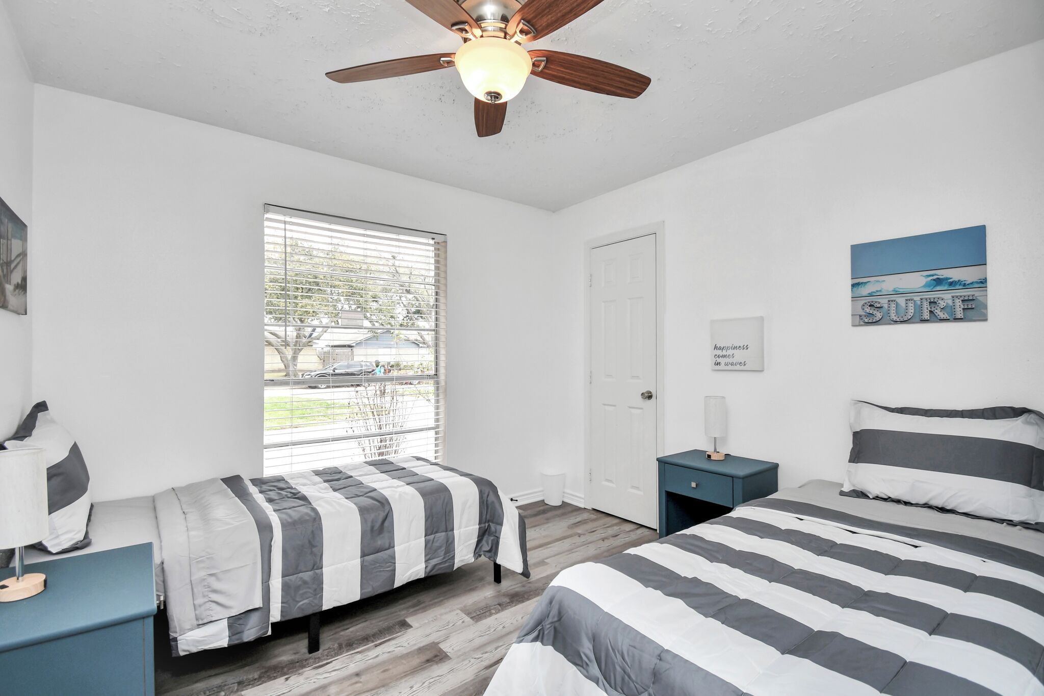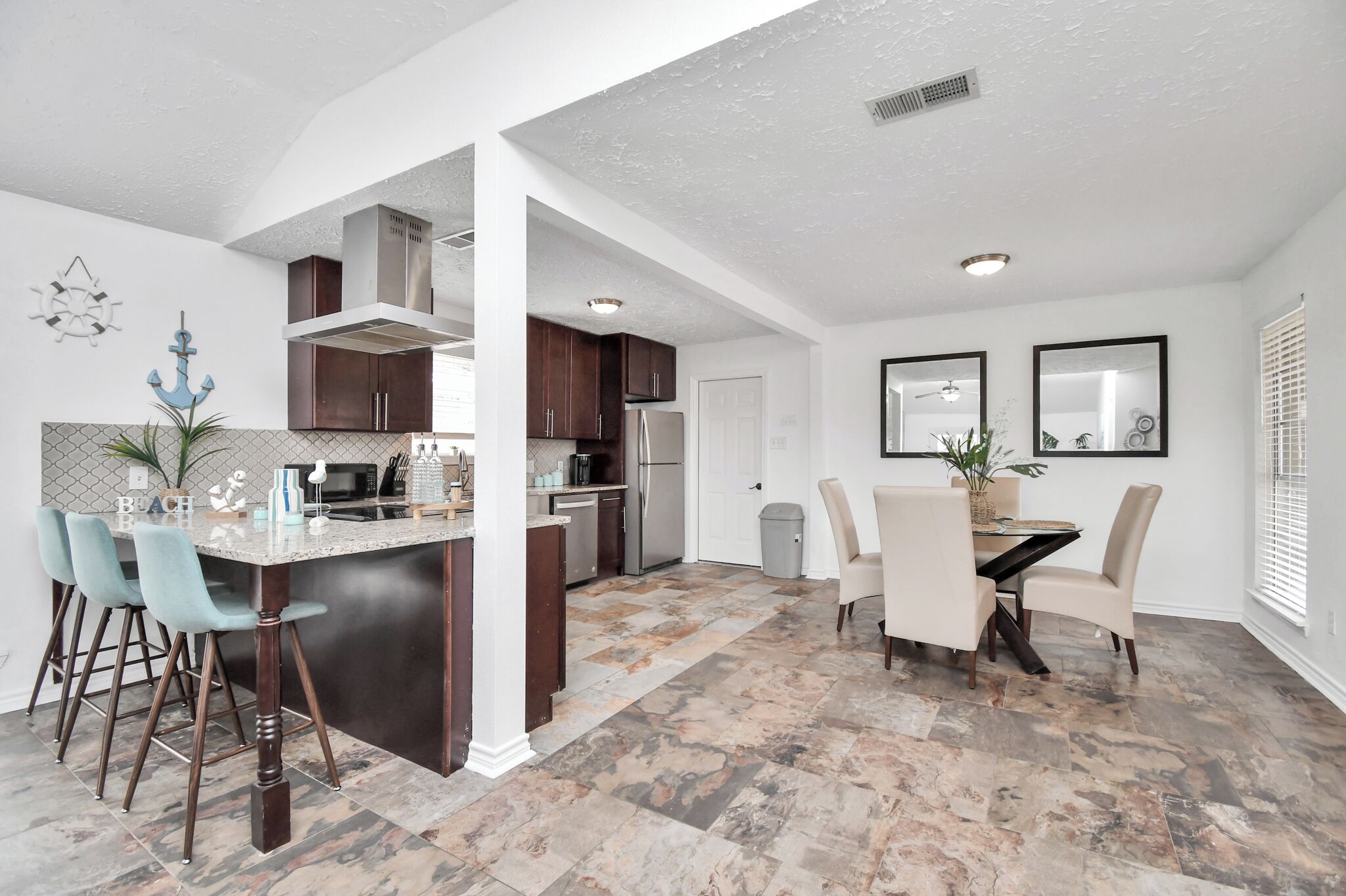Coastal Comfort: Your Perfect Home Just Moments from the Boardwalk! Welcome to our cozy home nestled in League City, Texas, just a stone's throw away from the vibrant Kemah Boardwalk. Located in the heart of this charming coastal community, our home offers the perfect blend of convenience and comfort for your Texas getaway.Be ready to explore all that League City and the surrounding area have to offer. Whether you're strolling along the Kemah Boardwalk, soaking up the sun on nearby beaches, or attending Lagoonfest, there's something for everyone to enjoy!The spaceWelcome to our charming beach-themed home, perfect for families seeking a cozy and inviting retreat. Coastal accents such as nautical artwork, and soft hues of blue and sandy beige evoke the tranquil ambiance of a day at the beach.Adjacent to the living area, you'll find the fully equipped kitchen, complete with your basic cooking needs and a stocked coffee bar. The dining area offers seating for everyone to gather and enjoy meals with additional seating at the bar area.The home features three cozy bedrooms, each thoughtfully designed with comfort in mind. The master bedroom has a queen bed with a spacious walk-in closet and master bathroom. The second bedroom offers a cozy retreat with queen bed and a walk in closet. Ideal for children or additional guests, the third bedroom offers two plush twin beds with beach theme decor.Outside, the fenced backyard beckons with its inviting patio area. Spend leisurely afternoons lounging in the sun and gathering around for cozy evenings under the stars.Guest accessGuest have access to the home with a code for a smart lock!!!This will be a self check-in and out!Other things to noteTrash days are Mondays and Thursdays. If you are checking out on either of these days, PLEASE place the trash can at the end of the driveway, away from the curb for trash pick up. Thank you so much!