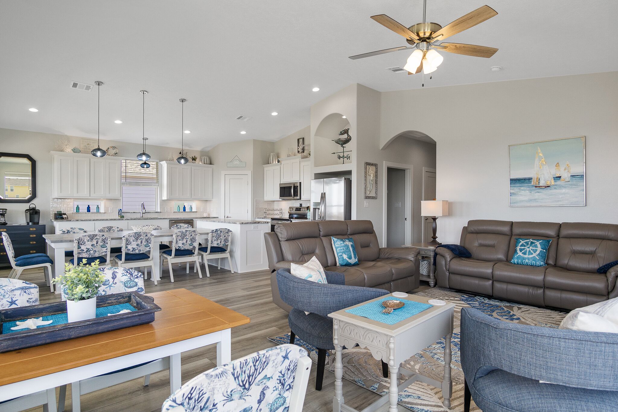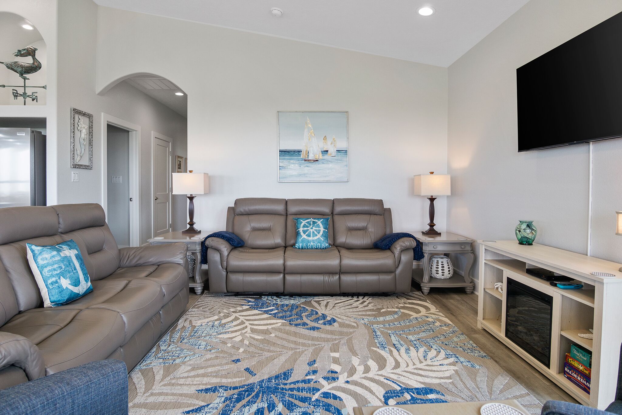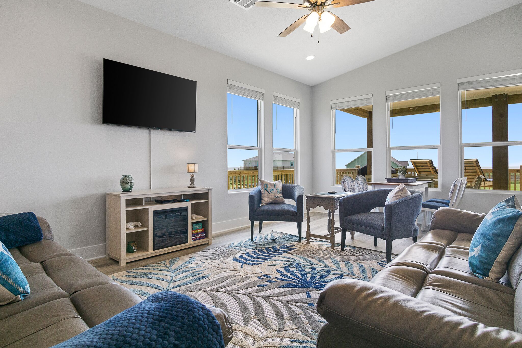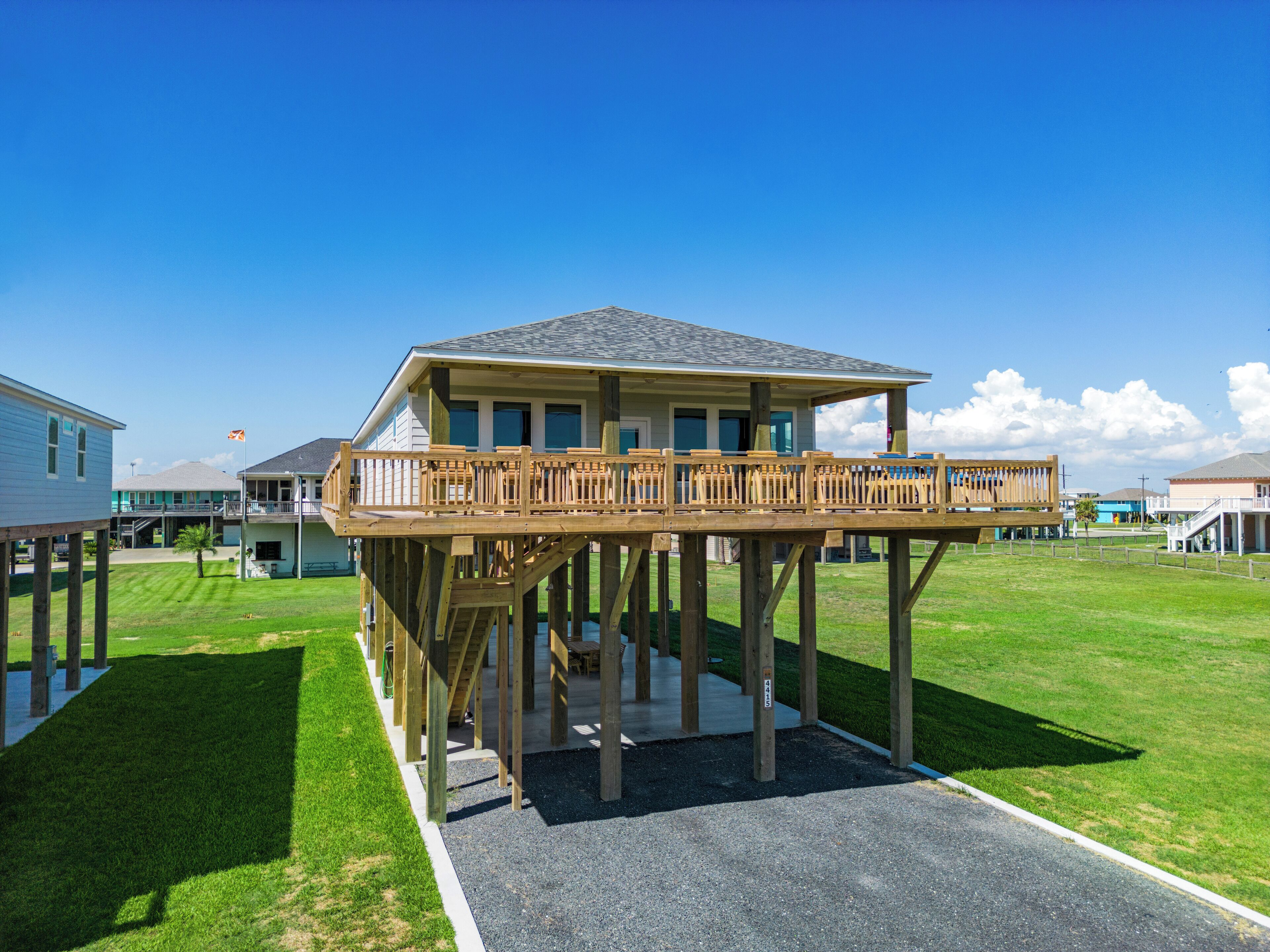 Amazing Ocean views from New 5BR Beach House Welcome to Sol Shine by Bolivar Vacations, a beautiful, second-row beach house on the Bolivar Peninsula, thoughtfully designed for creating unforgettable memories with family and friends. This beautifully appointed 5-bedroom, 3.5-bathroom home comfortably sleeps 16 guests and offers a perfect blend of comfort and style.KEY FEATURES:☀ 5 spacious bedrooms; well-appointed for comfort and relaxation☀ 3.5 modern bathrooms with all the essentials☀ Open kitchen with large island table, fully equipped for entertaining☀ Adjoining living area with plenty of seating and a 65” Roku TV☀ Expansive 18' x 42' deck with unobstructed ocean views, multiple seating options, and a large dining table☀ High-speed Wi-Fi throughout the house☀ 2 Washers + 2 dryers for guest use☀ Security cameras underneath the house overlooking the driveway☀ Pet-friendly (additional fee applies)☆☆ BEDROOMS ☆☆ Sol Shine offers five well-appointed bedrooms, each designed to provide a restful retreat. Whether you're resting after a day at the beach or enjoying some quiet time, the comfortable beds and thoughtful decor create a relaxing atmosphere.☆☆ BATHROOMS ☆☆ The 3.5 bathrooms are equipped with modern fixtures, ensuring that everyone has space and privacy. The master bathroom features additional luxuries, making your stay even more enjoyable.☆☆ KITCHEN & LOUNGE ☆☆ The heart of the home is the open-concept kitchen, perfect for entertaining. The large island table provides ample space for meal prep and casual dining. The adjoining living area offers plenty of seating, a 65” Roku TV, and beautiful water views, making it the perfect spot for gatherings.☆☆ OUTSIDE SPACE ☆☆ Step outside to the expansive 18' x 42' deck, where you can soak up the sun, enjoy unobstructed ocean views, and dine al fresco at the large outdoor table. The deck offers plenty of seating options, ensuring that everyone can find their perfect spot to relax.**★☆ Book Today & Experience Coastal Luxury at Sol Shine by Bolivar Vacations! ☆★Guest Access: Guests will have full access to the entire home, including all five bedrooms, 3.5 bathrooms, the fully equipped kitchen, and the expansive deck. Enjoy high-speed internet and modern amenities throughout the property. Upon making a reservation, please send us an identification document for verification purposes. The card on file must be valid, as reservations with declined payments will be subject to cancellation.Important Notes: Youth reservations are prohibited without prior approval. All requirements must be met—please inquire before booking. Youth reservations are defined as any booking where the majority of occupants are under the age of 25, including but not limited to pre-prom, post-prom, graduation, senior day, homecoming, youth group, or birthday reservations.