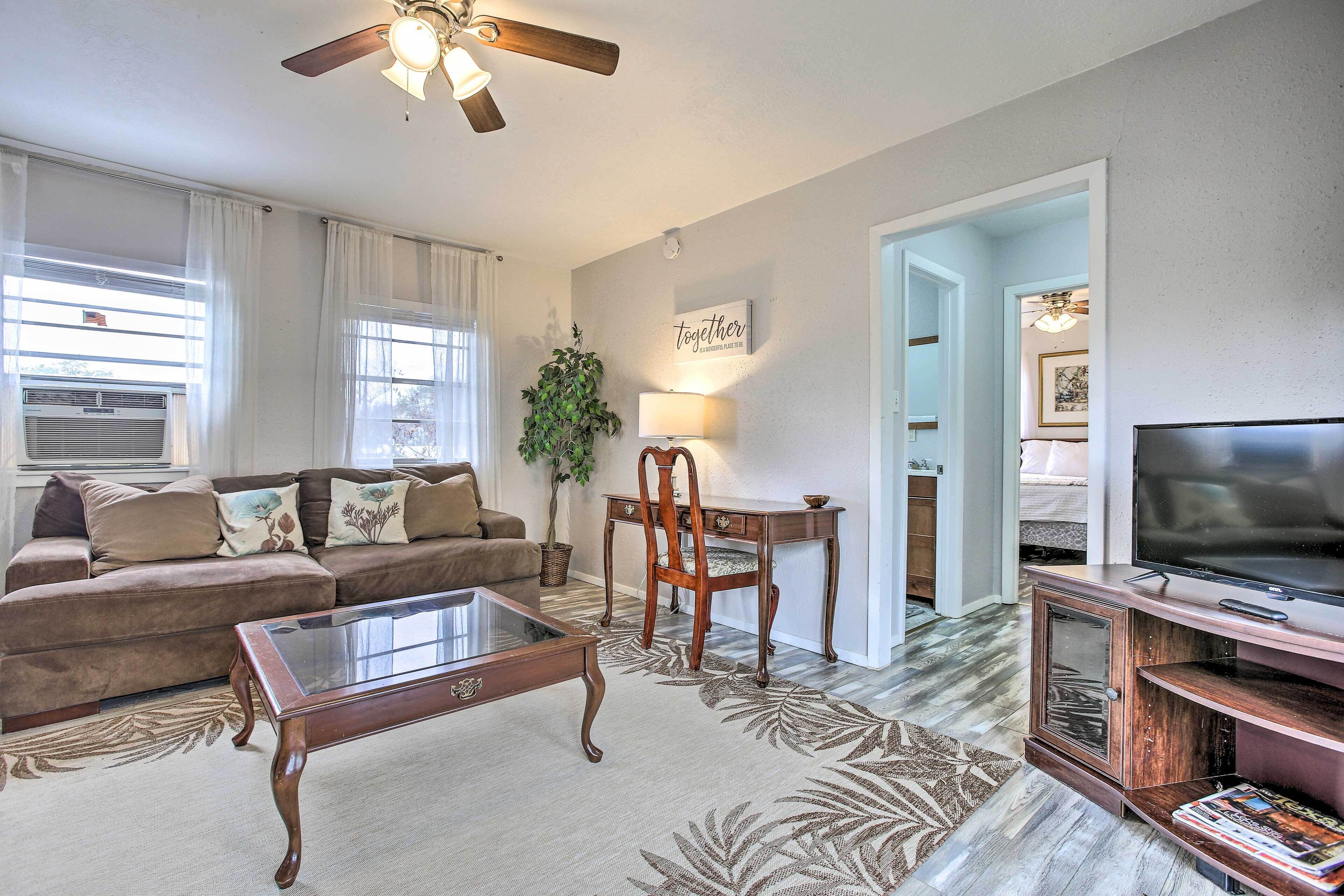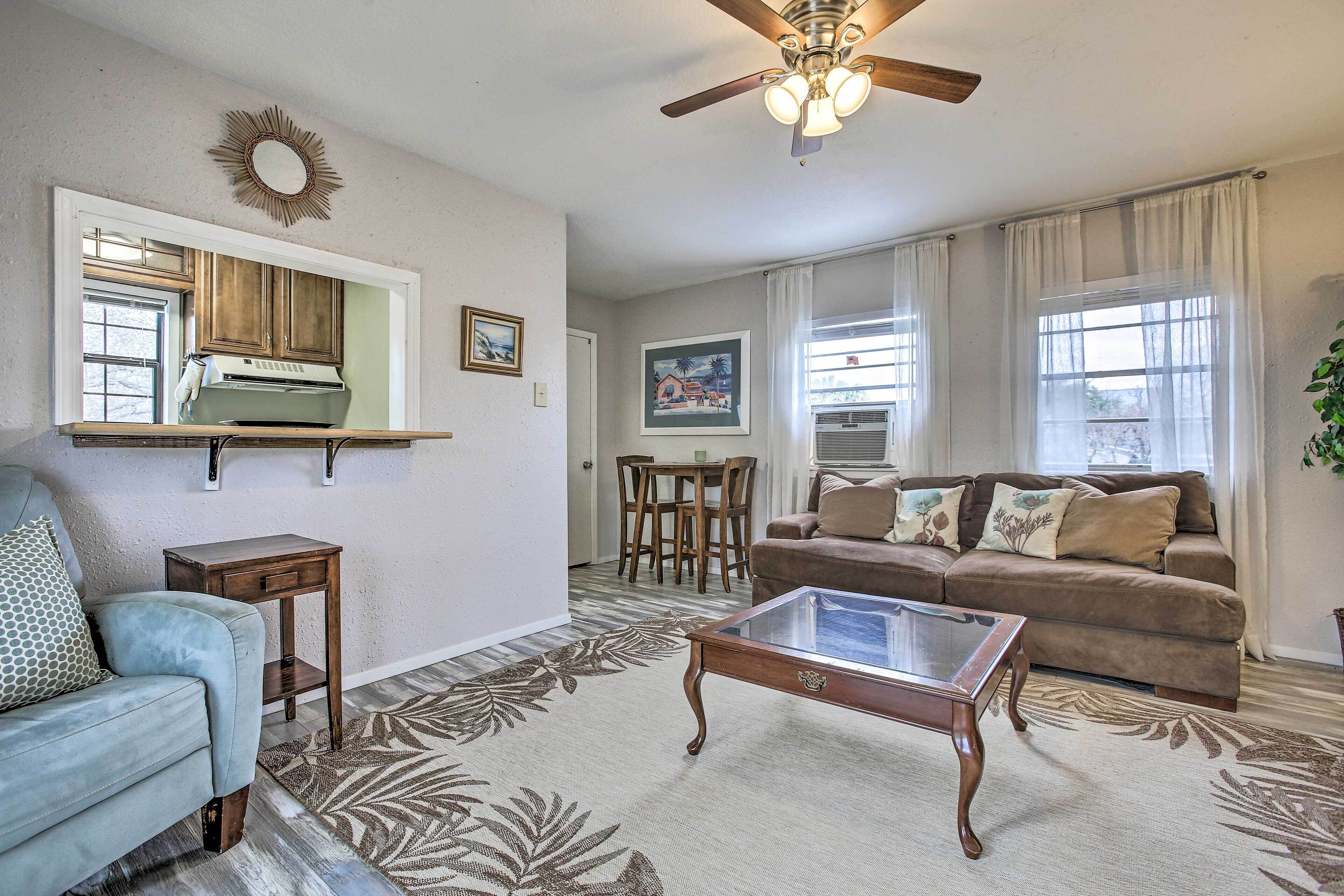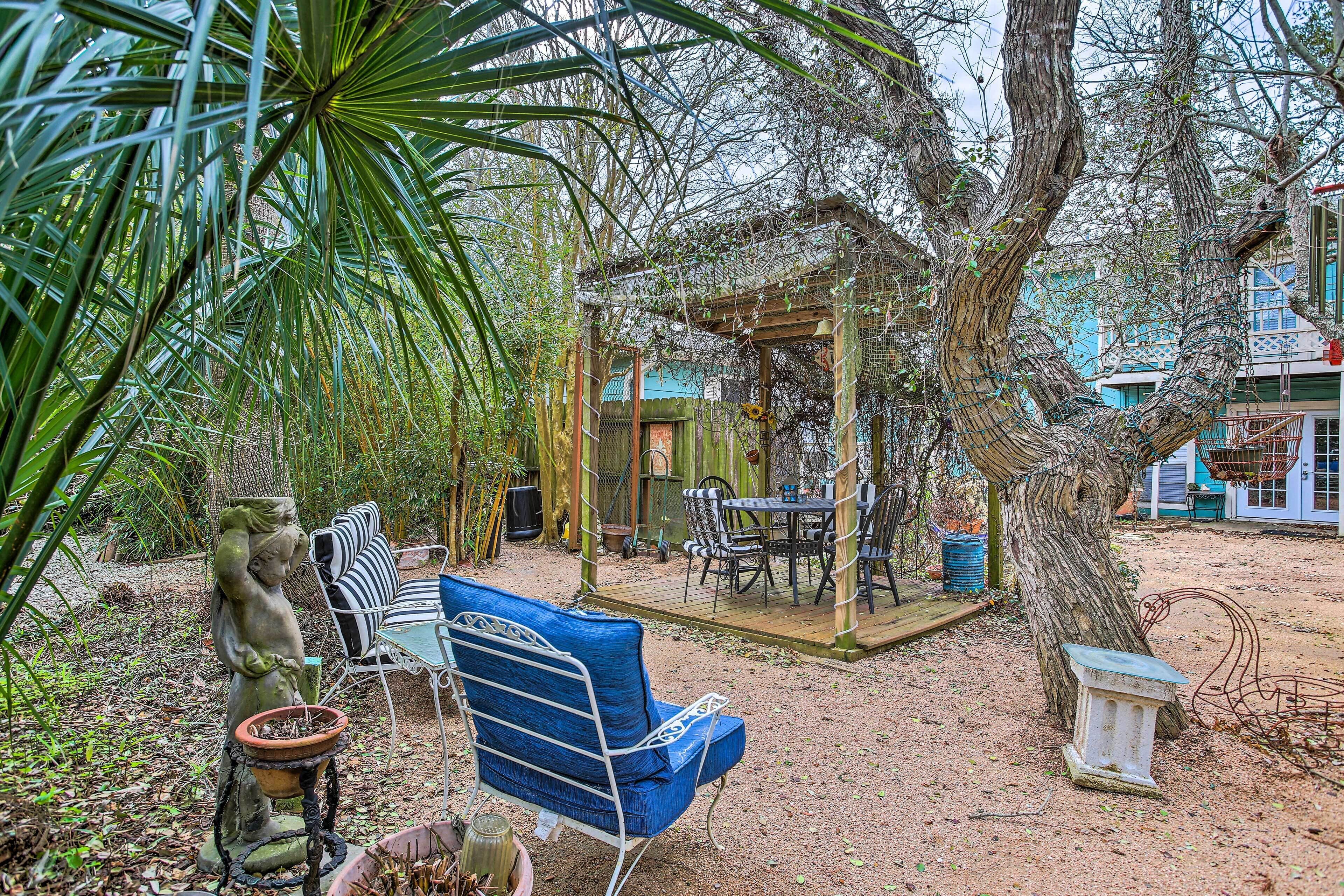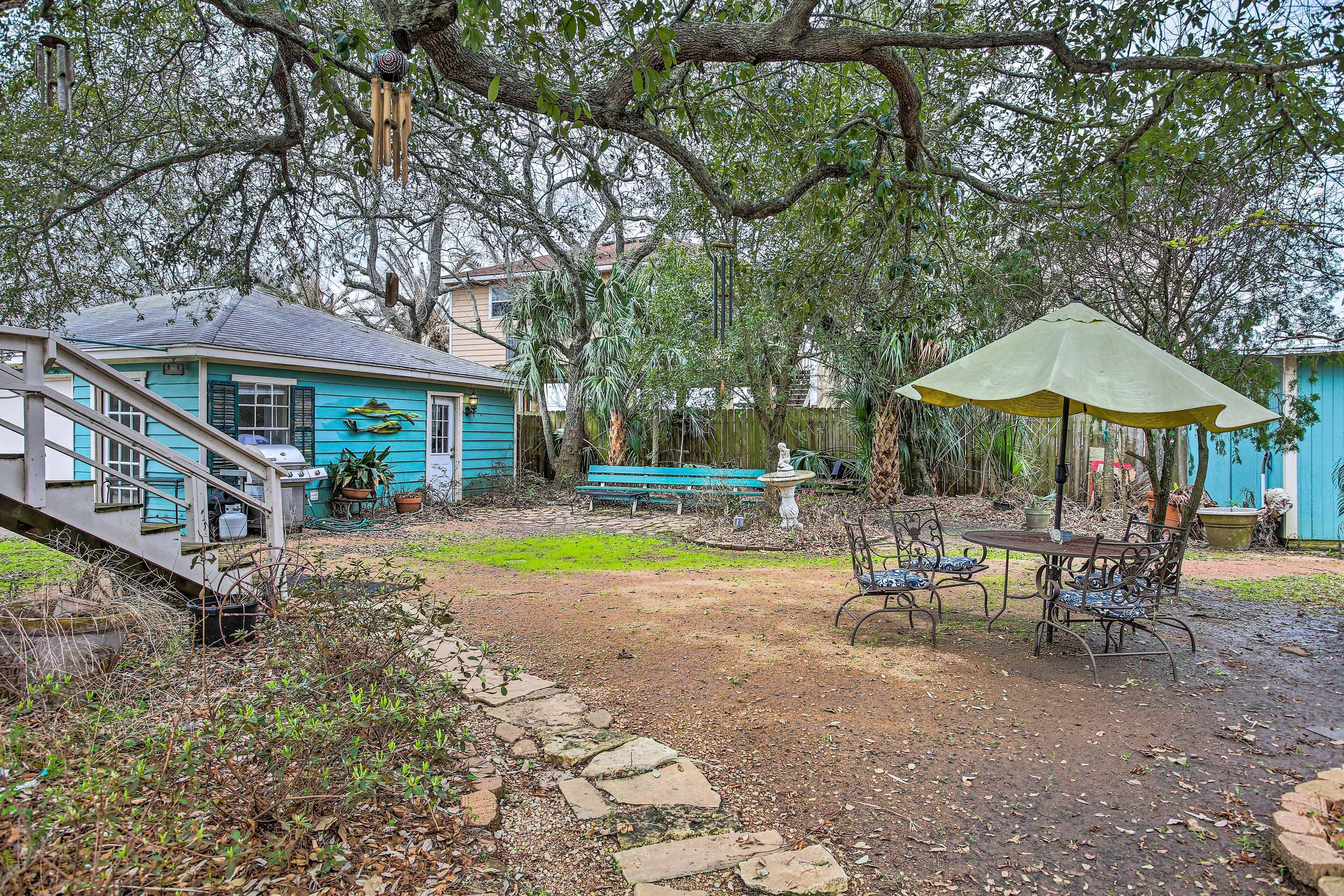 San Leon Villa: Walk to Restaurant & Beach! Get away from it all when you book this off-the-grid getaway in Texas! Located in the bayside town of San Leon, this 1-bedroom, 1-bath vacation rental features a well-equipped kitchen, a shared outdoor space, and all of the conveniences of home. Step out onto the patio where you will be greeted with a garden, a hammock, and plenty of space for your pets...