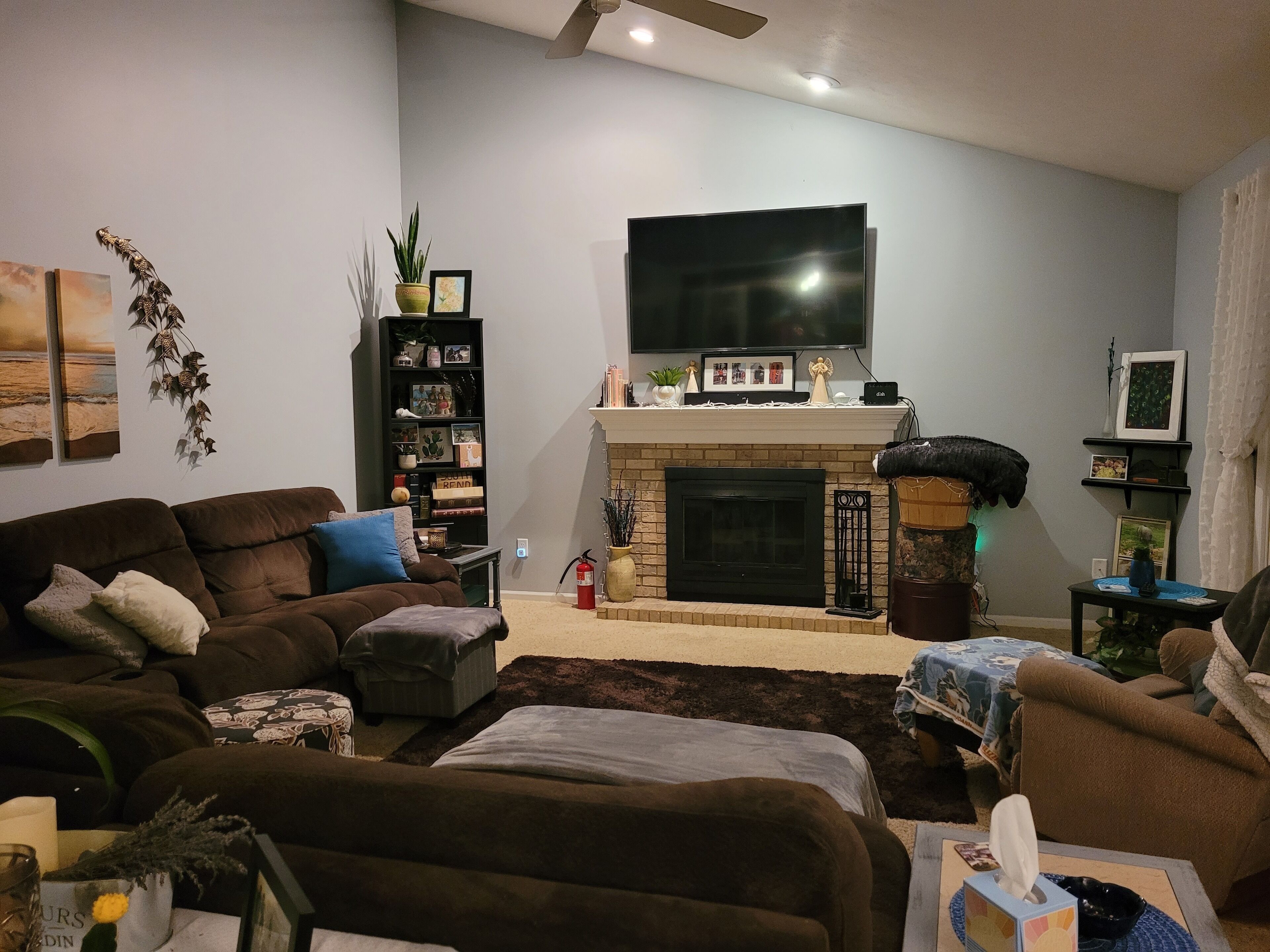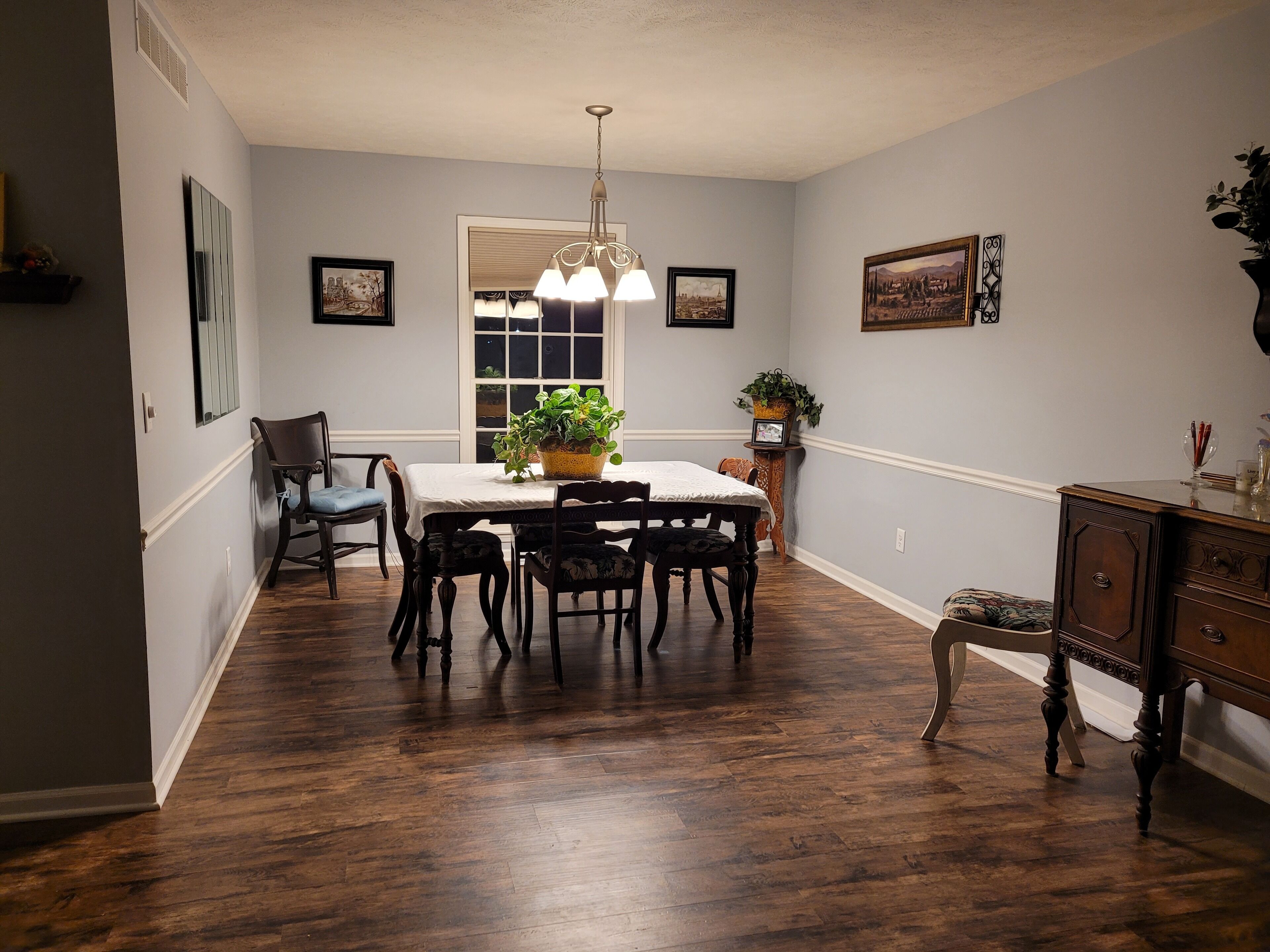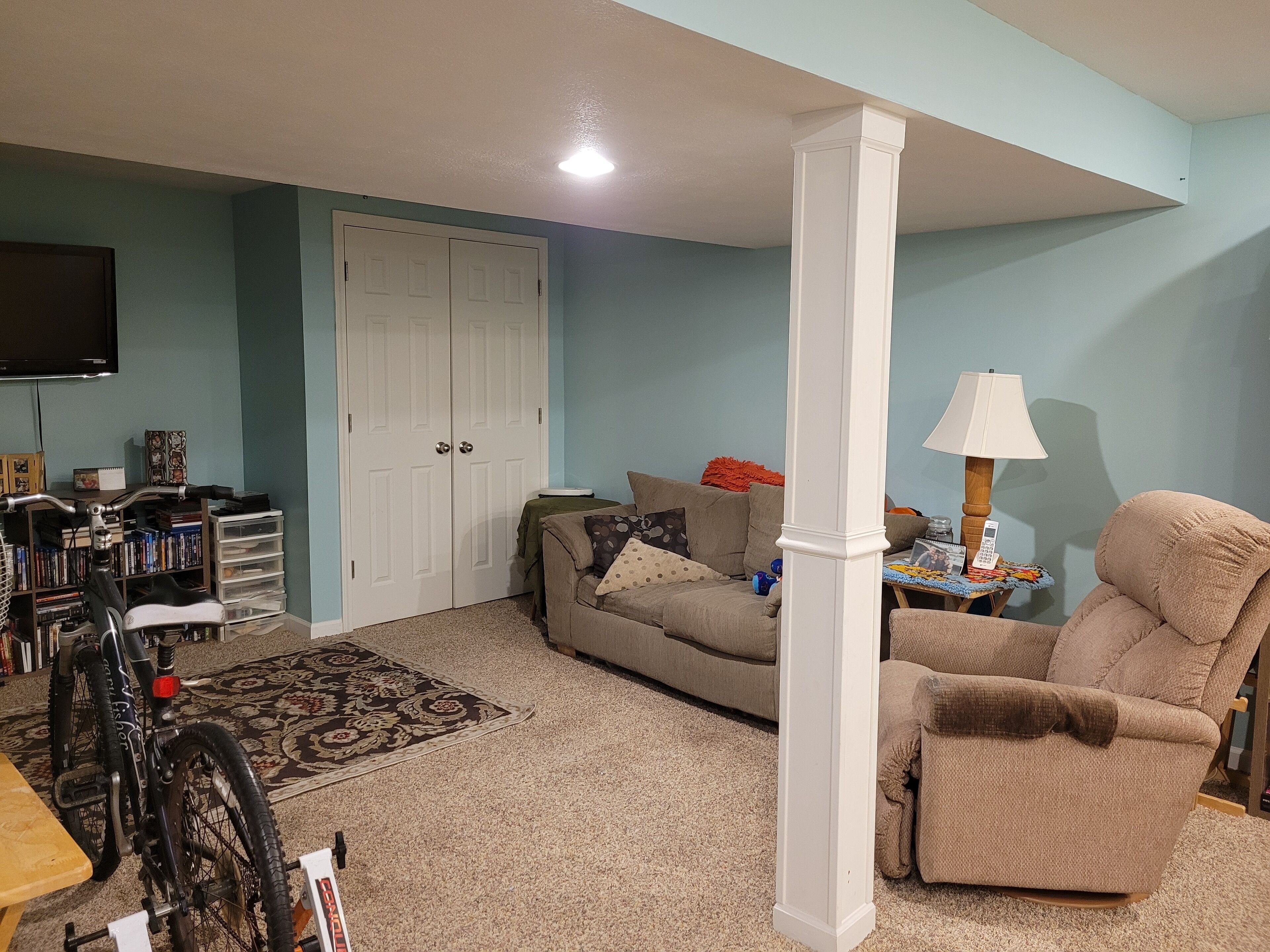 Large Comfortable Home with Large Deck and Lights This 2-story home has plenty of room for large families and friends. Comfortably sleeps 7 with added air mattresses to sleep 8. Basement exercise room with t.v. Main floor has large t..v. with sectional couch and kitchen. Bathrooms on every floor with easy access to the garage. Large backyard deck with grill and lighting for evening parties.