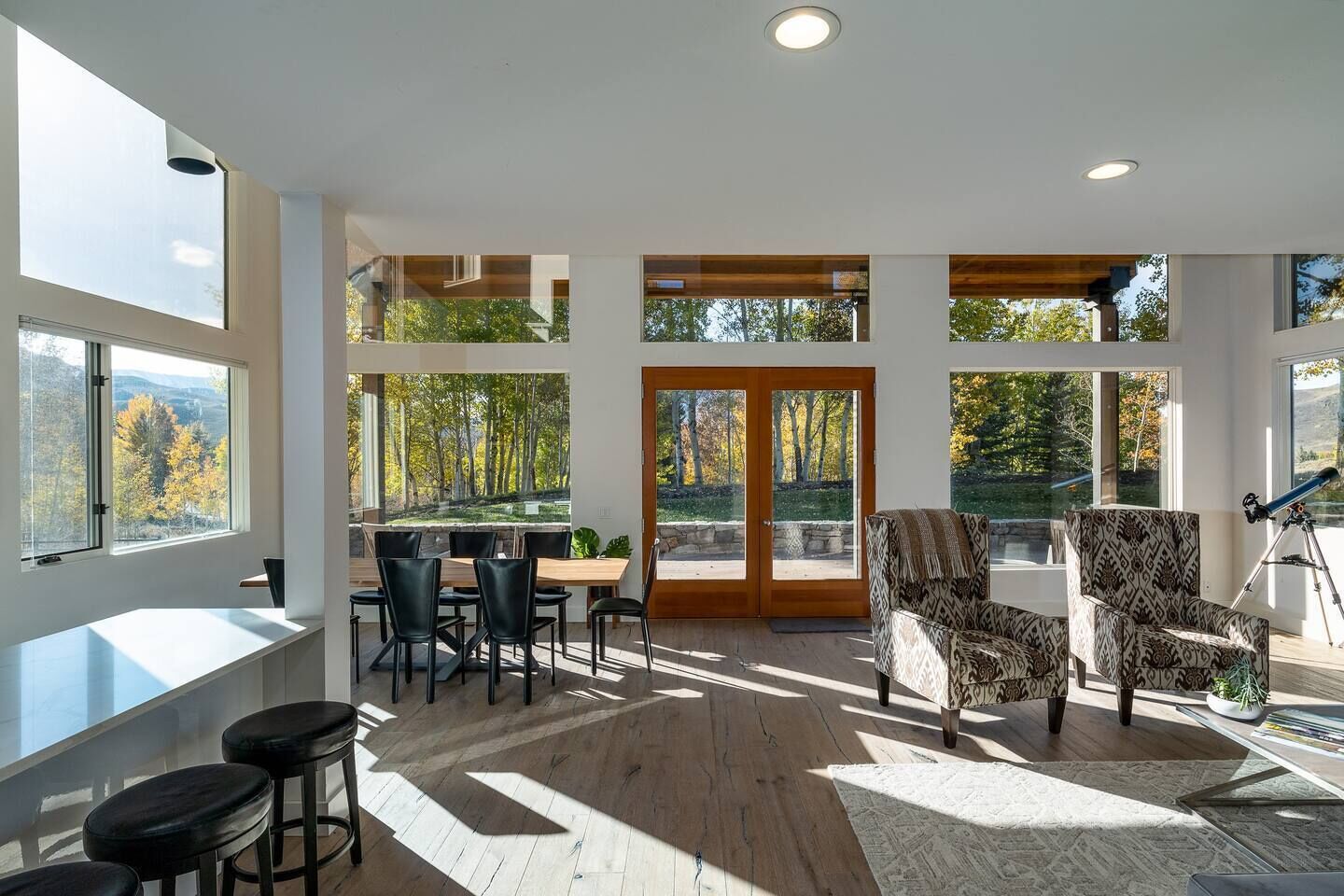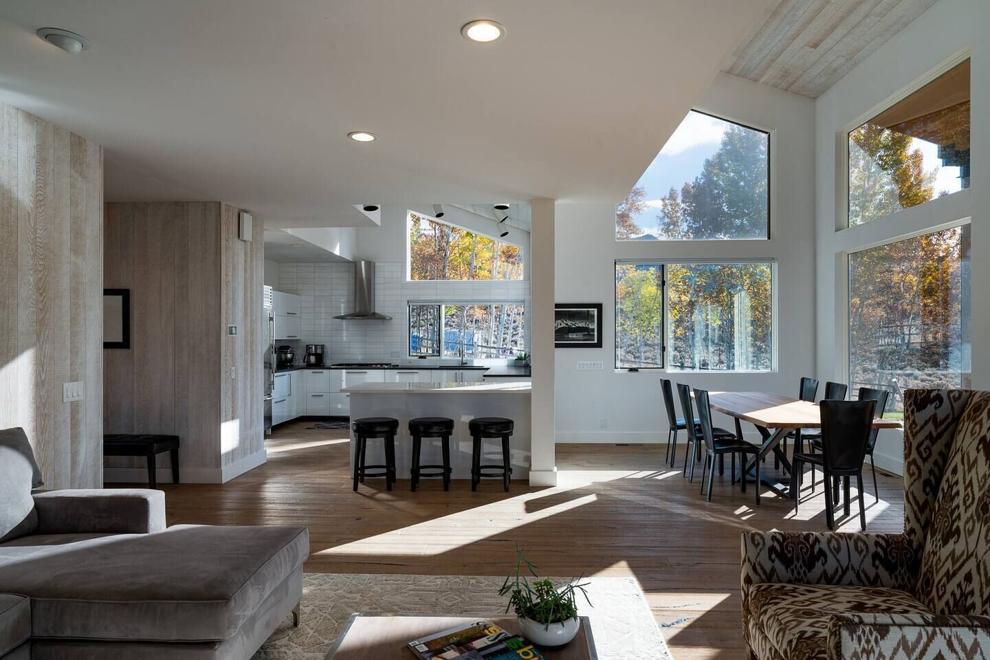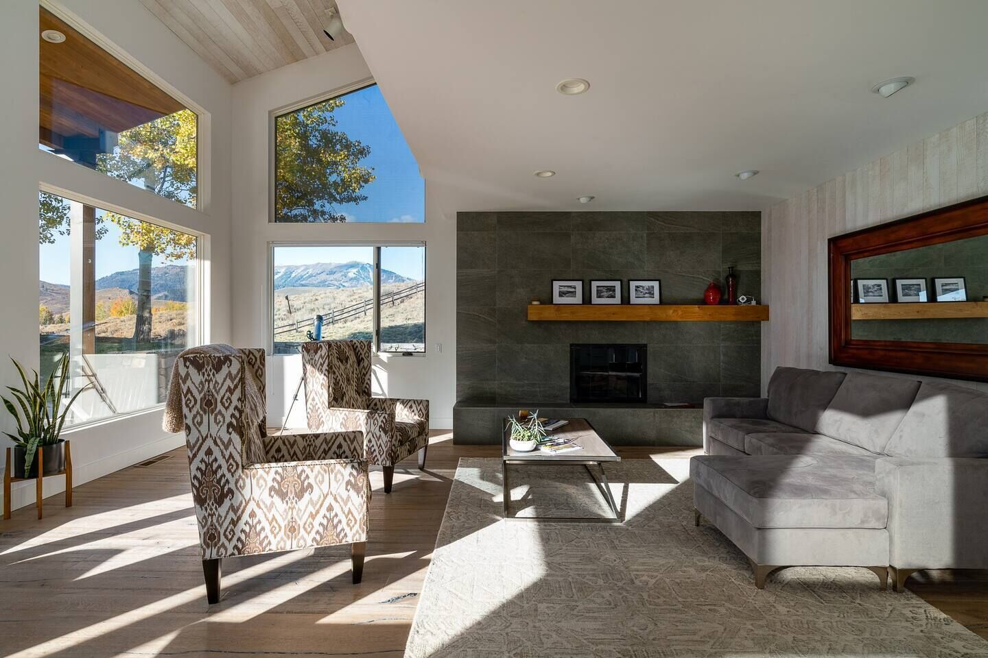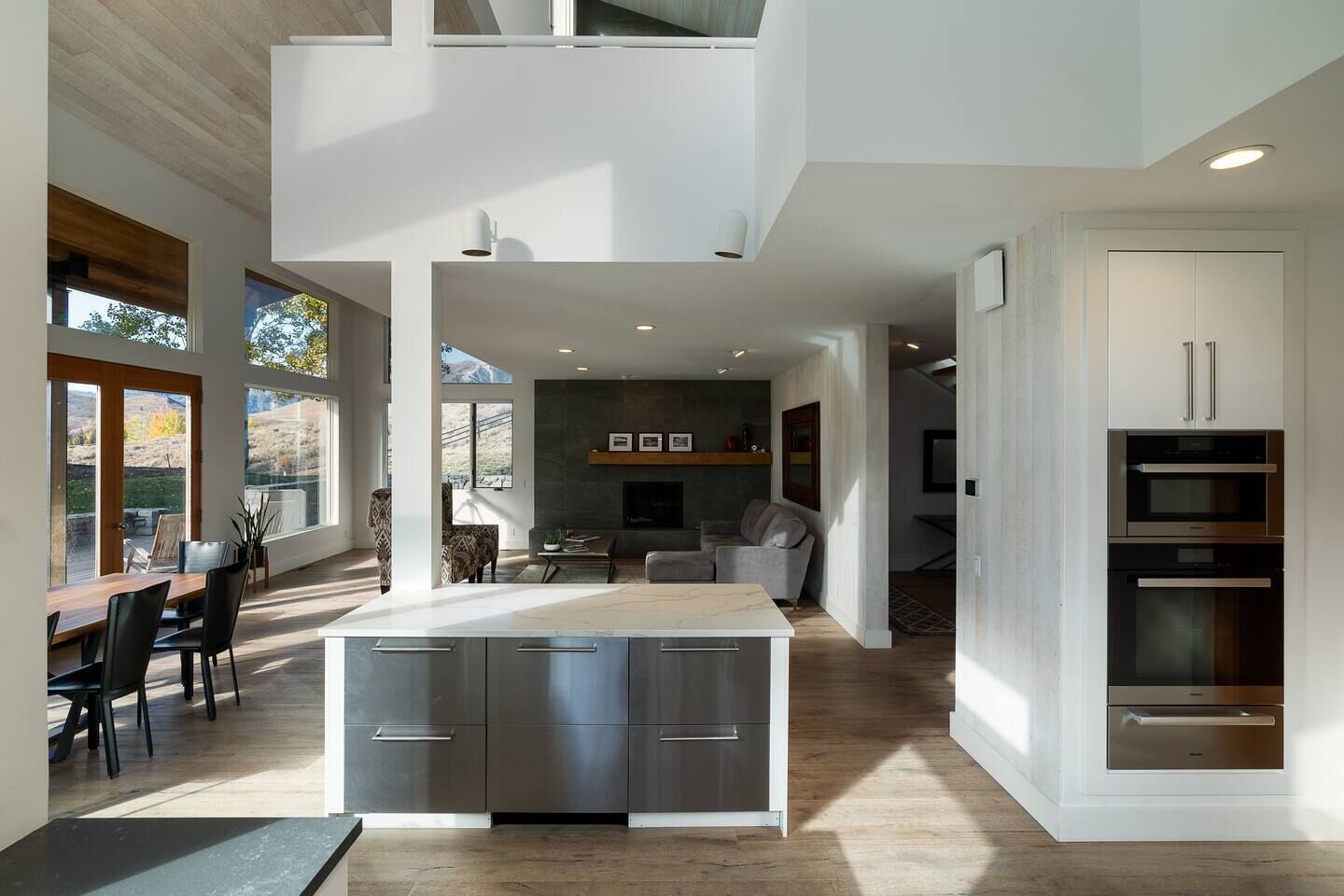 Stunning Elkhorn Retreat Located in Elkhorn, this beautiful 4 bed 2.5 bath home sits on 2 acres and backs up to a nature preserve at the base of Proctor Mountain and the Sawtooth National Forest. The home has been recently remodeled and includes extra touches to make your stay comfortable like heated bathroom floors, a private hot tub, multiple fireplaces throughout the home and top of the line appliances in the kitchen. The home is also setup well for family dinners or hosting, with a 7 seat dining table, kitchen island for hors d'oeuvre and serving, two dishwashers, and a full table setting with serving dishes.