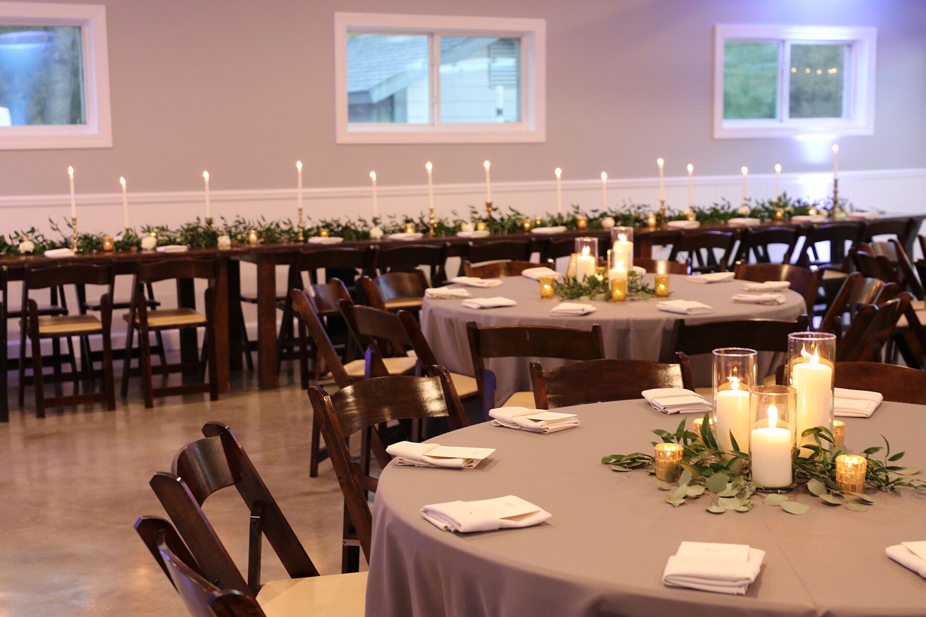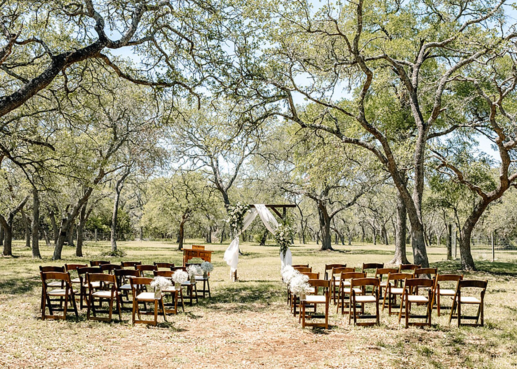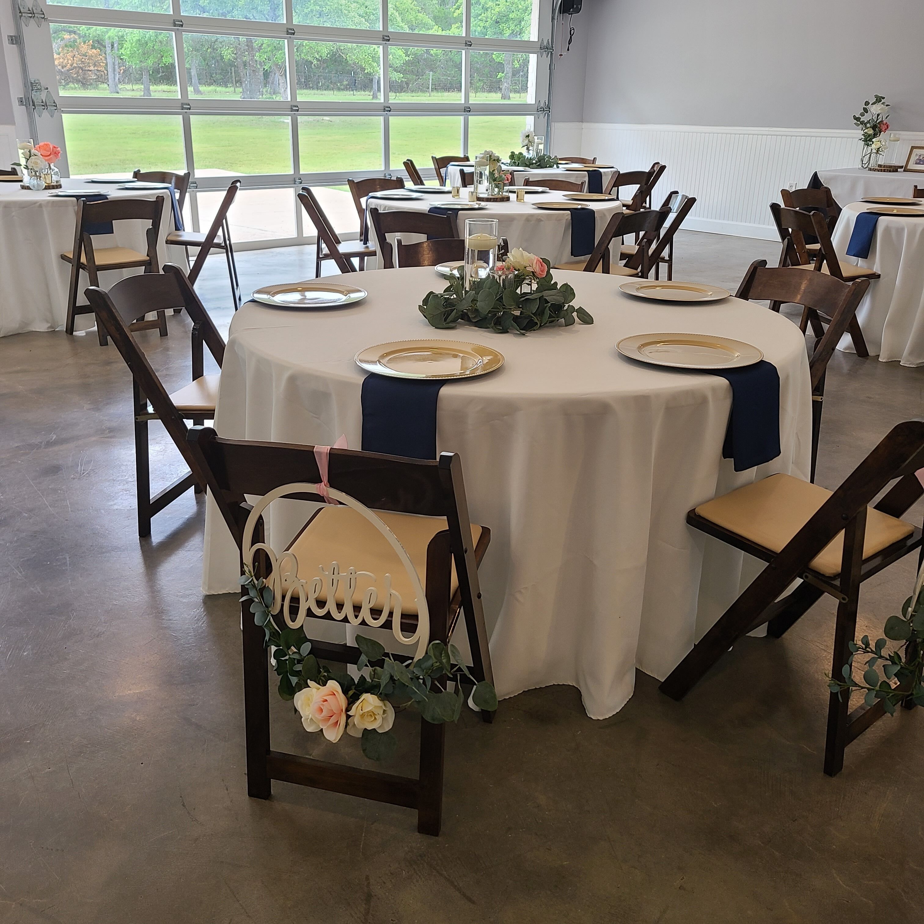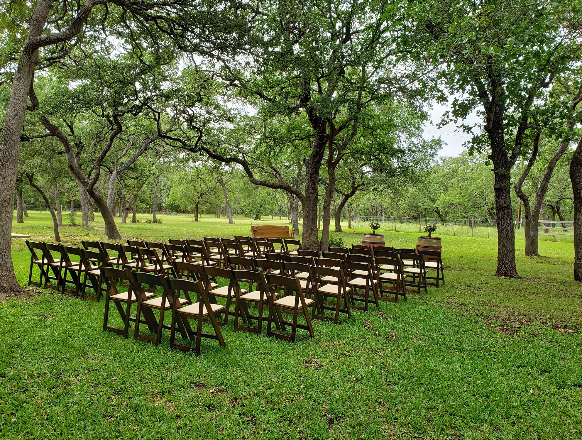 Events at The Whispering Oaks Estate in Dripping Springs on 10 Acres One event with up to 40 guests is included in the booking price.There is an additional $40 per person charge for guest counts between 41 and 80. The extra charge will be added to the booking as an additional payment.• Climate controlled event space• Fruitwood folding chairs• Ten 60 inch round tables• Four banquet tables• Wooden A...