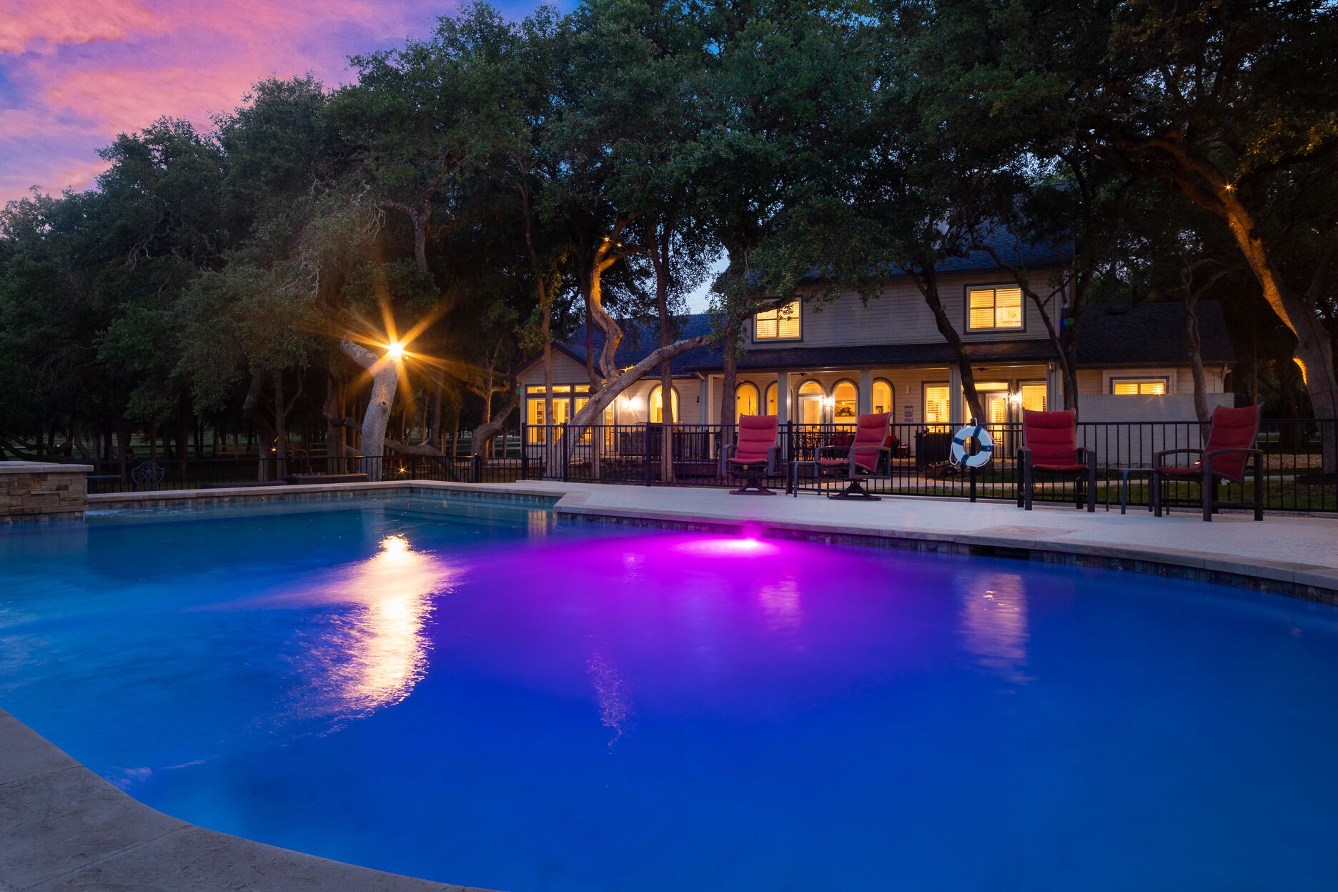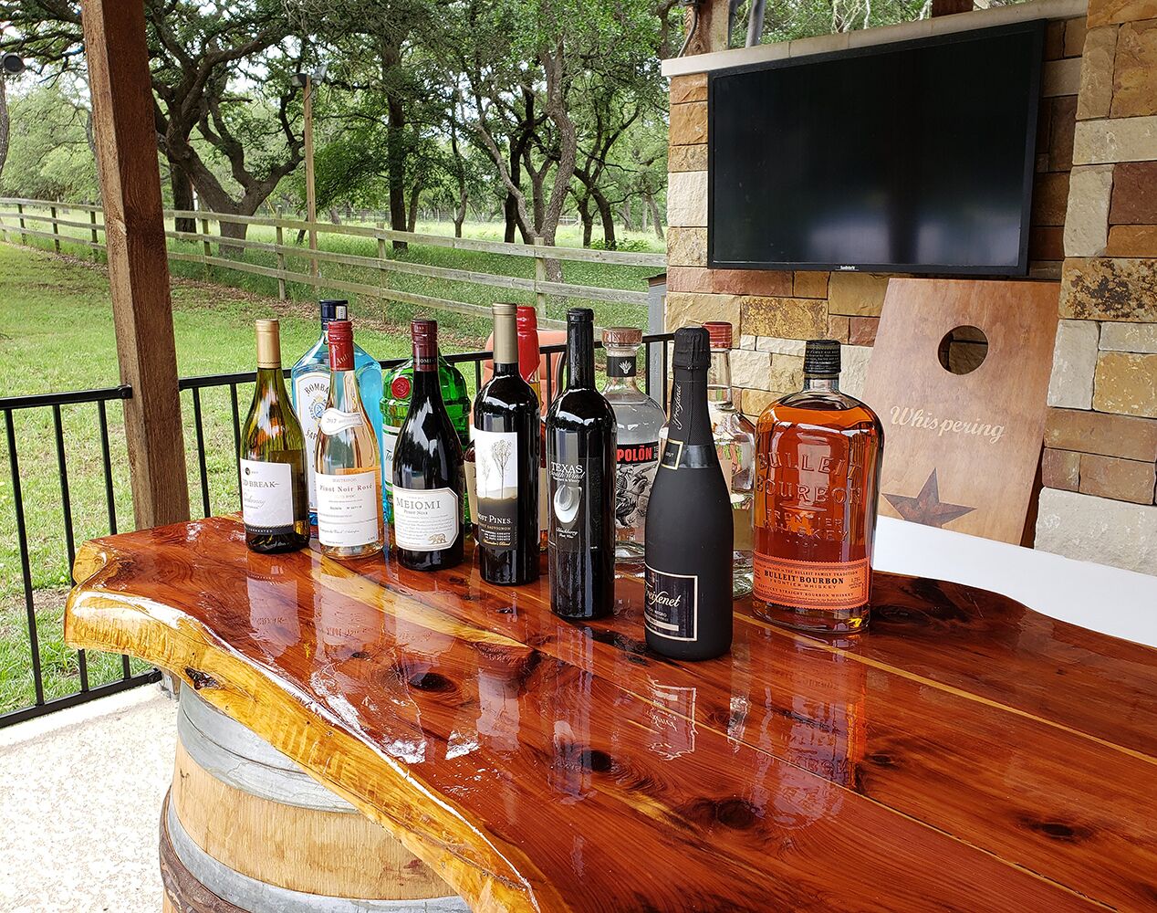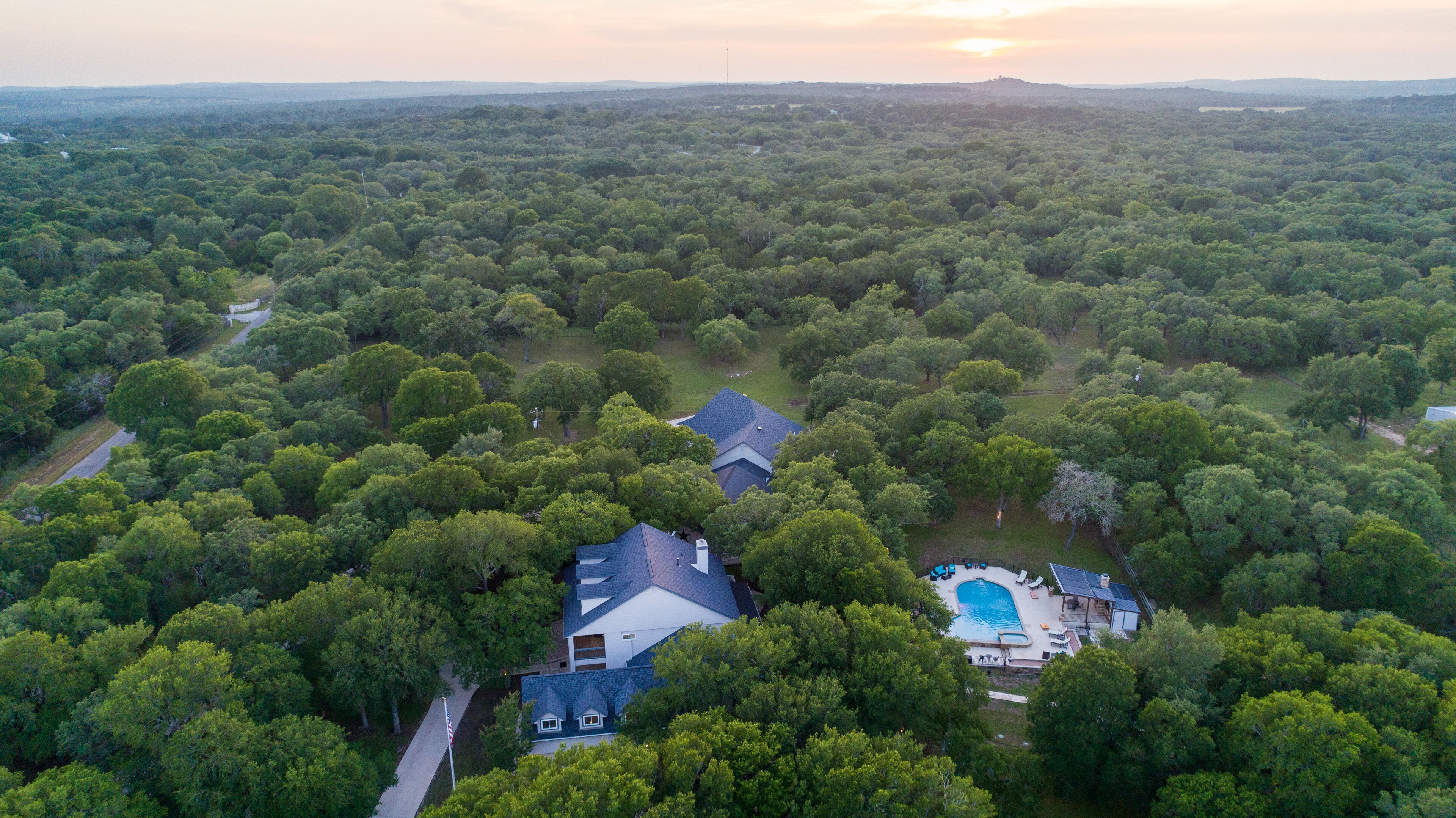 Events at The Whispering Oaks Estate in Dripping Springs on 10 Acres One event with up to 40 guests is included in the booking price.There is an additional $40 per person charge for guest counts between 41 and 80. The extra charge will be added to the booking as an additional payment.• Climate controlled event space• Fruitwood folding chairs• Ten 60 inch round tables• Four banquet tables• Wooden Arbor• Wedding with up to 80 guests (40 guests included in booking price)• Indoor sound system• 3 Glass garage doors in event space• Endless options for outdoor ceremony and cocktail hour• Access to the event space upon check in• Event space has built in bar and vendor space• All vendors are welcome• Bring your own alcohol(All alcohol must be served by a TABC certified bartending service during an event)• Parking lot• LED projector and screen• Commercial refrigerator• Residential refrigeratorLet us host your special event and provide accommodations for your guests during weddings, reunions, birthday parties, retreats, corporate functions and more. Our newly renovated event space is the perfect canvas for your next event. The space includes a wall of glass doors that retract and provide seamless indoor/outdoor entertaining. Our built-in bar area and bar tending services will keep your guests spirits high.The Estate:The Whispering Oaks Estate offers a stunning overnight stay for up to 25 guests in the Texas Hill Country. The Estate is nestled on over 50 acres of gorgeous ranch land with an abundance of Texas Oak trees and wildlife. This French Colonial Equestrian Home is comfortably furnished with elegant farmhouse finishes. The custom chefs kitchen is fully equipped with anything you might need during your stay, and so beautiful that you'll never want to leave. The large outdoor area includes a fenced in pool, hot tub and pool side cabana for year-round enjoyment. * WiFi not high speed.* Only 15 cars allowed to park in the driveway.* ALL cars must park in the parking lot during the event.* NO cars allowed to park in yard/grass.* NO cars are allowed to park on the street.* NO RV's allowed.* Pool is not heated. Hot Tub can be heated year around.**BBQ Grill is Propane - We provide tank you provide gas by refilling tank or doing a tank swap. Must leave new tank if you do the tank swap. You may bring your own tank.Early Check-in is available for a fee:1 hour $2002 hour $4003 hour $600All payments must be made prior to arrival.Late Check out may be available for a fee1 hour $2002 hour $4003 hour $600All payments must be made day before departure