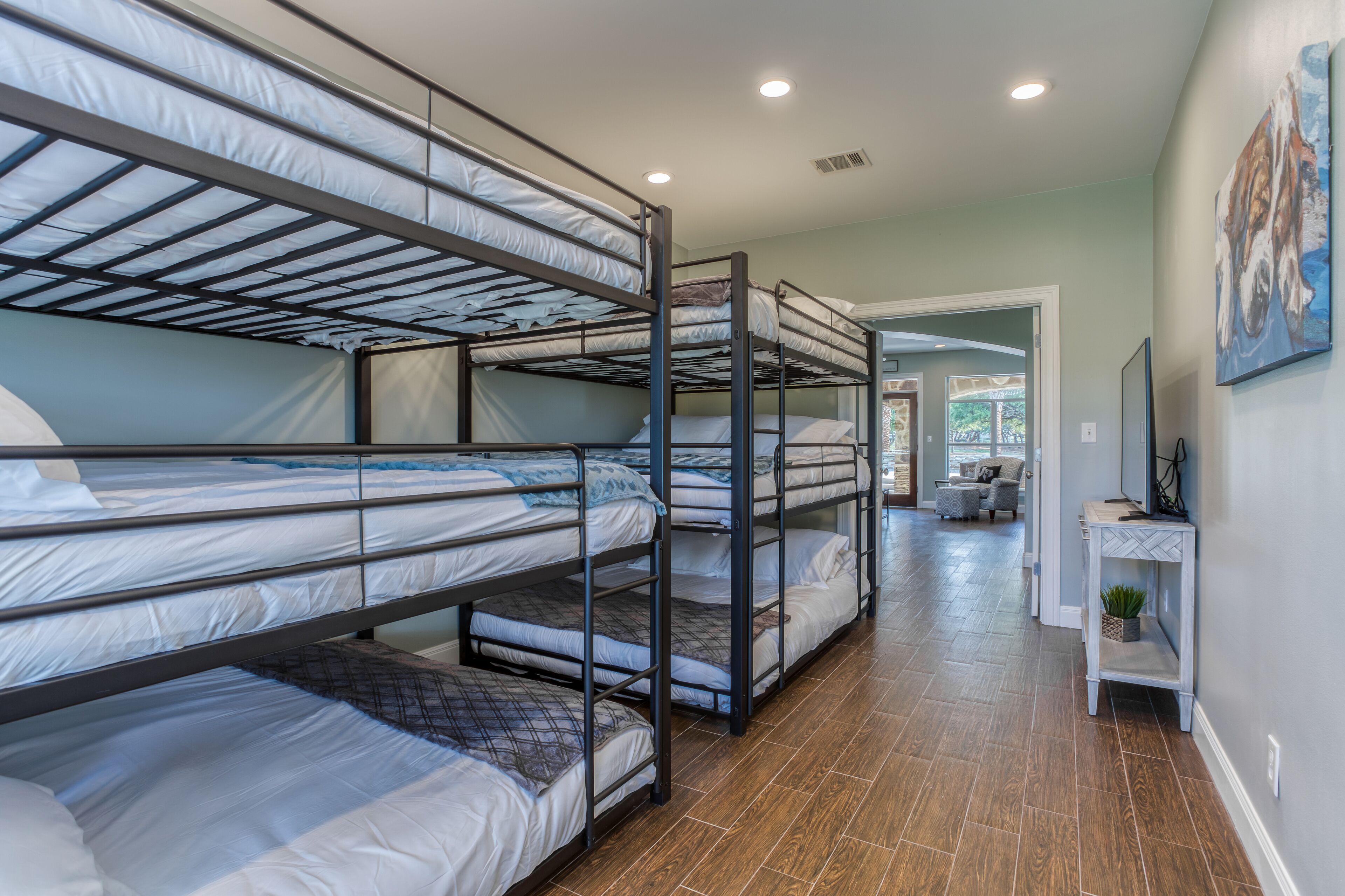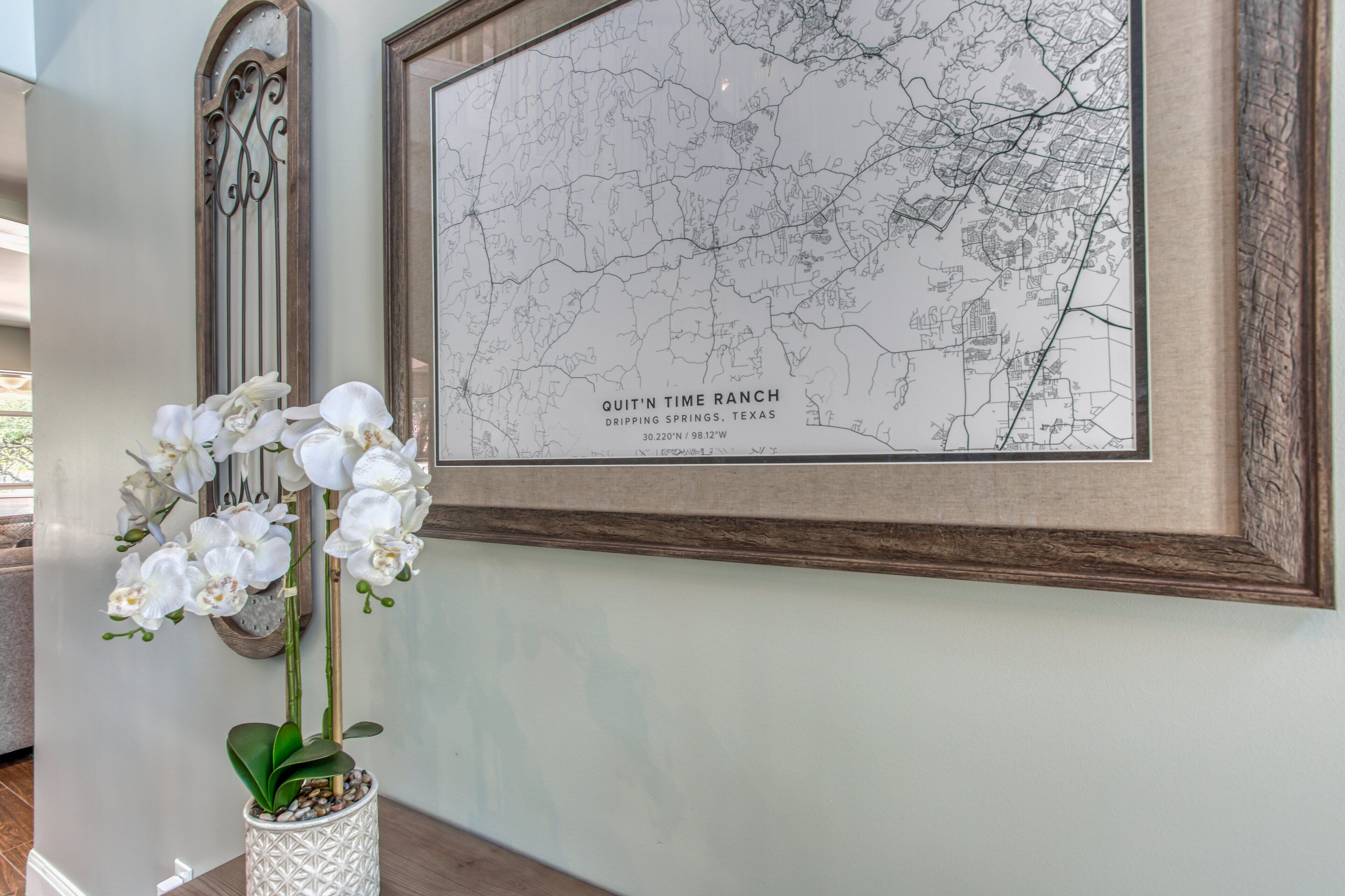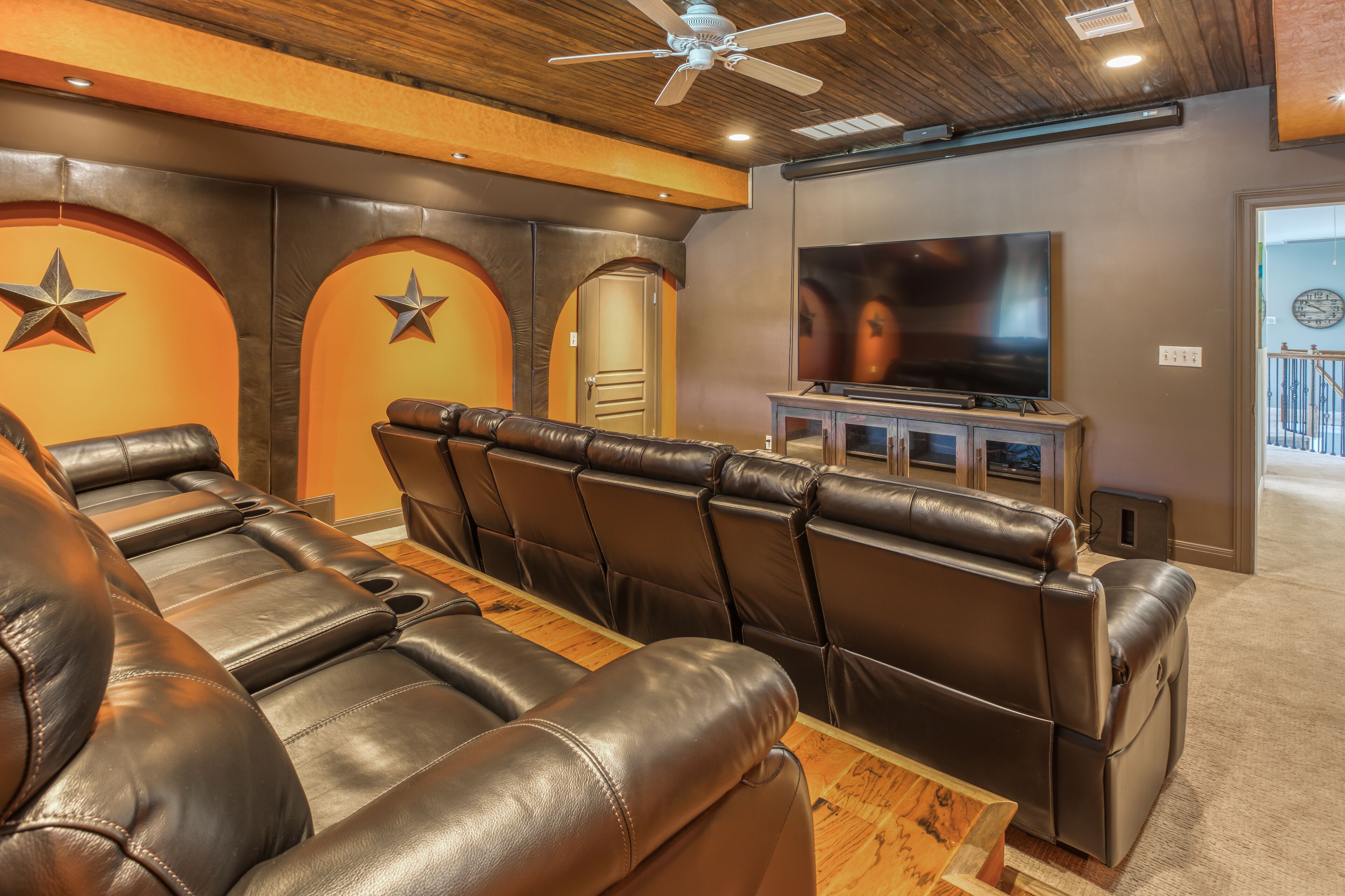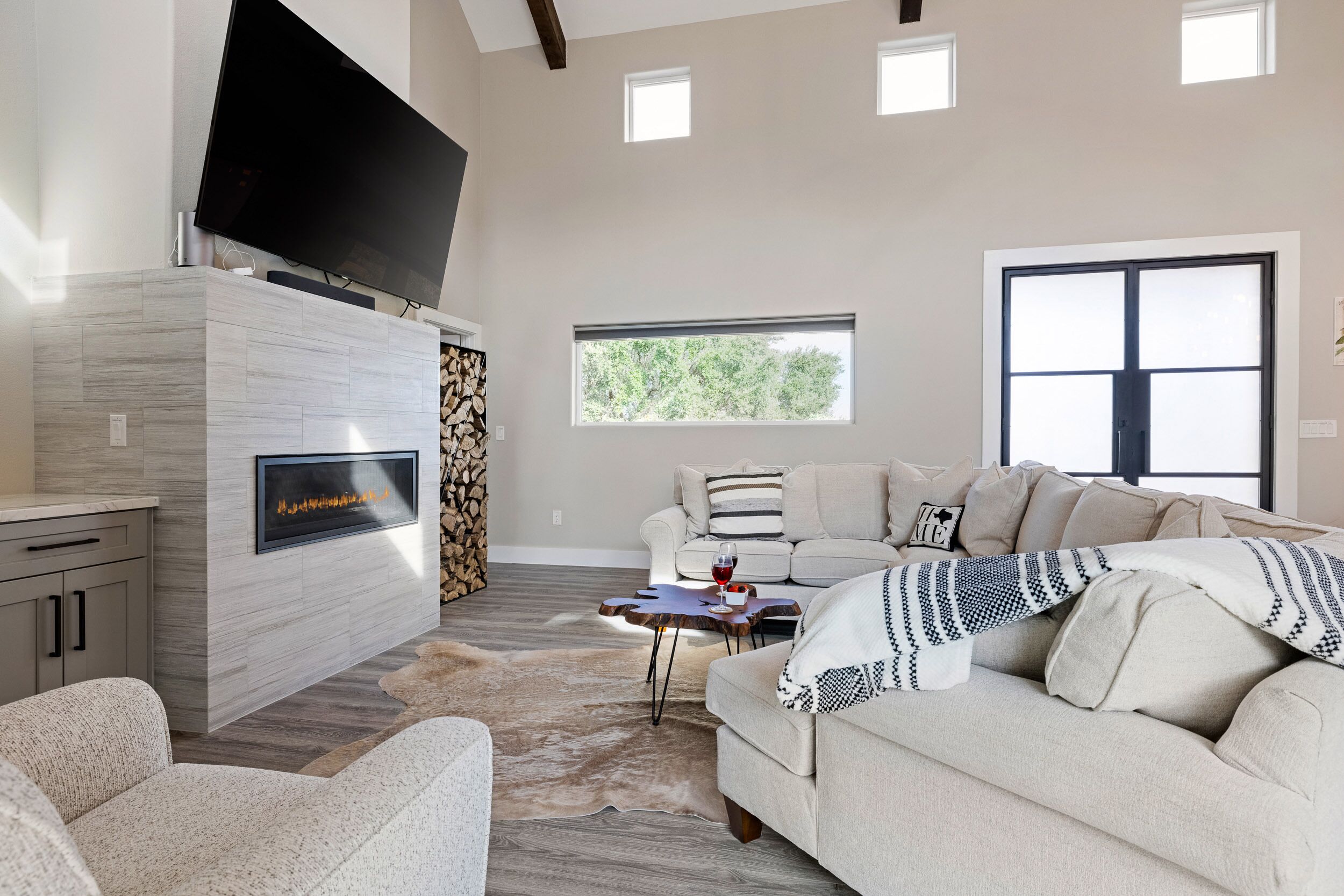 Ranch Estate With Pool and 4 Hole Golf Course! Sleeps 30 - Luxury Vacation Experience! **Please note: there is a temporary 31 night minimum stay for this property.This spectacular Dripping Springs Quit n Time Ranch and Magnolia is situated on five wooded acres in a very private and quiet, gated community of Settlers Ridge. In addition to Dripping Springs being the “wedding capital of Texas,” you will be close to wineries, breweries, restaurants, and about 25 minutes from Austin. Not only is there plenty to do in the area, you will be amazed by all the fun activities available at this property.Perfect for larger groups, are two amazing, contemporary farmhouse style homes on one property. First is the completely remodeled two-story home (main house) offering six bedrooms and four full bathrooms within 4,200 square feet. Second, is a newly built, 2430 square foot, two-story guest house with three bedrooms and three bathrooms. In total, this amazing nine bedroom and seven bathroom deluxe vacation property can easily sleep up to 30 guests in complete luxury.Upon entering through either of the front doors, you will find yourself within the impressive main living space offering the living room, kitchen, and dining areas. The homes professionally decorated with a contemporary ranch theme with tile floors that looks and feels like hardwood throughout.Quit n Time Ranch (Main House)Living Room: The living room offers a large sectional and two comfortable chairs with a plethora of entertainment options, including the 65” Smart TV that comes with 150+ premium Direct TV stations (including an NFL package), a Sonos Soundbar system, and DVD player. There are large windows for plenty of natural light and access to the backyard oasis.Kitchen: Completely renovated, this kitchen is a gourmet's dream and offers high-end, stainless-steel appliances, including a large refrigerator, dual convection ovens, and a 6-burner electric cooktop. It is fully stocked with everything needed to prepare and enjoy any snack or amazing meals. And for coffee lovers, you will have a choice of a drip or Keurig coffee maker to start your day. There is also seating for ten at the kitchen bar and massive center island.Dining area(s): Adjacent to the kitchen is a dining area with seating for six and seating for six at the breakfast nook table. Combining all these areas (including the kitchen bar), you will have seating for 22 guests!Bedrooms and Bathrooms:All bedrooms are outfitted with Tribe Living luxury mattresses and linens, white duvet covers, and a choice of a high-end down alternative or memory foam pillows, complemented with luxury bath towels for a true resort experience. Every room also features a smart TV with 150+ premium DirecTV channels including the NFL package!Grand Master Suite (Main level) — King size bed, 55” HD Smart TV (DirecTV with premium channels), the “look and feel of hardwood” tile flooring, a desk with a printer, and backyard access. The full master bath offers double granite counter sinks, a makeup vanity, water closet, a large soaking tub, and separate shower, and plenty of natural light.Queen Bunk Room (Main Level) — Two sets of triple luxury queen bunk beds to sleep up to 12 guests; 55” HD Smart TV with DirecTV and premium channels, hardwood-like tile flooring, and access to the newly renovated full bathroom a tiled tub/shower combo.King Bedroom 3 (Upper Level) — King bed, 55” HD Smart TV with premium DirecTV channels, and a Jack-n-Jill full bathroom shared with king bedroom 4, offering double sinks and a tile shower.King Bedroom 4 (Upper Level) — King bed, 55” HD Smart TV with 150+ premium DirecTV channels, and a shared Jack-n-Jill full bathroom.King Bedroom 5 (Upper Level) — King bed, 55” HD Smart TV with premium DirecTV channels, and private access to a full shared bathroom with a tub and shower combination.Bedroom 6 Bunk Room (Upper Level) — Two sets of triple twin bunk beds, 55” HD Smart TV with premium Direct TV channels, and access to the full shared bathroom.Additional Upper-Level Rooms/FeaturesTheater/Movie Room — This media room features seating for twelve to fourteen guests with two rows of plush and fully automated movie theater layback seating. There is a high-boy café style table with additional seating for four to six people, which is also a terrific game table. Enjoy movies and shows on the 85” HD Smart TV with 150+ premium Direct TV stations and NFL package, plus full Sonos surround sound system, DVD, Apple TV, and Xbox One.Game Room — Enjoy playing for hours on the custom pool table and matching 14-foot shuffleboard table overlooking the backyard. There is a 65” HD Smart TV with 150+ premium Direct TV stations and NFL package, plus Sonos, DVD, Apple TV, and Xbox One.Backyard Oasis Outdoor FeaturesThe multitude of outdoor activities and features this home offers will provide you a true luxury vacation experience. There is a 3-hole putting green, 4-hole par 3 golf course (about 40-yards per hole), basketball hoop, bocce ball court, cornhole, horseshoes, outdoor chessboard, practice roping steer, kids swing and baby swing, and BBQ area with two Weber grills.Main yard/pool area — The pool is spectacular with its depth of 10 feet and a soothing stone waterfall. There is an attached 12-seat hot tub — both surrounded by decorative stone decking. A regulation-size basketball hoop for the pool has also been added. The pool can be heated upon request prior to arrival up to a temperature of 82 degrees for a fee of $235 per day. Due to unpredictable outdoor temperatures and conditions mainly during fall and winter months, the pool cannot be heated October 1-March 31There are multiple seating areas including: Eight lounge chairs and two fire pits settled on the surrounding decks, along with table and chairs 10-seat outdoor dining table, plus lounge area with couch and chairs — all covered and includes ceiling fans and outdoor speakers. There's also