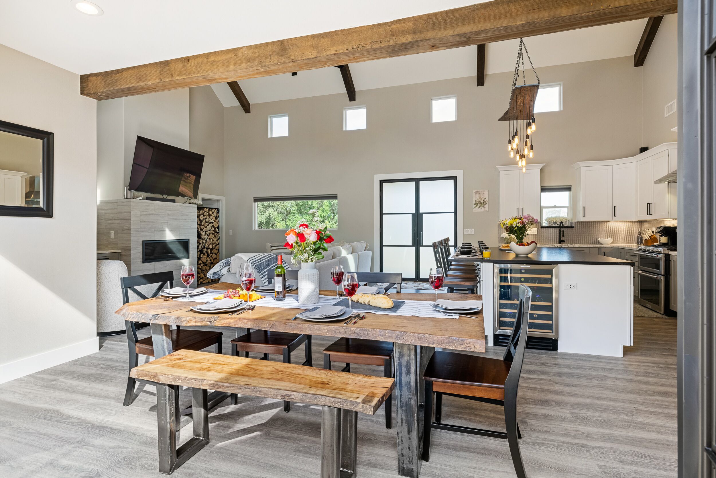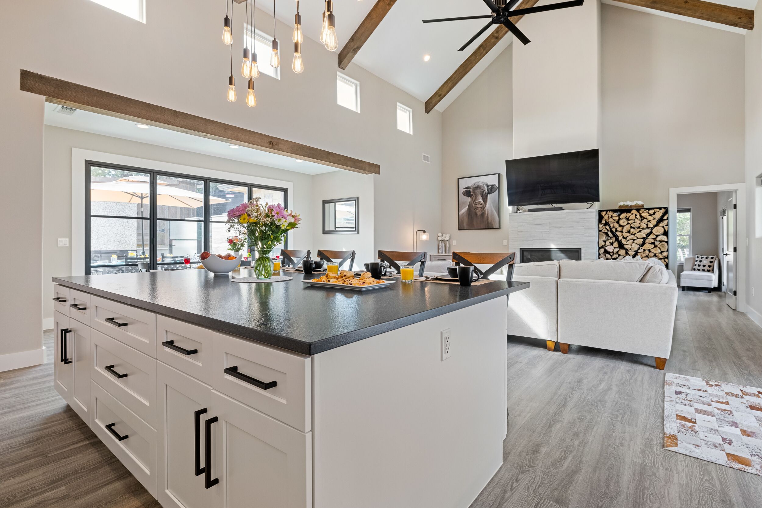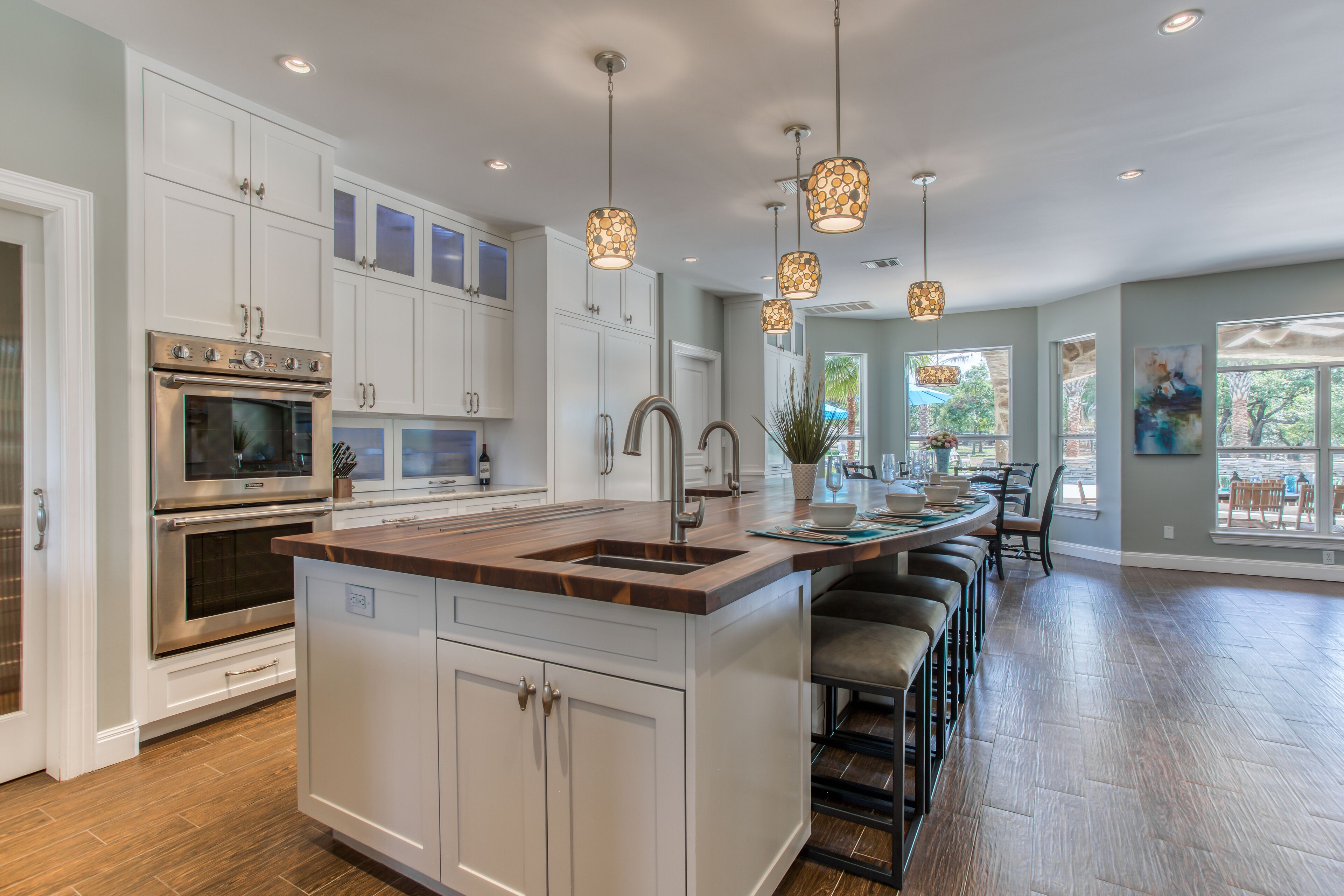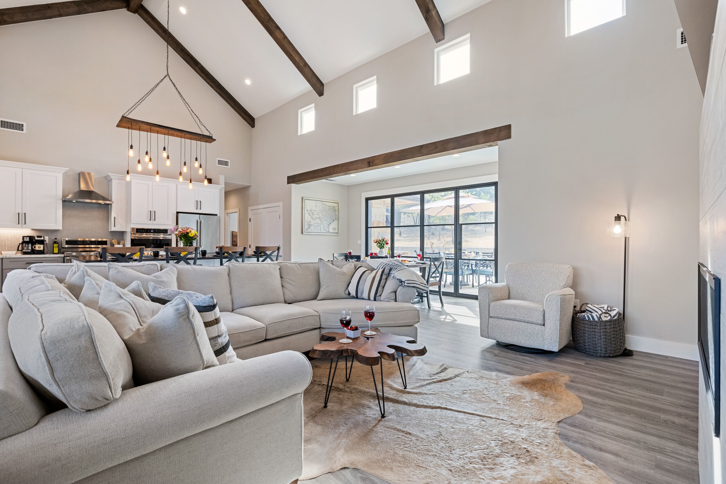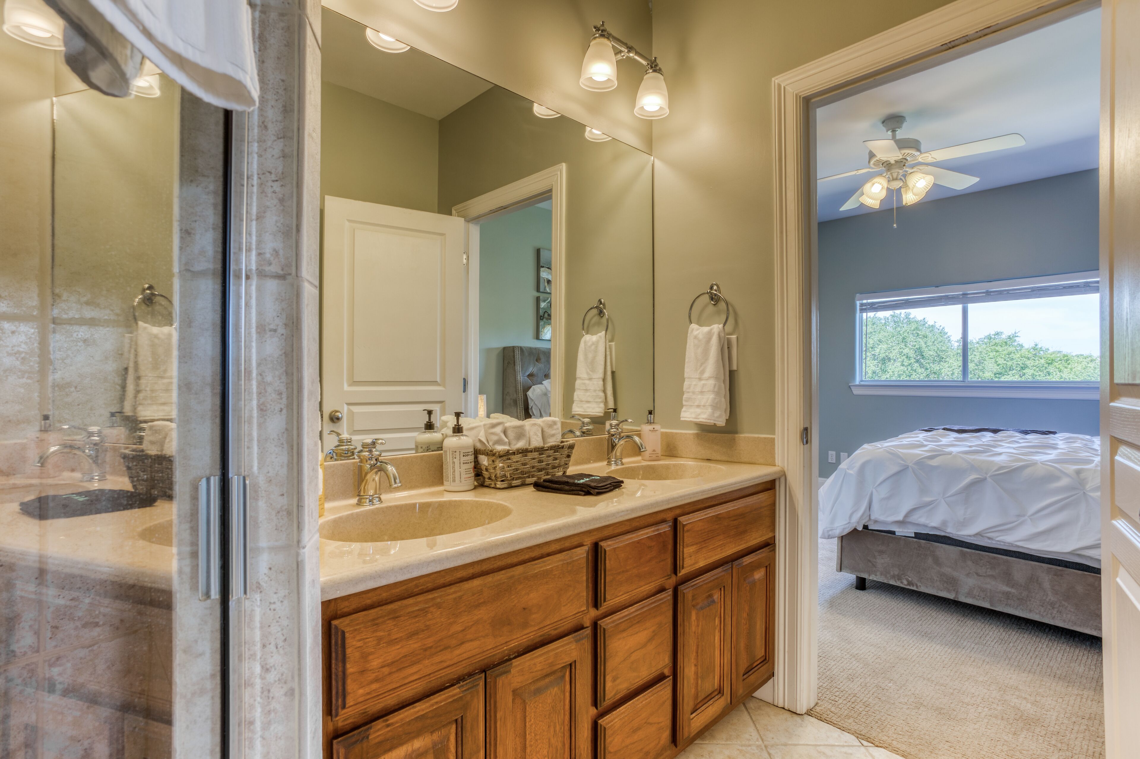 Ranch Estate With Pool and 4 Hole Golf Course! Sleeps 30 - Luxury Vacation Experience! **Please note: there is a temporary 31 night minimum stay for this property.This spectacular Dripping Springs Quit n Time Ranch and Magnolia is situated on five wooded acres in a very private and quiet, gated community of Settlers Ridge. In addition to Dripping Springs being the “wedding capital of Texas,” you will be close to wineries, breweries, restaurants, and about 25 minutes from Austin. Not only is there plenty to do in the area, you will be amazed by all the fun activities available at this property.Perfect for larger groups, are two amazing, contemporary farmhouse style homes on one property. First is the completely remodeled two-story home (main house) offering six bedrooms and four full bathrooms within 4,200 square feet. Second, is a newly built, 2430 square foot, two-story guest house with three bedrooms and three bathrooms. In total, this amazing nine bedroom and seven bathroom deluxe vacation property can easily sleep up to 30 guests in complete luxury.Upon entering through either of the front doors, you will find yourself within the impressive main living space offering the living room, kitchen, and dining areas. The homes professionally decorated with a contemporary ranch theme with tile floors that looks and feels like hardwood throughout.Quit n Time Ranch (Main House)Living Room: The living room offers a large sectional and two comfortable chairs with a plethora of entertainment options, including the 65” Smart TV that comes with 150+ premium Direct TV stations (including an NFL package), a Sonos Soundbar system, and DVD player. There are large windows for plenty of natural light and access to the backyard oasis.Kitchen: Completely renovated, this kitchen is a gourmet's dream and offers high-end, stainless-steel appliances, including a large refrigerator, dual convection ovens, and a 6-burner electric cooktop. It is fully stocked with everything needed to prepare and enjoy any snack or amazing meals. And for coffee lovers, you will have a choice of a drip or Keurig coffee maker to start your day. There is also seating for ten at the kitchen bar and massive center island.Dining area(s): Adjacent to the kitchen is a dining area with seating for six and seating for six at the breakfast nook table. Combining all these areas (including the kitchen bar), you will have seating for 22 guests!Bedrooms and Bathrooms:All bedrooms are outfitted with Tribe Living luxury mattresses and linens, white duvet covers, and a choice of a high-end down alternative or memory foam pillows, complemented with luxury bath towels for a true resort experience. Every room also features a smart TV with 150+ premium DirecTV channels including the NFL package!Grand Master Suite (Main level) — King size bed, 55” HD Smart TV (DirecTV with premium channels), the “look and feel of hardwood” tile flooring, a desk with a printer, and backyard access. The full master bath offers double granite counter sinks, a makeup vanity, water closet, a large soaking tub, and separate shower, and plenty of natural light.Queen Bunk Room (Main Level) — Two sets of triple luxury queen bunk beds to sleep up to 12 guests; 55” HD Smart TV with DirecTV and premium channels, hardwood-like tile flooring, and access to the newly renovated full bathroom a tiled tub/shower combo.King Bedroom 3 (Upper Level) — King bed, 55” HD Smart TV with premium DirecTV channels, and a Jack-n-Jill full bathroom shared with king bedroom 4, offering double sinks and a tile shower.King Bedroom 4 (Upper Level) — King bed, 55” HD Smart TV with 150+ premium DirecTV channels, and a shared Jack-n-Jill full bathroom.King Bedroom 5 (Upper Level) — King bed, 55” HD Smart TV with premium DirecTV channels, and private access to a full shared bathroom with a tub and shower combination.Bedroom 6 Bunk Room (Upper Level) — Two sets of triple twin bunk beds, 55” HD Smart TV with premium Direct TV channels, and access to the full shared bathroom.Additional Upper-Level Rooms/FeaturesTheater/Movie Room — This media room features seating for twelve to fourteen guests with two rows of plush and fully automated movie theater layback seating. There is a high-boy café style table with additional seating for four to six people, which is also a terrific game table. Enjoy movies and shows on the 85” HD Smart TV with 150+ premium Direct TV stations and NFL package, plus full Sonos surround sound system, DVD, Apple TV, and Xbox One.Game Room — Enjoy playing for hours on the custom pool table and matching 14-foot shuffleboard table overlooking the backyard. There is a 65” HD Smart TV with 150+ premium Direct TV stations and NFL package, plus Sonos, DVD, Apple TV, and Xbox One.Backyard Oasis Outdoor FeaturesThe multitude of outdoor activities and features this home offers will provide you a true luxury vacation experience. There is a 3-hole putting green, 4-hole par 3 golf course (about 40-yards per hole), basketball hoop, bocce ball court, cornhole, horseshoes, outdoor chessboard, practice roping steer, kids swing and baby swing, and BBQ area with two Weber grills.Main yard/pool area — The pool is spectacular with its depth of 10 feet and a soothing stone waterfall. There is an attached 12-seat hot tub — both surrounded by decorative stone decking. A regulation-size basketball hoop for the pool has also been added. The pool can be heated upon request prior to arrival up to a temperature of 82 degrees for a fee of $235 per day. Due to unpredictable outdoor temperatures and conditions mainly during fall and winter months, the pool cannot be heated October 1-March 31There are multiple seating areas including: Eight lounge chairs and two fire pits settled on the surrounding decks, along with table and chairs 10-seat outdoor dining table, plus lounge area with couch and chairs — all covered and includes ceiling fans and outdoor speakers. There's also