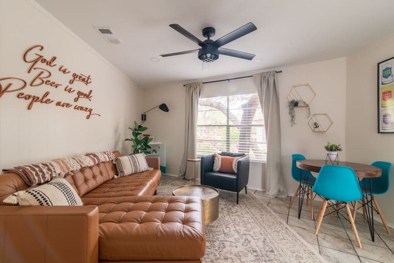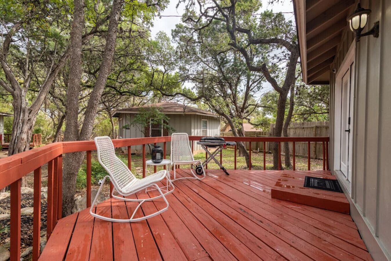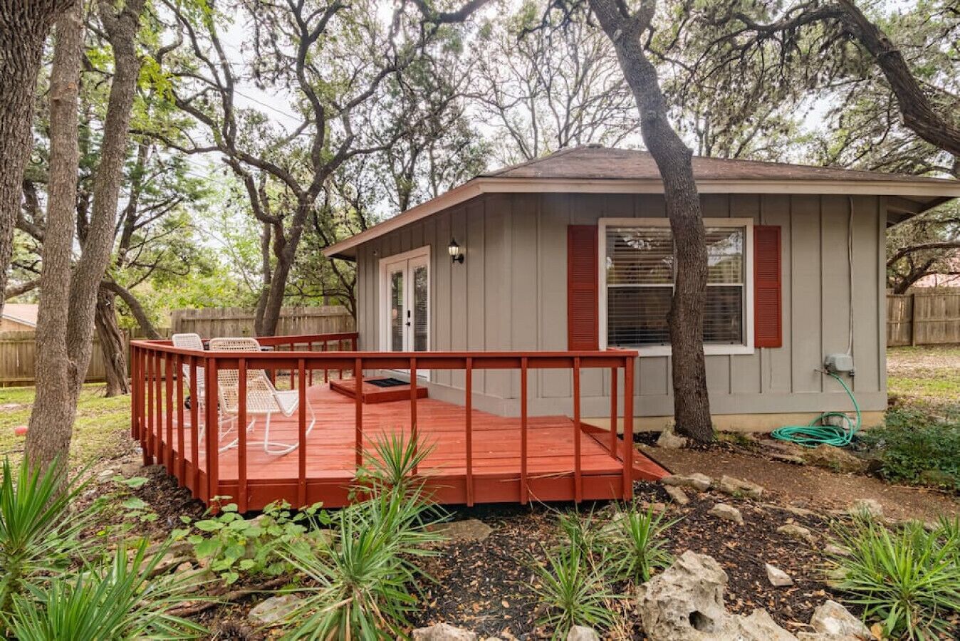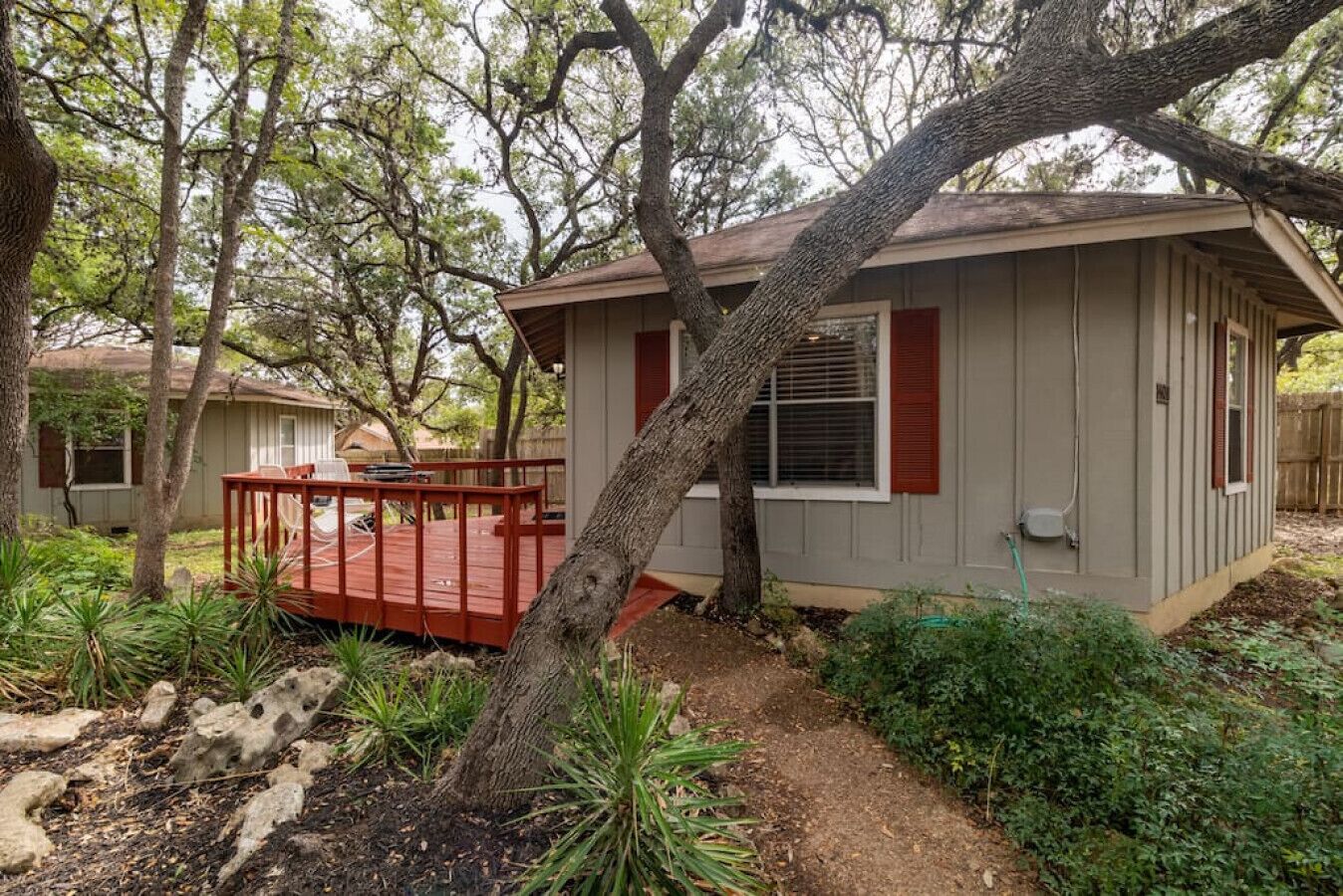 Downtown - Walk to Wimberley Square! Lonestar Bungalow @ Beer Ranch Project Inn Just steps away from the Wimberley Square, the Beer Ranch Project Inn is the perfect destination for your Texas hill country stay. Come stay in our newly renovated 650 sq ft 2BD, 1B hexagon bungalow. It features one bedroom w/ a luxury King bed, a small bedroom with a trundle bed (2 twins), a spacious living room, a dining area, two TVs, and a full kitchen with brand new appliances. It also includes high speed WiFi and a private deck with two rocking chairs and a BBQ.This modern bungalow is situated in behind the property of the future tasting room of the Beer Ranch Project, a family owned farmhouse brewery just a few miles up the road on our five-acre ranch (opening soon).Beer Ranch Project is a family owned ranch-house brewery with small boutique inn.ABOUT OUR LOCATIONS:Our brewery (opening soon) is located on our five-acre family ranch a few miles from town. To ensure an intimate and exceptional customer experience, the brewery will be open by appointment only.Our tasting room (opening soon) is located in the heart of Downtown Wimberley just steps away from the Wimberley Square. The Beer Ranch Project Inn (open now - this listing) is located directly behind our tasting room in Downtown Wimberley and is on two connected properties. Our Inn is perfect for a family vacation, a romantic getaway, a friends trip, or great place to stay while working away from home. Take a stroll to nearby restaurants, go shopping, or simply stay in and enjoy happy hour in your studio or in your own bungalow.Our studios:In the back of the tasting room we have three private studios that sleep 2-3 people. Each studio has their own private entrance and the units are not connected internally. There is ample parking in front and behind the property.Our Bungalows (this listing):We have four 2BD, 1B small bungalows that each sleep up to five people. One bungalow is currently available (3 more currently being renovated). Each bungalow has a full kitchen and patio. There is ample parking in front of the bungalows.NOTE: If you are unable to find available dates check out our other listings for Beer Ranch Project: - Studio 1- Studio 2- Studio 3- Pearl BungalowMy husband, Max, and I own the property and although we are not on site nightly, we will be around as needed. We also have a wonderful property manager, Doug Kennon, and an amazing cleaning staff who services are studios between guests. If you need any assistance, feel free to contact us at the number provided at check-in and one of us will assist you.Welcome to Wimberley, Texas Escape the city and immerse yourself in nature in the most charming town in the heart of the Texas Hill Country! Outdoor activities abound from swimming holes to hiking trails, starting with 81 acres at Jacobs Well Nature Area featuring the second largest fully submerged cave in Texas. The well feeds into Cypress Creek and Blue Hole Regional Park which then feeds into the Blanco River. Self-guided tours of the multiple parks and trails in Wimberley, including a hike to the top of Mt. Baldy for 360-degree views, make for invigorating and stress-free days of exploration. Continue your adventure with Wimberley Zipline as you glide over the Wimberley Valley hills, take in a glass blowing demonstration at Wimberley Glass Works, or visit one of our many area wineries, breweries, and distilleries. Wimberley is home to a variety of restaurants and bars featuring live music year round making for an easy going nightlife after a full day of special experiences! www.visitwimberleytxOur property is located in Downtown Wimberley, just steps away from the Wimberley Square. Feel free to leave your car in our parking lot and walk to town (parking can be hard). Or take a drive and visit the amazing scenery, breweries, wineries, shopping, and restaurants near by.CLEANING STANDARDSAlthough we've always maintained extremely high standard of cleaning in our studios, we are sanitizing and cleaning all surfaces according to the CDC recommendations. You should expect a thoroughly cleaned and fresh room.Also, here at the Beer Ranch Project Inn we want you have all the freedom of staying at a vacation rental but have the comfort of staying at a boutique hotel, therefore we do not have any specific checkout procedures like stripping the bed linens or taking out the trash. PET FEE We love our furry friends (we have an Australian Shepard who is one of our family members) so dogs are loved and welcome at the Beer Ranch Project Studios, but we ask that you notify us in advance. There is pet fee, which is charged during the reservation process. Also, we charge for any items that are damaged or cannot be properly cleaned.ADDITIONAL INFOAt the Beer Ranch Project Inn we strive to create exceptional experiences for guests. Make your stay a little extra memorable with one of our add-ons or experiences! Add-ons:BBQPack n' playHigh ChairYoga matsCruising bikes (coming soon - inquire about charge)Celebration decor (inquire about charge)Experiences: (coming soon)Picnic Lunch for twoBrewery Tour and TastingsTasting room packageFurry friends packageWedding night/Honeymoon package