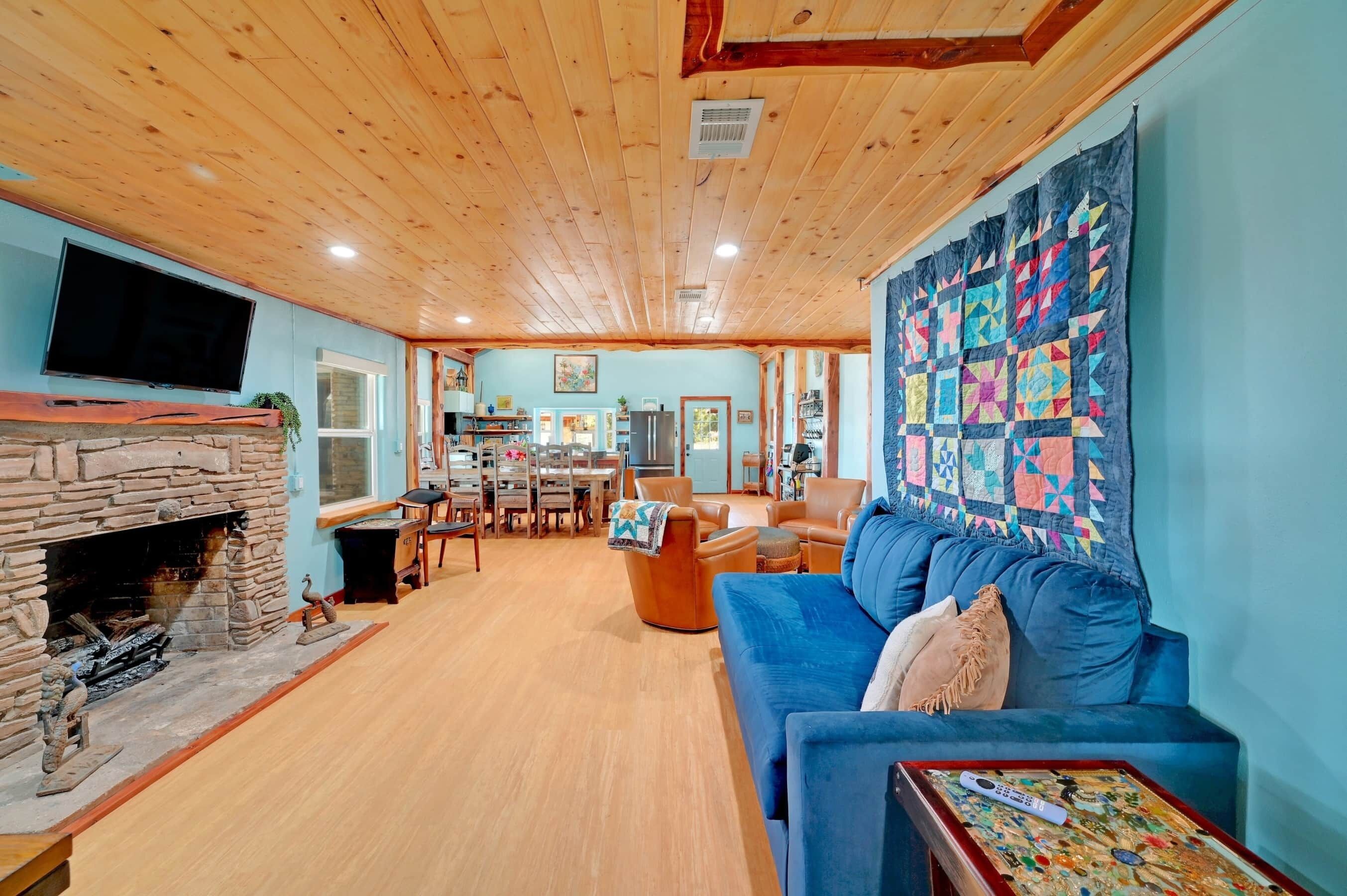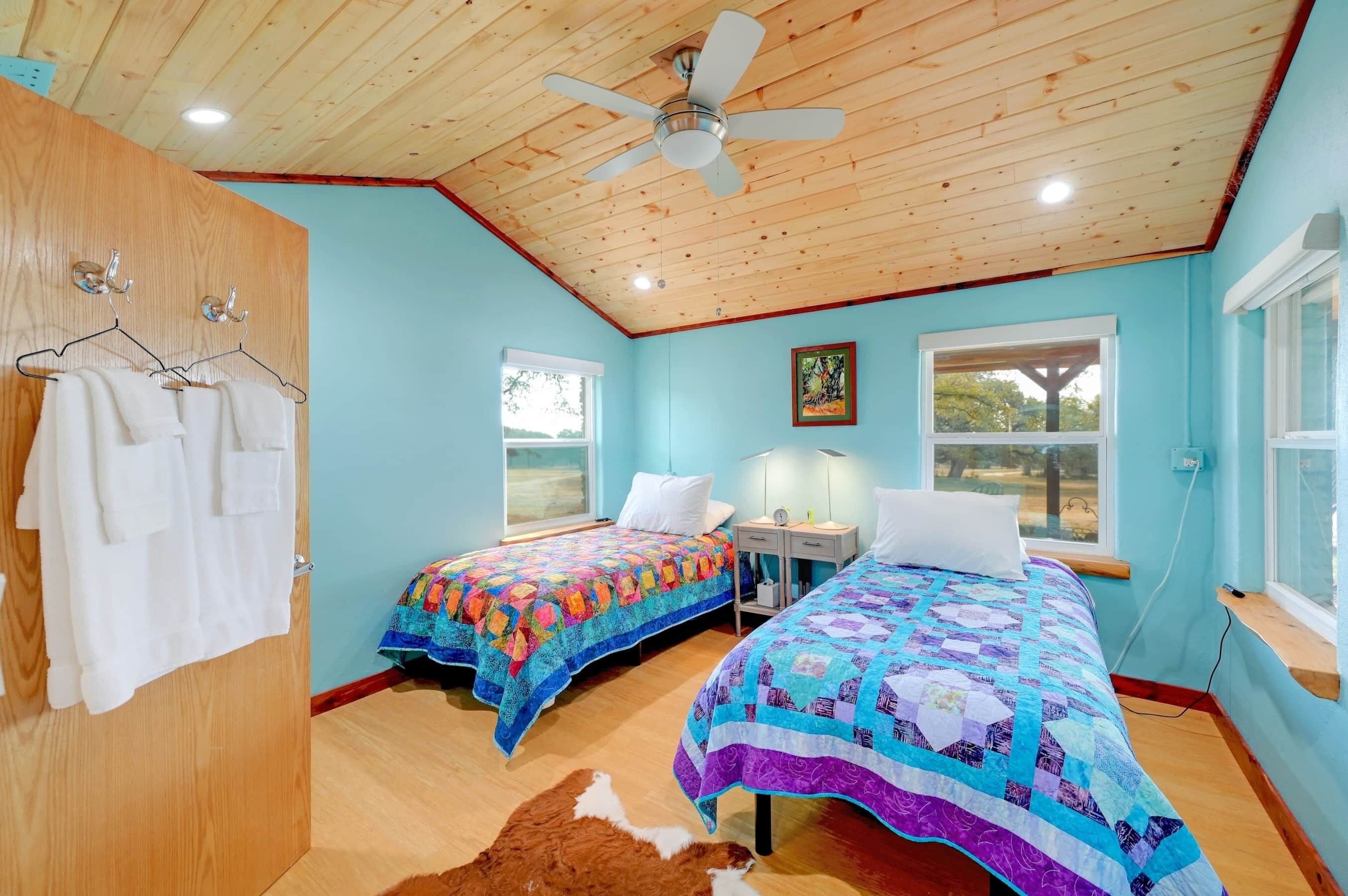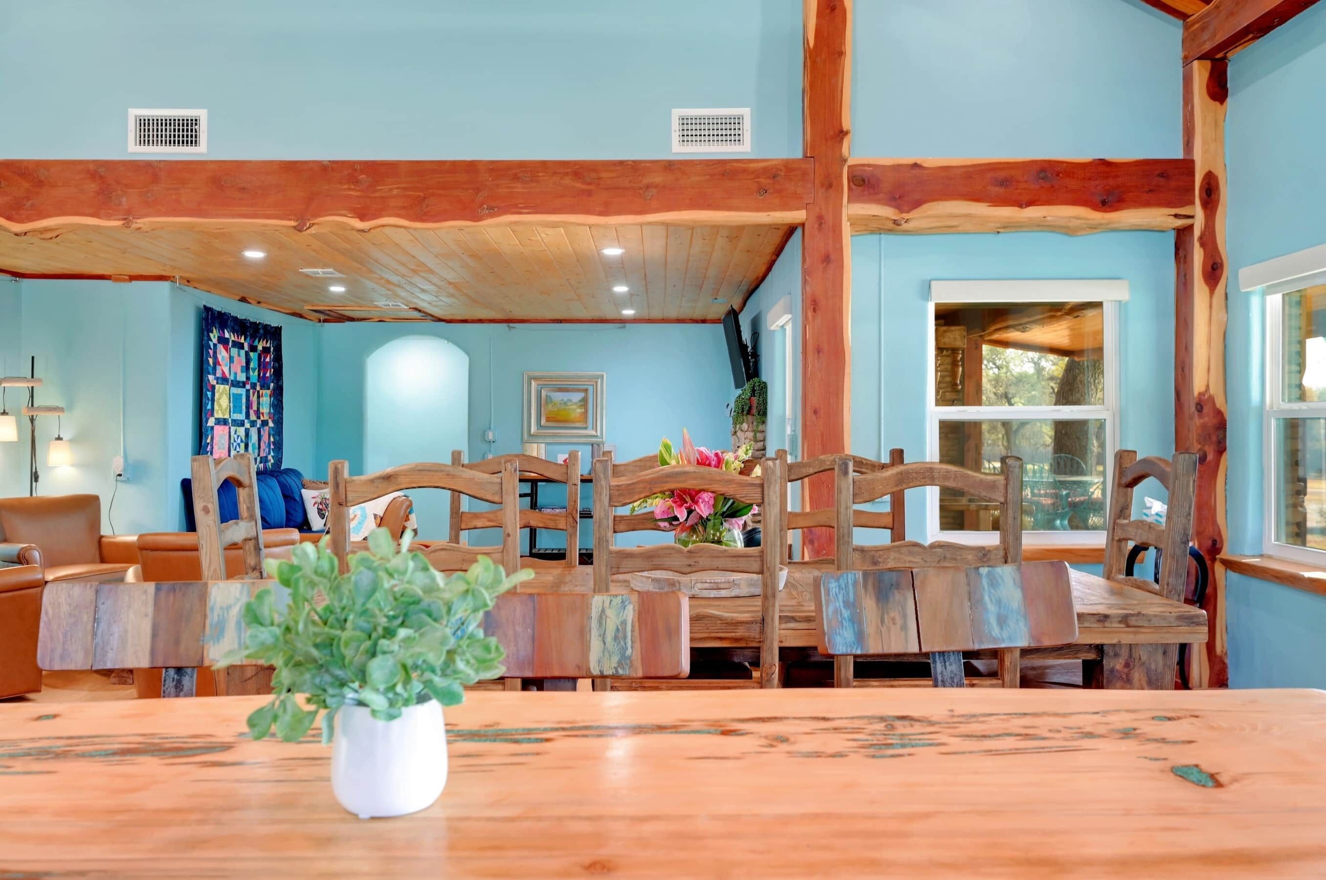 Turquoise Treasure @ Hideaway Oaks - 3 Bedroom all en-suites The perfect Wimberley location. Directly across the street from Market Days and roughly a mile from the Square for lots of shopping, art and restaurants.Enjoy your morning coffee on the front porch as you watch the deer graze; we have multiple families of deer that frequent the property.If you are looking for the perfect escape you're going to love the space and location. Quiet and conveniently located, oh, and Wimberley is a Designated Dark Sky Community.THE SPACEThis three bedroom, three and half bathroom home is set up with the primary bedroom having a king bed and the other 2 have two twin beds in each.Dining table for up to 8; full kitchen with island that seats an additional three people.ADDITIONAL ITEMS OF NOTEGroceries:Want your rental to be set up with initial groceries? We can work with the local grocery chain to have provisions (you place the order) stocked for your arrival.You simply place your order with HEB (local grocer) for their delivery service and we will have a member of our team meet the driver, receive your oder and stock it in the rental for you awaiting your arrival.**CONTACT US FOR DETAILS**TV:The TV in the living room has all the most popular streaming services already installed, just bring your own login and don't forget to log yourself out on check-out day. YouTube TV is provided for Live TV and Local Channels.YouTube Channel:The Hideaway Oaks YouTube Channel is on the Living Room TV where you will find a number of videos highlighting things to do and places to see around Wimberley. Simply launch the YouTube app from the home screen.Coffee:Enjoy a wide variety of coffee selections. There is a Keurig Coffee Station set up with multiple coffee and tea pods to choose from and a separate drip coffee are that has Ground coffee, whole bean with grinder, as well as instant mushroom coffees.Beds:All beds come equipped with adjustable bases to raise and lower your head for easy reading before bed.Common/Shared Patio with Bistro Lighting:When you rent the Turquoise Treasure @ Hideaway Oaks you have the entire home to yourself as well as access to the common/shared back patio of the workshop (not the workshop itself) which is the middle of the three buildings compete with seating a large ceiling fan. The roughly 50 year old 8' smoker ,original to the old BBQ restaurant that used to be on the property, is soon to be reburbished but is temporarily out of serviceWe also have a vintage 1960 Coke machine on the shared patio. Help yourselves to the drinks in the Coke machine, they are complimentary!