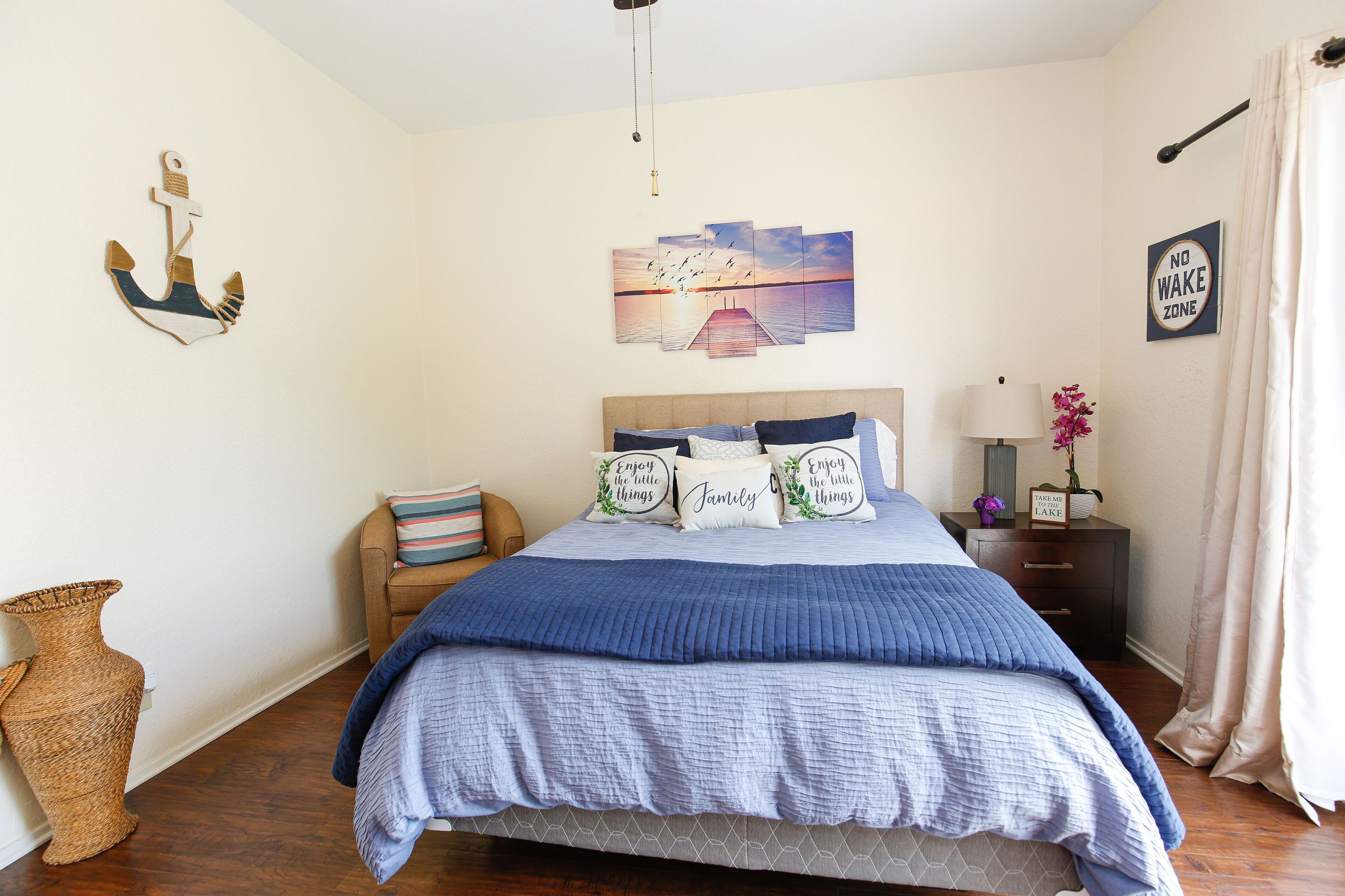 LONG TERM RENTALS...Sleeps 10...OFFERING DISCOUNTS…walk to Hotel & Amenities! Renting this property is subject to owner approval30-day minimum stay boasting serene lake views of a quiet Lake LBJ cove, yet less than 1/4 mile to be in the middle of all the action! This 3-bedroom, 3-bathroom town-home has lake views, a day dock for parking your boat/swimming and plenty of room for your entire family or group. The home boasts a recently remodeled kitchen and main floor bathroom, while each bedroom has their own bathroom. All of the amenities you would expect, to include WiFi to keep everyone in touch with the outside world are just at your fingertips. Great spot for fishing, floating, or paddle boarding with the calm waters. The main floor features:- Living Room (2 Couches/ 1 of which makes a queen bed/TV, DVD, Internet & fireplace)- Kitchen (Stove/Microwave/Dishes/Silverware/Dishwasher/Refrigerator)- Dining Room (Table w/4 chairs & Bench)- Laundry Room (Washer/Dryer/Pantry)- Bedroom (Queen Bed/Deck)- Remodeled Bathroom (Shower/Vanity/Walk-in Closet/Toilet)- Patio (Table w/patio furniture/Grill)The second floor features:- Master Bedroom (King Bed/TV/Internet)- Master Bathroom (2 Vanities/Tub/Shower)- 2 Dressers for clothing storage- Walk-in ClosetThe bottom floor features:- Bedroom (2 full beds, Queen pull out couch & TV/DVD/Internet)- Bathroom (Dual Sinks/Shower)Cleaning and disinfection process — Our Enhanced COVID-19 Procedures and FocusA. General principles• Cleaning and disinfecting are two different steps in the overall process, and both are required to lower the risk of contamination. The CDC defines these as follows:o Cleaning removes germs, dirt, and impurities from surfaces or objects, by using soap (or detergent) and water to physically remove germs from surfaces. This process does not necessarily kill germs, but by removing them, it lowers their numbers and the risk of spreading infection.o Disinfecting kills germs on surfaces or objects. Disinfecting works by using chemicals to kill germs on surfaces or objects. This process does not necessarily clean dirty surfaces or remove germs, but by killing germs on a surface after cleaning, it can further lower the risk of spreading infection.o Sanitizing lowers the number of germs on surfaces or objects. This process works by either cleaning or disinfecting surfaces or objects to lower the risk of spreading infection.• Prevent cross contamination by using specific equipment by area (room, bathroom, kitchen)• Plan the process to start with lowest risk areas (bedroom, living room) to highest risk areas (kitchen, bathroom)• Define a cleaning checklist to help ensure completion and keep records (these can be useful in case of guest complaints)• Ventilate the property during and after the process• If guests clean the property themselves, be ready to assess the results and the overall cleanliness of the property and implement a cleaning step if necessary, and a disinfection step in any case, as described belowB. Cleaning process…we shall• Clean with water and suitable detergent (WHO/CDC)• Use a detergent or soap and water, and leave to act for enough time, usually 3 to 5 minutes (WHO/CDC)• Rinse, dry, and wipe to remove all products• Clean and disinfect all cleaning equipmentC. Disinfection process…we will• Disinfect using the appropriate chemical per area. Most common EPA-registered household disinfectants should be effective for disinfection. A list of products that are EPA-approved for use against SARS-CoV-2 (the virus that causes COVID-19) is available here. Additional resources are also available on the WHO and the CDC websites.• Follow manufacturer’s instructions for all cleaning and disinfection products utilized (concentration, application method and contact time, etc.). Additionally, diluted household bleach solutions (at least 1000ppm sodium hypochlorite) can be used if appropriate for the surface. D. Prioritize high-touch surfaces such as• Door handles• Controls and switches (e.g. light switches, cooking controls, television controls, fan pull chains)• Bathroom taps, toilet flush handles, toilet seats• Utensils, cutlery and crockery• Furniture such as chairs, tables, and parts of the bed frames