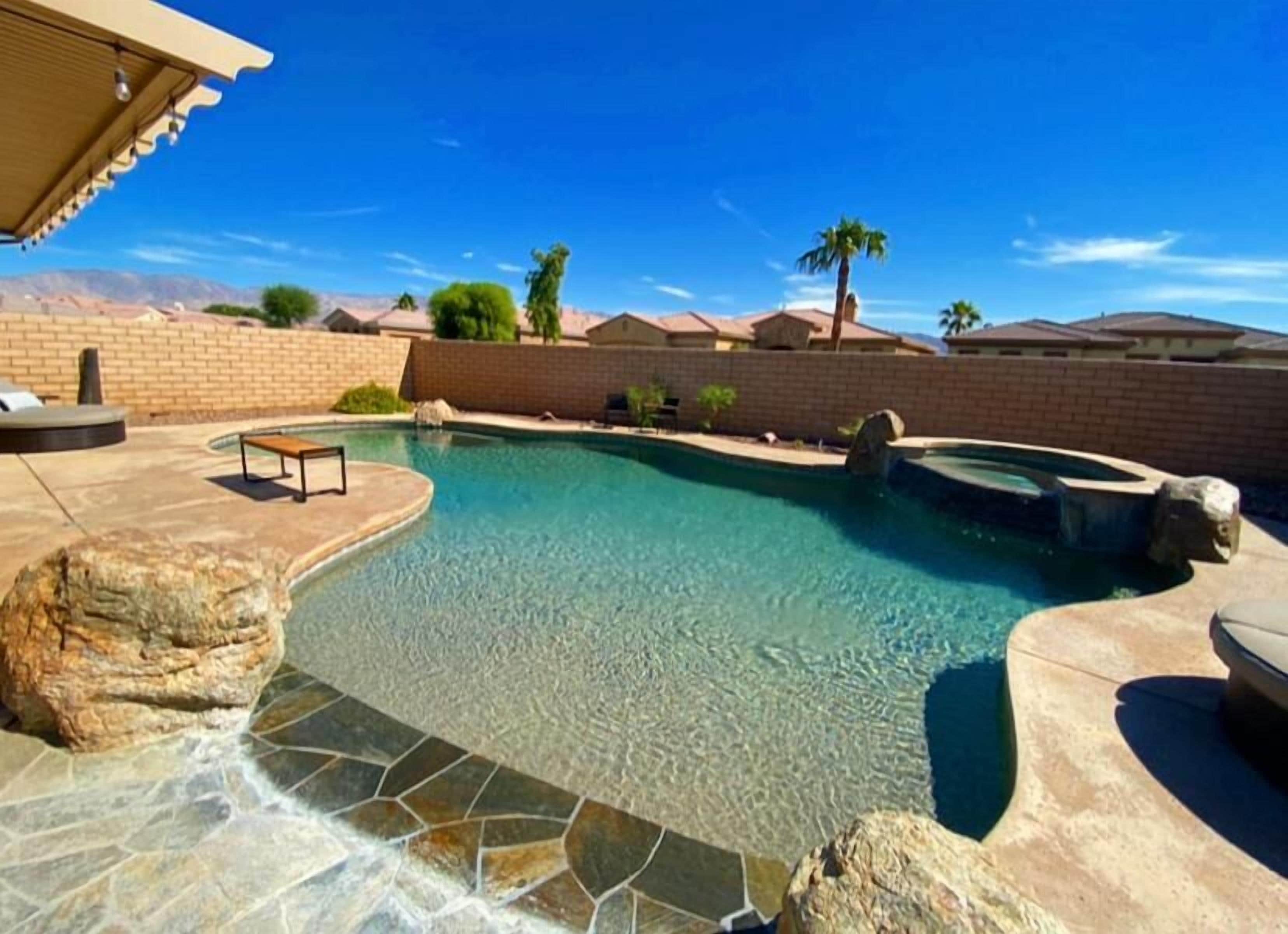 The ultimate relaxation destination with beach entrance pool and endless fun! Escape to our gorgeous, newly decorated home in the exclusive Gated Terra Lago Community. Relax in the private backyard oasis with a spacious saltwater pool and luxurious oversized spa. Ample lounge and play areas ensure endless entertainment. Indulge in the comfort of King-sized beds and smart TVs in every bedroom. With ultimate privacy on a huge corner lot, you'll experience true relaxation. Conveniently located near golf courses, freeways, shopping, and restaurants. This home is setup with a smart lock. You will receive a code to use for the duration of your stay.Spa heating is freeThe pool can be heated for an additional fee of $75 per night (No partial stay pool heating)