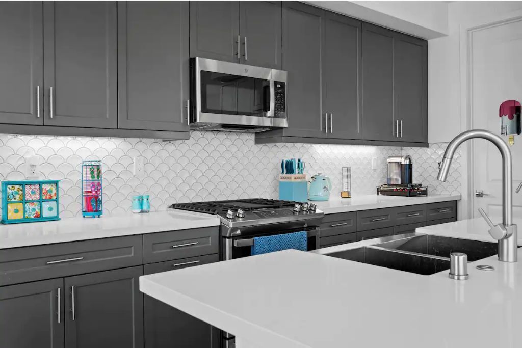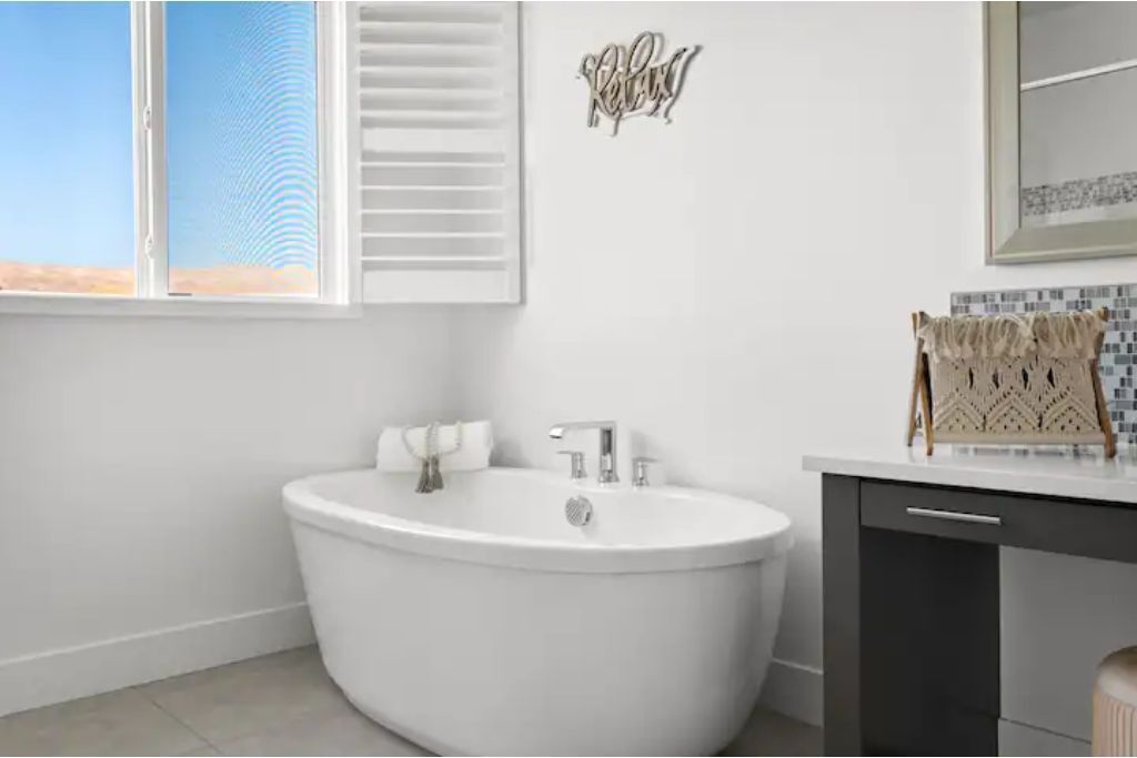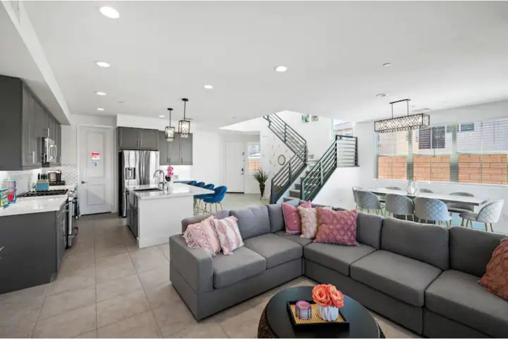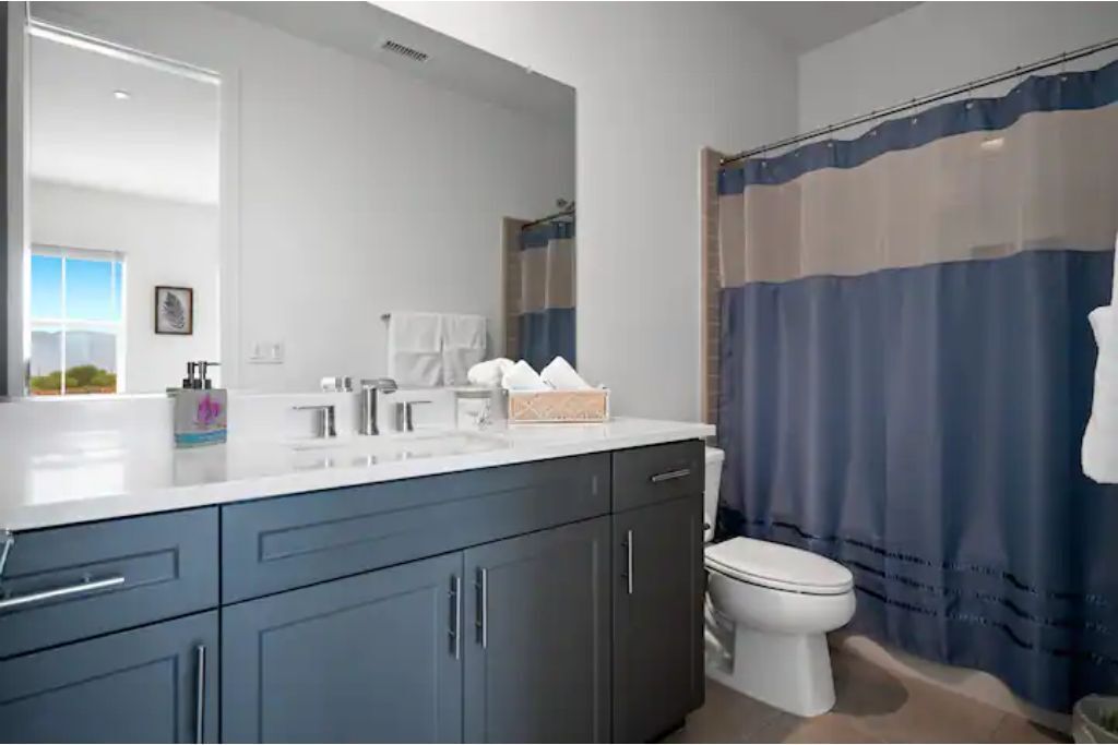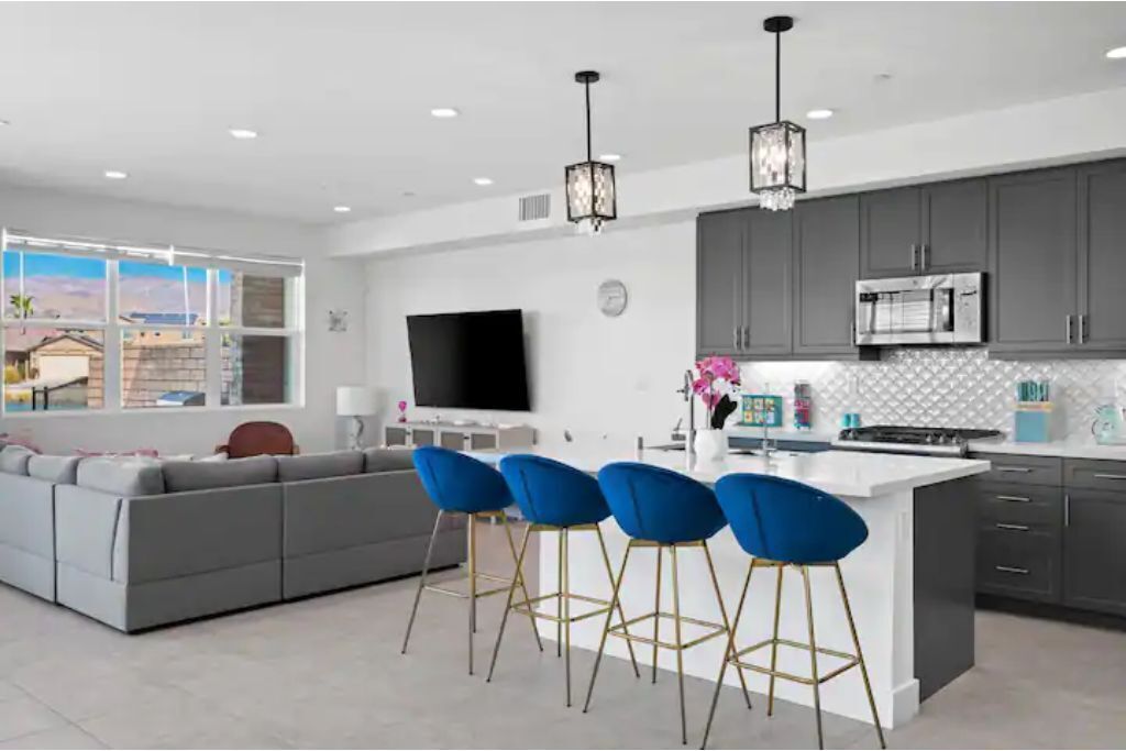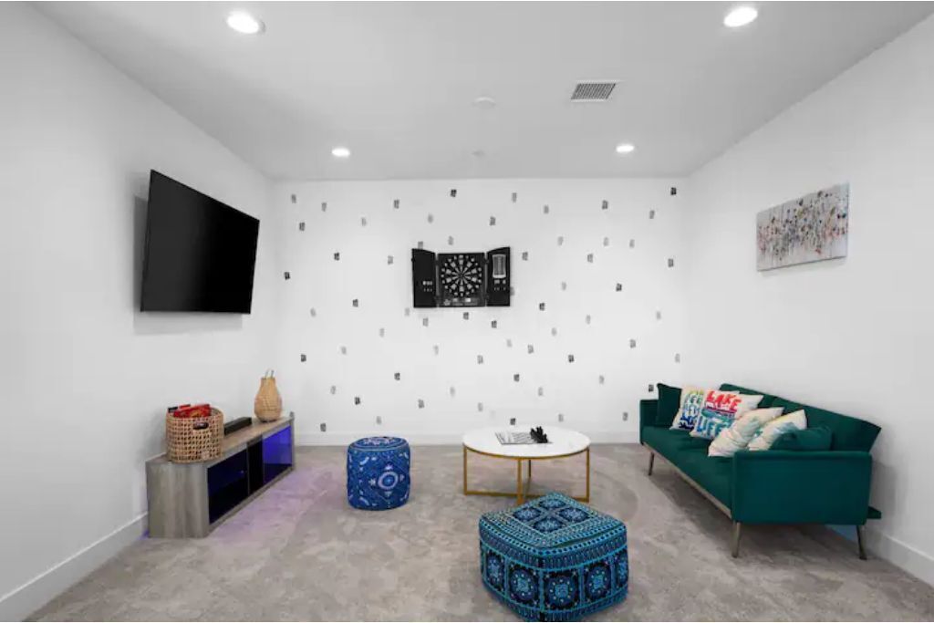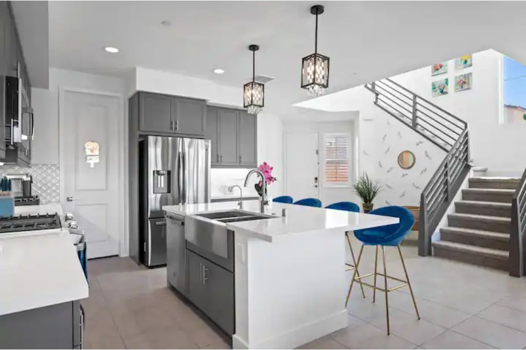 Lakefront Luxury Villa 4 bedroom+loft with Pool Newly built luxury lake house in a peaceful gated community. This elegant two story home features 4 bedrooms+loft, 4.5 bathrooms, a game room, a large chef's kitchen, a specious living and dining area. The house truly defines peace and serenity where you can unwind and enjoy your time with your loved ones. It is decorated tastefully with an edgy/modern, comfortable feel. Soak in the lake views and the breathtaking sunsets in the cozy backyard with heated pool(w/spa jets) and outdoor dining.The spaceEach bedroom has a separate bathroom with a shower or a tub. One bedroom, with a queen bed, is located in the first level accessible for guests who have difficulty going up the stairs. The large sofa in the living room also provides a comfortable sleeping arrangement. On the second level we have the master bedroom with a king bed, large bathroom with a tub, a walk in closet and a large patio with breathtaking lake views where you can enjoy your morning coffee or the sunset views. Two other bedrooms are located on the second level, one with a queen bed + floor mattress and the second one is a lakeview room with a bunkbed and a twin 2 level trundle daybed. Lastly, the loft is used as a game room where you will find pool table, table tennis, darts, etc. This room also features a sofa bed which can accommodate sleeping arrangements for 1-2 children.License number31955