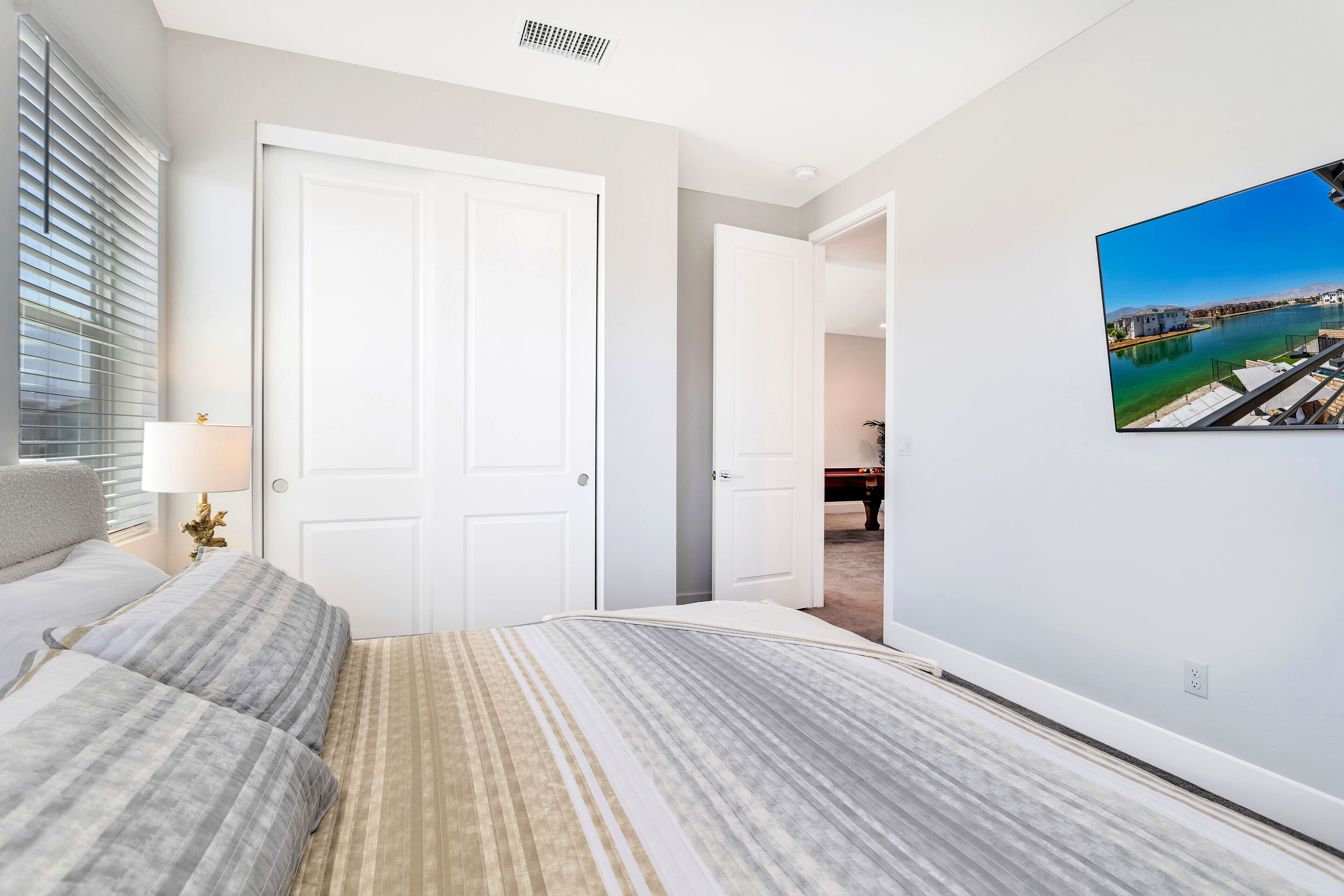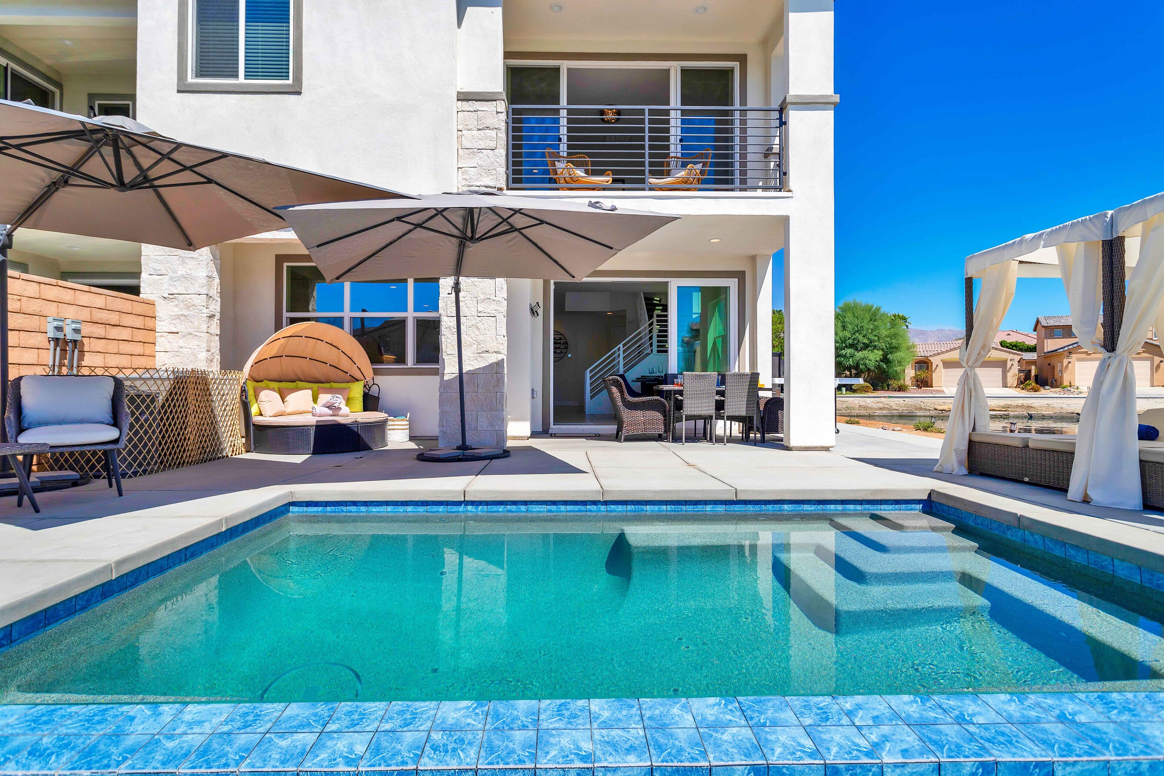 Elegant Villa Brezza Del Lago This Lakefront Elegant Lago Breeze Villa with Private Infinity Pool/Spa featuring 4 BR plus Loft and 4.5 BA provides all the comfort of home with the activities and relaxation of ultra luxurious getaway. Enjoying Lakefront Infinity Pool and overlooking lake and mountains, relax and wile away the days in the private cabanas. This newly built two-story villa stands out itself with its corner location on the Lake at Terra Lago featuring the largest lot in the entire developmentShort drive distance to Empire Polo Club which hosts the Coachella and Stagecoach Music Festivals. 15 min to Indian Wells Tennis Tournament. 15 min drive to Acrisure Arena which hosts NHL Hockey games, all Major Concerts and Sporting Events in the world. 20 min drive to Luxury Shopping and Dining at El Paseo, 30 min Driving to Desert Hills Premium Outlet, 30 min to Joshua Tree National Park. Enjoy Fantasy, and Spotlight 29 Casinos within a mile driving.Staying at this Elegant Villa means you will experience worry-free accommodations that are professionally cleaned and maintained. It offers Free High-speed Wi-Fi, Billiard Table, Piano, Cable TV, Complimentary Coffee, Table games, 4 Free parking spots, and so much more...- Large Open Living Room features high-end elegant sofas, coffee table and Samsung Art Frame TV- Dining area offers modern dining table setThe beauty boasts an open Kitchen with massive granite island is fully gourmet equipped. Nespresso Coffee machine with complimentary coffee pods, and all-known kitchen appliancesAll bedrooms are masters with in-suite bathrooms and walk-in closets. - First Master bedroom with King Bed, LG 65" Smart TV, Dresser, mirror, nightstands/lamps features blackout window blinds, balcony, huge in-suite bathroom and large closet which offers two reclining beds for extra guests- Second Master bedroom with King Bed has in-suite full bathroom, closet, LG 65" Smart TV, nightstands/lamps features blackout window blinds- Third Master bedroom with King Bed has in-suite full bathroom, closet, LG 65" Smart TV, nightstands/lamps features blackout window blinds- Fourth Master bedroom with 2 Full Beds has in-suite full bathroom, closet, modern night-lamp features blackout window blinds- Loft offers Pool/Billiard table and reclining sofa- 2-car garage and the space for 2 more cars on the driveway are for your convenience. - Outdoor is the Stunning Resort-Style Backyard with a Brand New Private Infinity Saltwater Heated Pool / Spa , Weber LP BBQ Grill, Comfy Sofa Set, Dining Table Set, Large Umbrellas, Cabanas, Daybed and more.Just bring steaks and red wineHouse Supplies:You will be provided with supply of: Shampoo, conditioner, body wash, makeup remover wipes, bath salt. Pool Towels, Wash Towels, Bath Towels, Toilet paper, trash bags, napkins and paper towels. Dish and dishwasher soap and sponge. Laundry detergent for washing machine. Washer and Dryer are in the home.Bedding:Bed linens are made on beds. Extra linens, blankets, pillows and sheets are stored in master storage and can be provided upon request. Two extra folding beds are stored in master closet for your convenience.Kitchen:The kitchen is fully gourmet equipped. We provide ten complementary Nespresso coffee capsules, spices, pepper, salt. Small appliances include: toaster, blender, Nespresso coffee machine, press coffee, teapot, electric kettle, crockpot, chopper, juicer, air fryer. Air Filtered drinking water through reverse osmosis is provided by smaller faucet on kitchen sink. All BBQ cooking supplies are provided. Kitchen offers all utensils and cookware such as plates, bowls, silverware, wine, bear, vodka, tequila, whisky, champaign and drinking glasses, and kitchen / bar accessories such as wine opener, shaker, cocktail / shot jigger and more. Large appliances include: Refrigerator, Gas range, built-in microwave, dishwasher.(Long-term Renters Welcome too)HOUSE RULES:- NO smoking inside the house- NO pets allowed- NO Loud events after 10pmLAKE RULES:- Swimming in the lake is NOT permitted.- NO items can be thrown or dropped into the lake.- NO Fishing is allowedI am always available for any questions and helpRelax, rest, and enjoy every minute while staying at this elegant villa