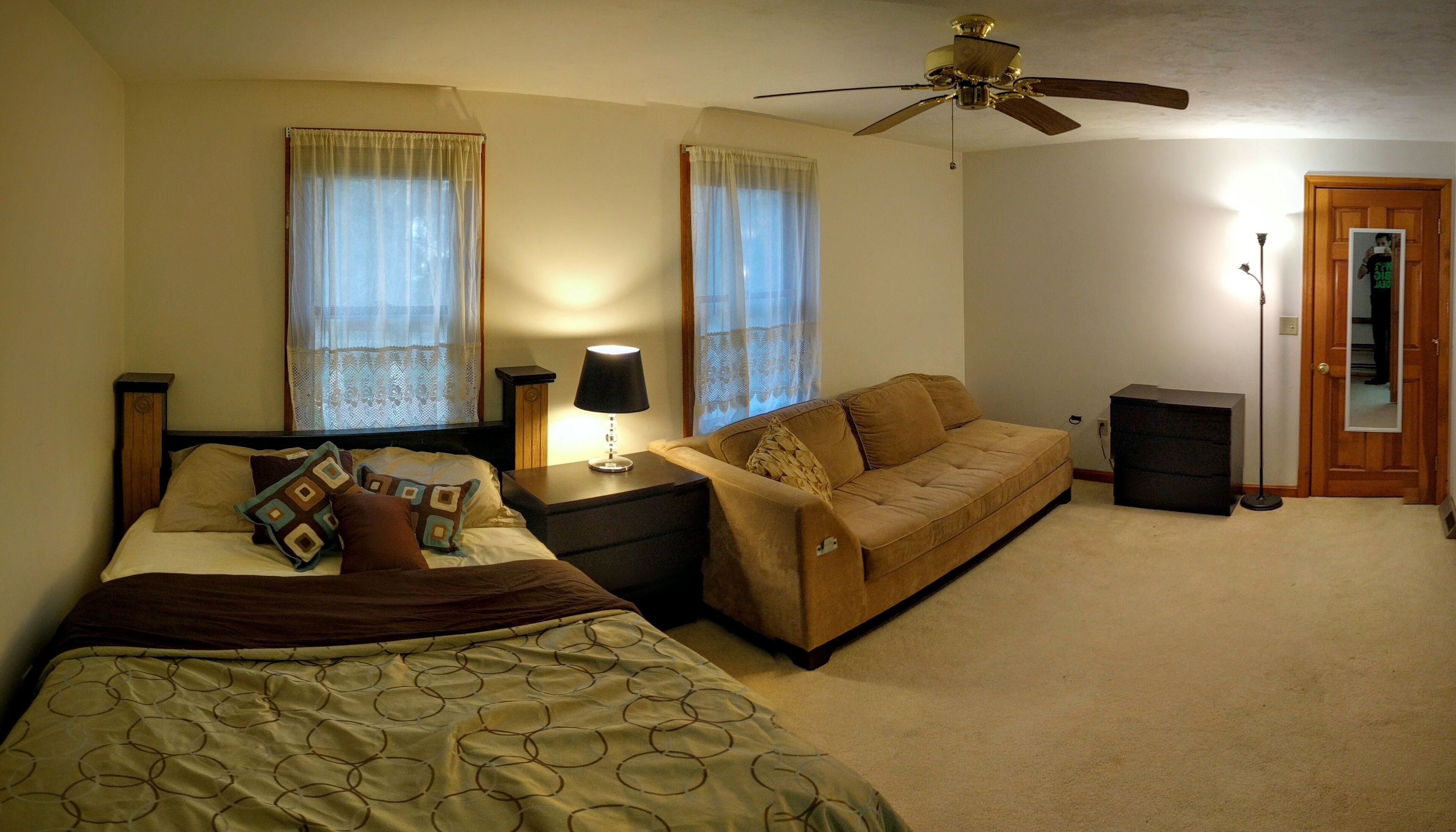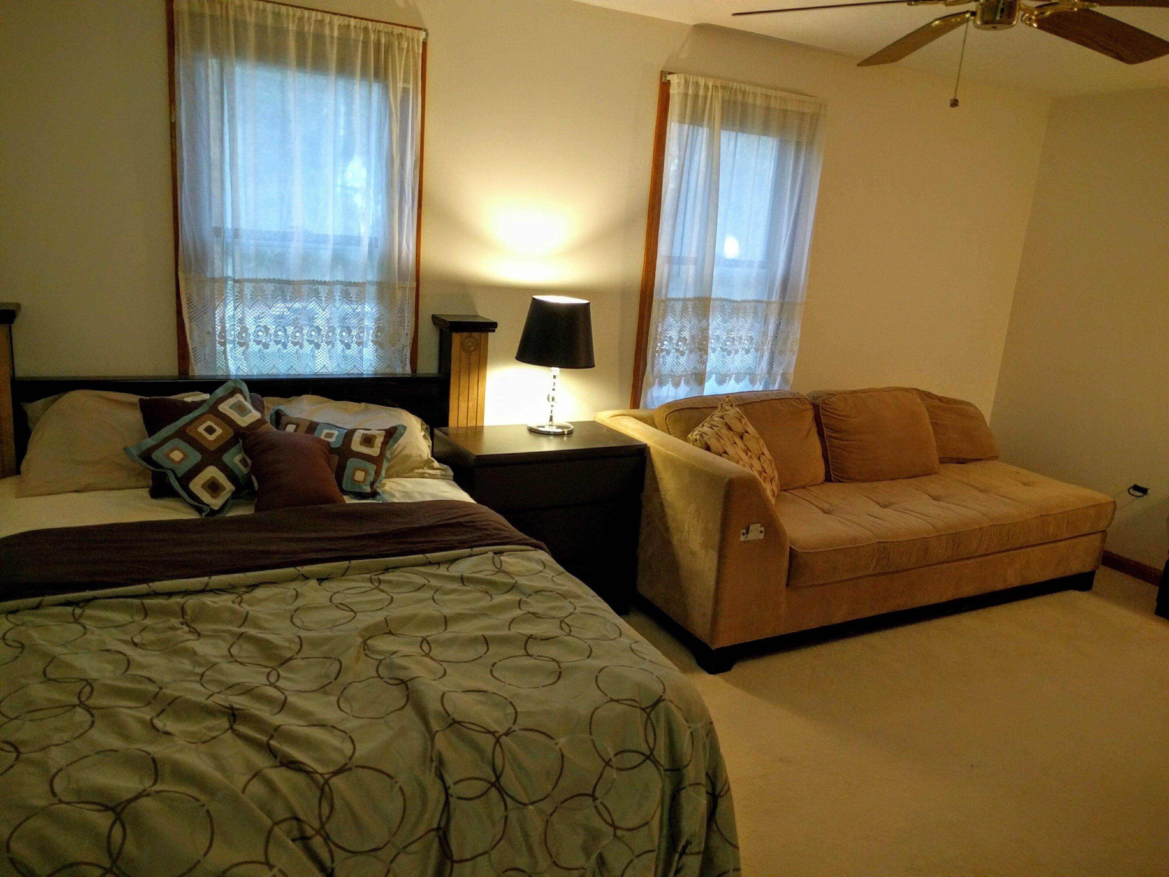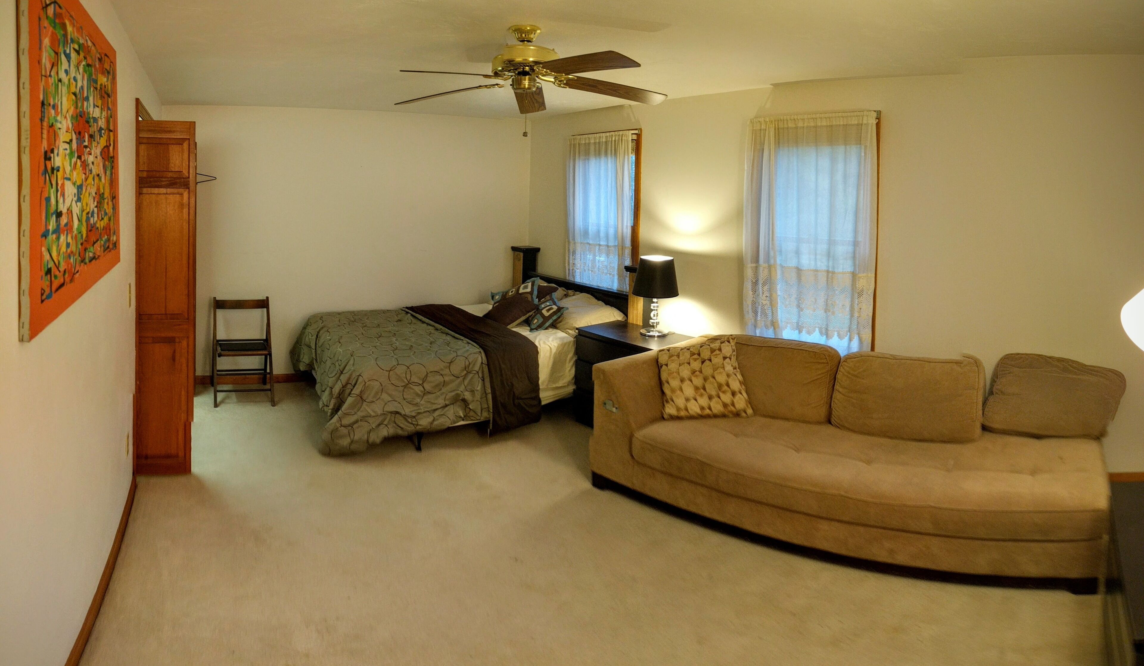 Big bedroom, private bath in a Charming Colonial house! Note, this rental is for a large 1-bedroom with a full bed and a large couch for extra guests. There is a 2nd bedroom available for rent for extra guests if needed. Contact me if needed. The owner lives in the house, however your interaction is very limited. The room has a modern glass desk for your work or studying, fast Wifi and big closet...