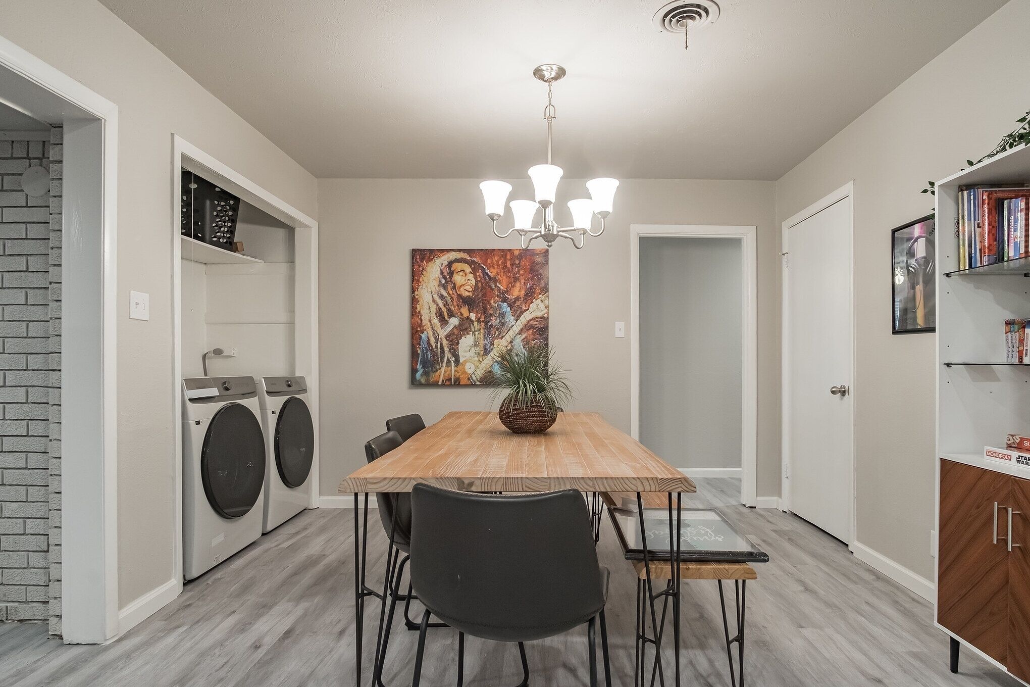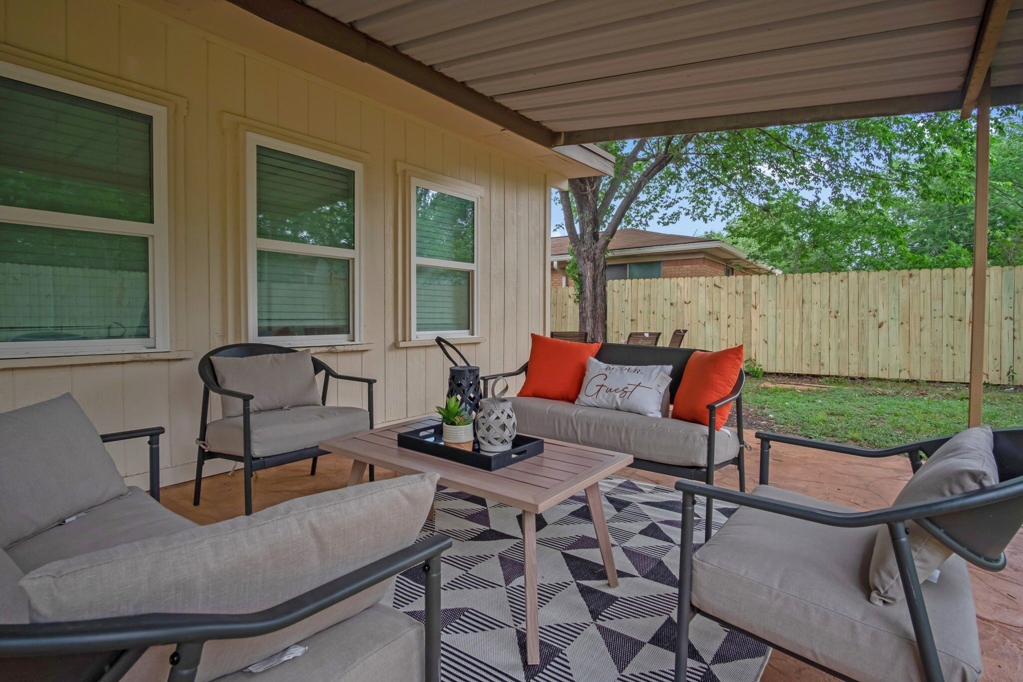 The Harmony Designer Home in Central DFW by RedAwning *Comprehensive Amenities* Pet Friendly* * Free Parking* * Sleeps 12* *Backyard Patio*The Harmony Home is a music themed newly renovated designer home in Central DFW near Fort Worth, TX. Great central DFW location just minutes away from I-820 and TX-183 lets you get around the whole DFW Metroplex quickly and easily. Critical DFW entertainment sites within a 15-25 minute drive of The Harmony Designer Home: AT&T Stadium, Globe Life Field, Six Flags over Texas, FTW Stockyards, Dickies Arena, Fort Worth Zoo, Fort Worth Botanical and water gardens, Amon Carter Art Museum, TCU campus, Adventure World Playground, Moxley Manor Haunted House, NRH20 Family Water Park, Capp Smith Park, iFLY Indoor Skydiving - Fort Worth, Fort Worth Water Gardens, Cowtown Cattle Pen Maze, Stockyard Museum, Vintage Flying Museum, Fort Worth Livestock Exchange, Linda Spurlock Park, Cutting Edge Haunted House, Downtown Fort Worth, Mallard Cove Park, Fort Worth Stockyard Station, Haltom Road ParkCritical business sites located within 15-20 minute drive of The Cowtown Designer Home: Fort Worth Convention Center , Arlington Convention Center, DFW Airport, Downtown Fort Worth, 25 minutes to Downtown Dallas25+ restaurants within 15 minutes of The Harmony Designer Home covering a variety of cuisines: American, Italian, Mexican, Thai, Brazilian, VietnameseThe Space:The Harmony Designer Home was recently refurbished with ALL the latest amenities any guest would expect. The space is a great private home with an open floor plan design connecting the kitchen, dining and living areas. The home has 4 bedrooms, 2 bathrooms and a backyard patioThe 4 bedrooms include:A master bedroom with a king bed A bedroom with a queen bed A bedroom with a double bedA bedroom with two bunk beds A 2nd living room area with two sofa bedThe home is also equipped with:High speed Wi-FiFully stocked Kitchen amenities (everything any guest would expect)Fully stocked bathroom amenities Heating and coolingWasher/DryerPet friendly amenitiesEntertainment options include the following streaming service and channel options:Roku TV (all standard cable channels)DisneyHuluESPN+Netflix Free, safe, parking in the driveway and street side.Guest Access:Enjoy the comfort and convenience of a self-check-in. One day prior to your arrival you will receive an email that walks you through the process and answers any last-minute concerns. If you still have questions, were available for you! Please dont hesitate to reach out to us at any time - we are here to please. The house is exclusively yours, without interruption for the duration of your stay, so relax, unwind, and make yourself at home.Please make sure to let the Host know in advance when you want to bring any pets into the home. There is an additional $15 pet fee charged, per day. While pets are allowed at this house, we ask that you please keep them off the beds and furniture and any pet messes left in the backyard are picked up and disposed of properly.Additional house rules and fees: Keep noise to a minimum after 10pm. Unauthorized house parties are strictly prohibited. If we find the guest has hosted an unauthorized party, a fee will be applied as well as any additional cleaning fees from our cleaners. If you would like to have any additional guests over to the house please contact us first. Smoking anywhere on the premises (indoor/outdoor) is strictly prohibited. If we find that a guest has been smoking on the premises a $200 fee will be applied as well as any additional cleaning fees from our cleaners. Four vehicle maximum.Let us know if you need early check-in or late check-out and we will try and accommodate if we can. Lost items - While we are not responsible for guests personal belongings, we will certainly do our best to try and return lost items to their owners.Hosted by RedAwning Vacation Rentals, over 1,000,000 Guests Served Welcome to RedAwning, a whole new way to travel. We make staying in a unique home or apartment easier than staying at a hotel. By partnering with local hosts throughout North America, we provide you with the broadest collection of homes in the most destinations. Every stay includes our experienced 24/7 customer assistance, our free mobile app, and accidental damage protection for your trip with no security deposits. Wherever you want to go, RedAwning is here to make your journey easier! Want your own property to be included here and in the RedAwning Collection? Join Us and we will instantly promote your property everywhere guests shop for travel..