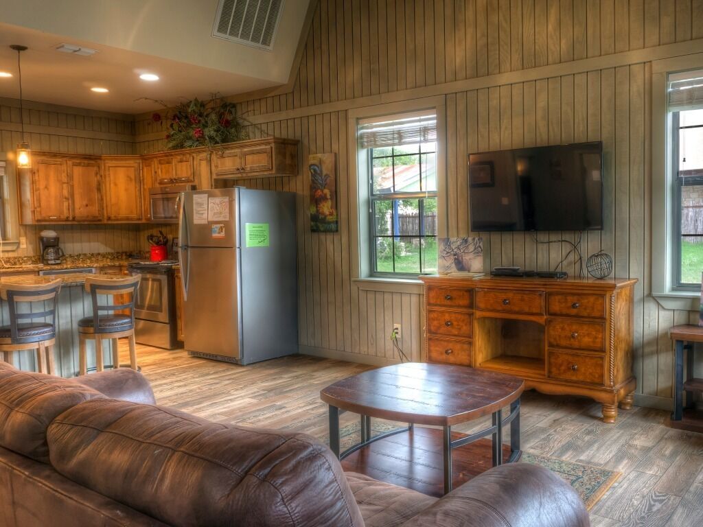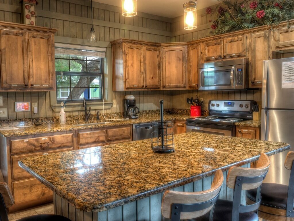 Firefly @ Frio River Vacation Rentals Peak Rate – May 15th – September 15th $335Non-peak March 1st - May 14th $250Winter Rate September 16th – February 28th $250All major holidays, spring break will be charged at peak rate. October 2023 Solar Eclipse, some homes may be charged at peak rate. April 2024 Eclipse may be charged up to three times the peak rate.Fire Fly is a “sister cabin” located near Stonehaven. This cabin has private river access. The cabin features high ceilings, kitchen island, open concept, and much more. This 3 bedroom 2 bath vacation home is located off of River Road, has that small comfort home feeling. The kitchen is supplied with basic kitchen items; dishes; glasses; silverware; cooking utensils; pots & pans; bakeware; and coffee mugs. Small appliances to include microwave; coffee pot; toaster; blender; & crock pot.Outdoors you will be able to enjoy the firepit, there is a barbeque/smoker style pit available for you to have some great meals on the grill. For those who enjoy horseshoe, we do have the setup, readily available for you on the side of the house. Horseshoes are provided at the office, you are more than welcome to bring your own. The river is a short walk from the home. To help keep the cost of your rental down, we do offer our guest the option to bring their own Linens and Towels. We do offer the option to rent them at an extra cost. If wanting to rent linens and towels for your stay, please allow us 3 weeks prior to arrival notice. Make note that we do have a limited supply and cannot guarantee we will have lines and towels readily available.Bedroom 1 — sleeps 5 – 1 twin bunk: 1 twin/full bunkBedroom 2 — sleeps 2 – 1 queenBedroom 3 — sleeps 2 – 1 KingWhat to BringLINENS: Bring linens and pillowcases for 1 Queen, 1 Full, 5 Twin beds.TOWELS: Bath towels, washcloths, kitchen towels.CHAIRS: Bring folding or sack chairs to take to the river. The chairs at the rental should not be removed from the property.PAPER GOODS: Paper towels, toilet paper, napkins, paper plates, plastic cups, plastic ware.SOAPS: Hand soap, bathing soap, dish washing soap, dishwasher soap, clothes washing soap.BBQ: There are BBQ cooking utensils but remember to bring charcoal/lighter/matches.Your kitchen is complete with dinnerware, silverware,glasses, basic cookware, coffee pot, microwave, pots &pans.We provide:• Coffee filters• Daily garbage pick up serviceWe do not provide:• Tall kitchen bags• Paper towels• Hand soap• Shampoo• Dishwashing liquid/powder• Salt & pepper• Toilet PaperNOTE: If it is an all-adult group (18 years +) then ALL GUESTS MUST BE 25 YEARS OR OLDER! This information is located on our “Printable Version” of the Policies & Procedures.