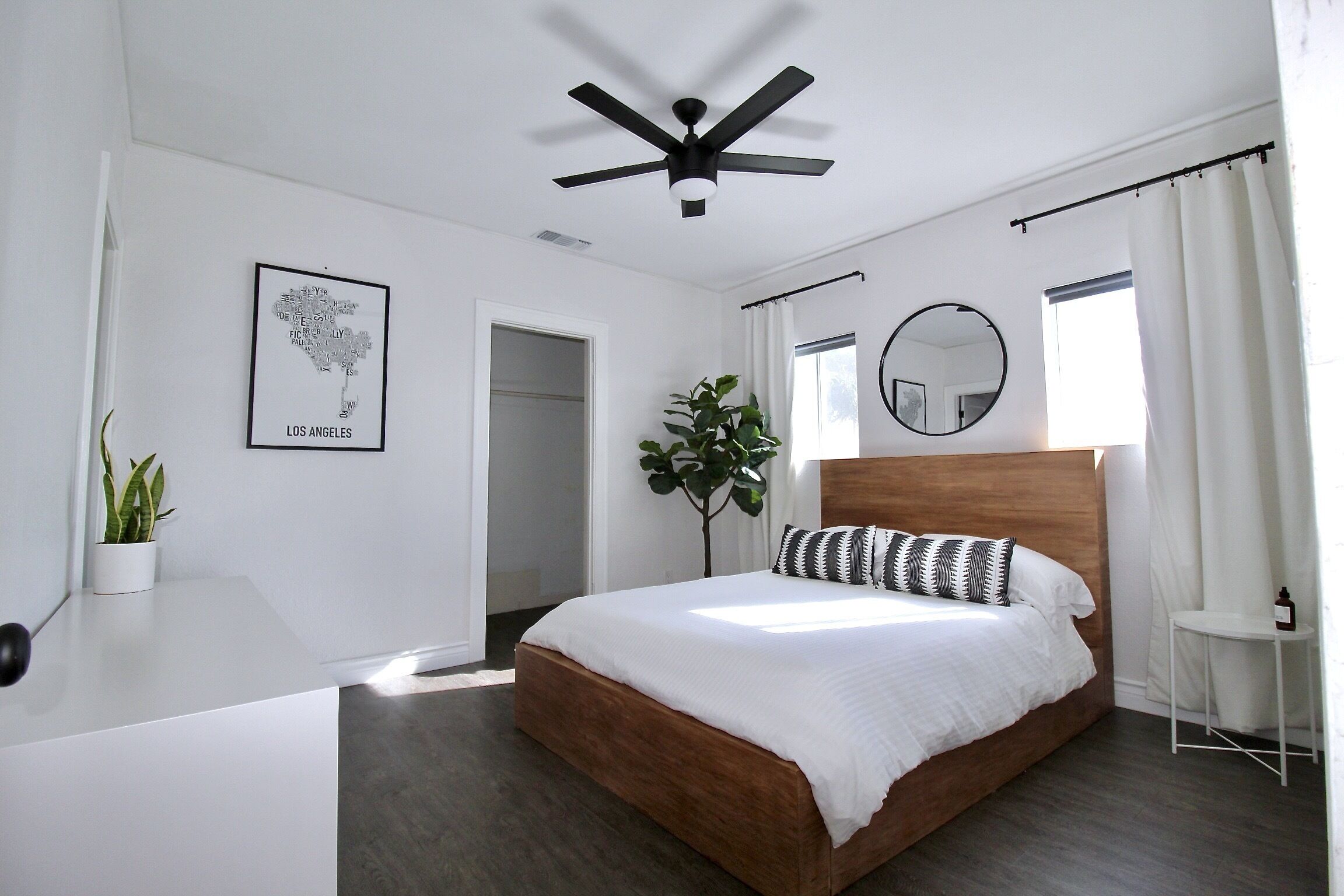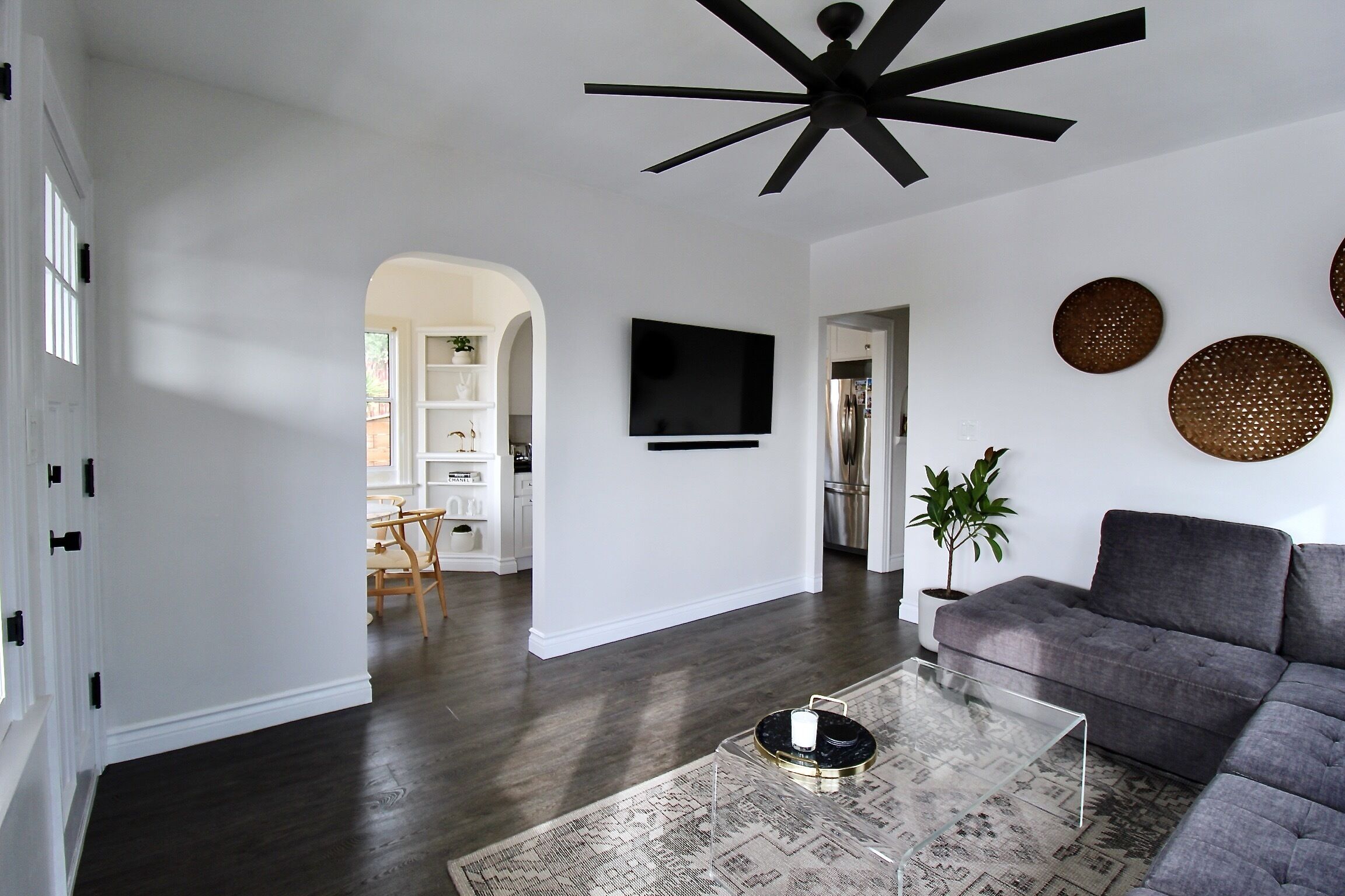 Amazing views of Downtown LA from this centrally located Spanish Modern getaway! Nestled in the rolling hillside of City Terrace, wake up to breathtaking views of LA's iconic skyline. This bright and stylish fully remodeled Spanish revival home features open living spaces, tranquil nooks, private garden retreat and stunning sunset views. Home comes fully equipped with top of the line appliances, beautifully upgraded bathrooms and designer finishes.Centrally located to many to LA’s most popular destinations and less than 10 minutes from downtown LA.