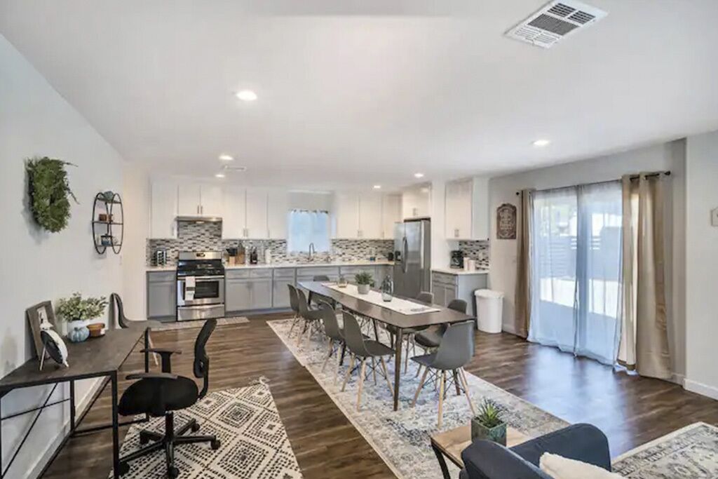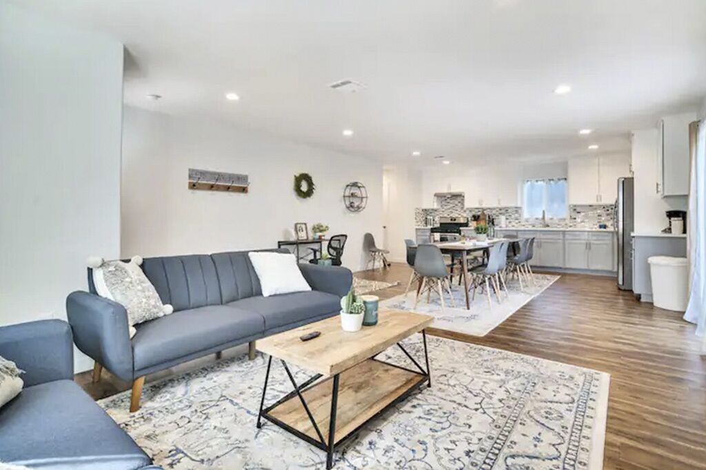 UPSCALE LARGE TOWNHOME IN TRANQUIL AREA Brand new 2-story massive Townhouse just minutes from Downtown LA is now ready for you to enjoy! This 4-bedroom, 3.5-bath home can accommodate up to 16 guests and comes equipped with all the amenities, including a game room and a backyard landscaped area. This home is just minutes away from Downtown LA, the LAC & USC Medical Centers, Downtown Courthouses, the Art's District, Little Tokyo, nightlife, and many more. There is also easy access to 5, 10, 710, and 60 freeways and the LA Metro.We hope you enjoy all the attention to detail we put into this home. Each bedroom is equipped with memory foam mattresses and comfortable bedding for a relaxing sleep. Technology offerings include high-speed internet, Nest Thermostat, and keyless entry. The kitchen features new stainless steel appliances for your culinary needs. The laundry room comes equipped with a brand new washer and dryer. The garage was converted to a game room that features a pool table and foosball table for your enjoyment. Our backyard allows you to enjoy the Southern California sunshine. We provide 4 parking spaces inside the property. 2 cars can park in front of the garage and 2 more on the backyard entrance. Entrance to the home is from the side alley.While we hope you enjoy our home, please be advised that parties or events are NOT allowed. This is a quiet neighborhood and loud music will not be tolerated. Quiet hours are between 10 PM - 8 AM everyday. If you need a home where you party, play loud music, or make a lot of noise, we regret to inform you that this is NOT the home for you and we CANNOT host you. We reserve the right to remove loud guests from the property should we hear complaints from the neighbors. Noise sensors and external cameras have been installed to monitor the property for any unruly events and parties.Smoking or vaping of any kind is absolutely PROHIBITED inside the home. If you do, any cleaning or furniture replacement costs will be deducted from your security deposit.