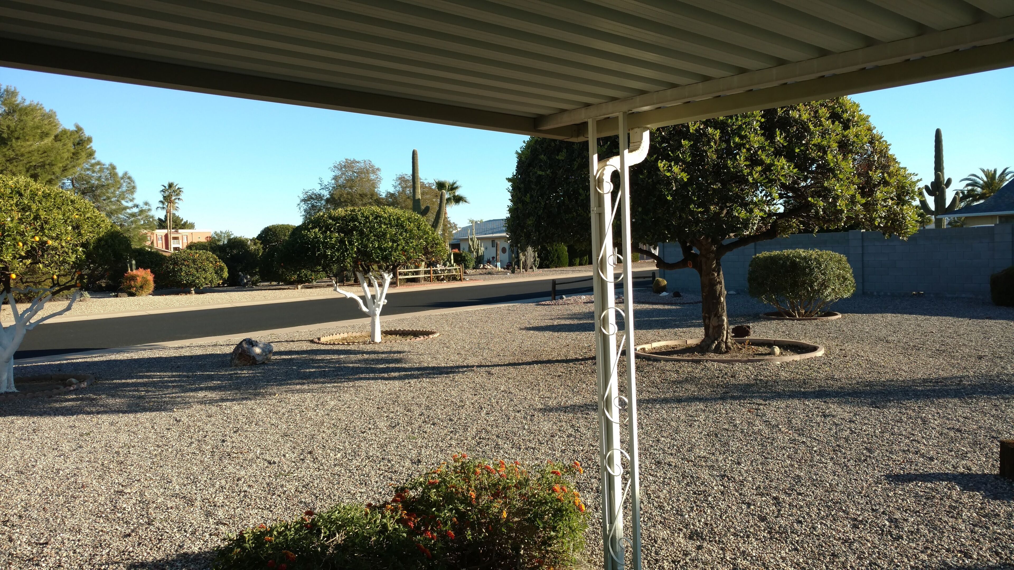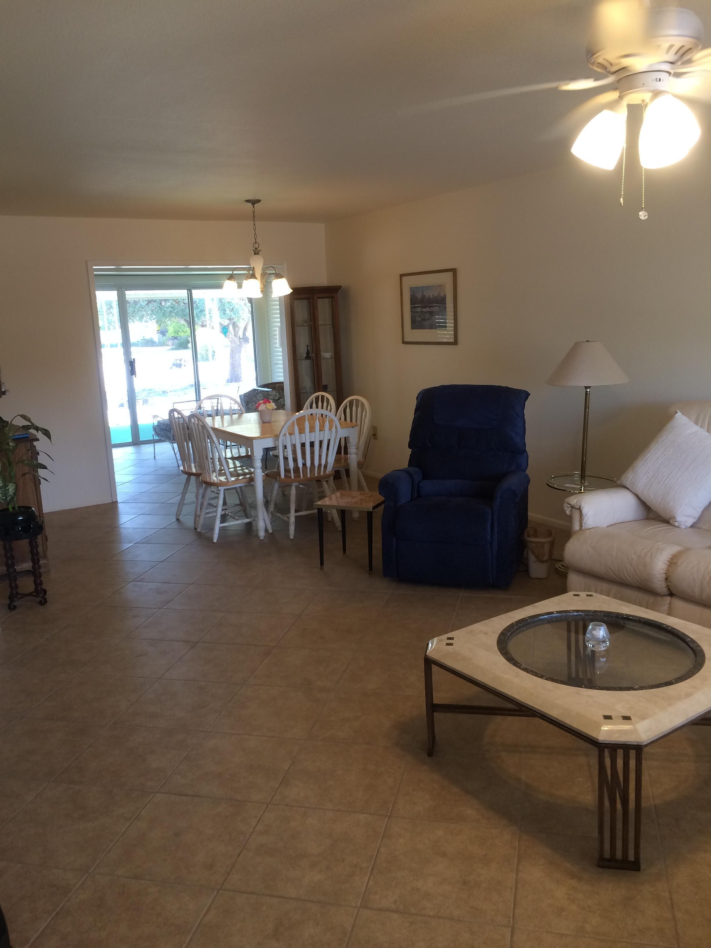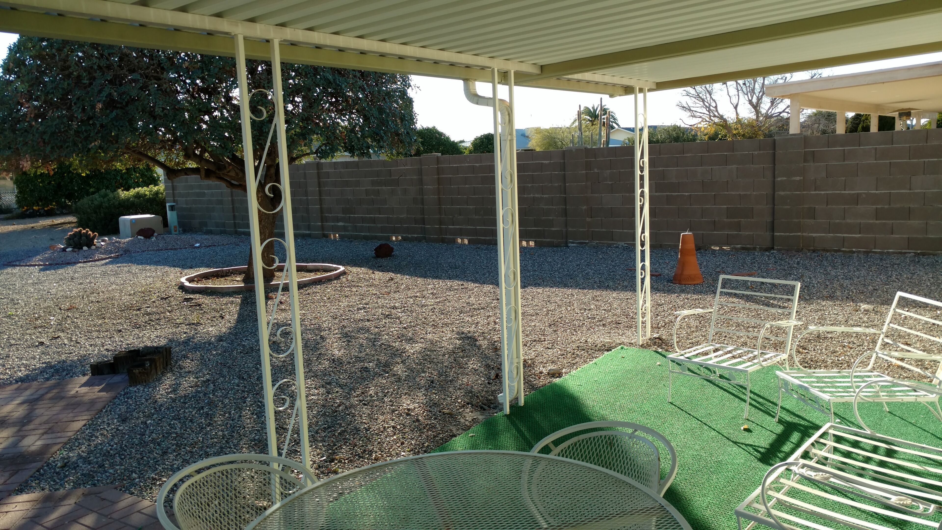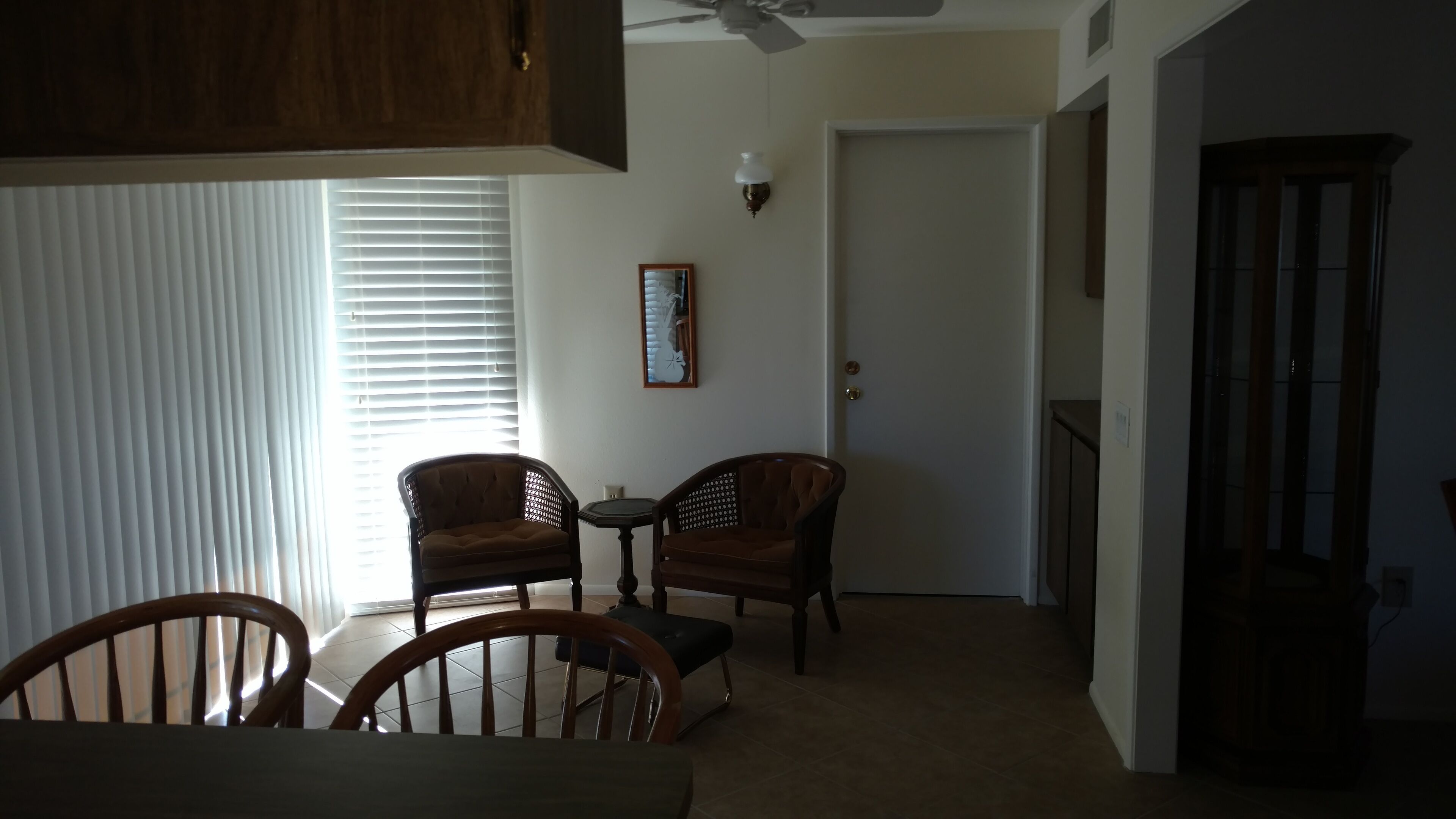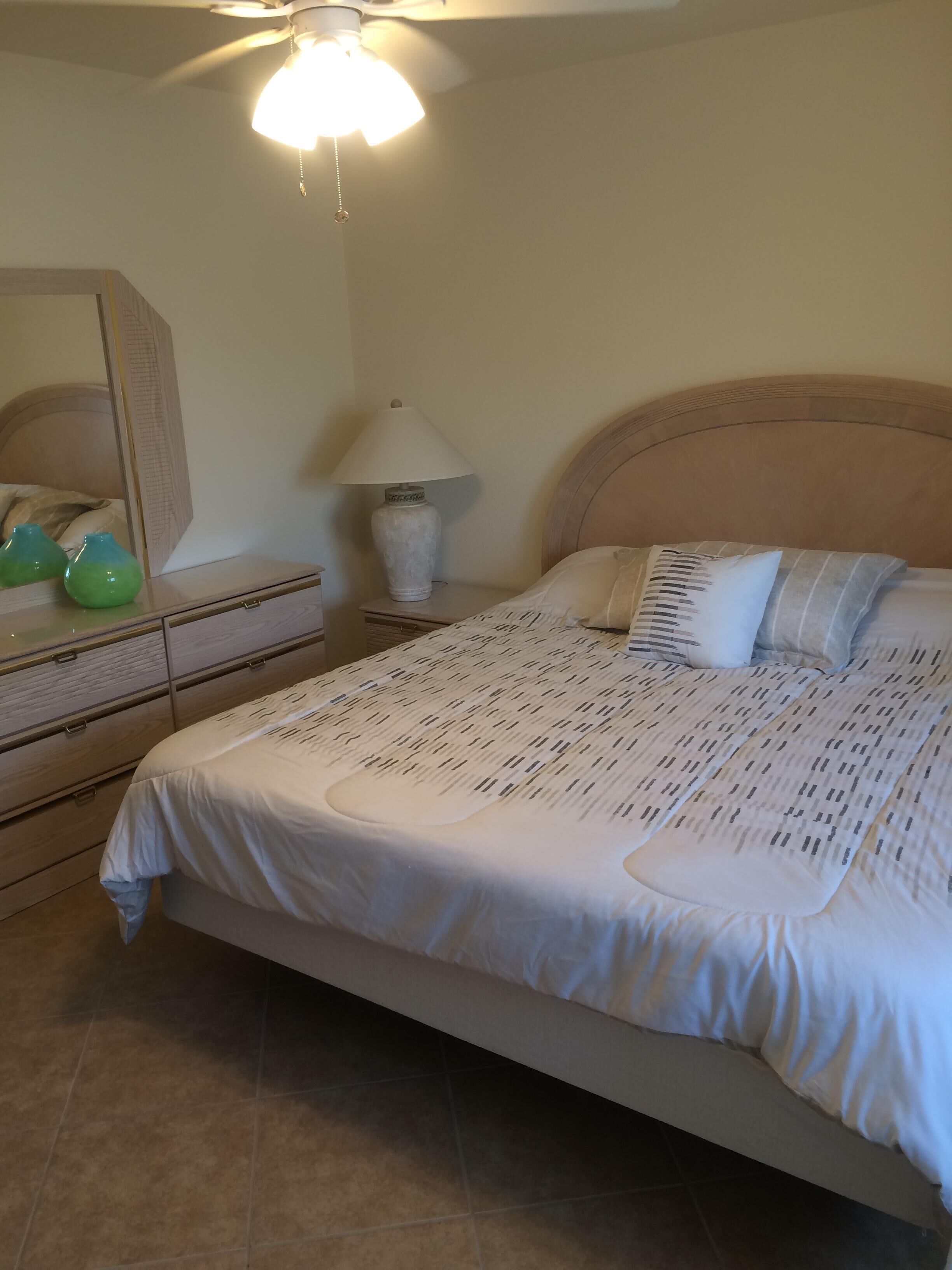 Nice quiet getaway home in Sun City! This fabulous 2 bedroom, 2 bathroom house with sun-room, 2 car garage, and spacious laundry room with washer/dryer and wash basin, with additional sleeping space, is available to you. The house has been updated with new flooring (tile), painted walls, ceilings, and doors, as well as new window blinds, and new ceiling fans. This house sits on an over-sized, quiet, corner lot and has a large covered patio with outdoor furniture and a propane BBQ grill. This house also comes fully furnished with a king size bed in the master and full size bed in the spacious guest room, and both rooms have walk-in closets. The kitchen is fully loaded with all your needs, including refrigerator, oven, microwave, blender, toaster, toaster oven, crock pot, coffee maker, and much much more. This home also has a two-car garage . The bar area has all your bar-ware needs(except the alcohol). This relaxing home is ready for you with central a/c and heating. Your stay includes flat-panel televisions, cable, high-speed internet, water, trash service, and electricity. A gas golf cart ready for the street, or course, is available for a nominal fee.