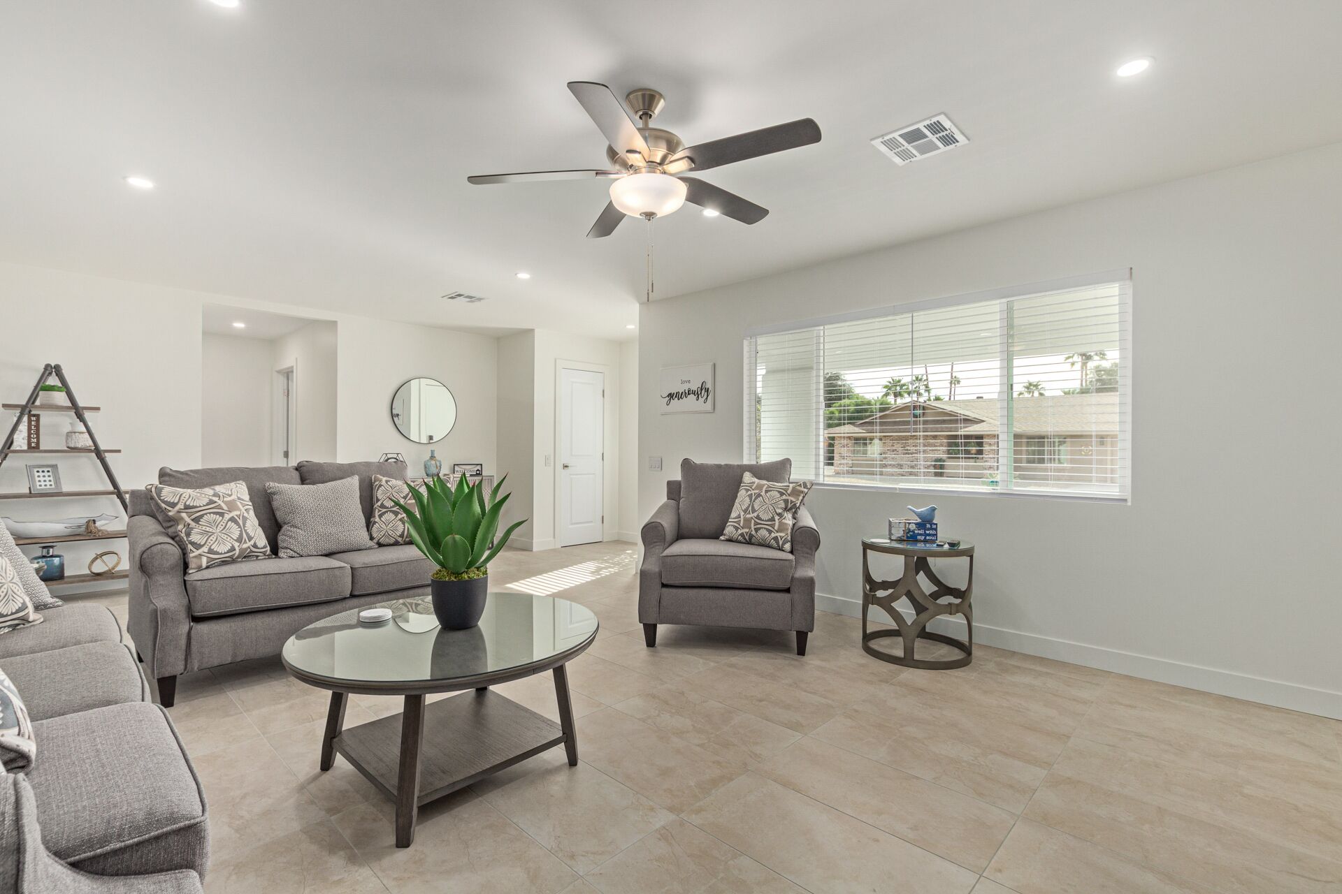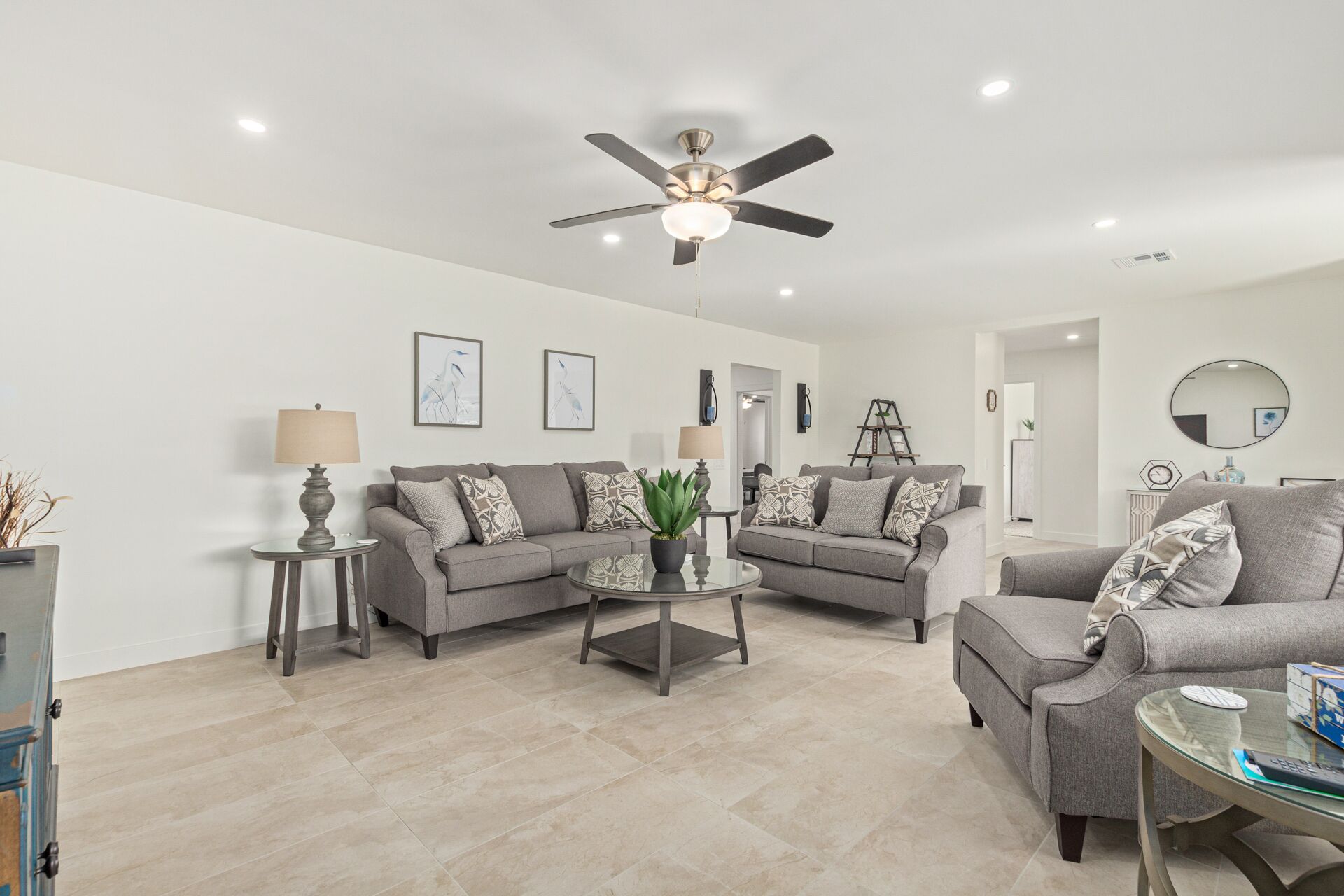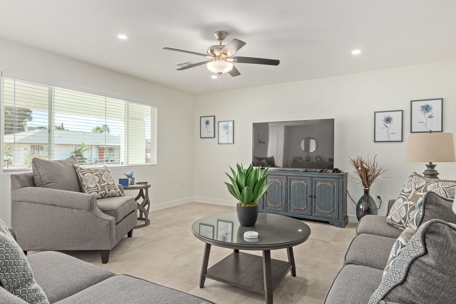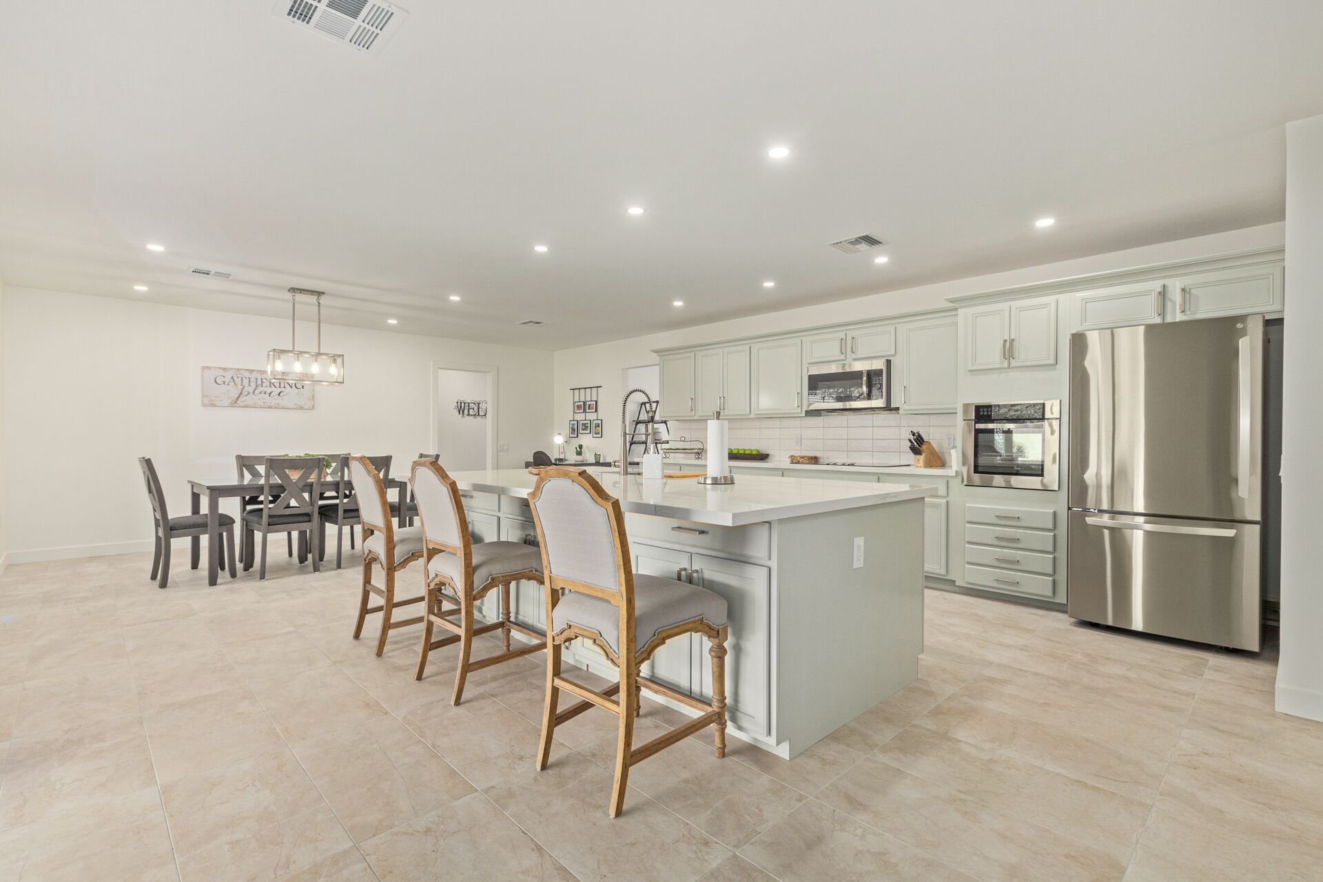 Luxury Modern Getaway Enjoy the amazing AZ weather in this completely updated modern home. This large and open floor plan has everything that you need to enjoy the perfect getaway. Sun City is a 55+ city that welcomes all ages although at least one member of the party must be age 55+ - Cable TV - Covered patio with 3 burner gas grill - Full sized washer/dryer - Large island & separate desk for all your work needs - 10 miles from Cardinal stadium - 7 golf courses & recreational centers nearby- 2 king beds
