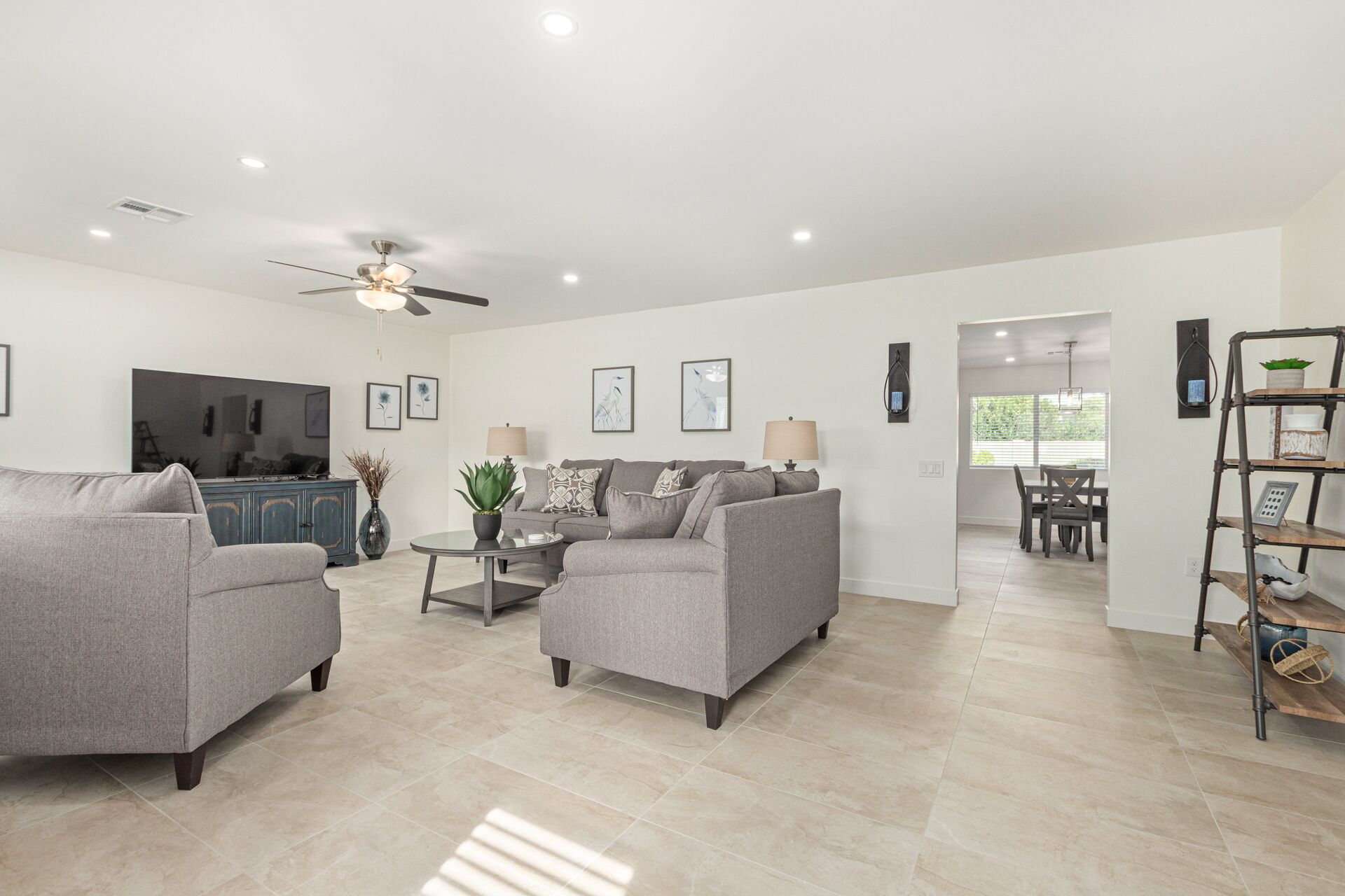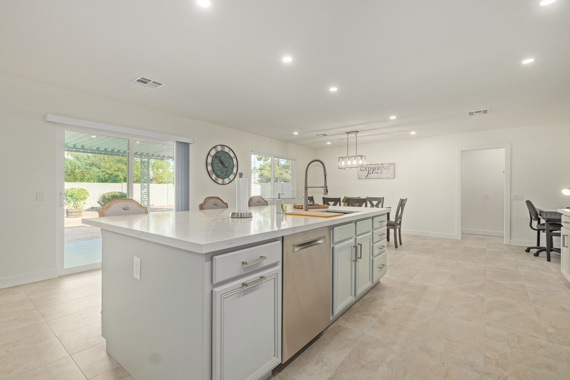 Luxury Modern Getaway Enjoy the amazing AZ weather in this completely updated modern home. This large and open floor plan has everything that you need to enjoy the perfect getaway. Sun City is a 55+ city that welcomes all ages although at least one member of the party must be age 55+ - Cable TV - Covered patio with 3 burner gas grill - Full sized washer/dryer - Large island & separate desk for al...
