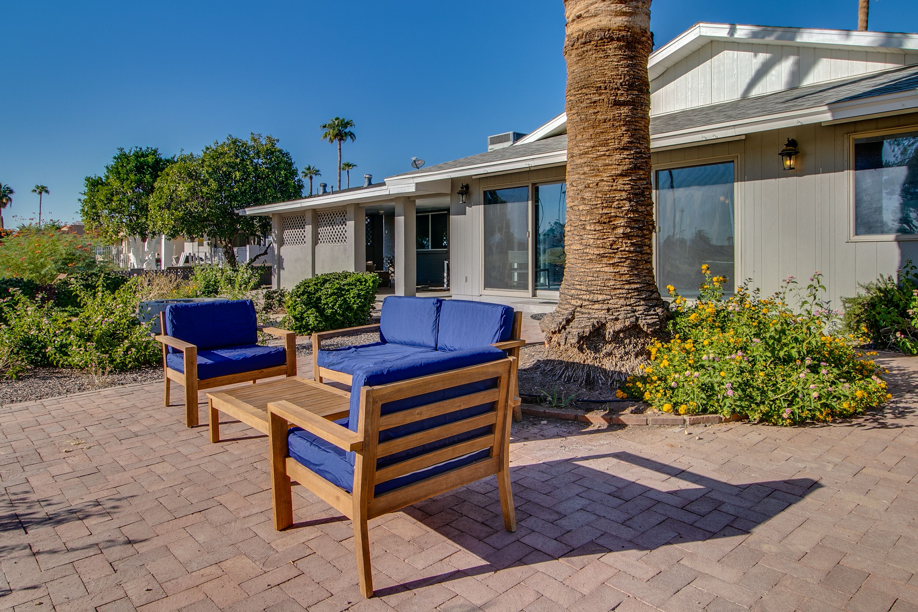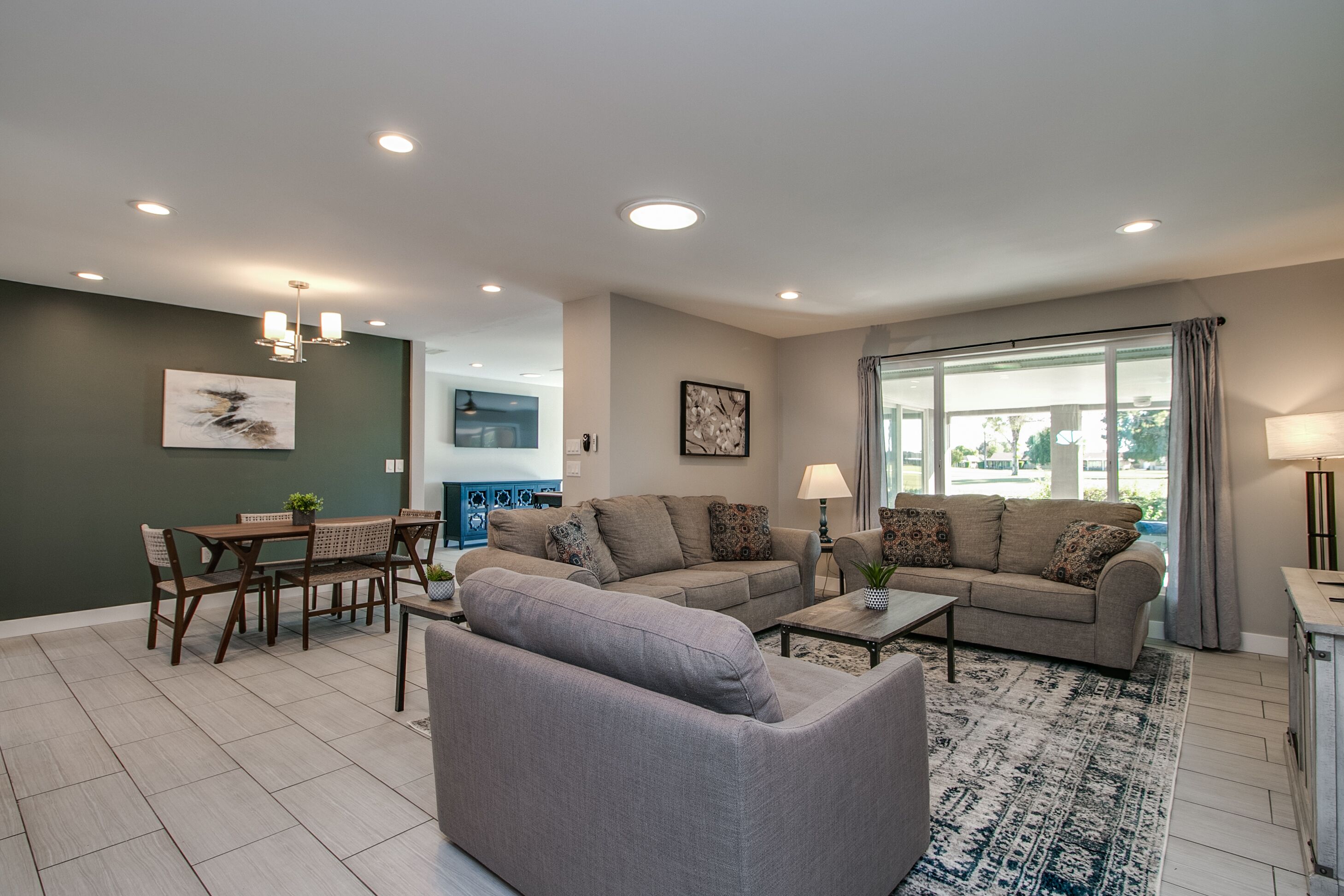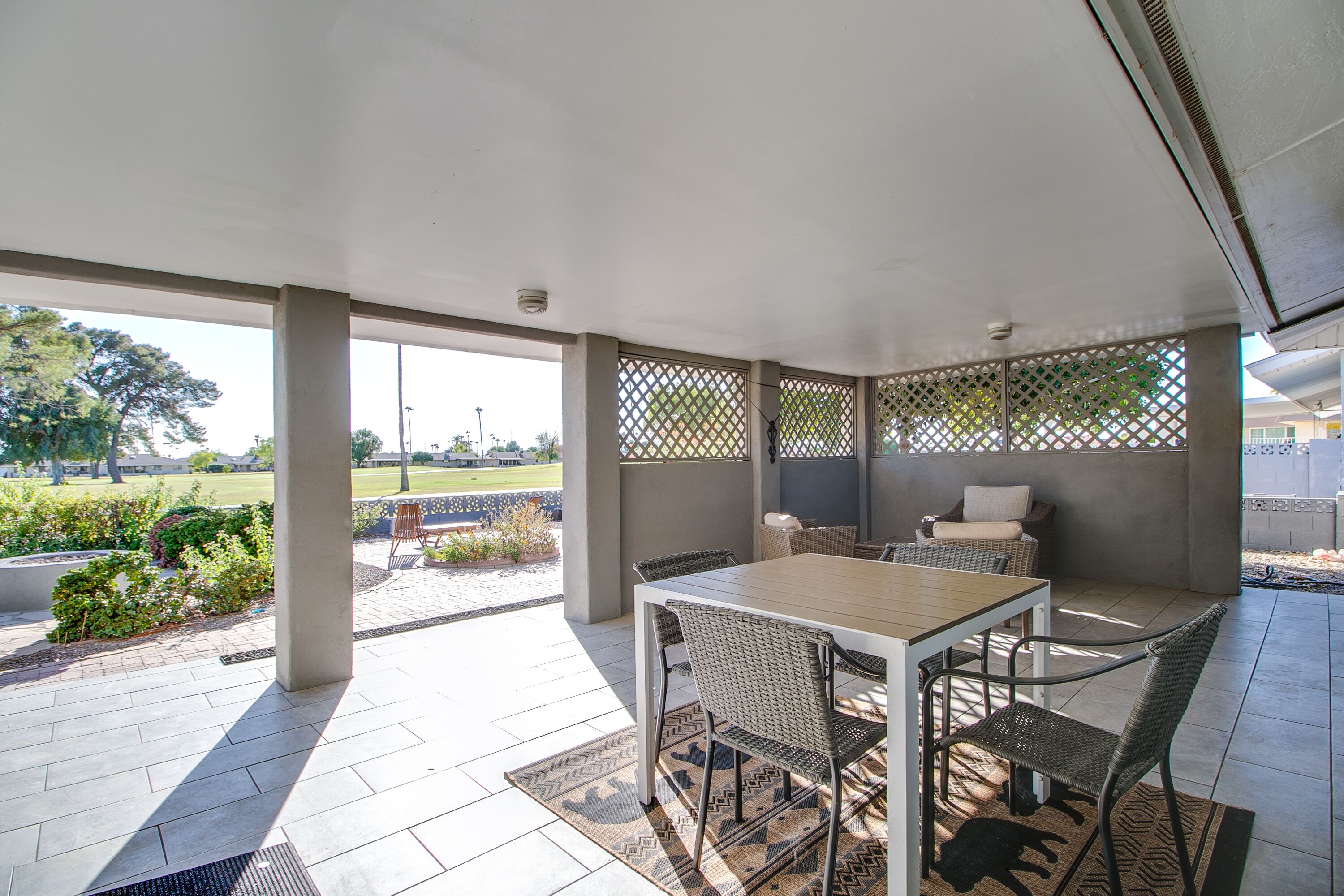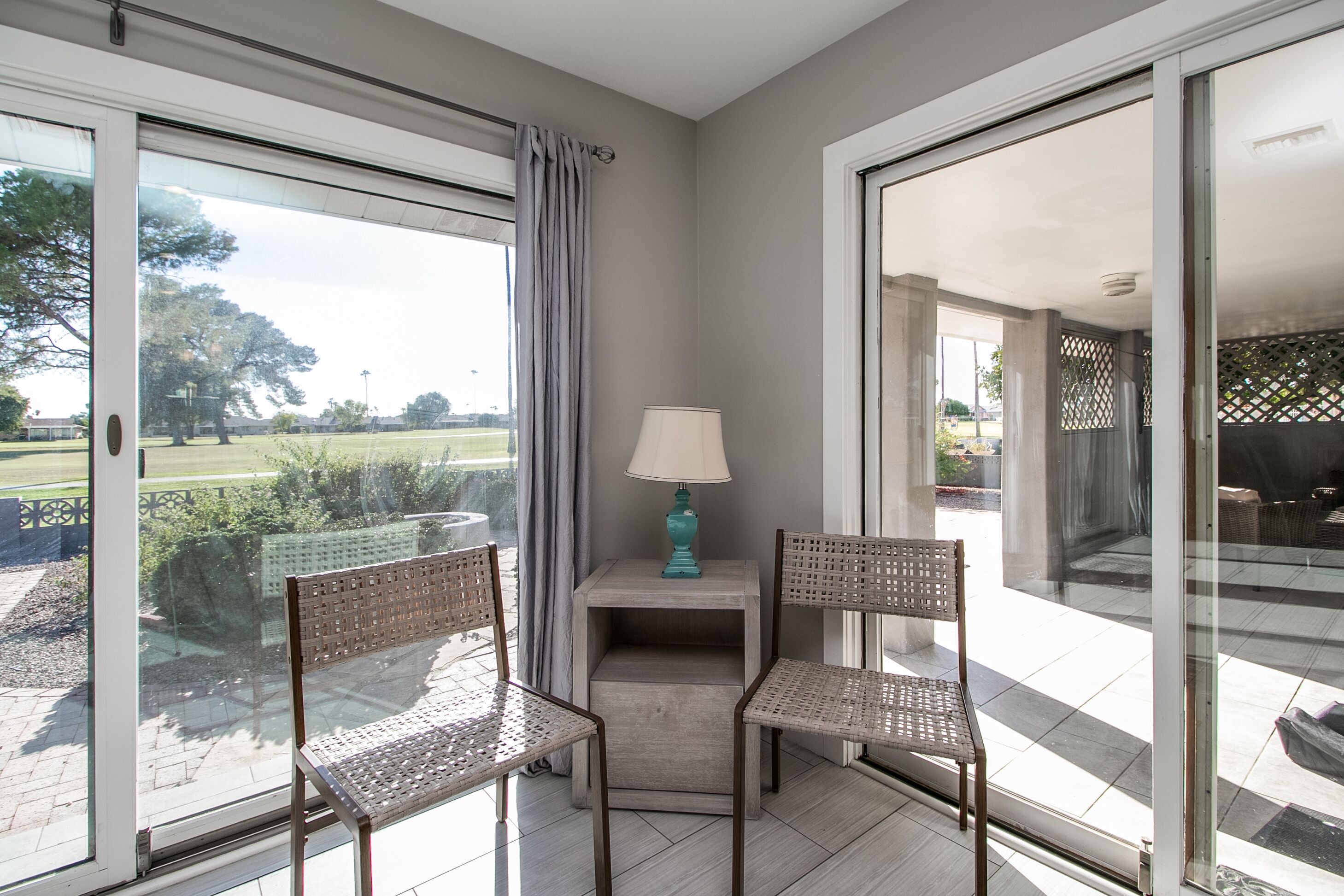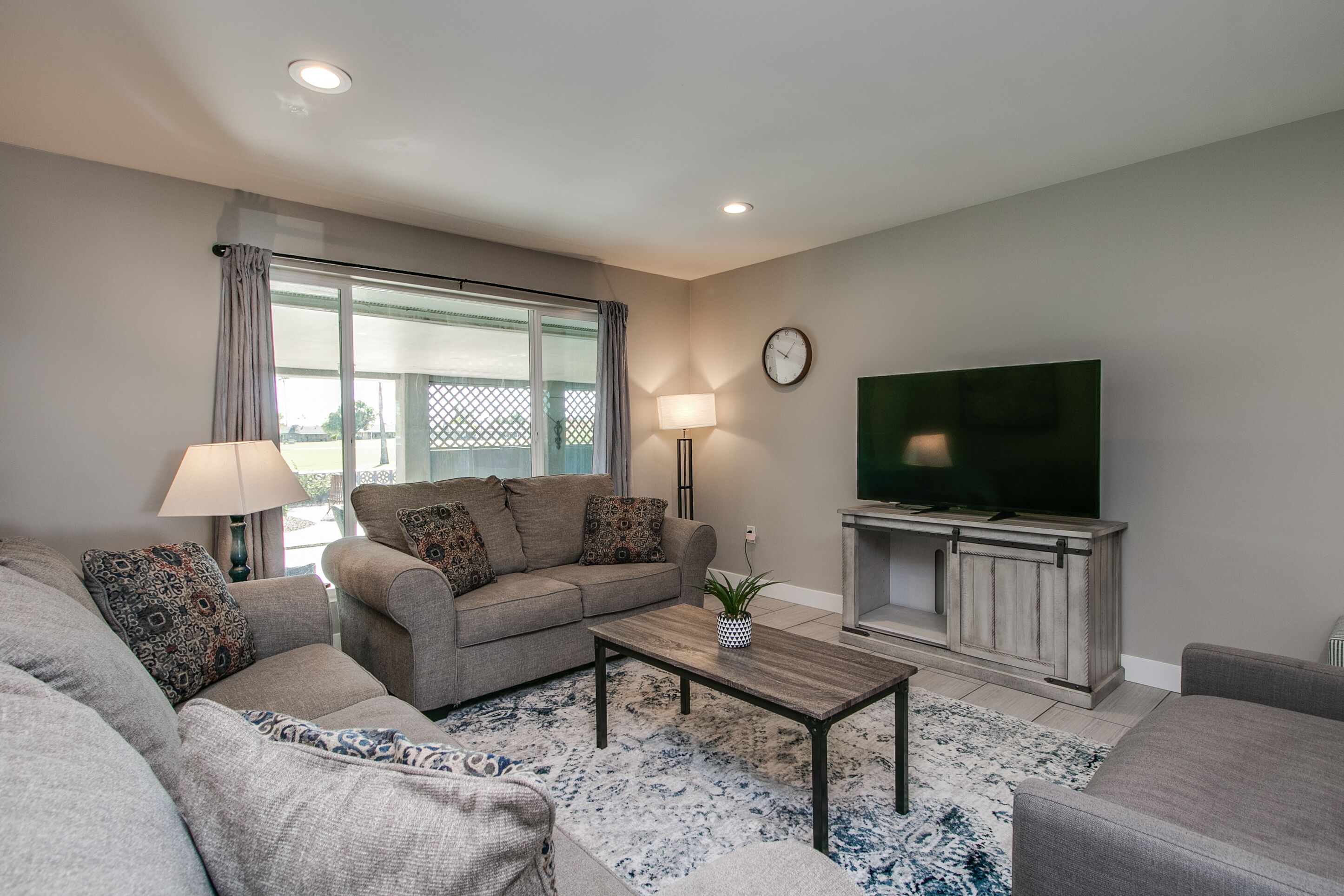 Sun City 55+ Community! 3 Bdrm Golf Course Lot Home! Perfect place for any snowbirds looking to soak up the Arizona sun! Please note 55+ community! Property sits on the Sun City Lakes Golf Course which makes for a scenic setting from the backyard seating areas. Home boasts over 2000 sq ft and 3 bdrms all with ensuite bathrooms! Comfortable and stylish furnishings throughout. Fully stocked kitchen, game room, garage, and full laundry are just a few of the amenities. Located in a quiet Sun City area which makes for a relaxing getaway.The spaceHome is tastefully furnished and has all that you need to enjoy your next Arizona vacation.Home features include..55+ Golf Course CommunityBackyard sits on Golf Course2150 sq ft3 Bdrms all with ensuite bathGame room with Billiards and DartsSpacious bedrooms all with TV'sFully stocked Kitchen2 car garageFull LaundryCovered patio with outdoor dining tableMultiple outdoor seating areas and firepitLocated in a very quiet community which makes it ideal for anyone wanting to get away and relax and enjoy the great winter weather.Guest accessGuests have entire place to themselves. There is no shared spaces here.Other things to noteMust be 55+ to rent home per HOA guidelinesNo smoking home.Ring camera on the front of the home for guest safety and security of the property. No cameras in home or anywhere in backyard Pets are allowed on an approved basis . $150 pet fee applies on any approved pets. Deposit may be required.TPT License #21437243