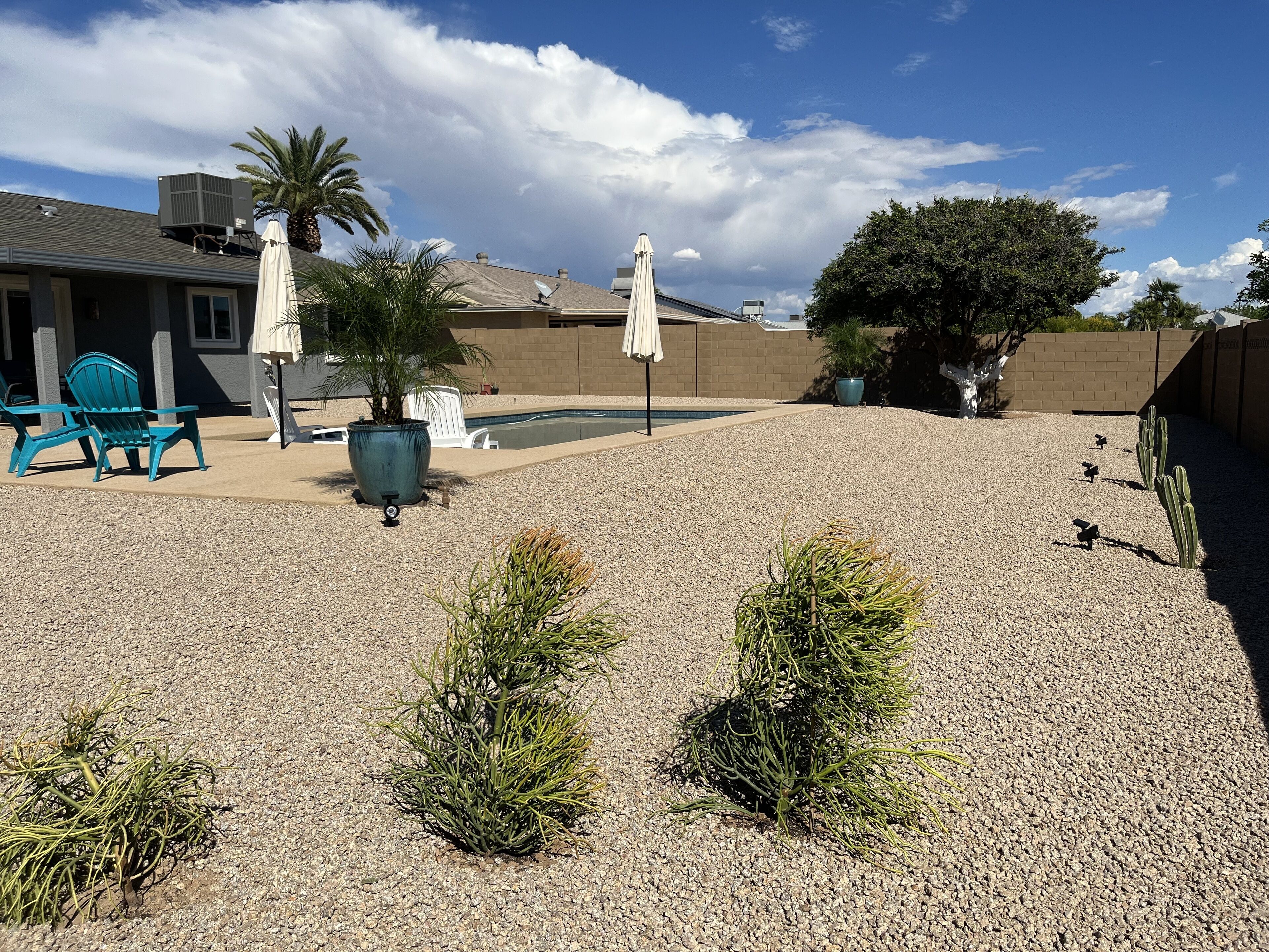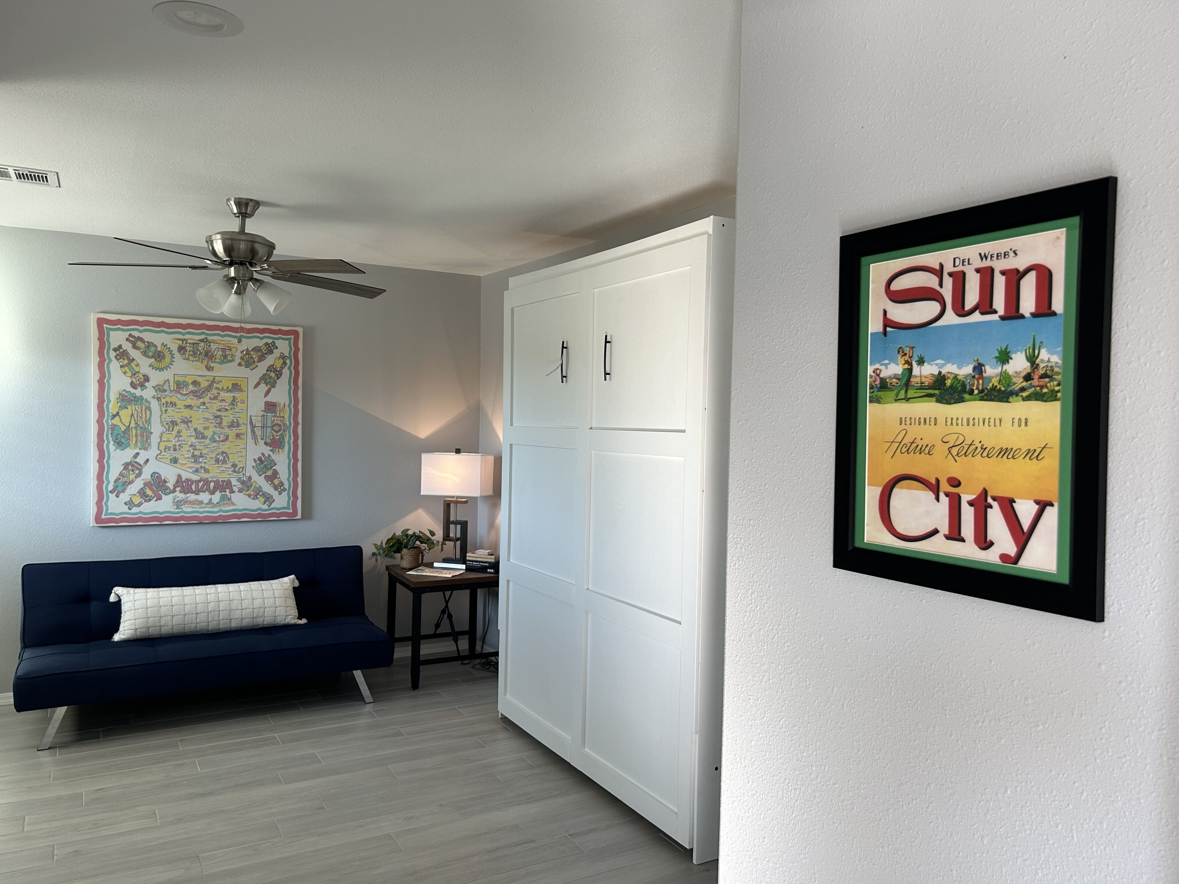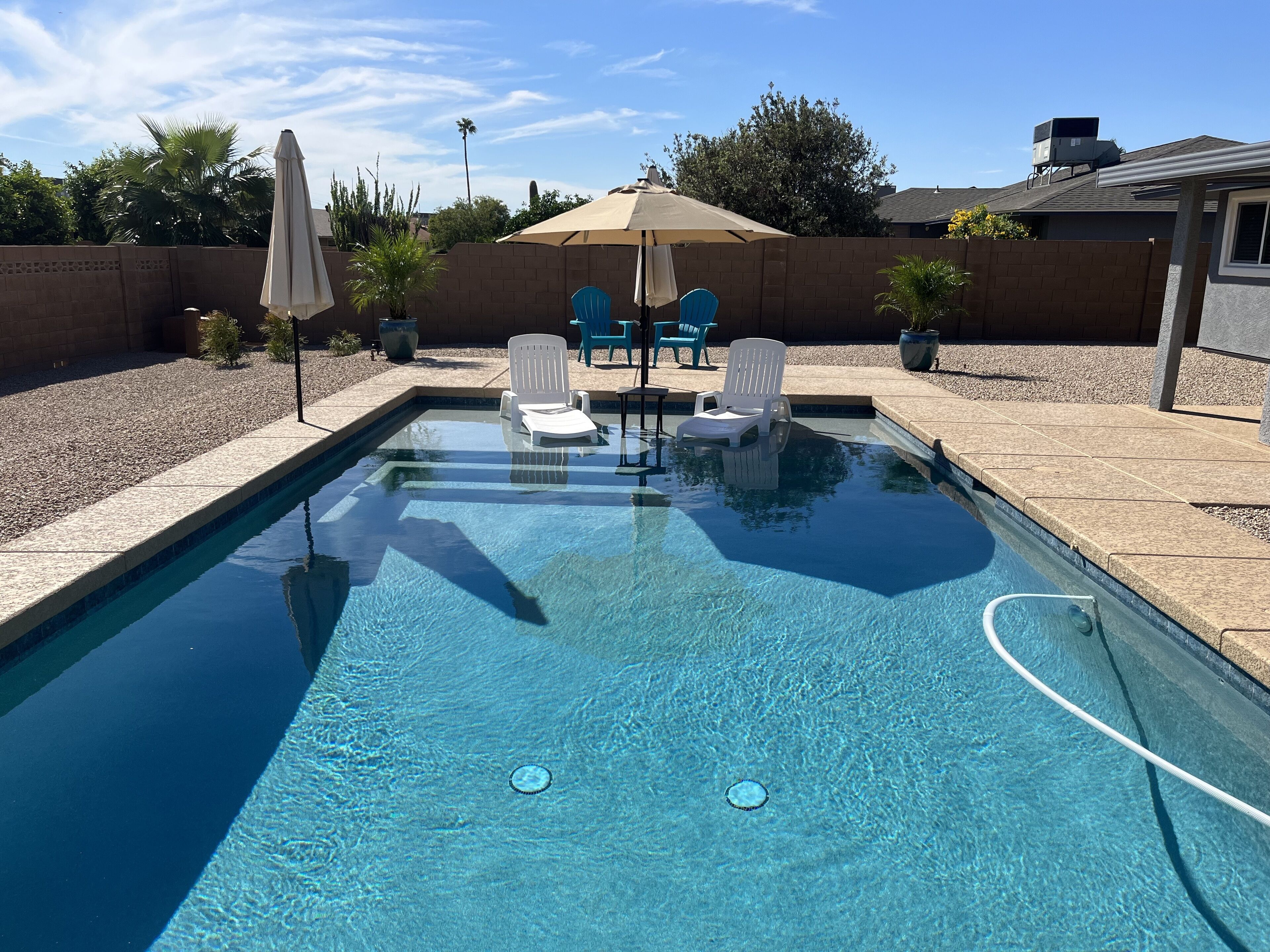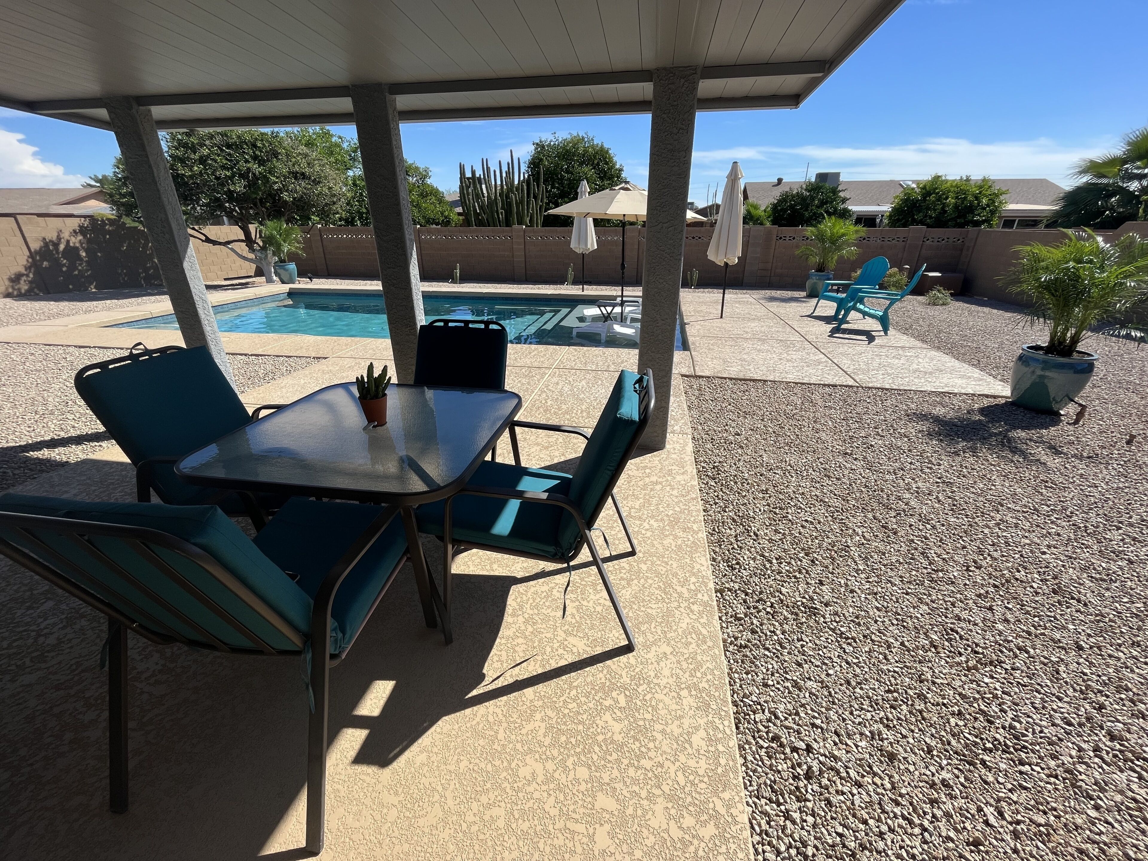 Desert Sunshine + Snowbird + Spring Training You will LOVE the quiet, friendly and active 55+ adult community of Sun City! You will appreciate YOUR OWN RESORT with PRIVATE POOL. The resort style 5' play pool, with Baja ledge, accommodates two loungers in the water! ENJOY the beautiful blue sky from sunrise to sunset. The sky is ever changing in the back and front yard at sunset. It is simply SPECTACULAR! Feel right at home with ALL NEW EVERYTHING! From two King size bedrooms with spa-like showers to the high end kitchen and reclining leather sofas w/USB, two smart TV's, to the outdoor Webber and amazing pool outside. You have it all! And don't forget to make your morning smoothies and happy hour margarita with the Ninja!At least one guest must be 55+ to book. (Gov't ID and signed pool use waiver(s) are required to obtain access prior to check in. Thank you kindly!)Check In instructions provided 5 days prior to arrival. Streaming services available. Guests must use their own accounts.30+Nights Guests: You can choose to join the Sun City Recreation Centers for $75/mo (55+ ID & an affidavit required-ask host). You will have access to 7 recreation centers to: exercise, swim, lawn bowl, play pickle ball, tennis, paddleboat, fish, put put golf or take an art or metal class! 8 courses to golf at a discounted rate. (This is not mandatory and at your own initiation).Children 10-18yrs are welcome for a short visit with host approval. BE ADVISED- the pool is NOT fenced separately. Swim at your own risk. Please inquire further with host. Jan-Feb: enjoy fresh squeezed orange juice with oranges from our own tree!Spring time: LOOK UP! There are hot air balloons visible on your evening walk. What a spectacular sight!*PERFECT LOCATION*Peoria Stadium and P83 restaurants- 2 miles awayCostco, Trader Joe's, Arrowhead Mall- within 3 milesCACTUS LEAGUE SPRING TRAINING FIELDS, FIESTA BOWL, PROFESSIONAL HOCKEY, LAKE PLEASANT-within 14 miles. Sun City Fire Department, .6 milesBanner Boswell Medical Center, 3.8 milesLuke AFB, 12 milesUniversity of Arizona, 11 milesGrand Canyon University, 14milesArizona State University, 36 milesNASCAR/ INDYCAR, US OPEN, BARRETT-JACKSON- within 25 milesGrand Canyon, Sedona, Flagstaff, Tucson, Yuma- within 225milesLas Vegas, 273 milesHoover Dam, 241 milesDisneyland, Huntington Beach, San Diego- 5.5 hour drive