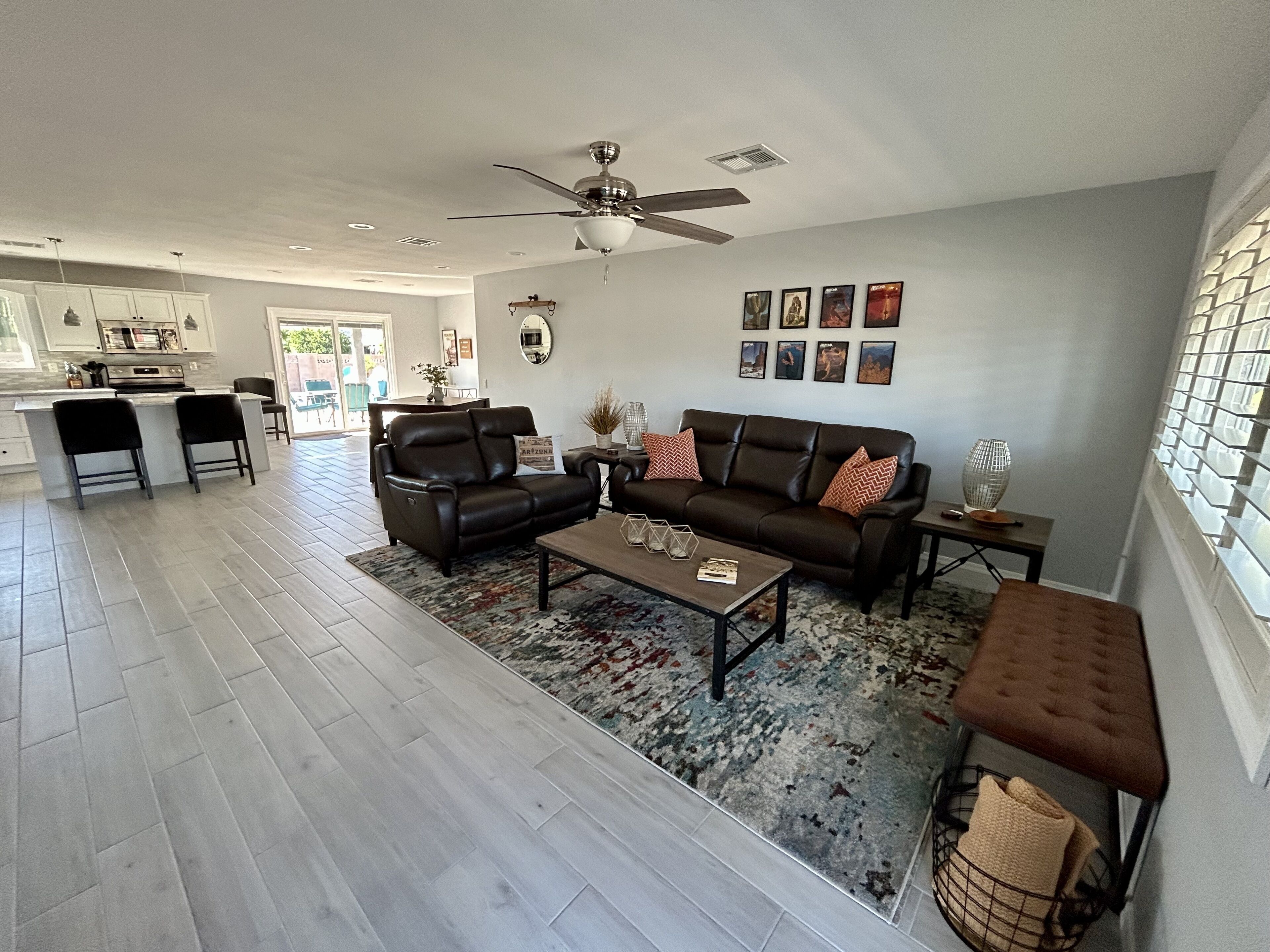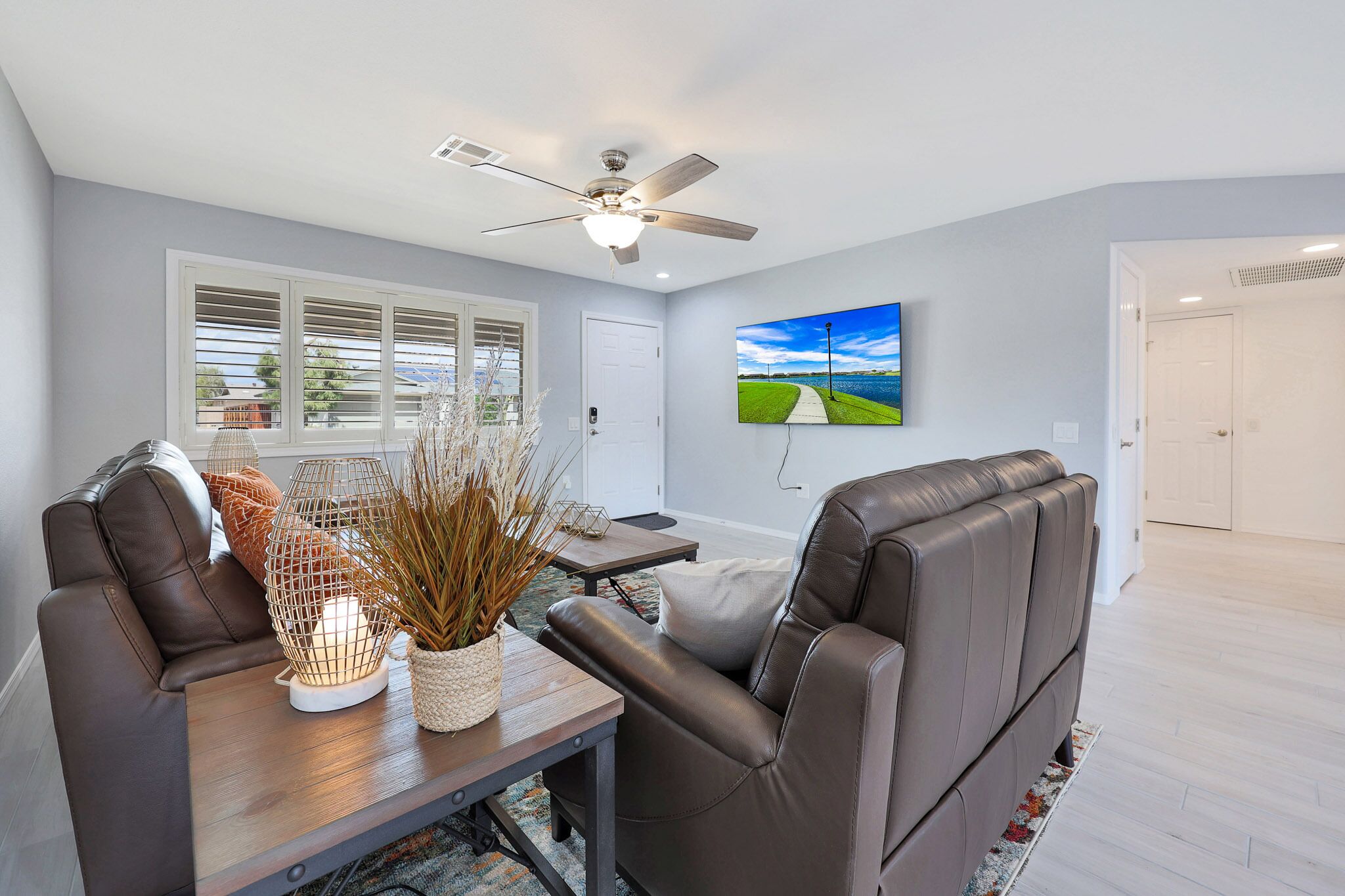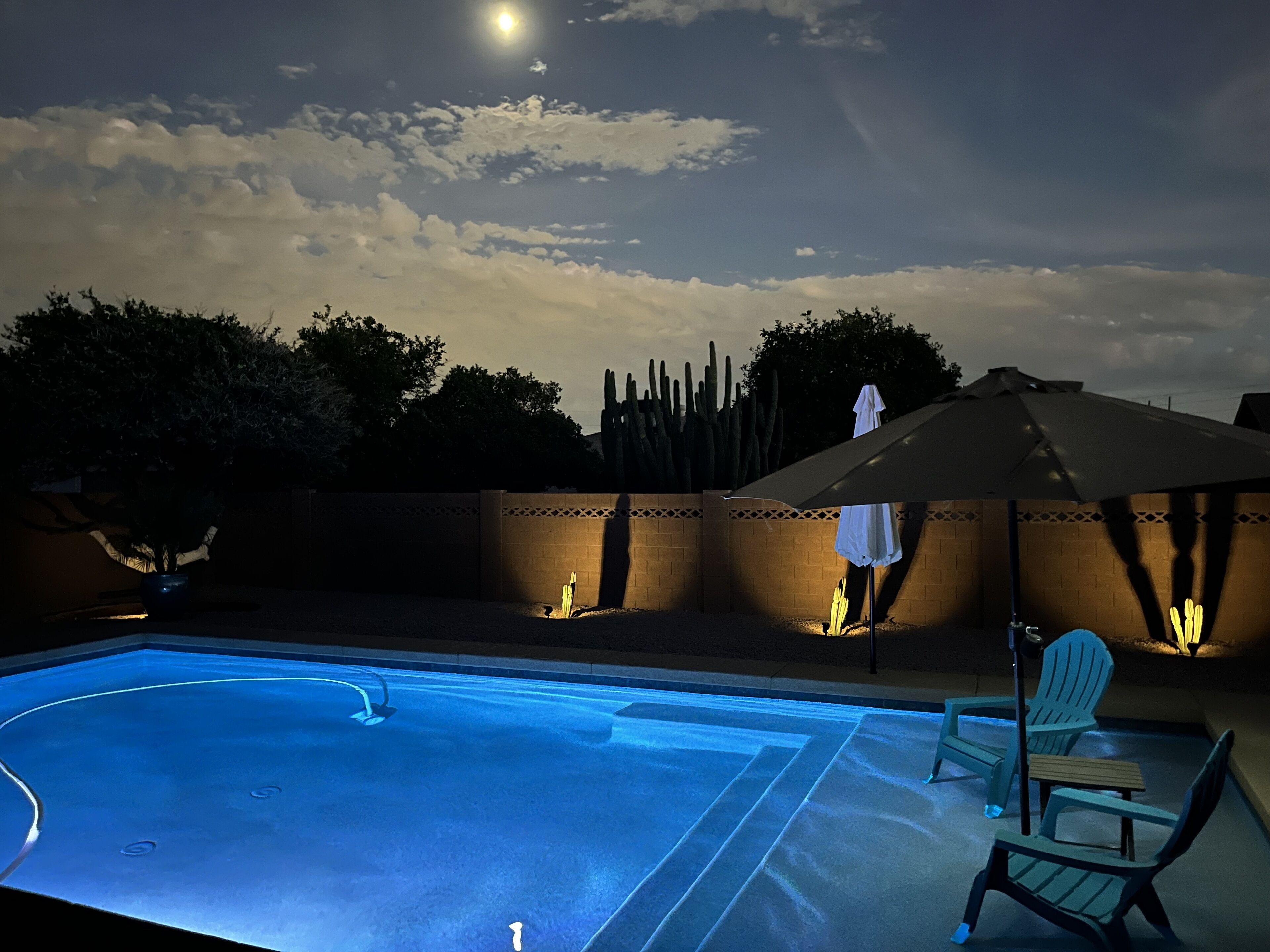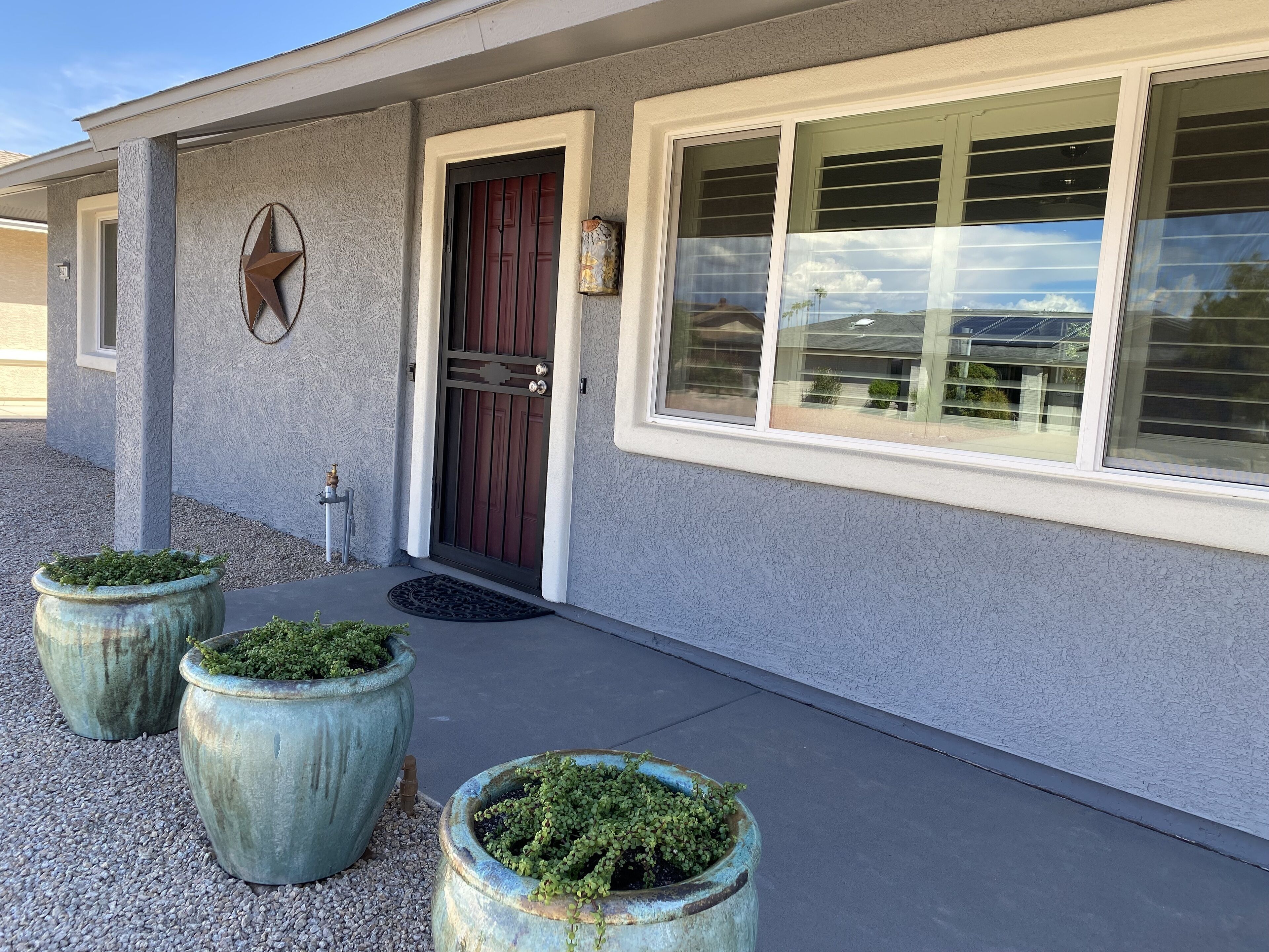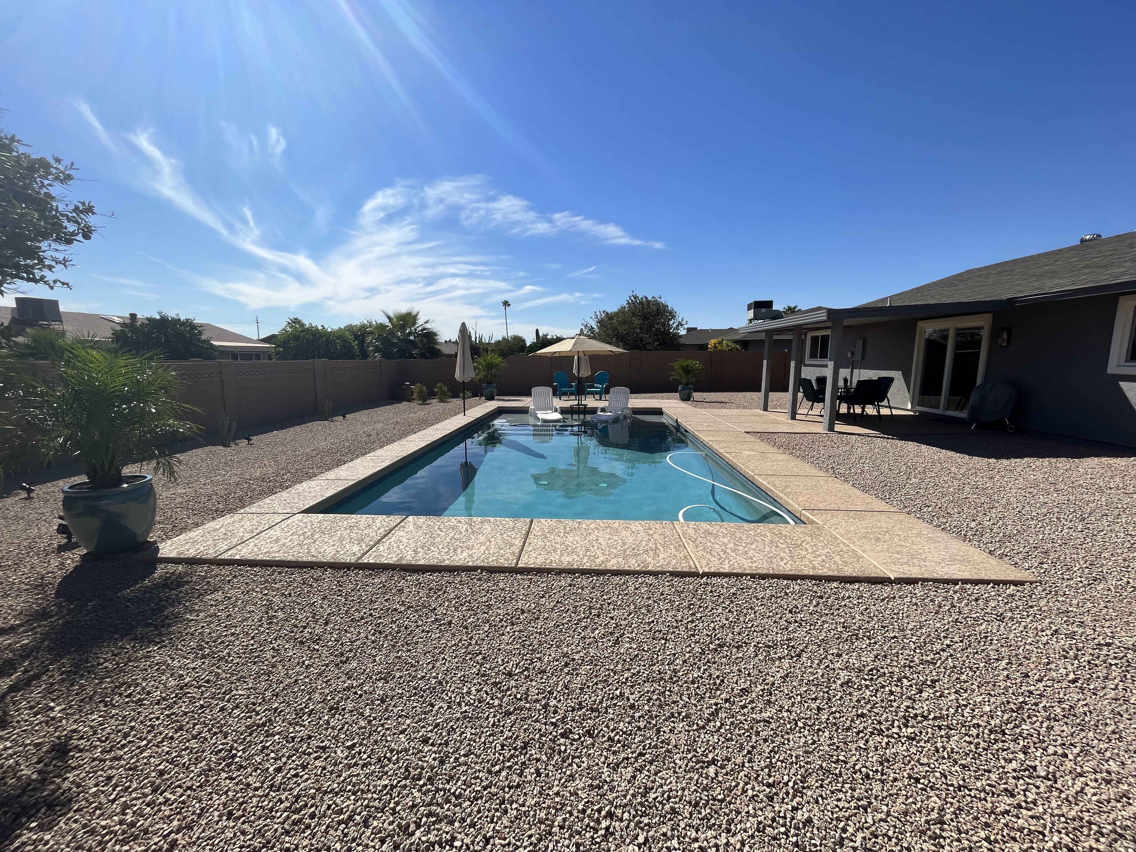 Desert Sunshine + Snowbird + Spring Training You will LOVE the quiet, friendly and active 55+ adult community of Sun City! You will appreciate YOUR OWN RESORT with PRIVATE POOL. The resort style 5' play pool, with Baja ledge, accommodates two loungers in the water! ENJOY the beautiful blue sky from sunrise to sunset. The sky is ever changing in the back and front yard at sunset. It is simply SPECTACULAR! Feel right at home with ALL NEW EVERYTHING! From two King size bedrooms with spa-like showers to the high end kitchen and reclining leather sofas w/USB, two smart TV's, to the outdoor Webber and amazing pool outside. You have it all! And don't forget to make your morning smoothies and happy hour margarita with the Ninja!At least one guest must be 55+ to book. (Gov't ID and signed pool use waiver(s) are required to obtain access prior to check in. Thank you kindly!)Check In instructions provided 5 days prior to arrival. Streaming services available. Guests must use their own accounts.30+Nights Guests: You can choose to join the Sun City Recreation Centers for $75/mo (55+ ID & an affidavit required-ask host). You will have access to 7 recreation centers to: exercise, swim, lawn bowl, play pickle ball, tennis, paddleboat, fish, put put golf or take an art or metal class! 8 courses to golf at a discounted rate. (This is not mandatory and at your own initiation).Children 10-18yrs are welcome for a short visit with host approval. BE ADVISED- the pool is NOT fenced separately. Swim at your own risk. Please inquire further with host. Jan-Feb: enjoy fresh squeezed orange juice with oranges from our own tree!Spring time: LOOK UP! There are hot air balloons visible on your evening walk. What a spectacular sight!*PERFECT LOCATION*Peoria Stadium and P83 restaurants- 2 miles awayCostco, Trader Joe's, Arrowhead Mall- within 3 milesCACTUS LEAGUE SPRING TRAINING FIELDS, FIESTA BOWL, PROFESSIONAL HOCKEY, LAKE PLEASANT-within 14 miles. Sun City Fire Department, .6 milesBanner Boswell Medical Center, 3.8 milesLuke AFB, 12 milesUniversity of Arizona, 11 milesGrand Canyon University, 14milesArizona State University, 36 milesNASCAR/ INDYCAR, US OPEN, BARRETT-JACKSON- within 25 milesGrand Canyon, Sedona, Flagstaff, Tucson, Yuma- within 225milesLas Vegas, 273 milesHoover Dam, 241 milesDisneyland, Huntington Beach, San Diego- 5.5 hour drive