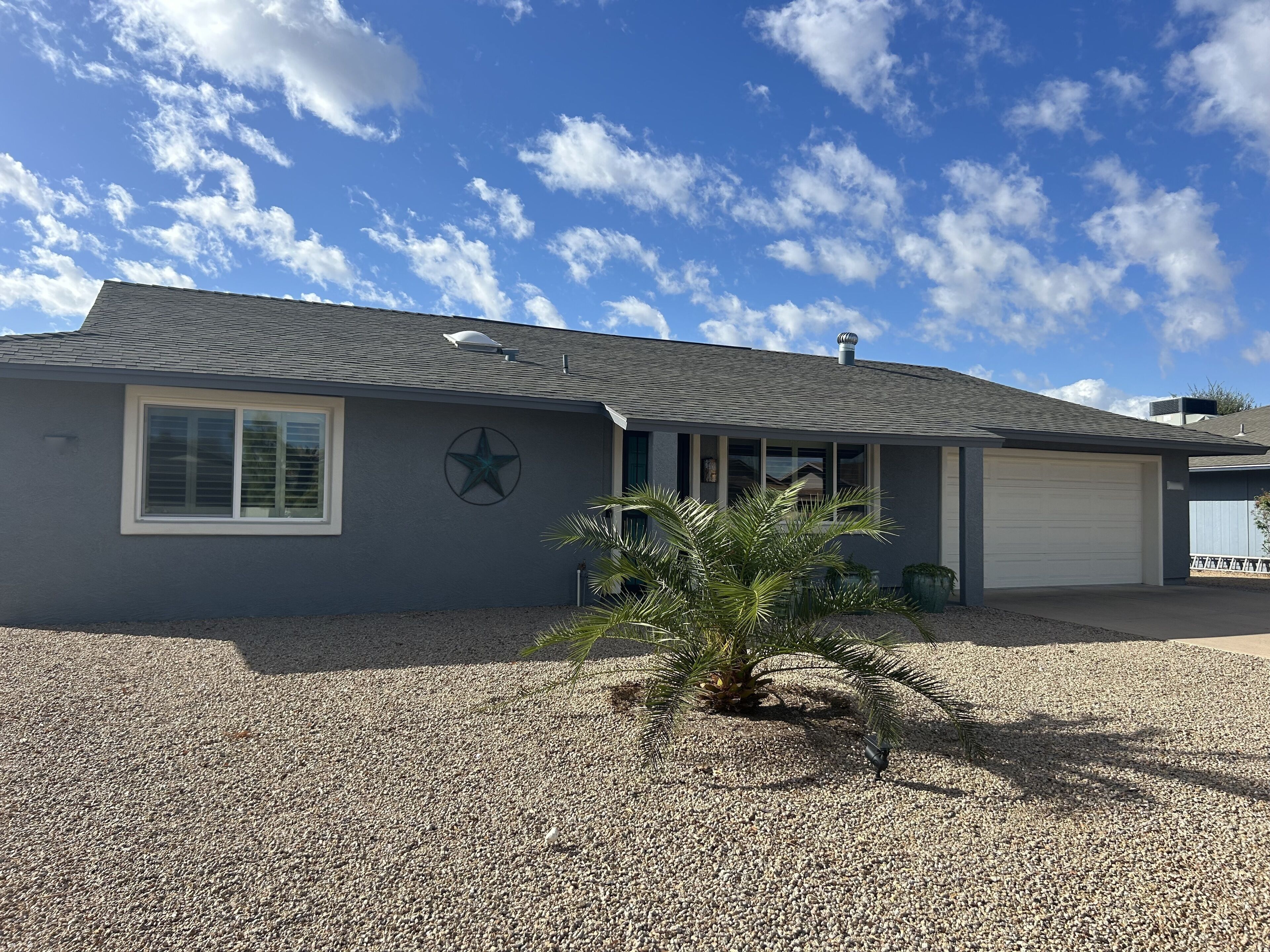 Desert Sunshine + Snowbird + Spring Training You will LOVE the quiet, friendly and active 55+ adult community of Sun City! You will appreciate YOUR OWN RESORT with PRIVATE POOL. The resort style 5' play pool, with Baja ledge, accommodates two loungers in the water! ENJOY the beautiful blue sky from sunrise to sunset. The sky is ever changing in the back and front yard at sunset. It is simply SPEC...